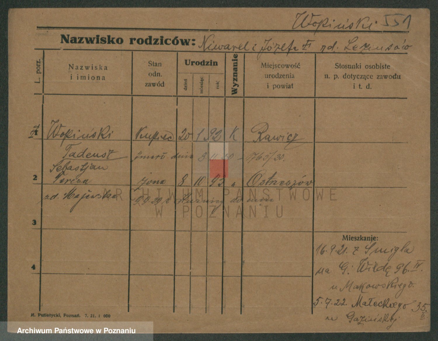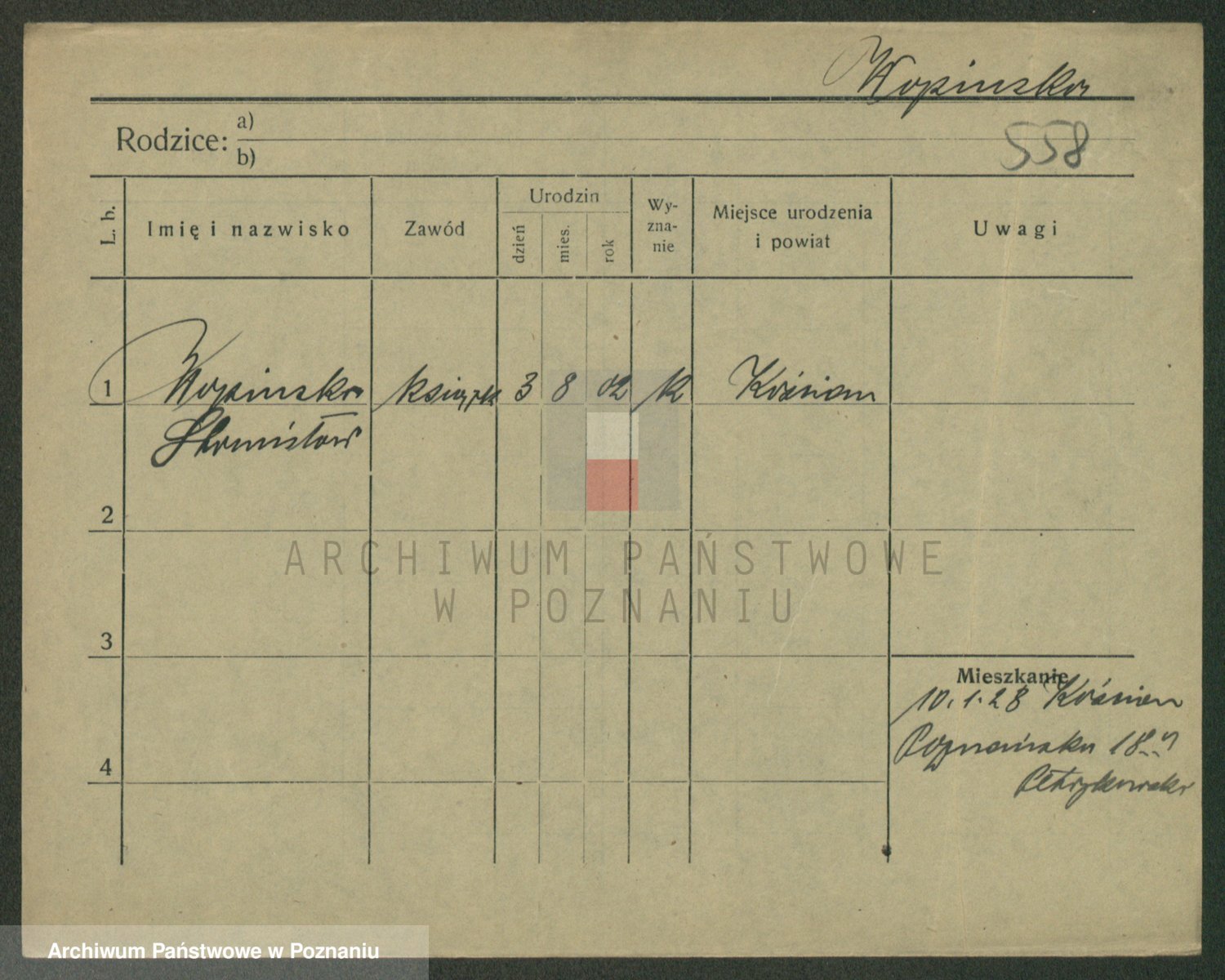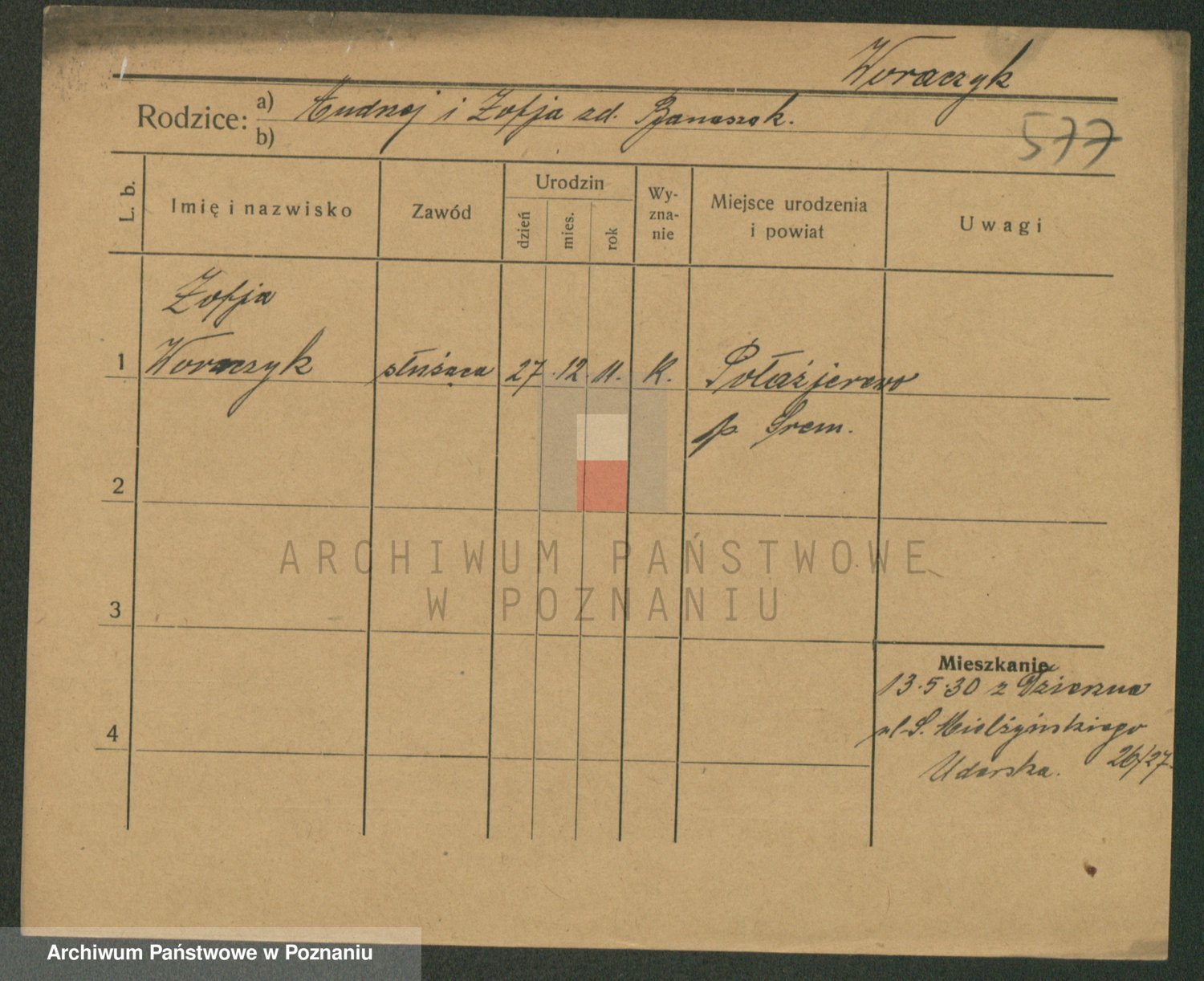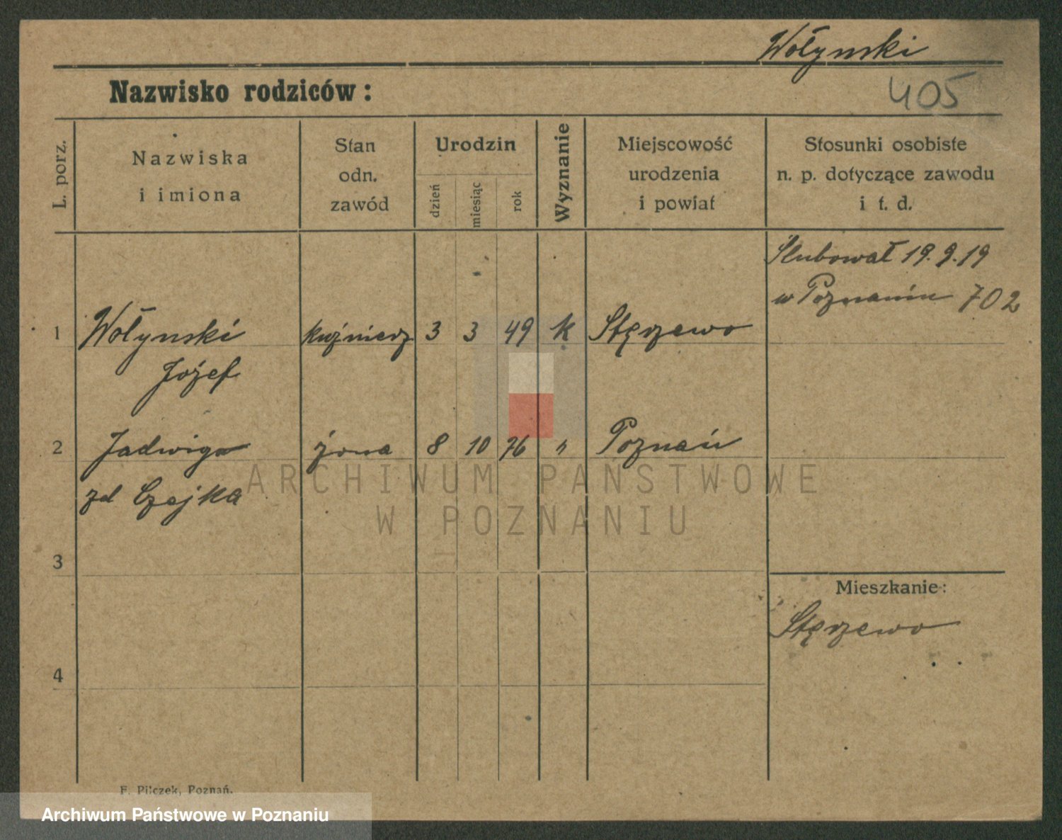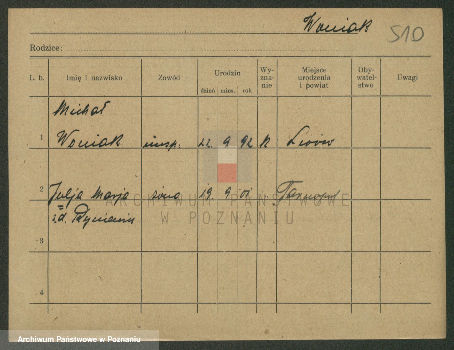 Podgląd karty osobowej dostępny jest po kliknięciu na nazwisko lub ikonkę karty. Można dokonywać powiększenia (ikony na górze) lub przechodzić między kolejnymi skanami (strzałki po bokach).