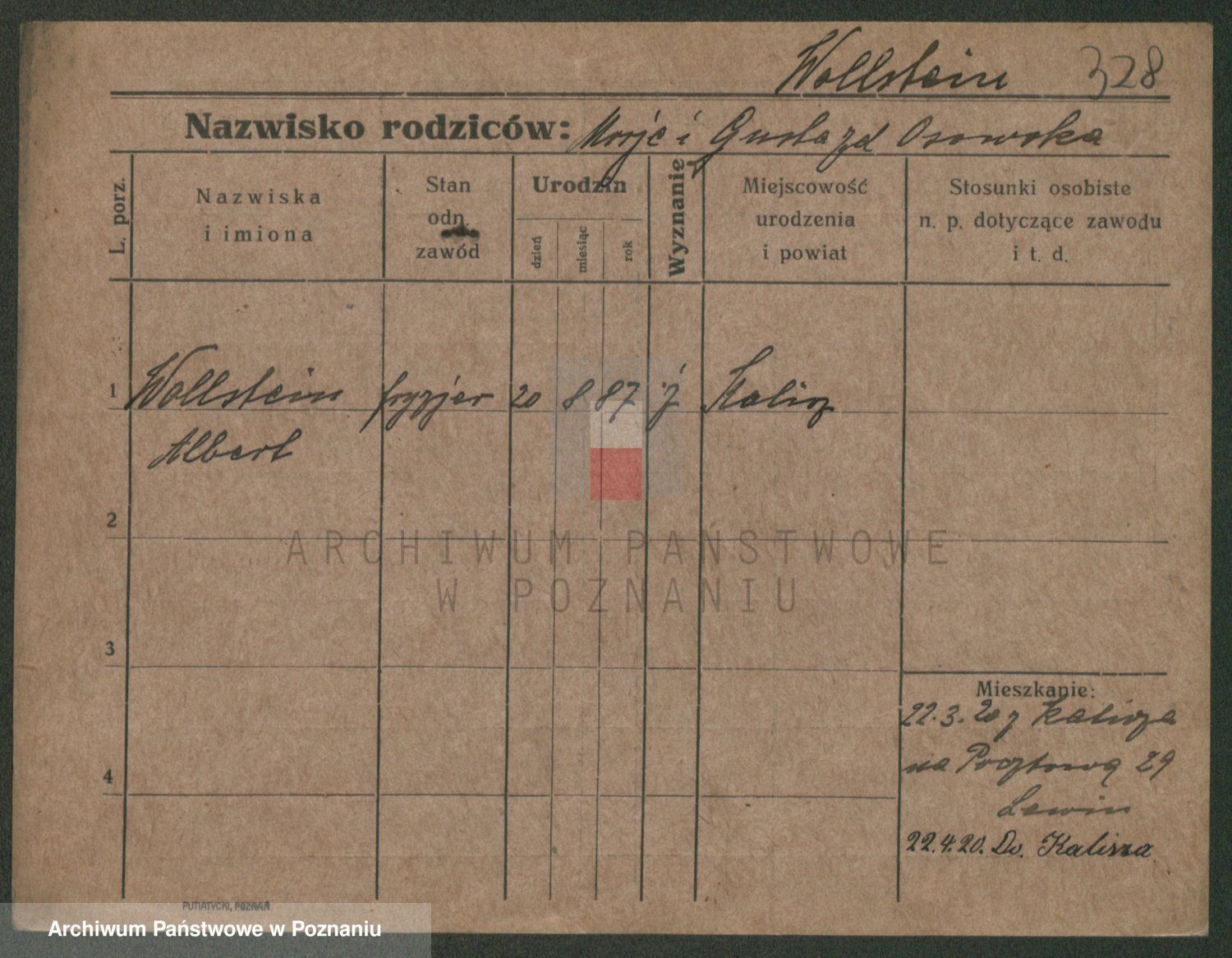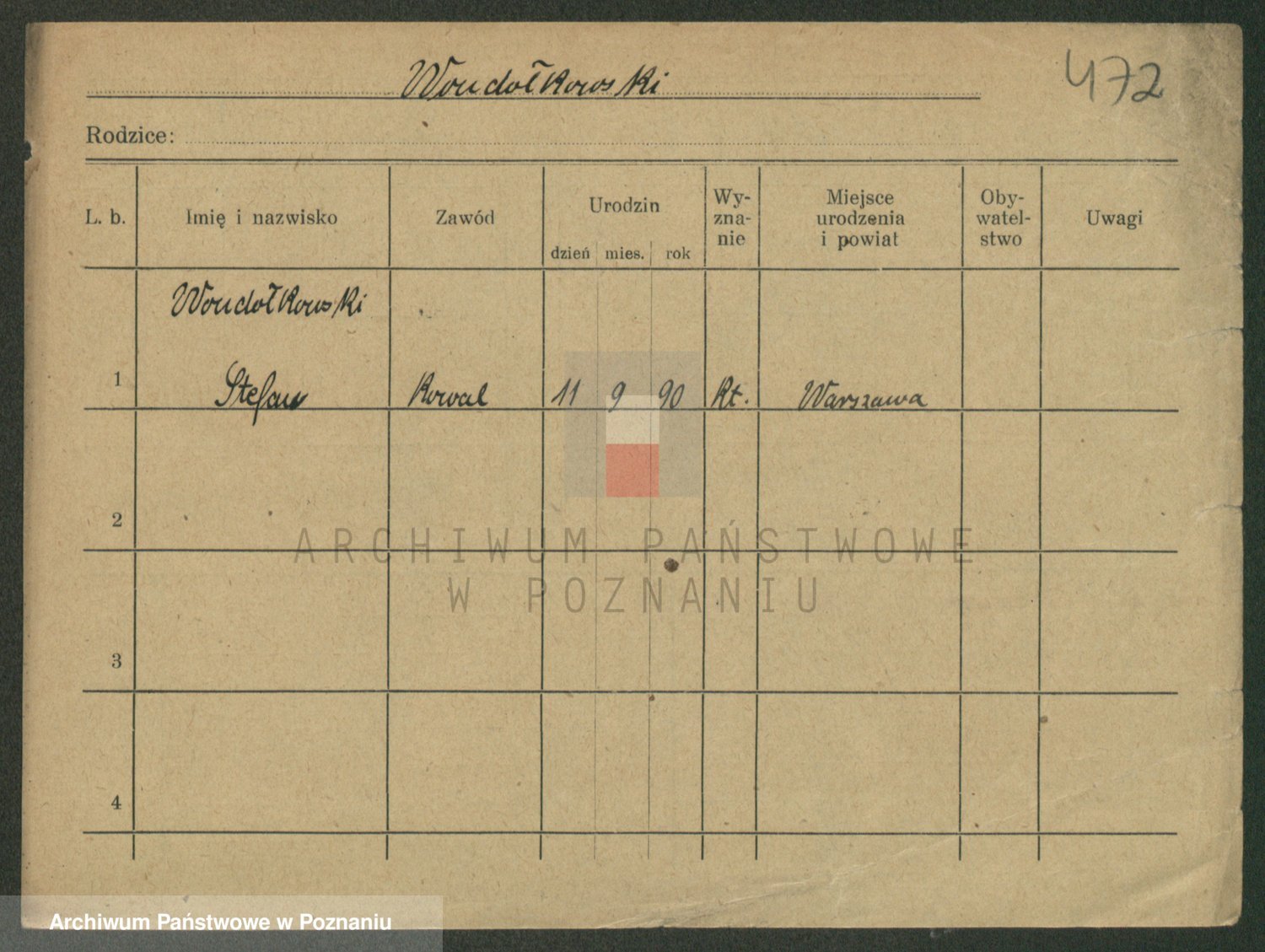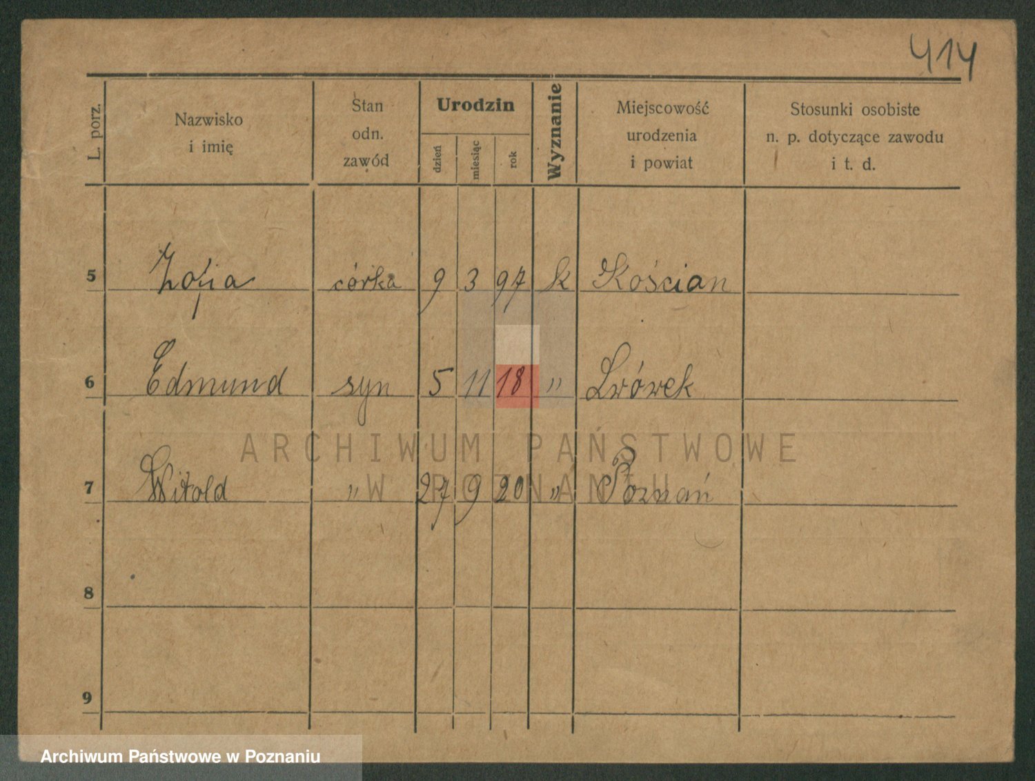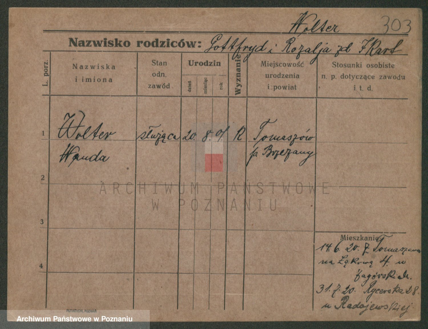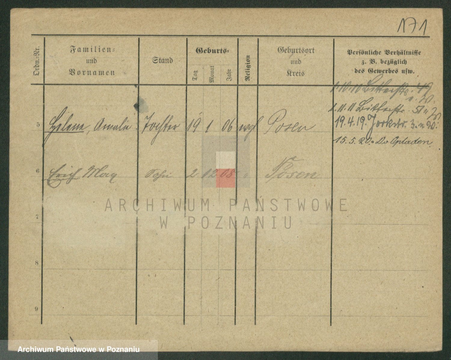 Podgląd karty osobowej dostępny jest po kliknięciu na nazwisko lub ikonkę karty. Można dokonywać powiększenia (ikony na górze) lub przechodzić między kolejnymi skanami (strzałki po bokach).