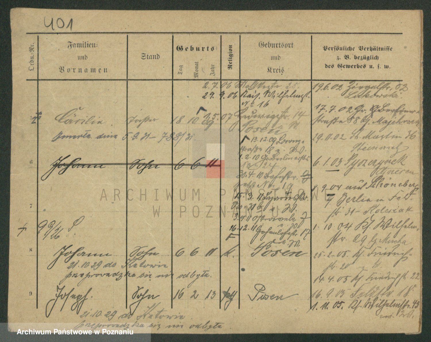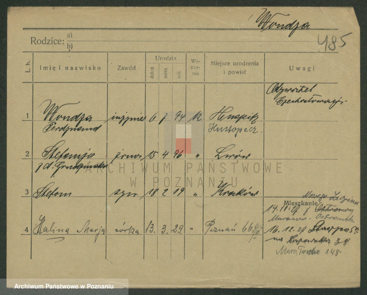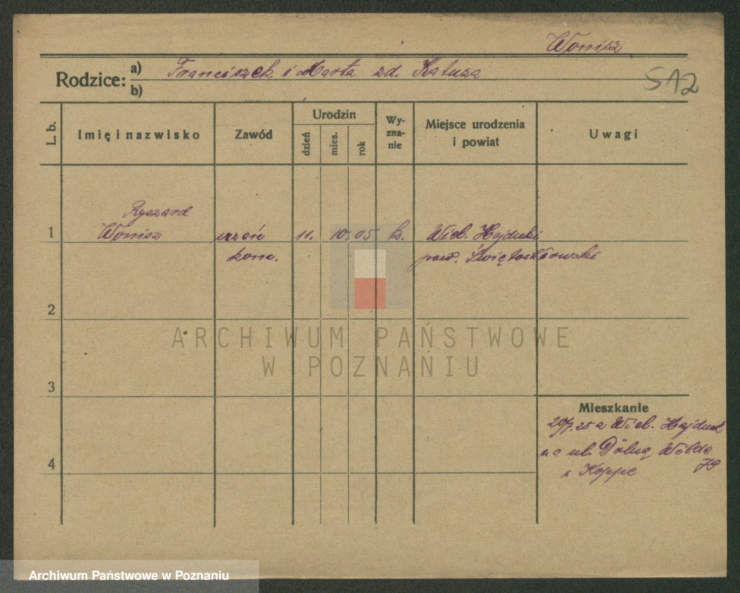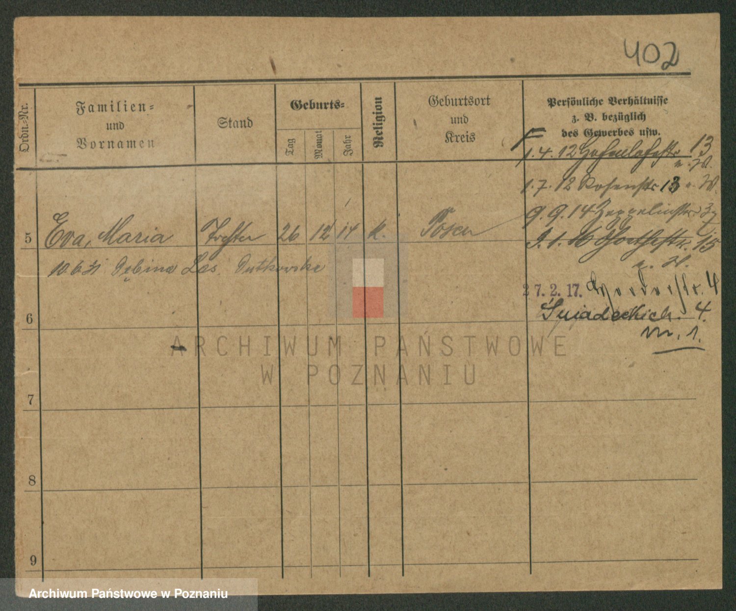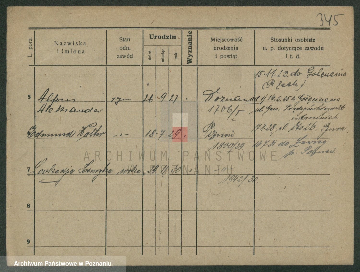 Podgląd karty osobowej dostępny jest po kliknięciu na nazwisko lub ikonkę karty. Można dokonywać powiększenia (ikony na górze) lub przechodzić między kolejnymi skanami (strzałki po bokach).