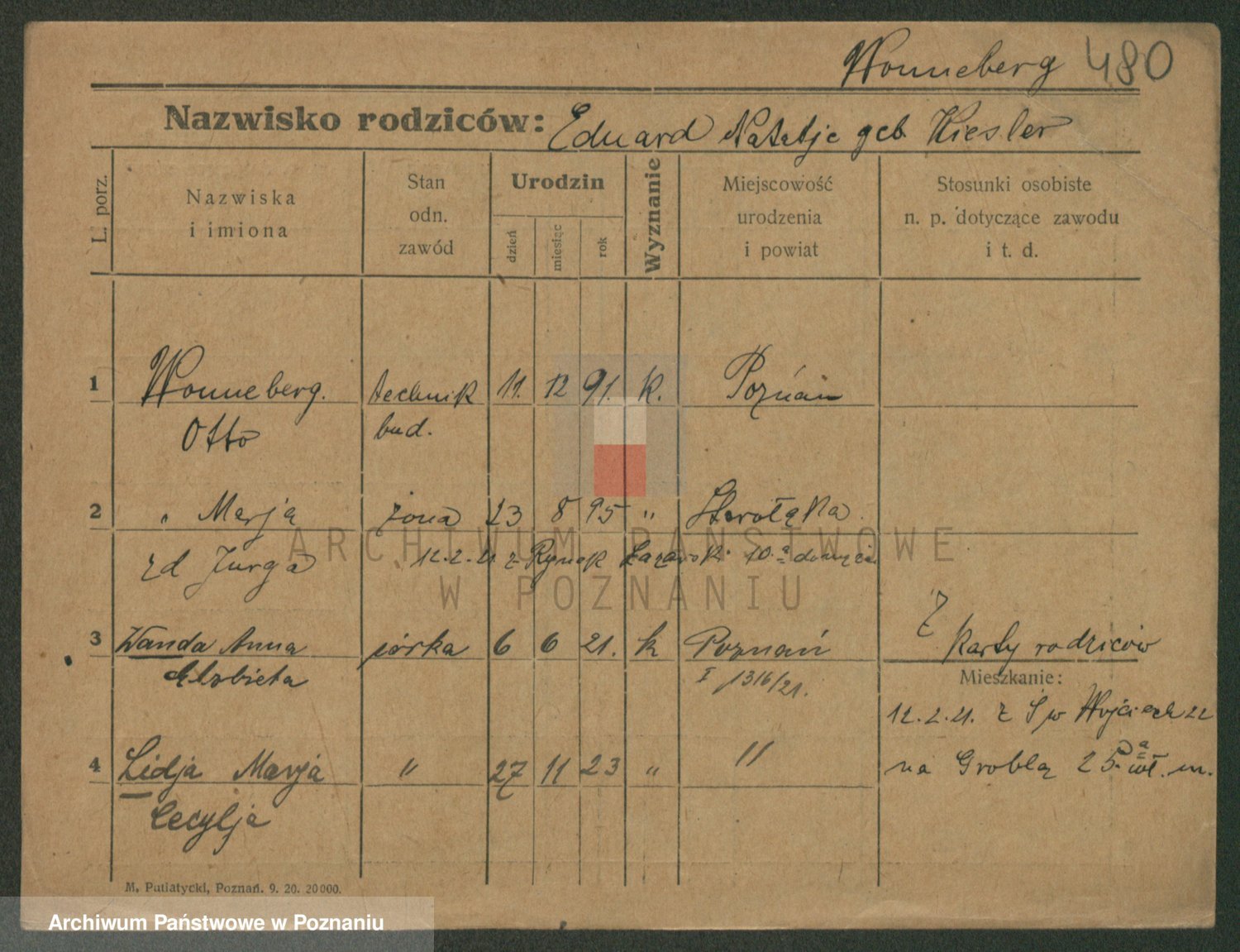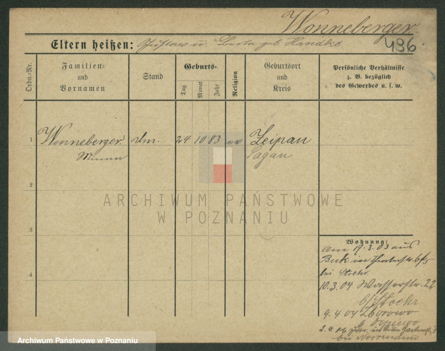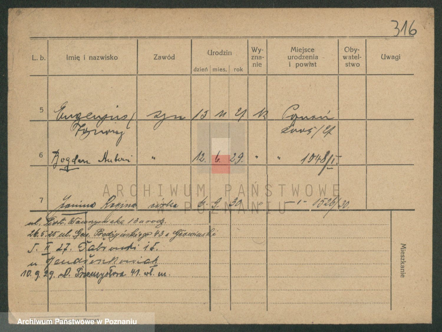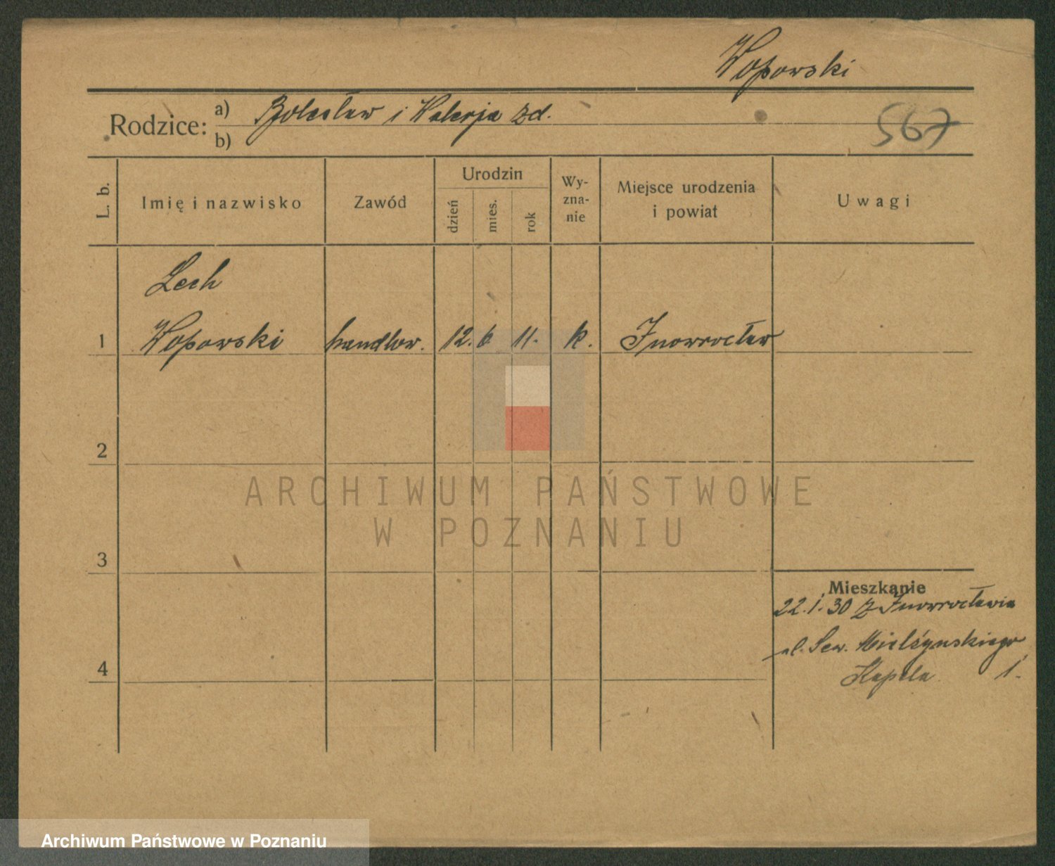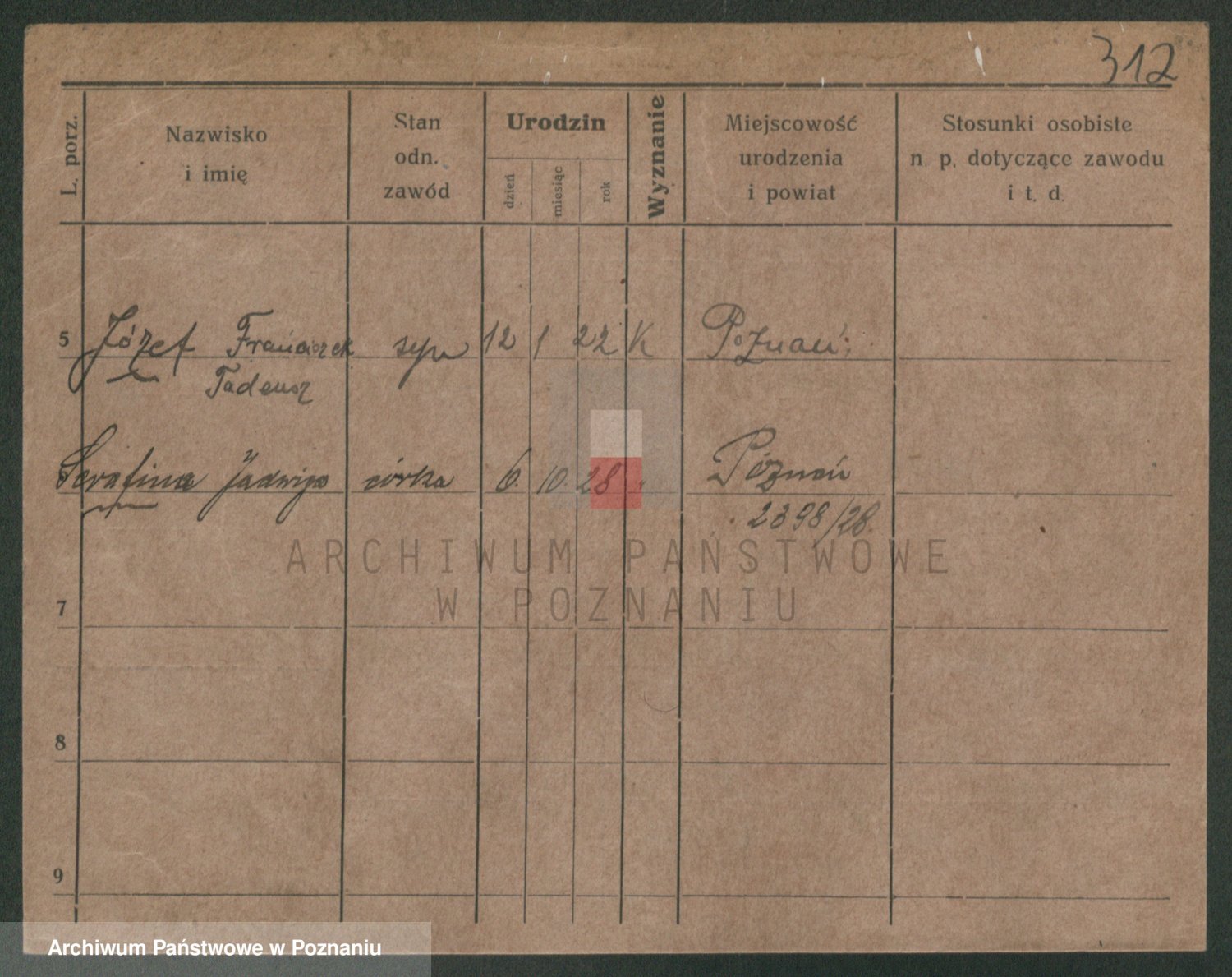 Podgląd karty osobowej dostępny jest po kliknięciu na nazwisko lub ikonkę karty. Można dokonywać powiększenia (ikony na górze) lub przechodzić między kolejnymi skanami (strzałki po bokach).