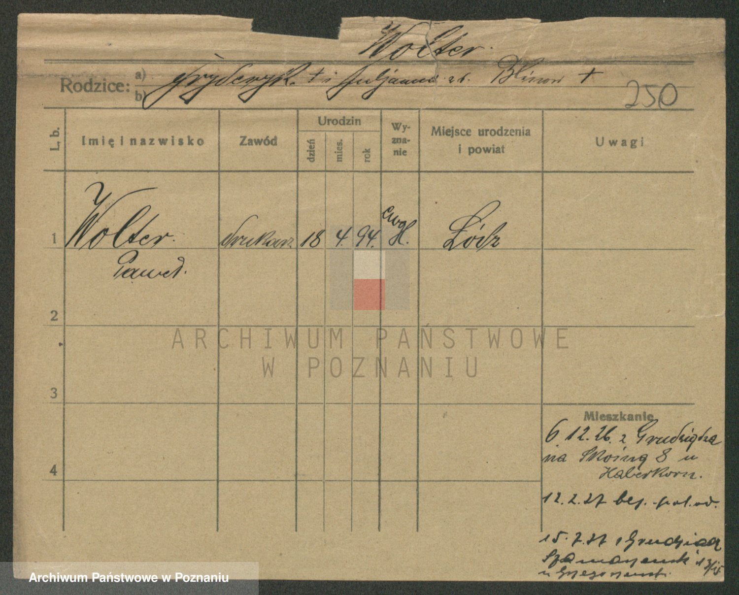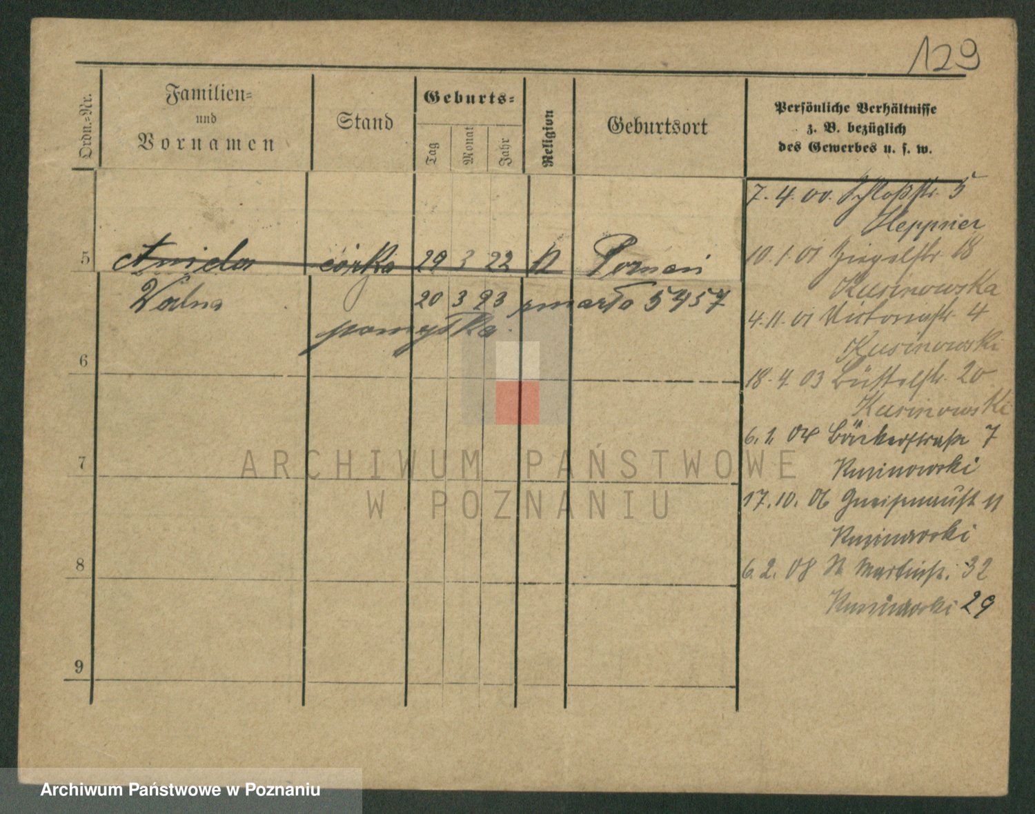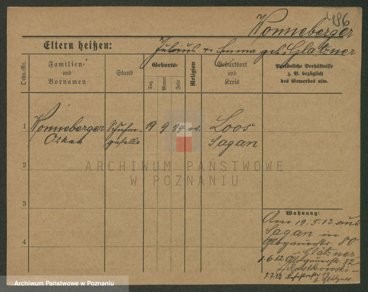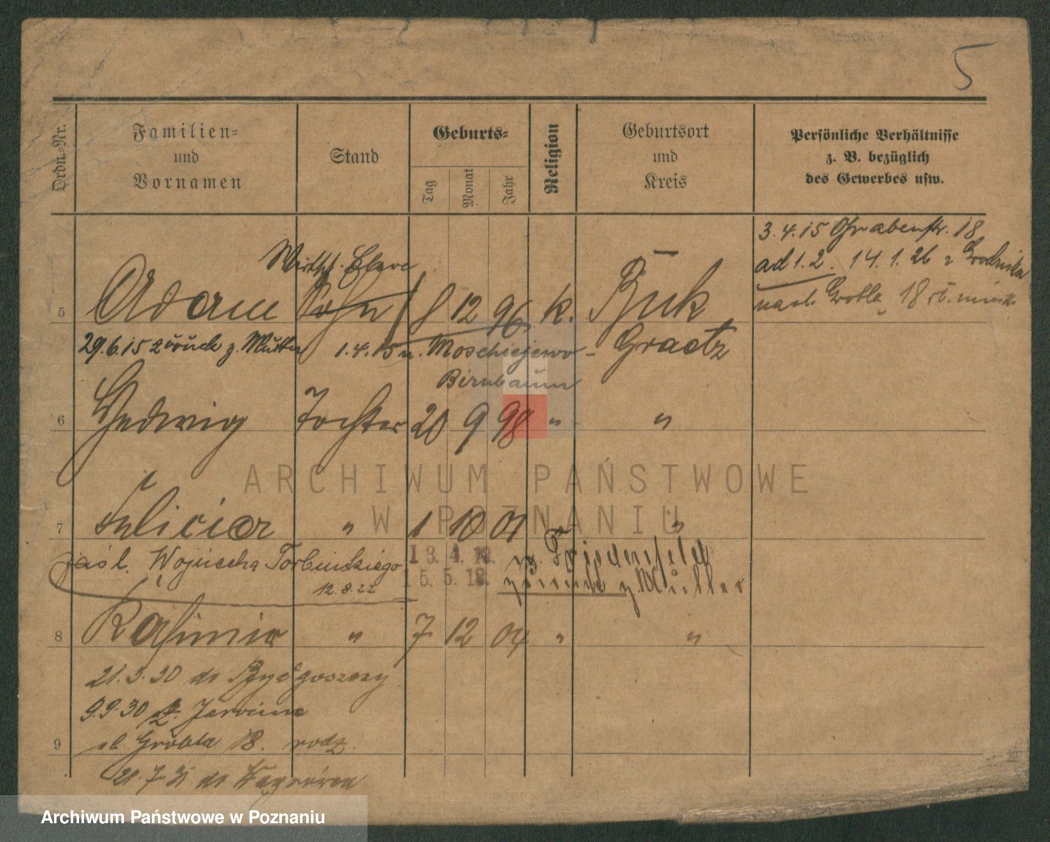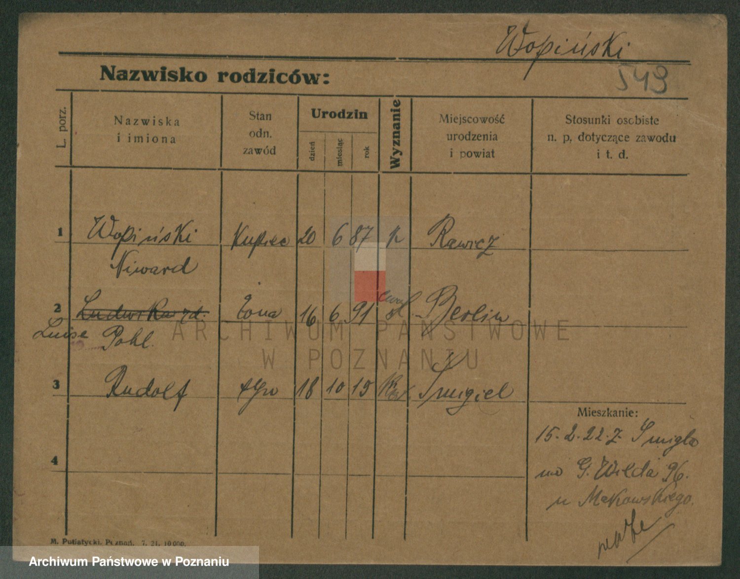 Podgląd karty osobowej dostępny jest po kliknięciu na nazwisko lub ikonkę karty. Można dokonywać powiększenia (ikony na górze) lub przechodzić między kolejnymi skanami (strzałki po bokach).