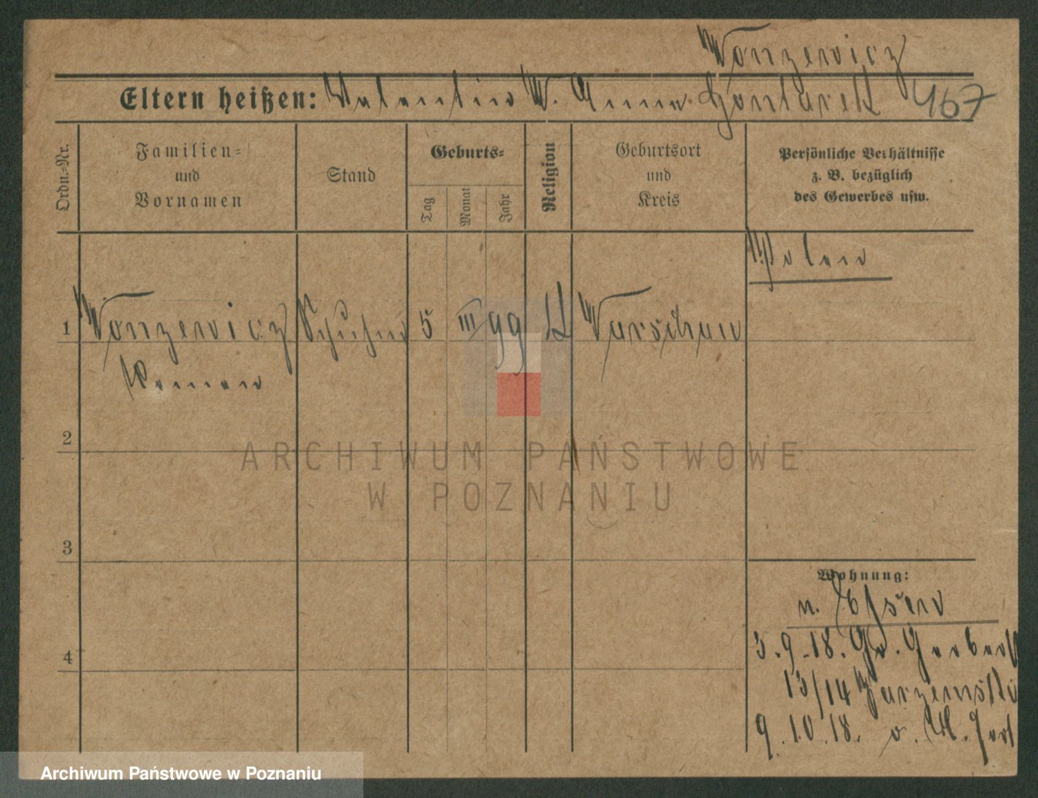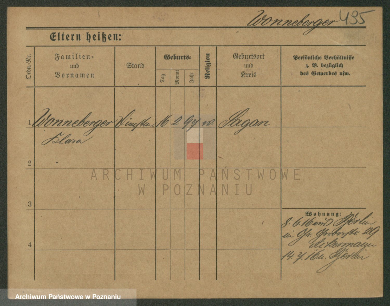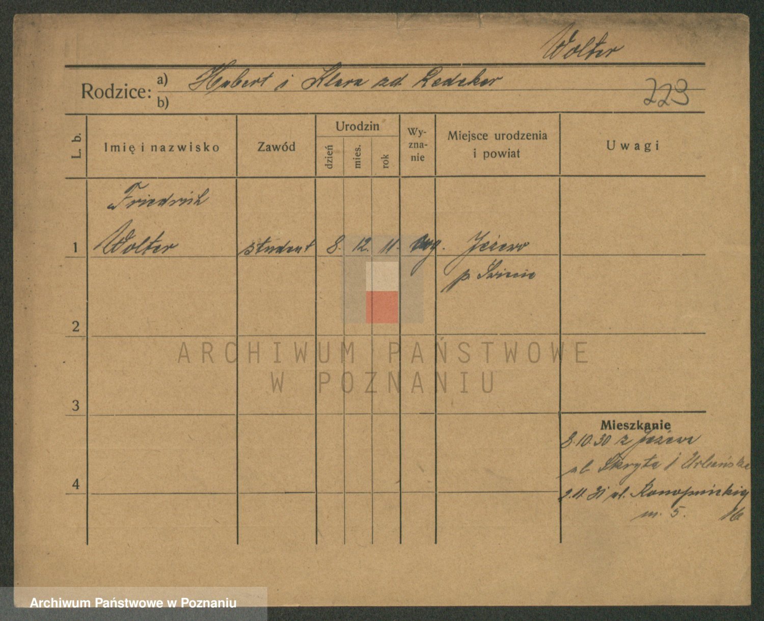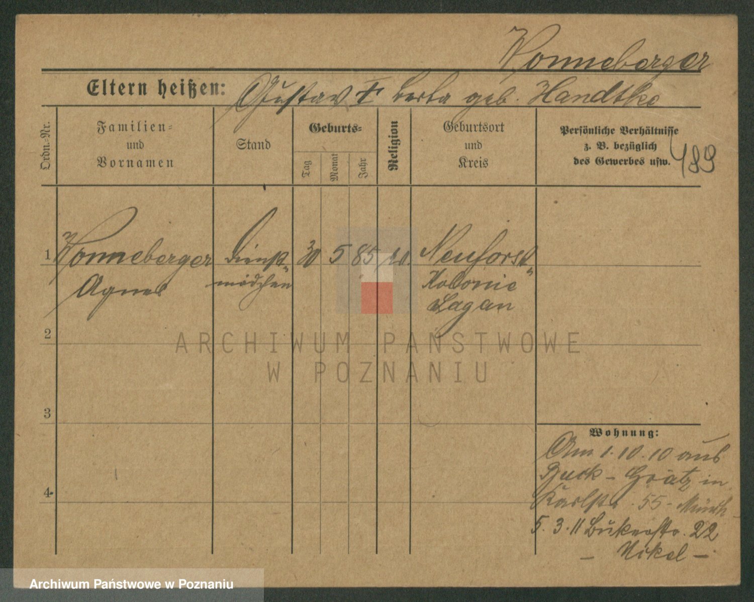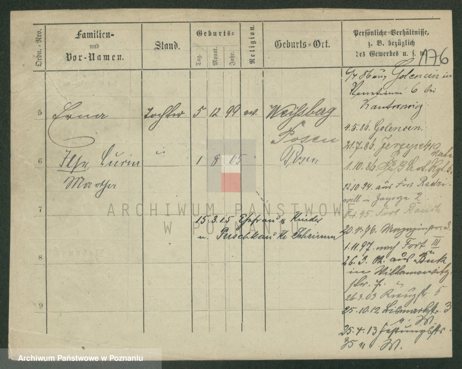 Podgląd karty osobowej dostępny jest po kliknięciu na nazwisko lub ikonkę karty. Można dokonywać powiększenia (ikony na górze) lub przechodzić między kolejnymi skanami (strzałki po bokach).