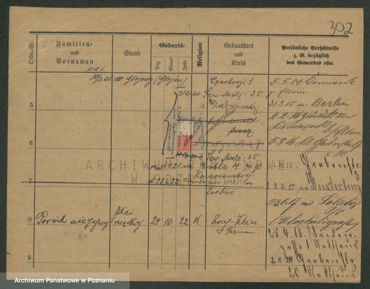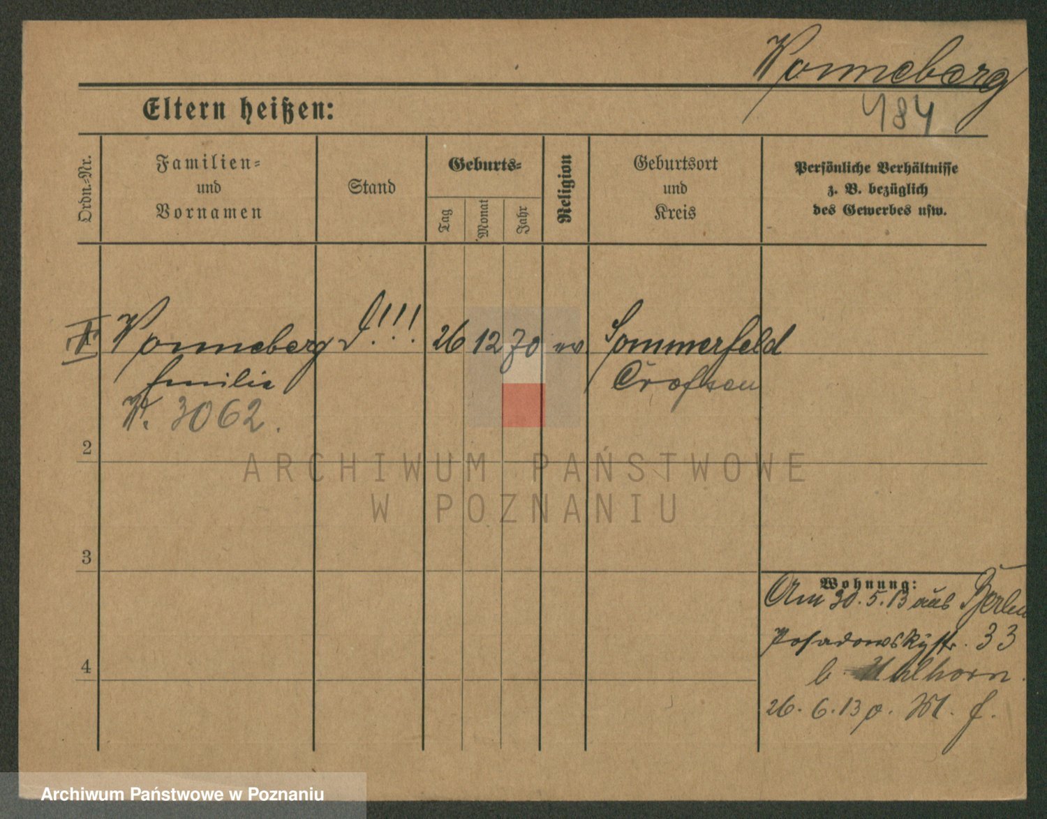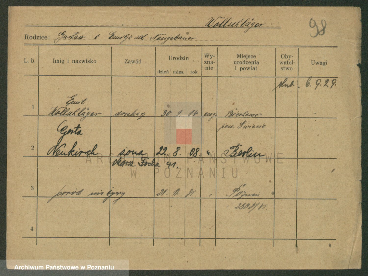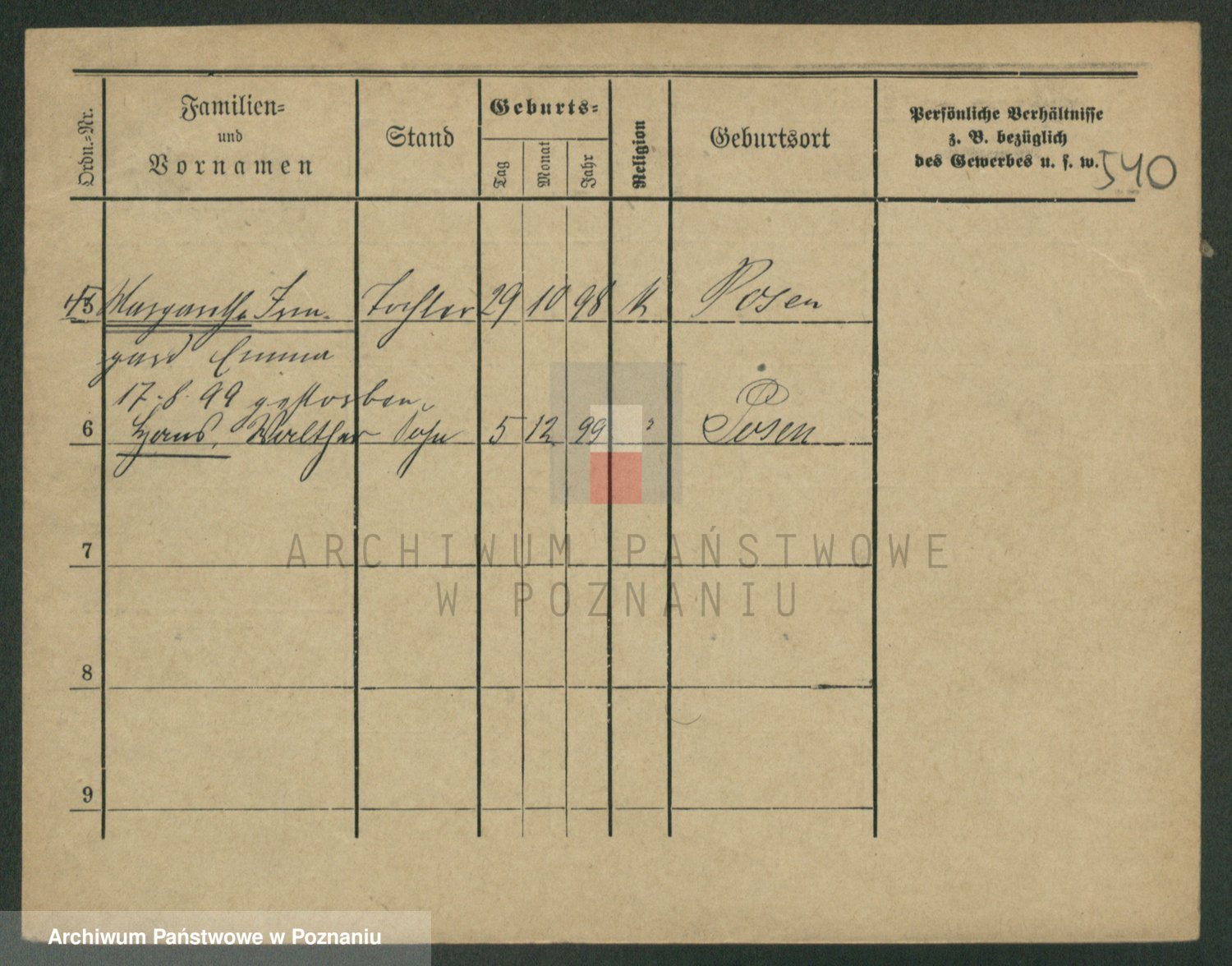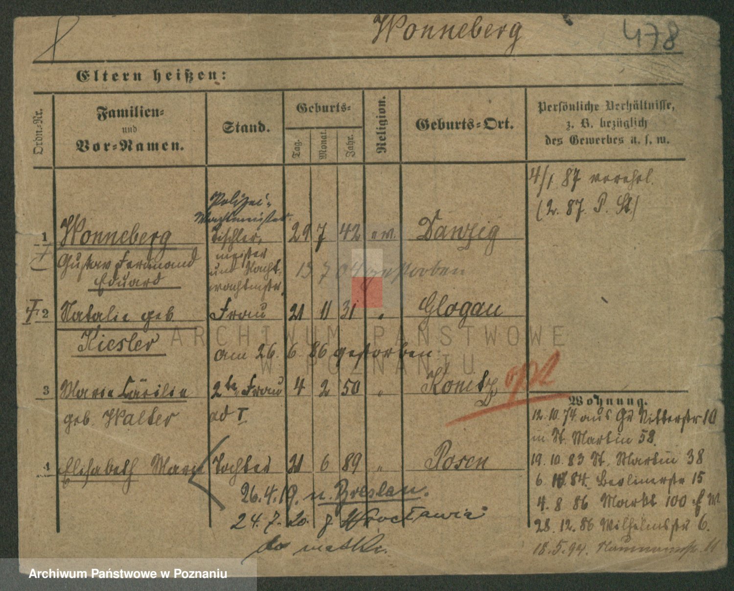Podgląd karty osobowej dostępny jest po kliknięciu na nazwisko lub ikonkę karty. Można dokonywać powiększenia (ikony na górze) lub przechodzić między kolejnymi skanami (strzałki po bokach).