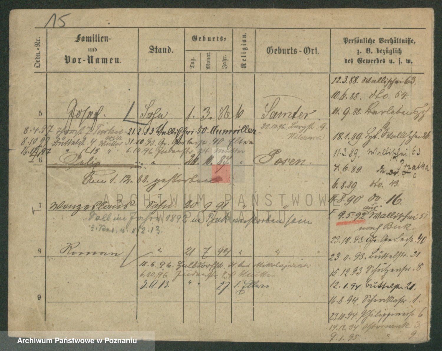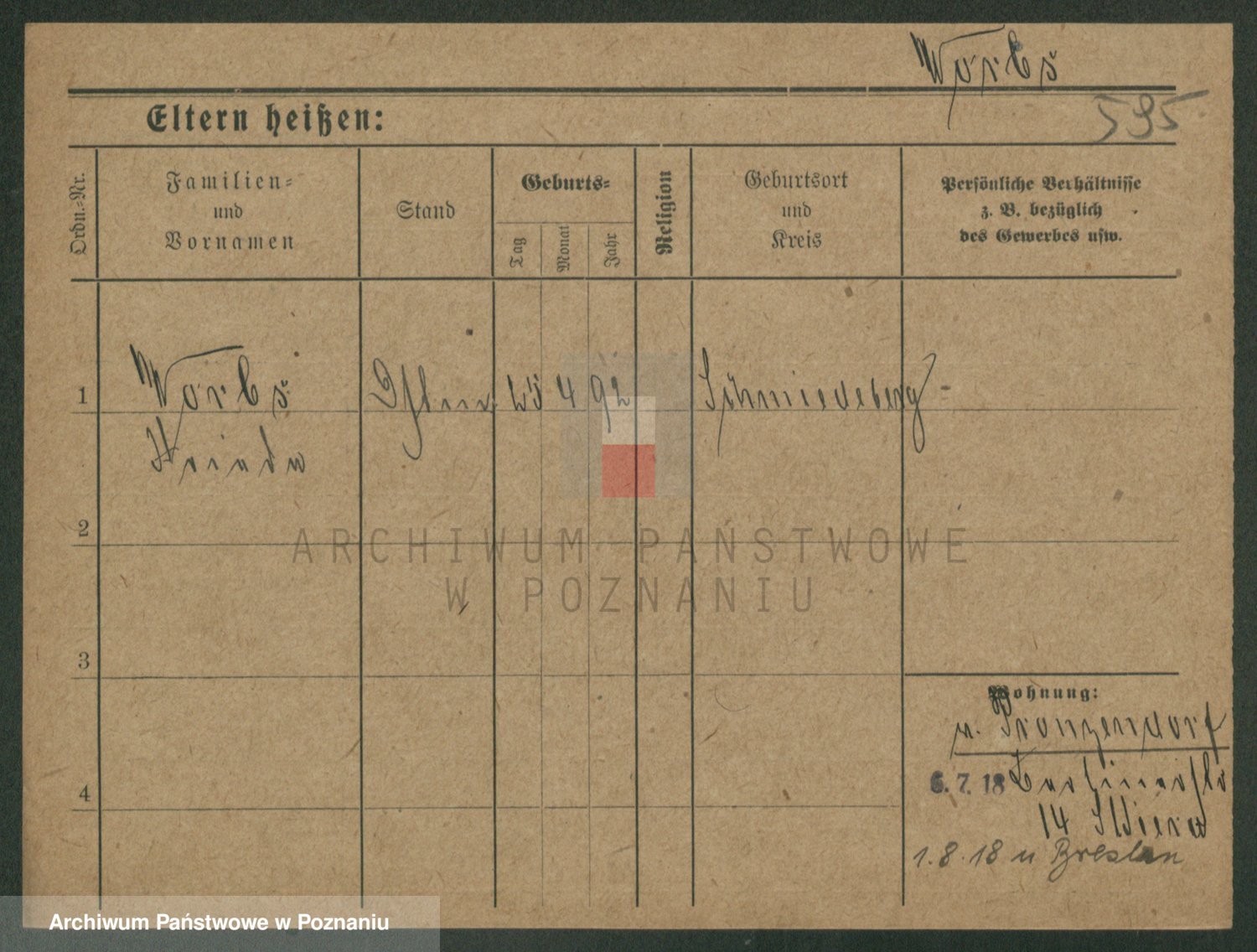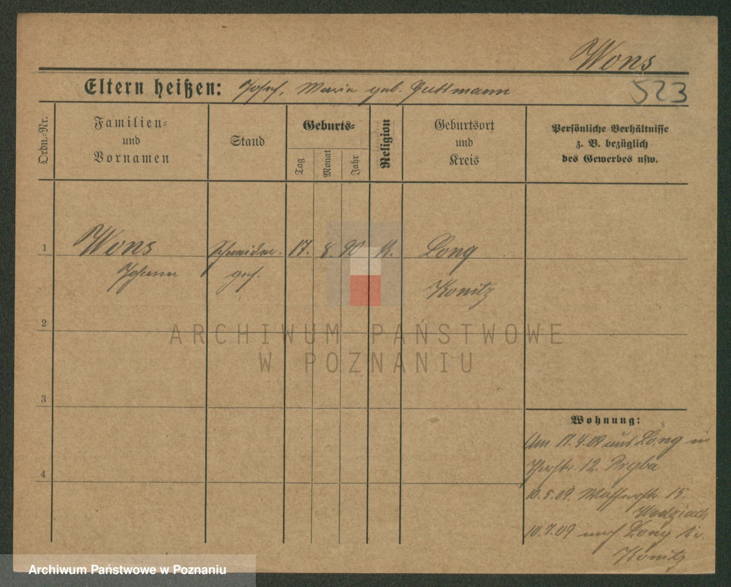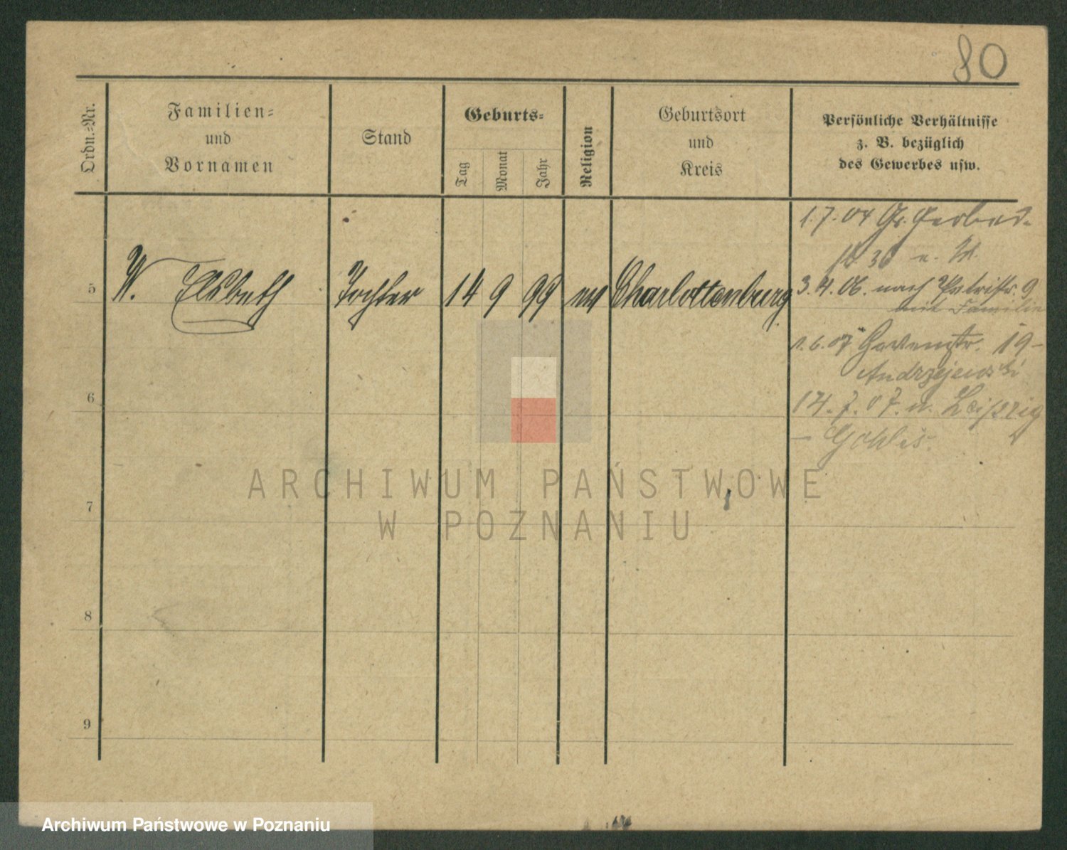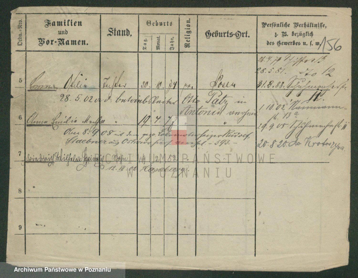 Podgląd karty osobowej dostępny jest po kliknięciu na nazwisko lub ikonkę karty. Można dokonywać powiększenia (ikony na górze) lub przechodzić między kolejnymi skanami (strzałki po bokach).