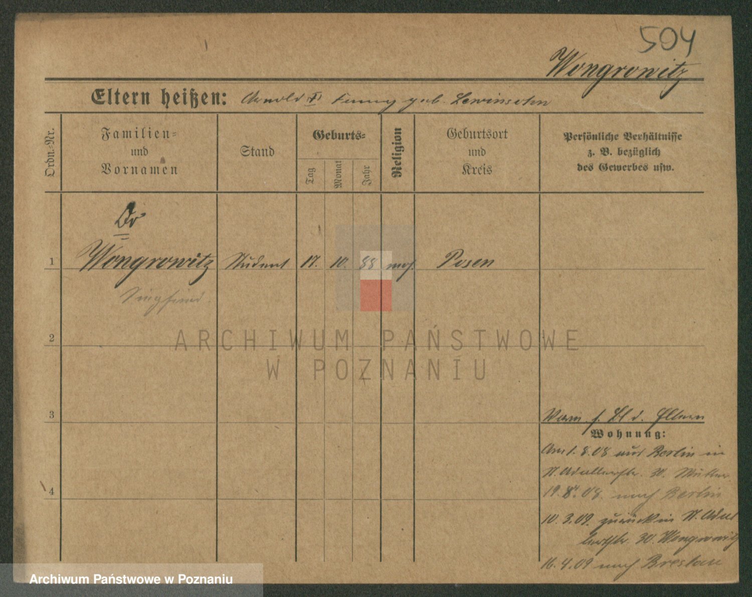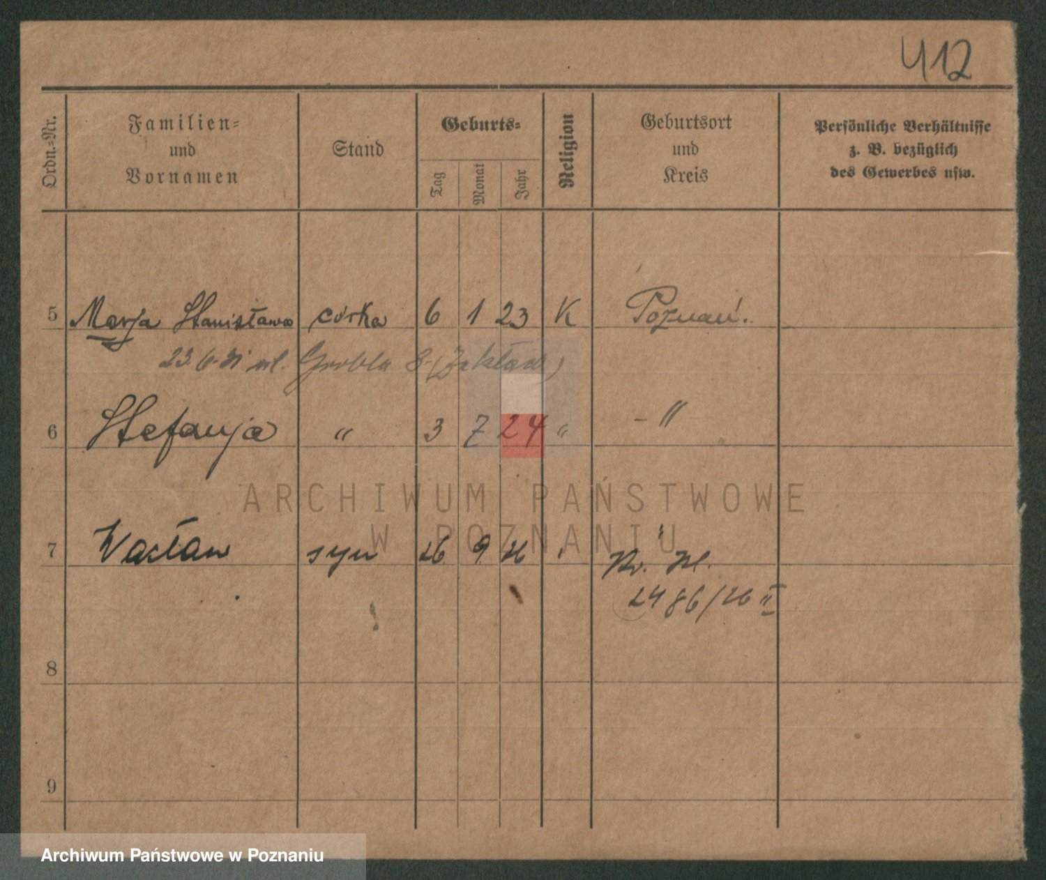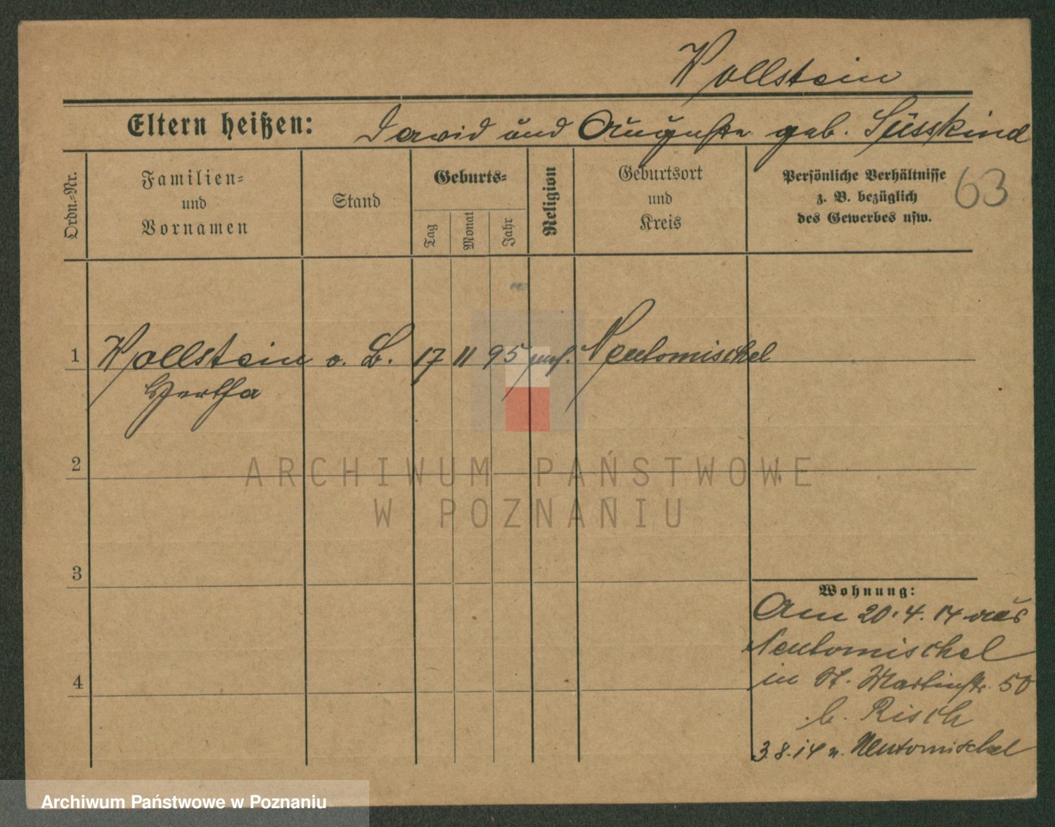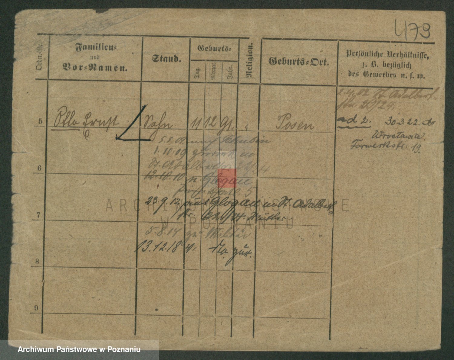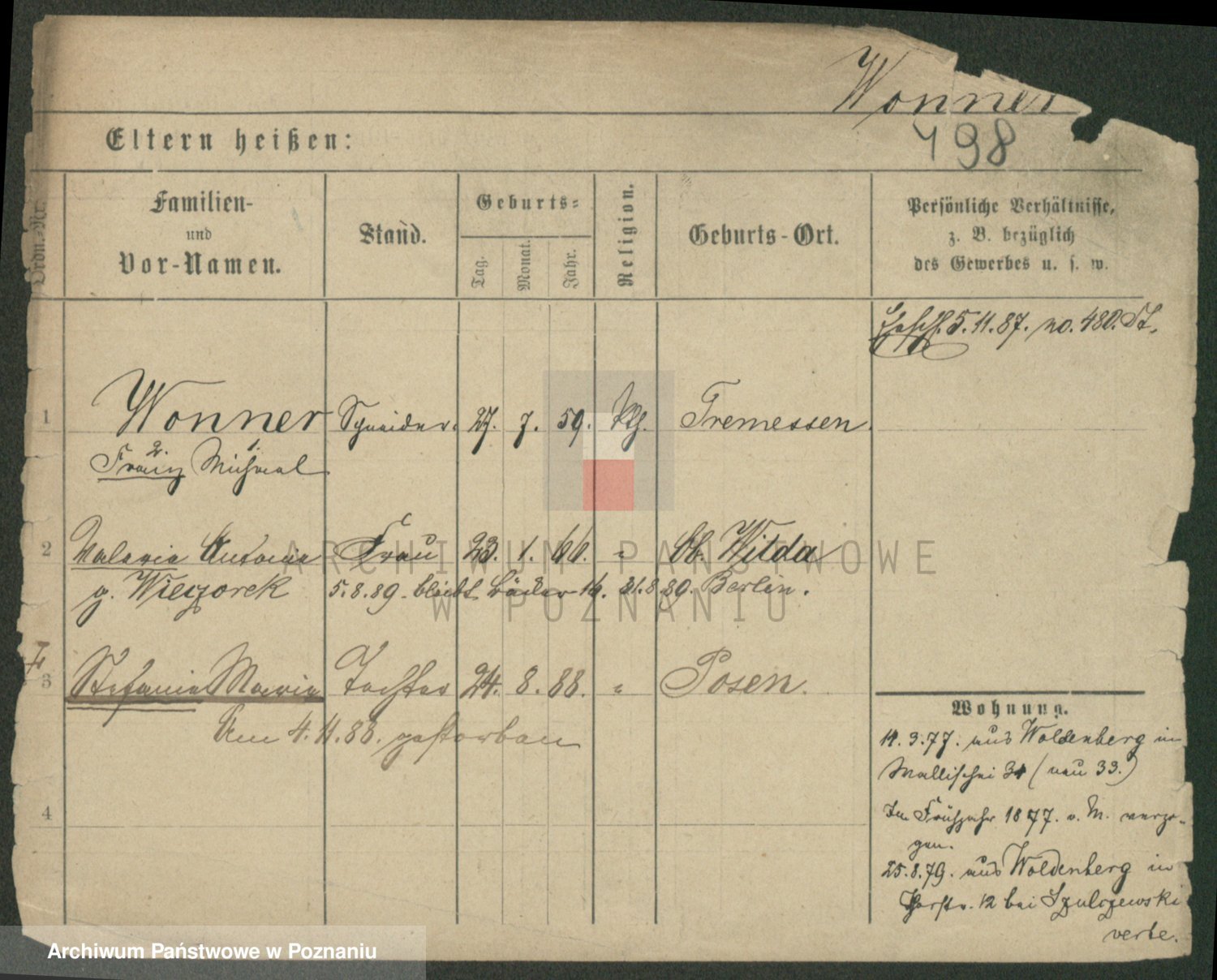 Podgląd karty osobowej dostępny jest po kliknięciu na nazwisko lub ikonkę karty. Można dokonywać powiększenia (ikony na górze) lub przechodzić między kolejnymi skanami (strzałki po bokach).