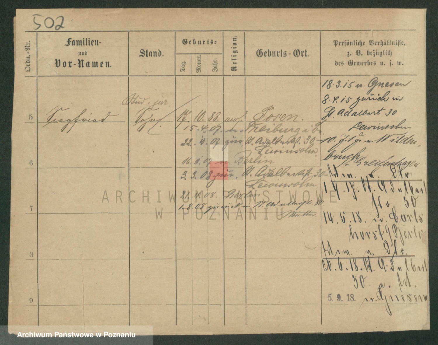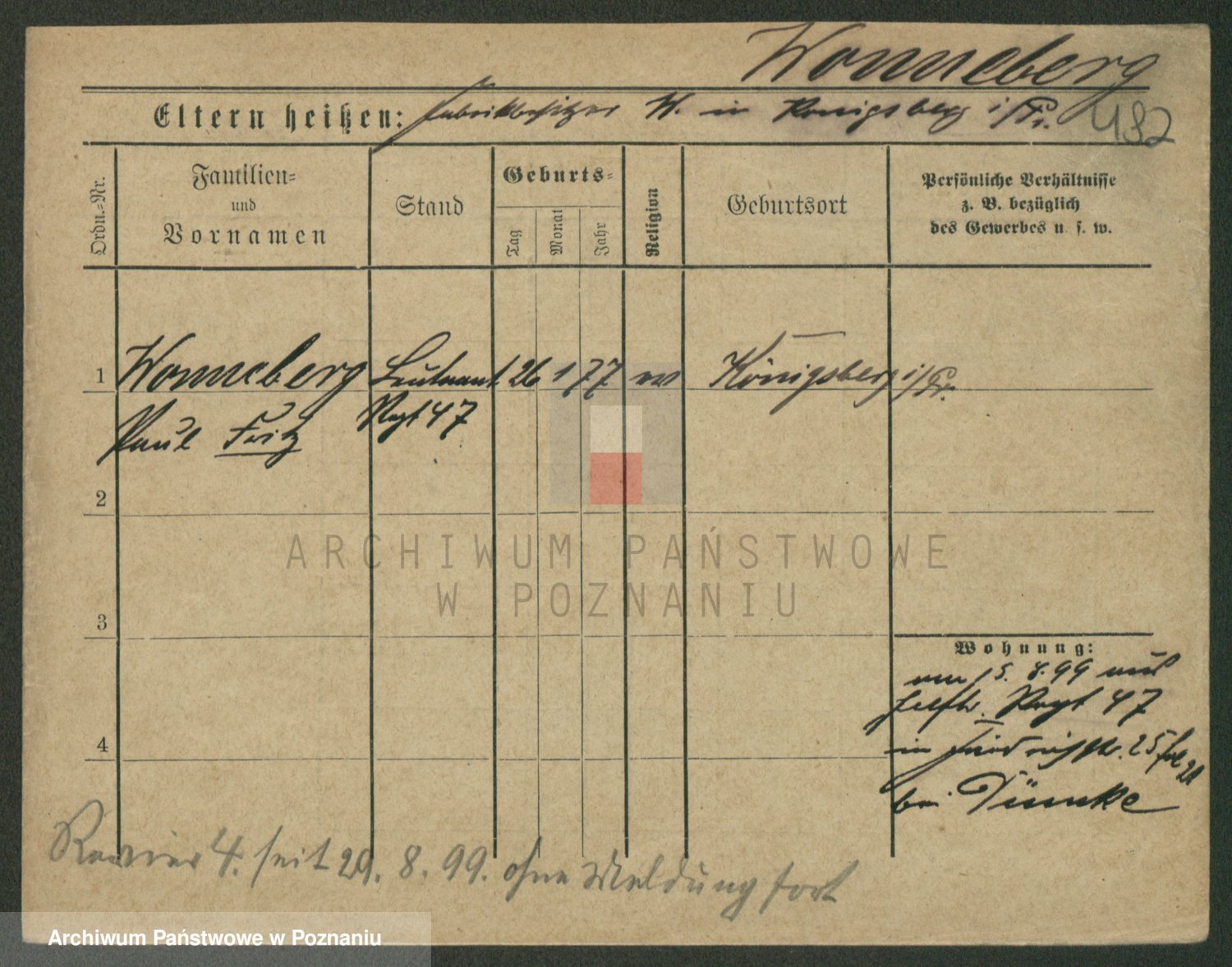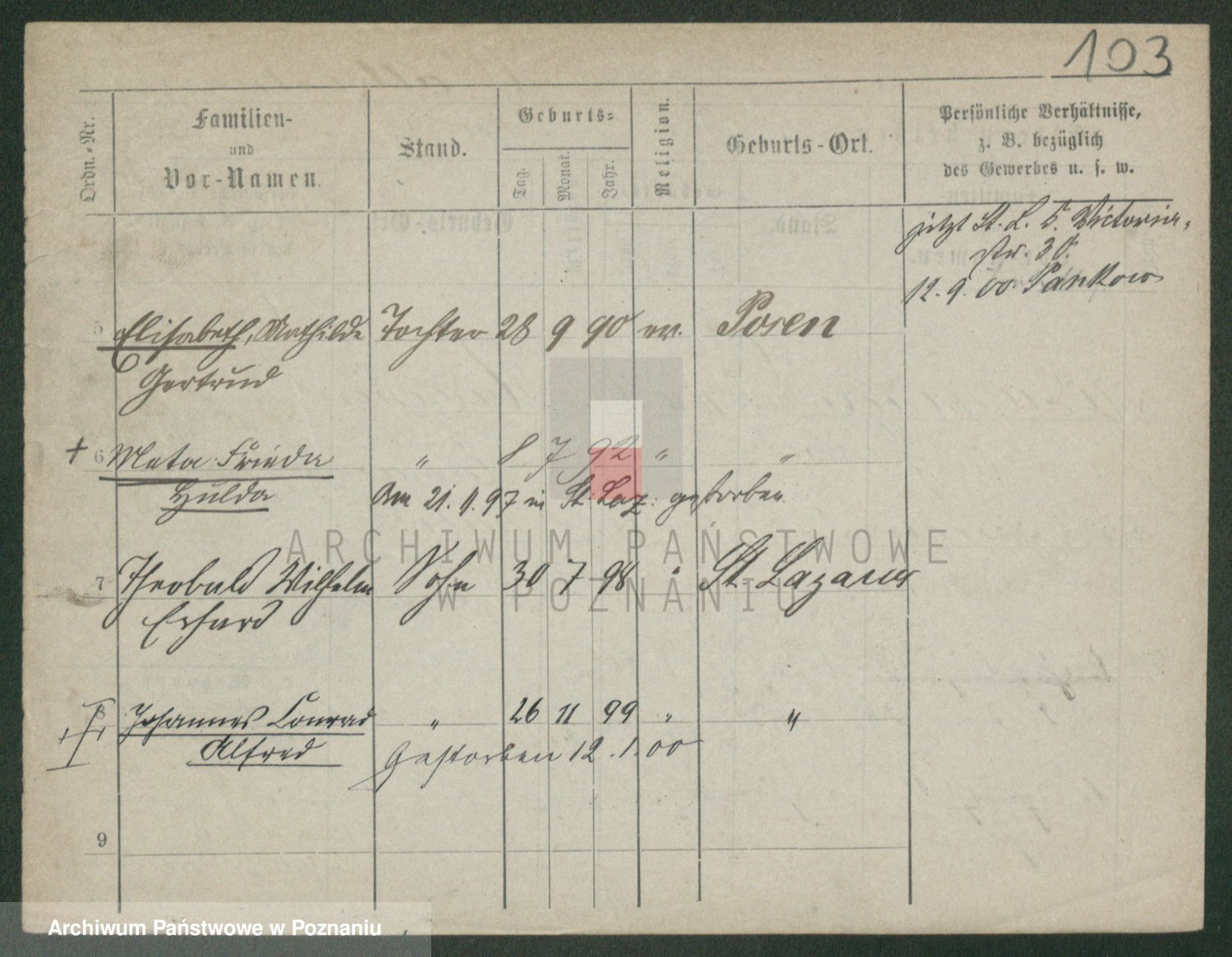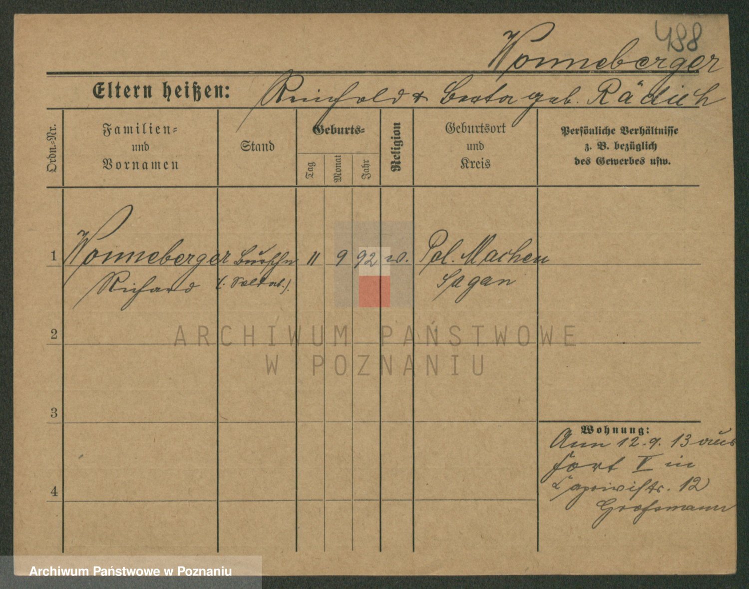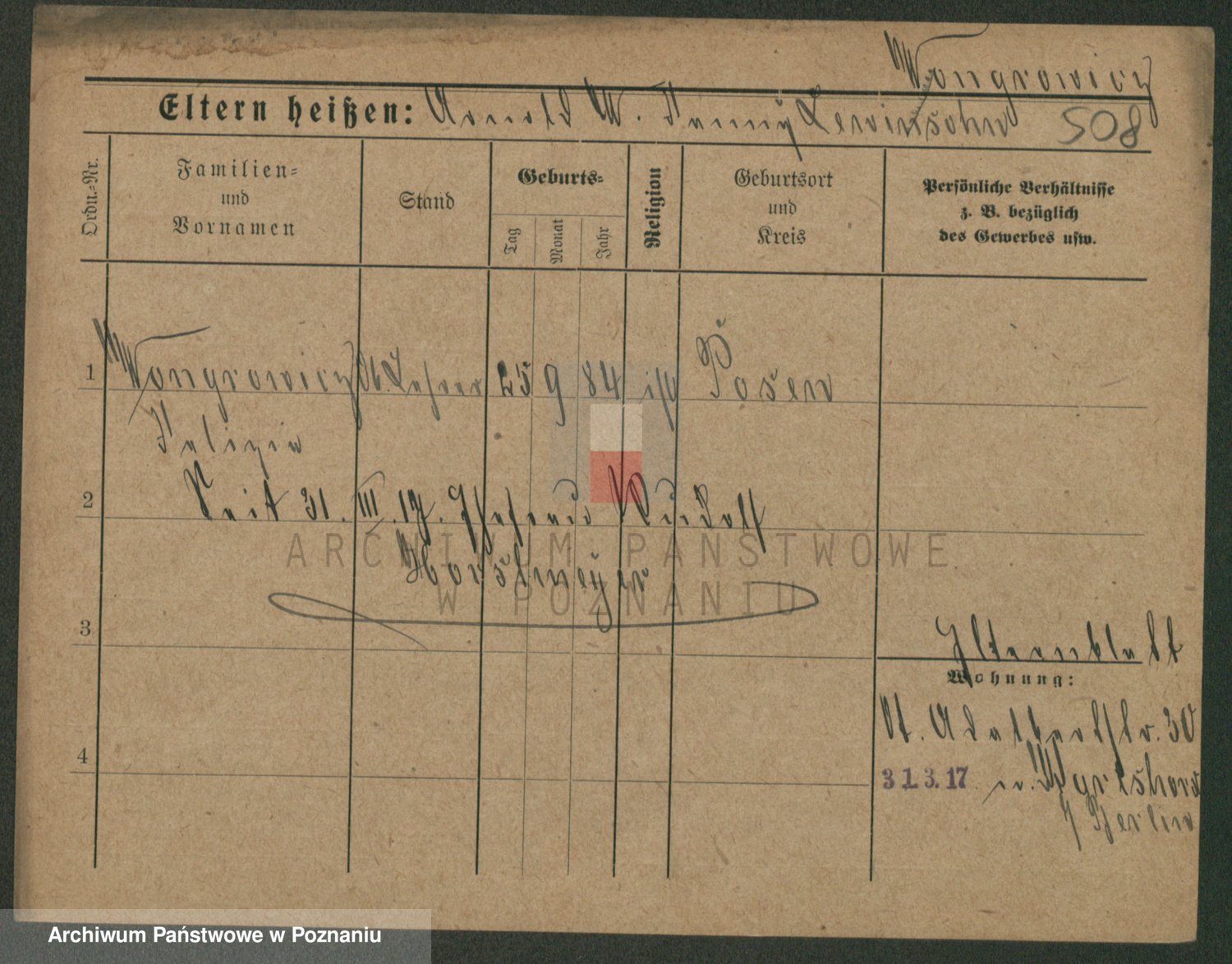 Podgląd karty osobowej dostępny jest po kliknięciu na nazwisko lub ikonkę karty. Można dokonywać powiększenia (ikony na górze) lub przechodzić między kolejnymi skanami (strzałki po bokach).