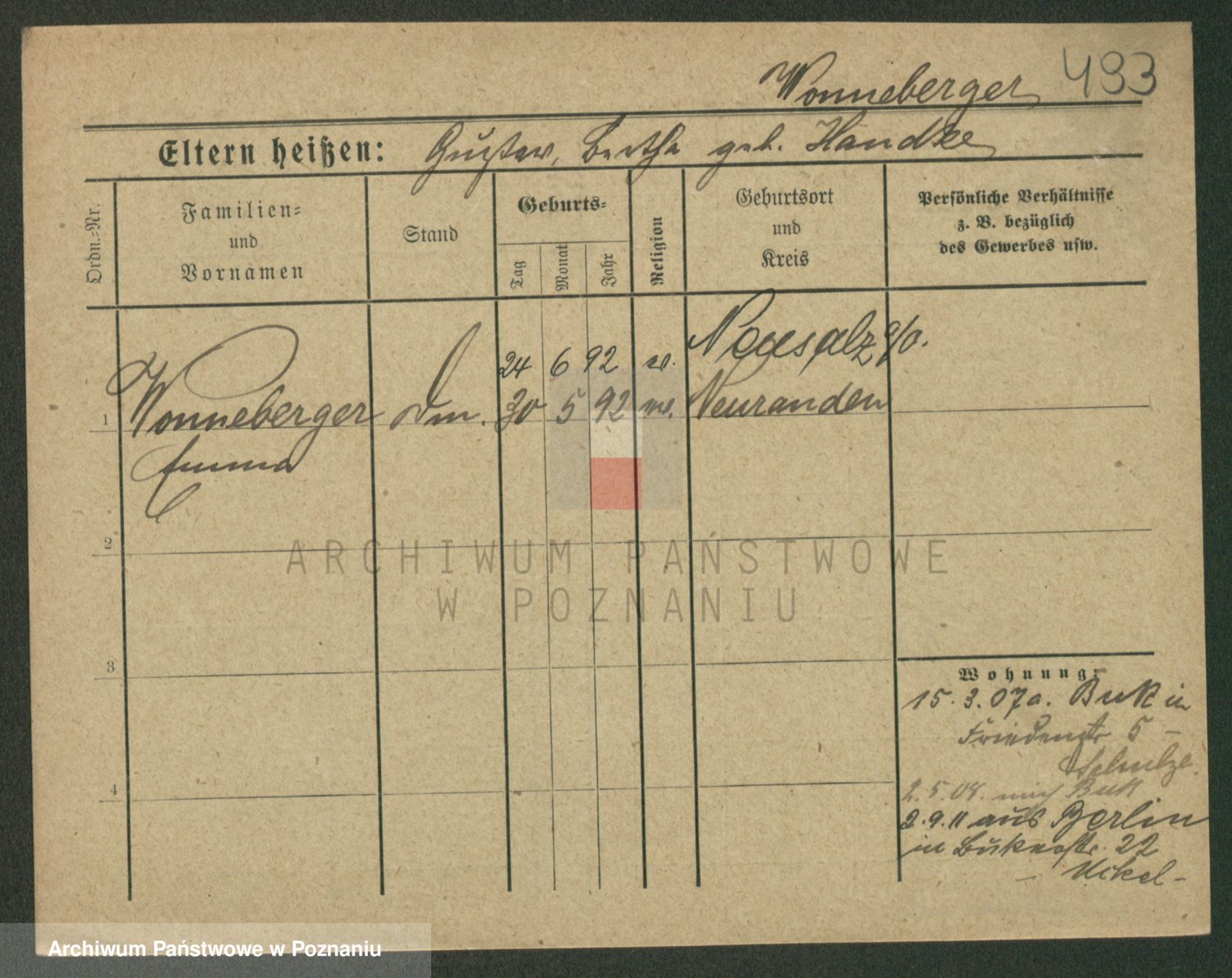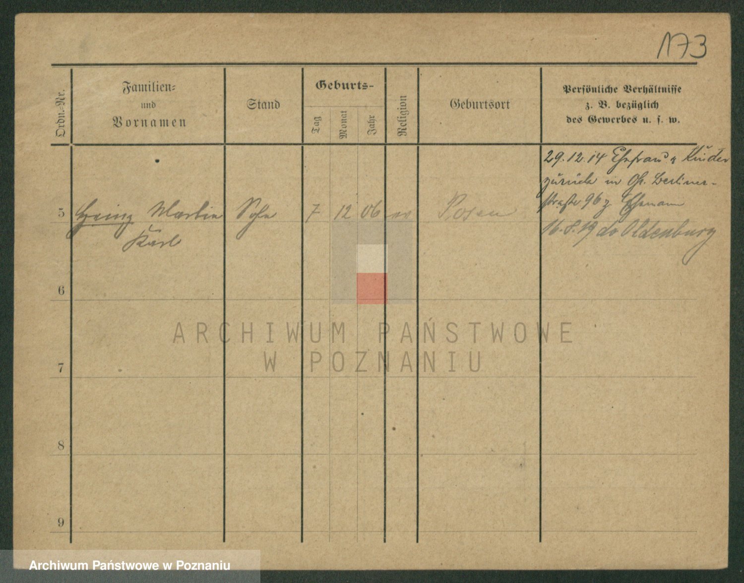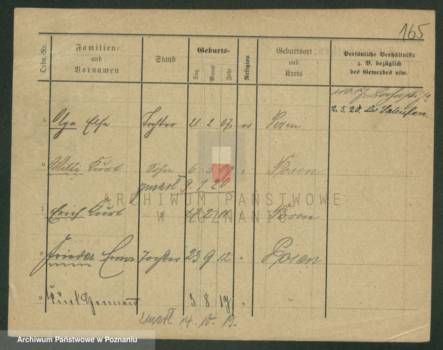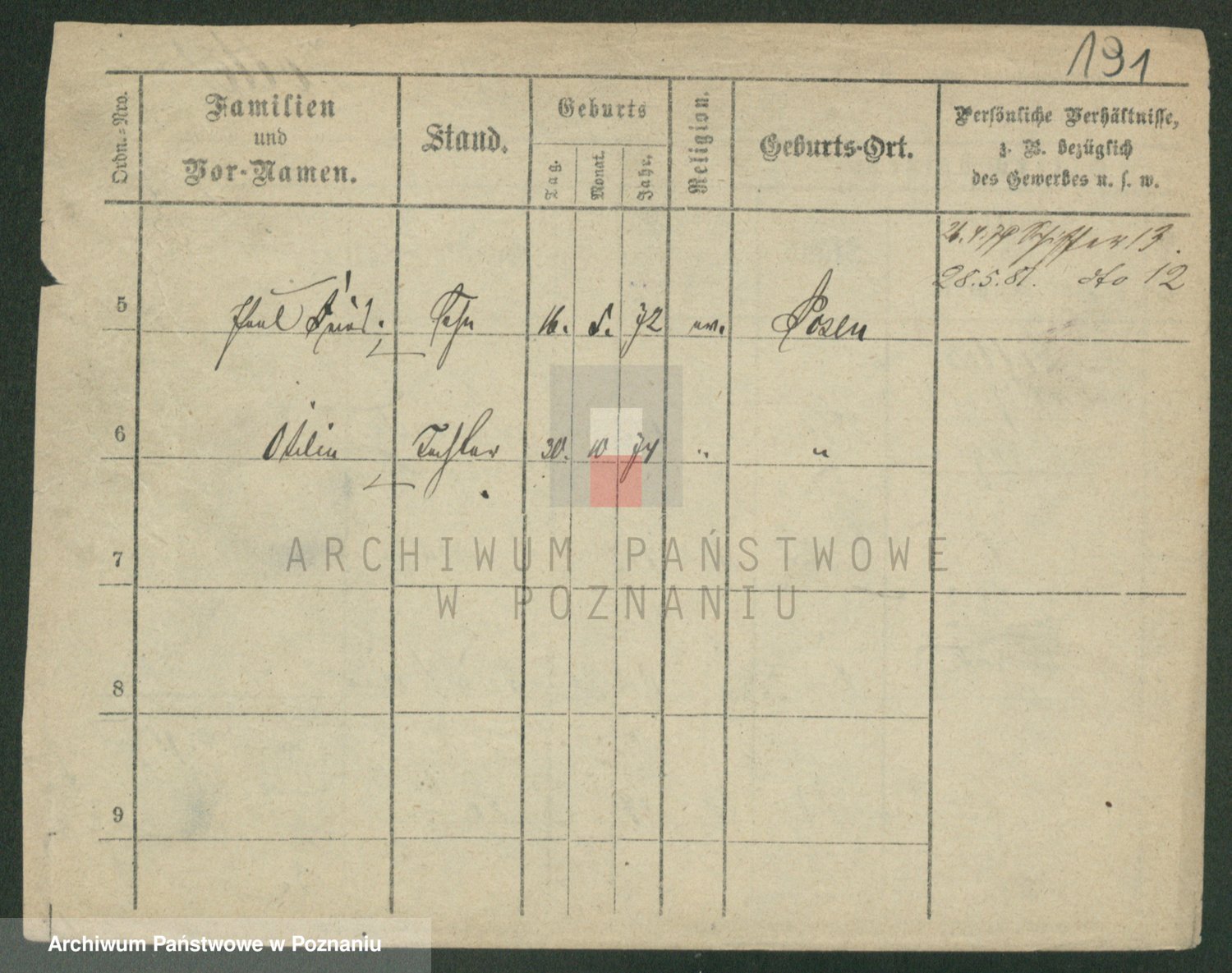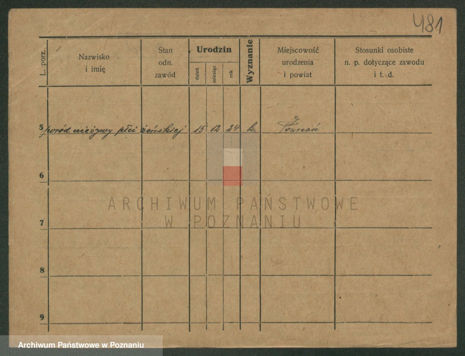 Podgląd karty osobowej dostępny jest po kliknięciu na nazwisko lub ikonkę karty. Można dokonywać powiększenia (ikony na górze) lub przechodzić między kolejnymi skanami (strzałki po bokach).