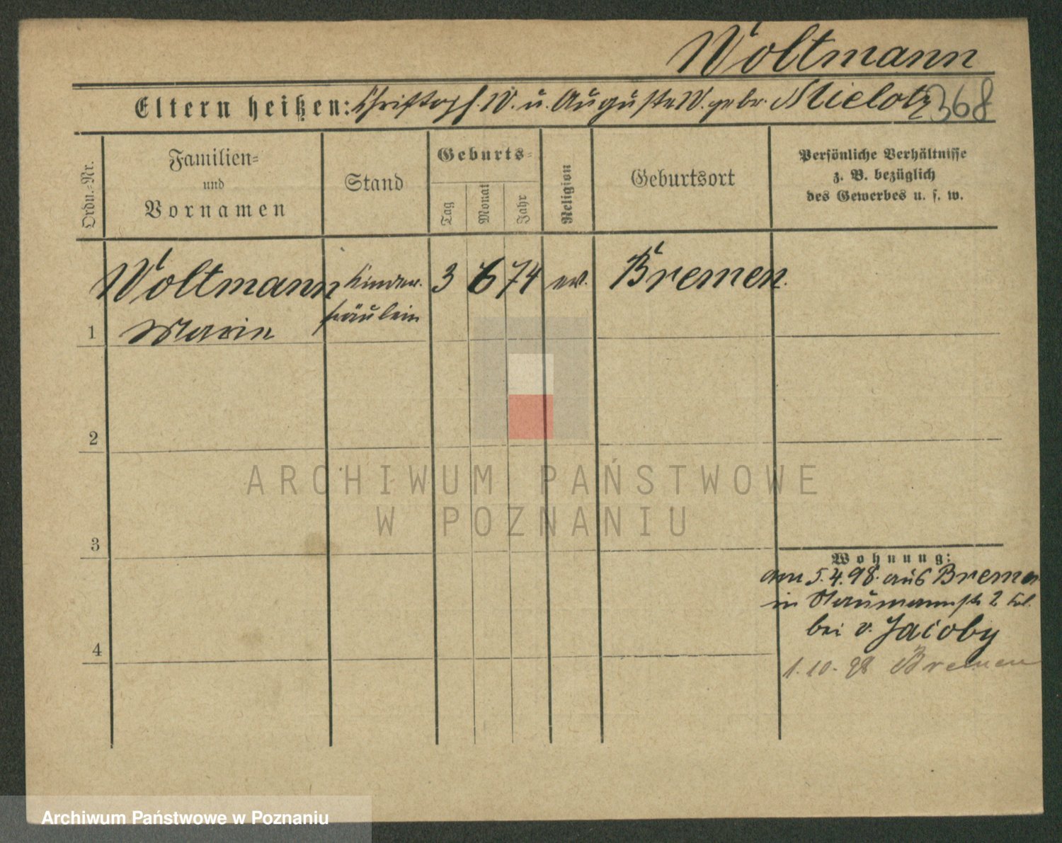 Wolwes z d. Kranz, Clara Adolfine