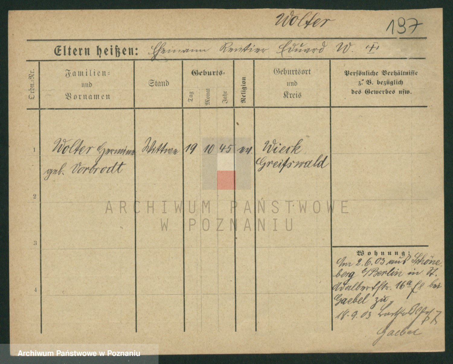 Woltynski z d. Rogowski, Marie