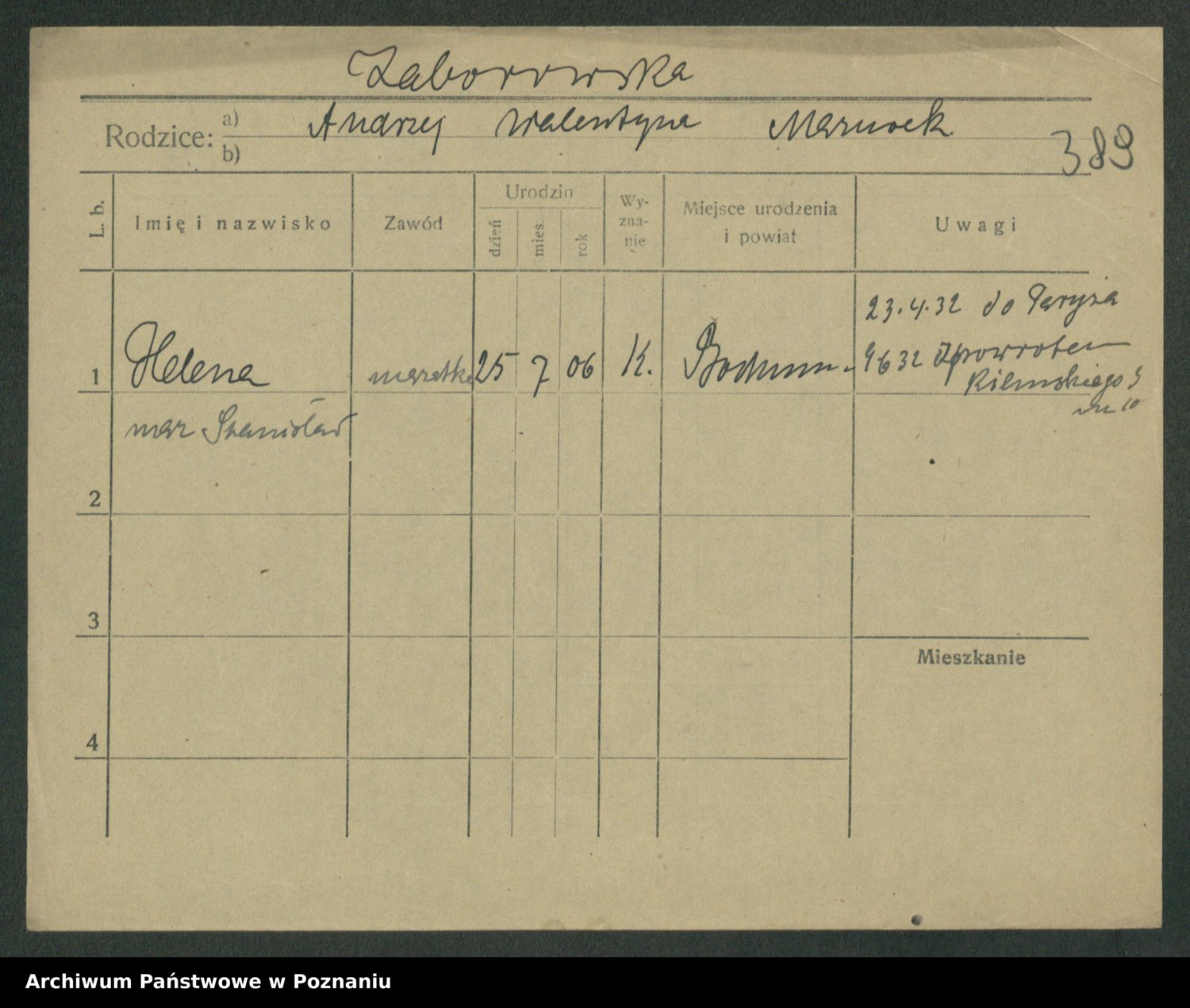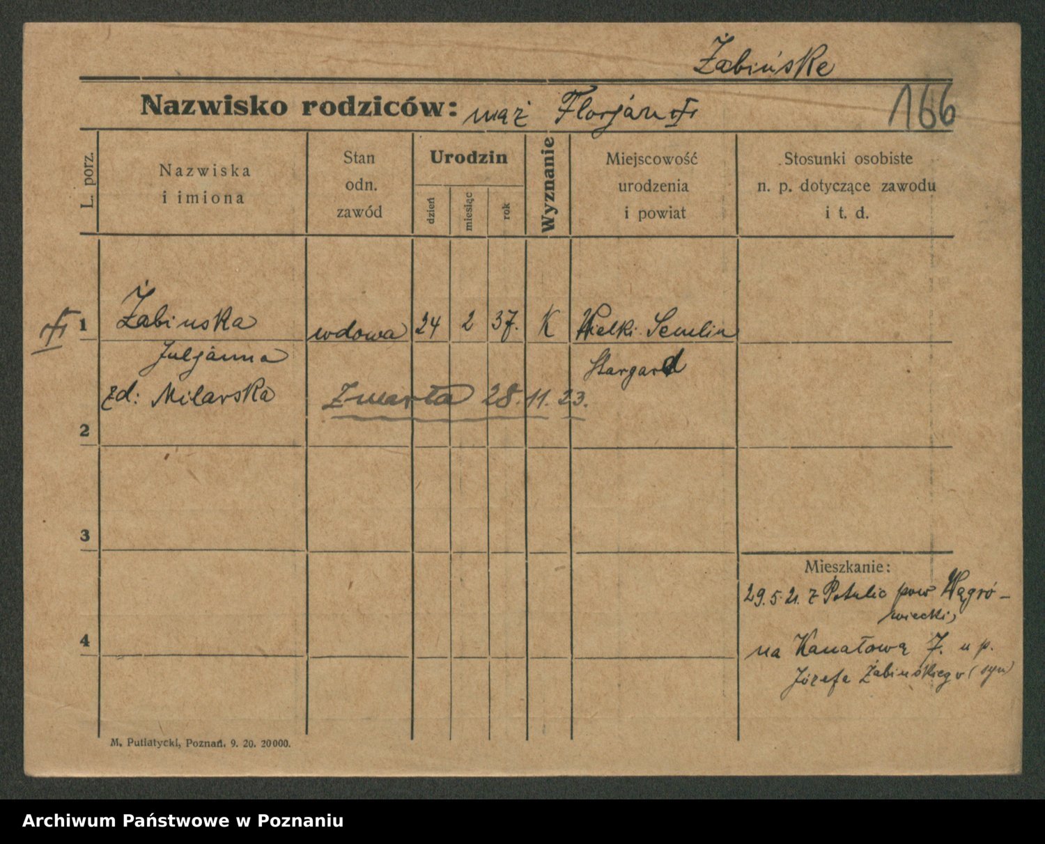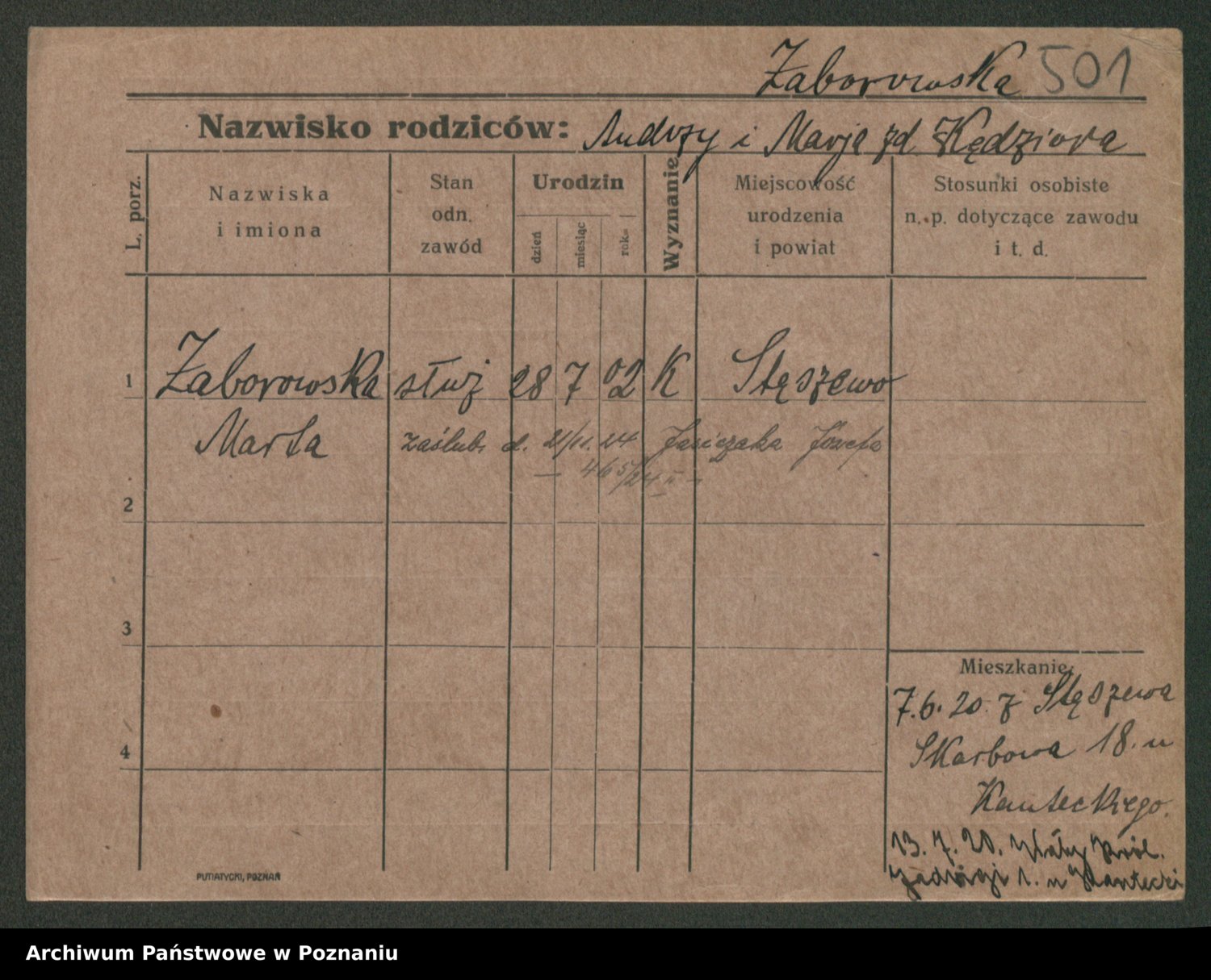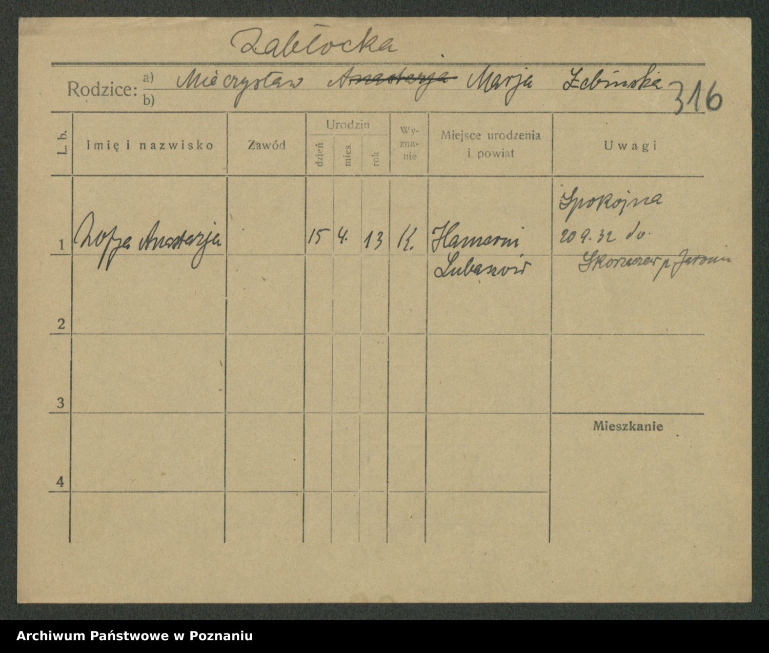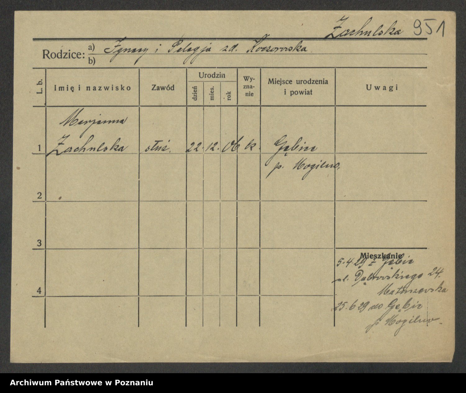 Żabczyński z.d. Zieleńkiewicz, Marja