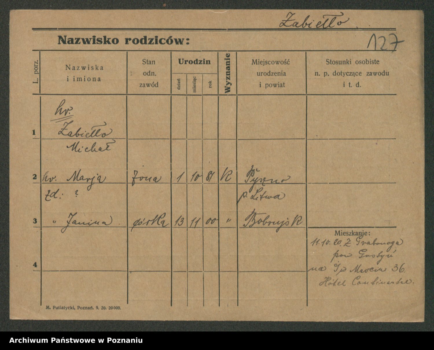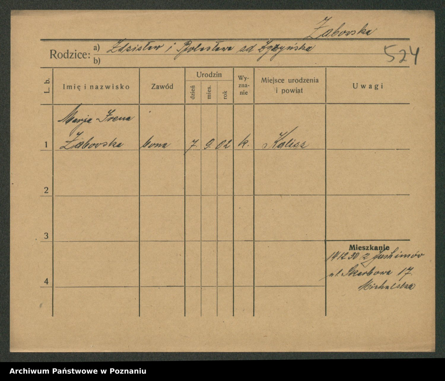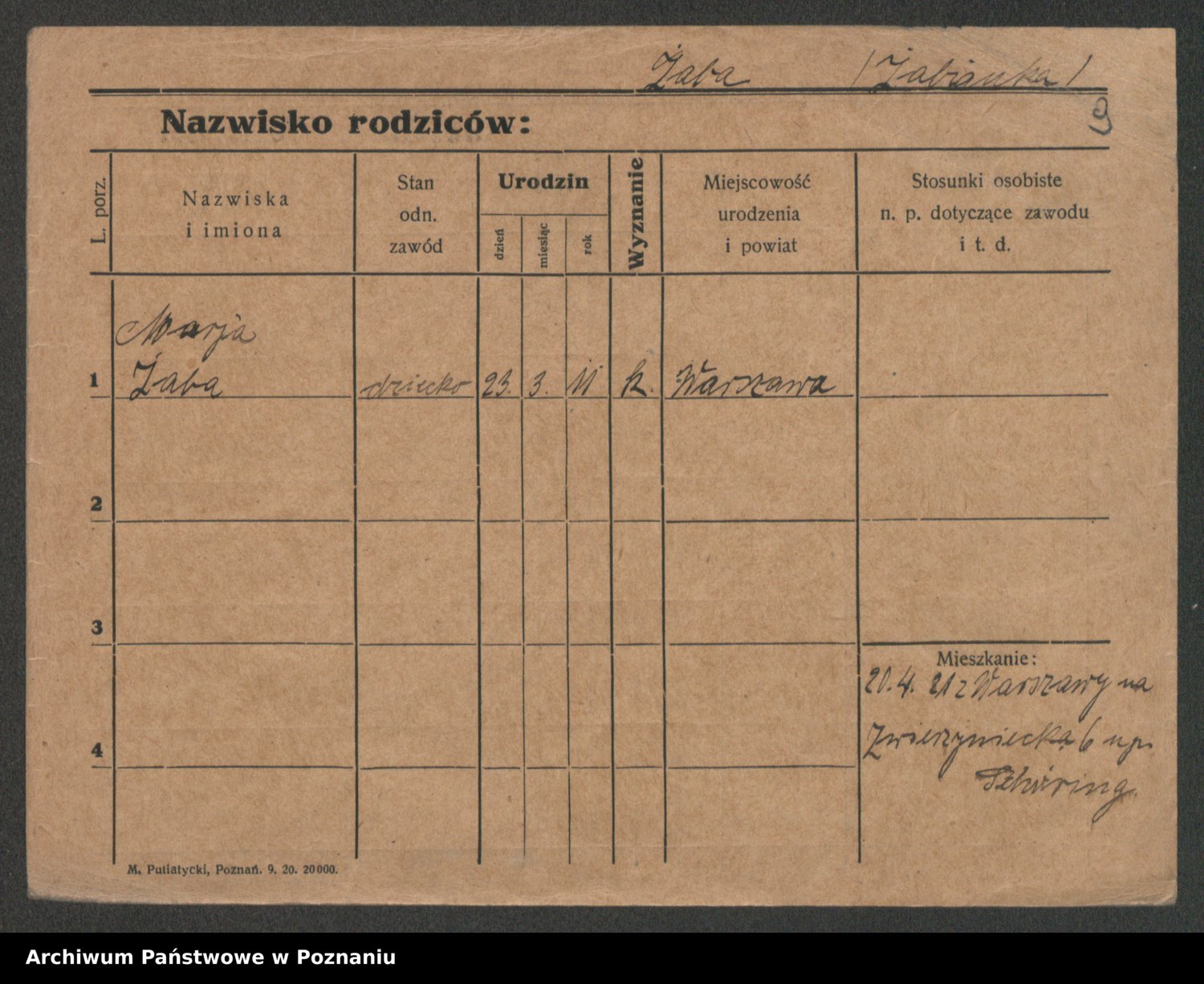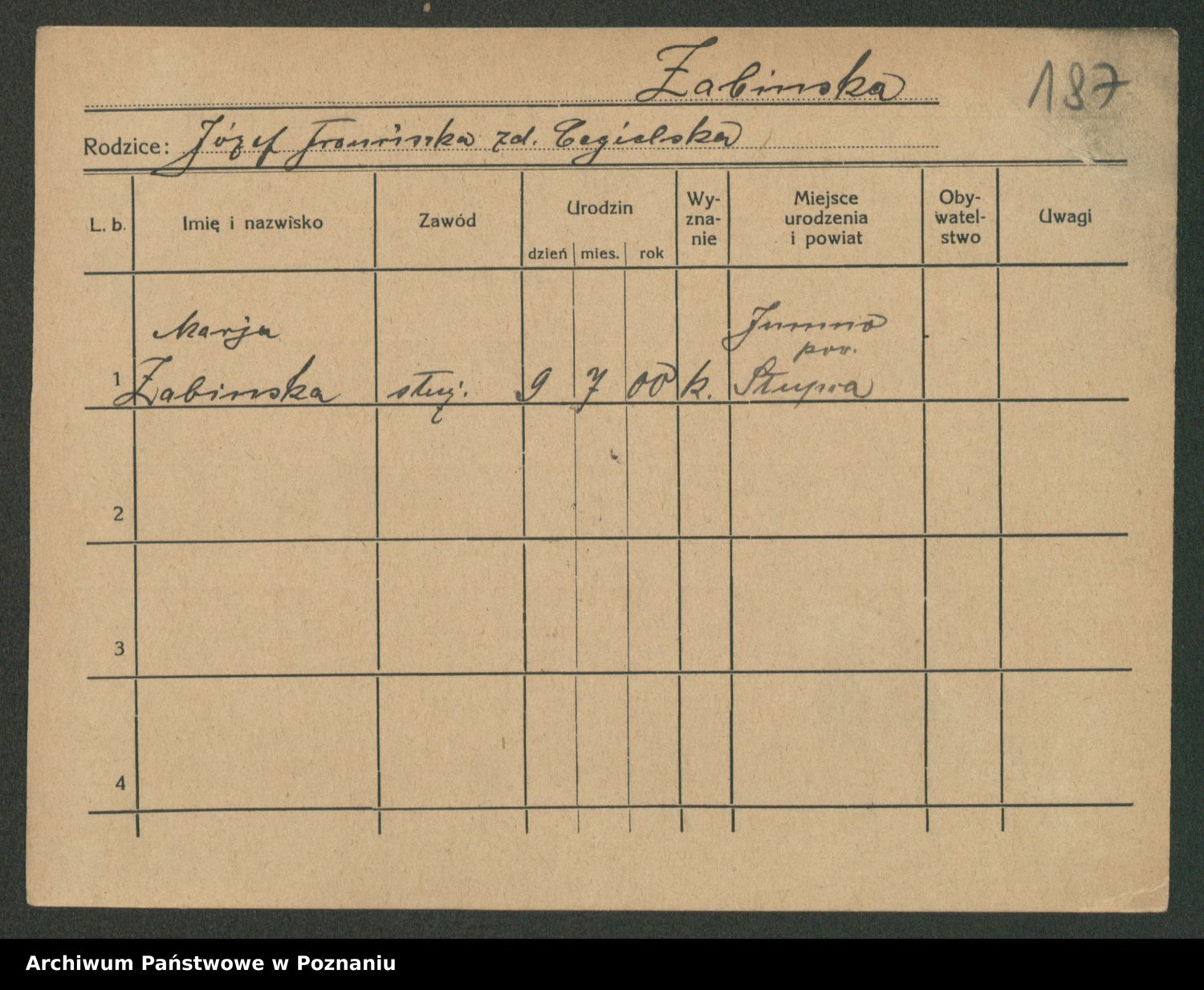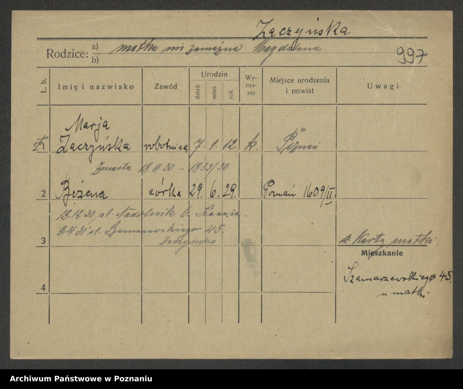 Żabczyński z.d. Zieleńkiewicz, Marja