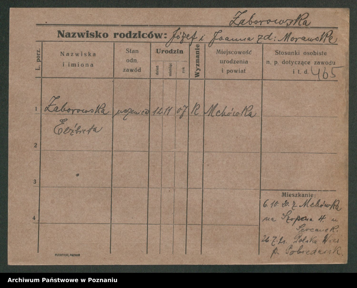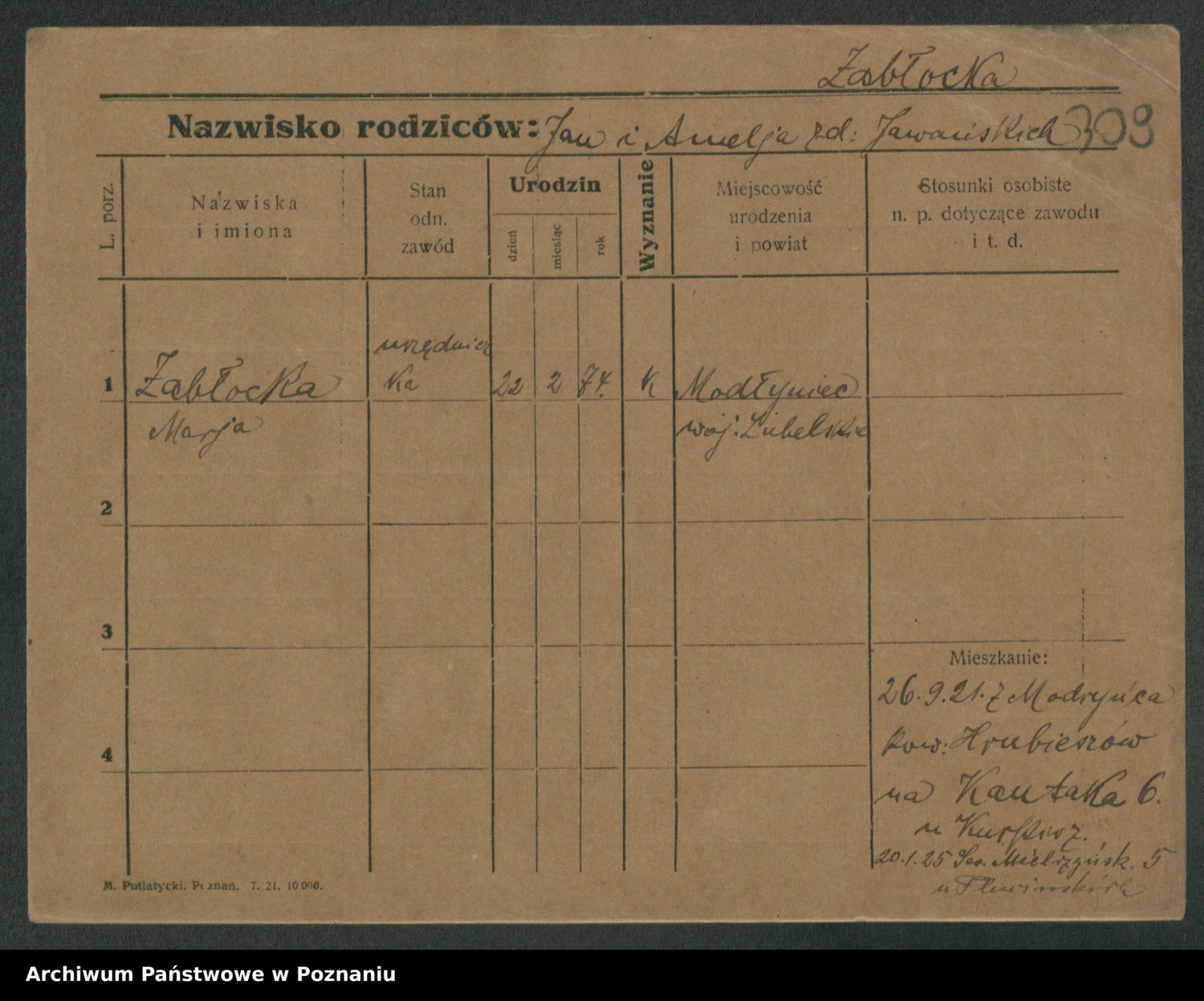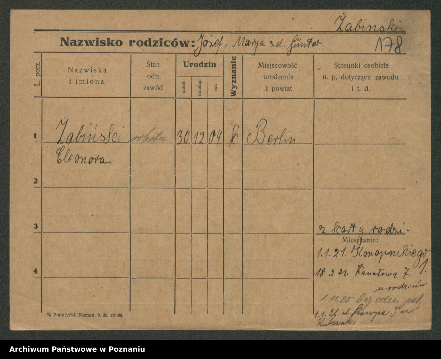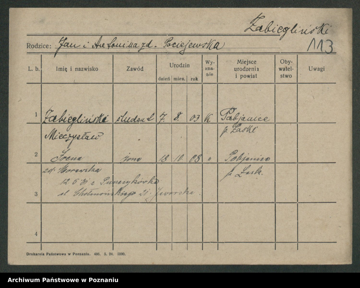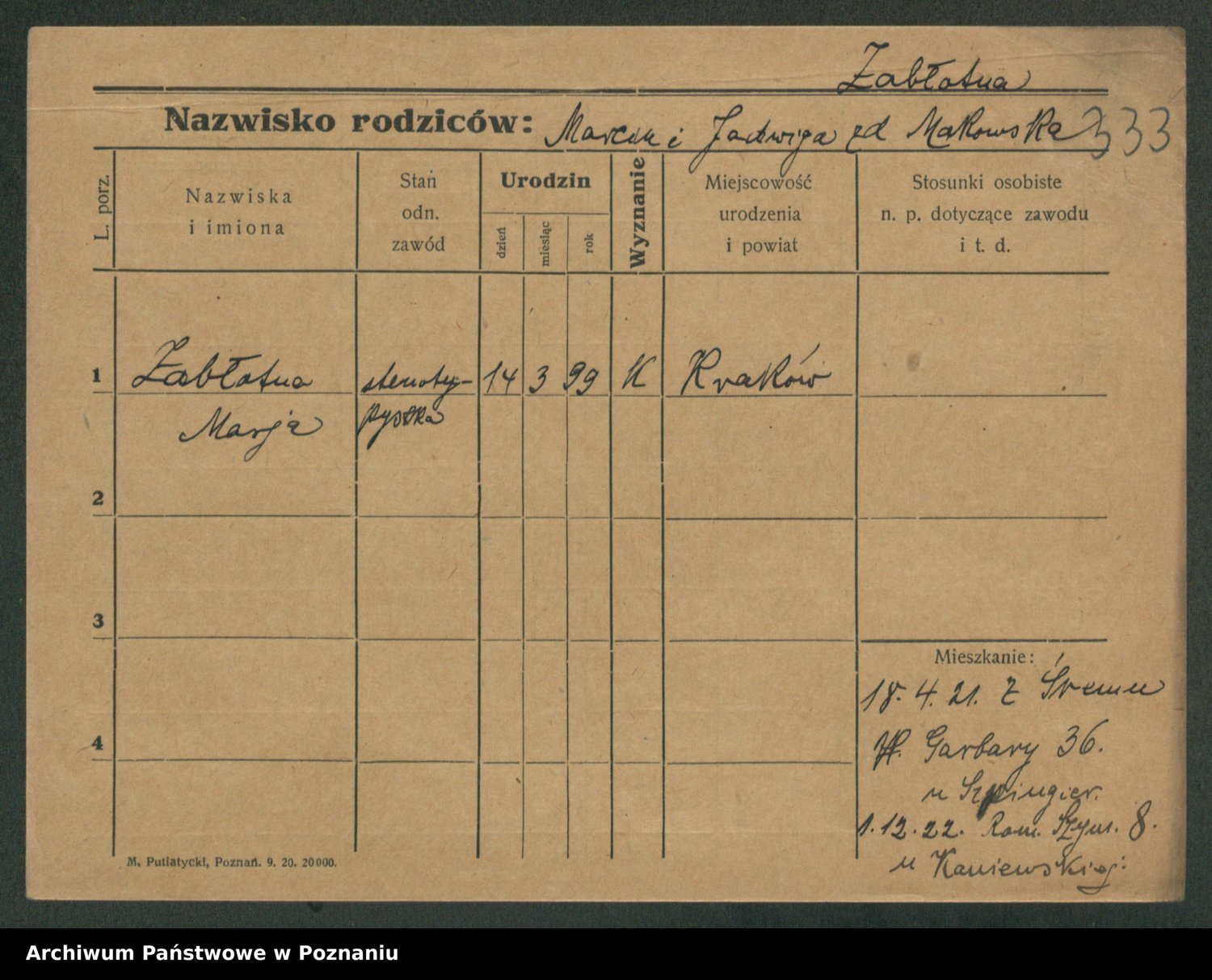 Żabczyński z.d. Zieleńkiewicz, Marja