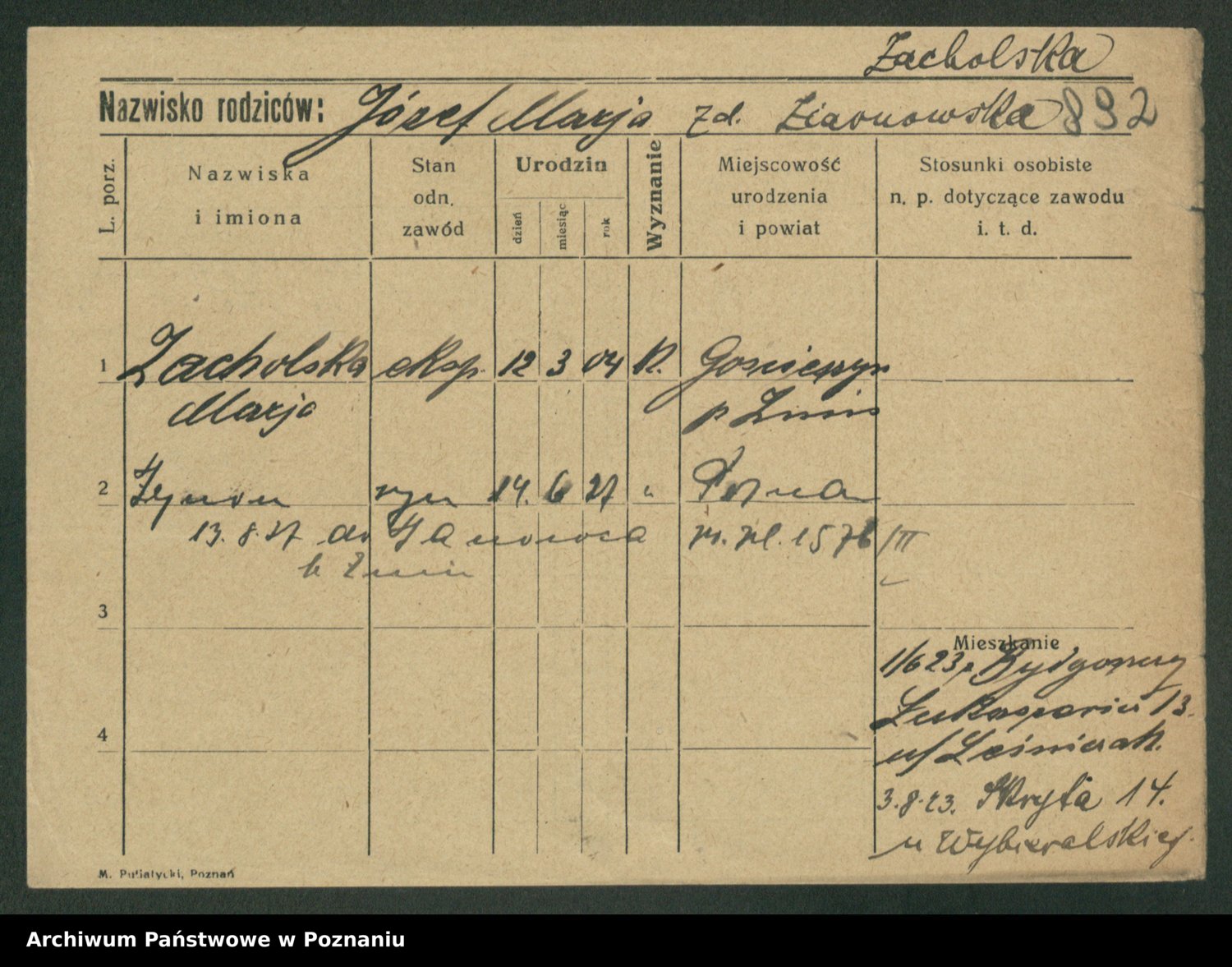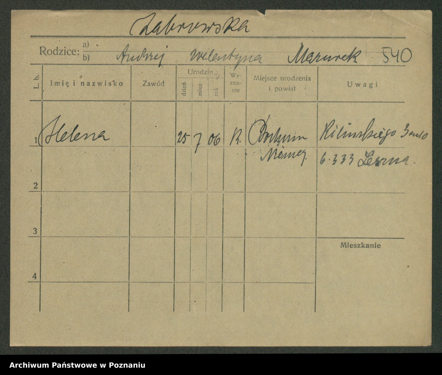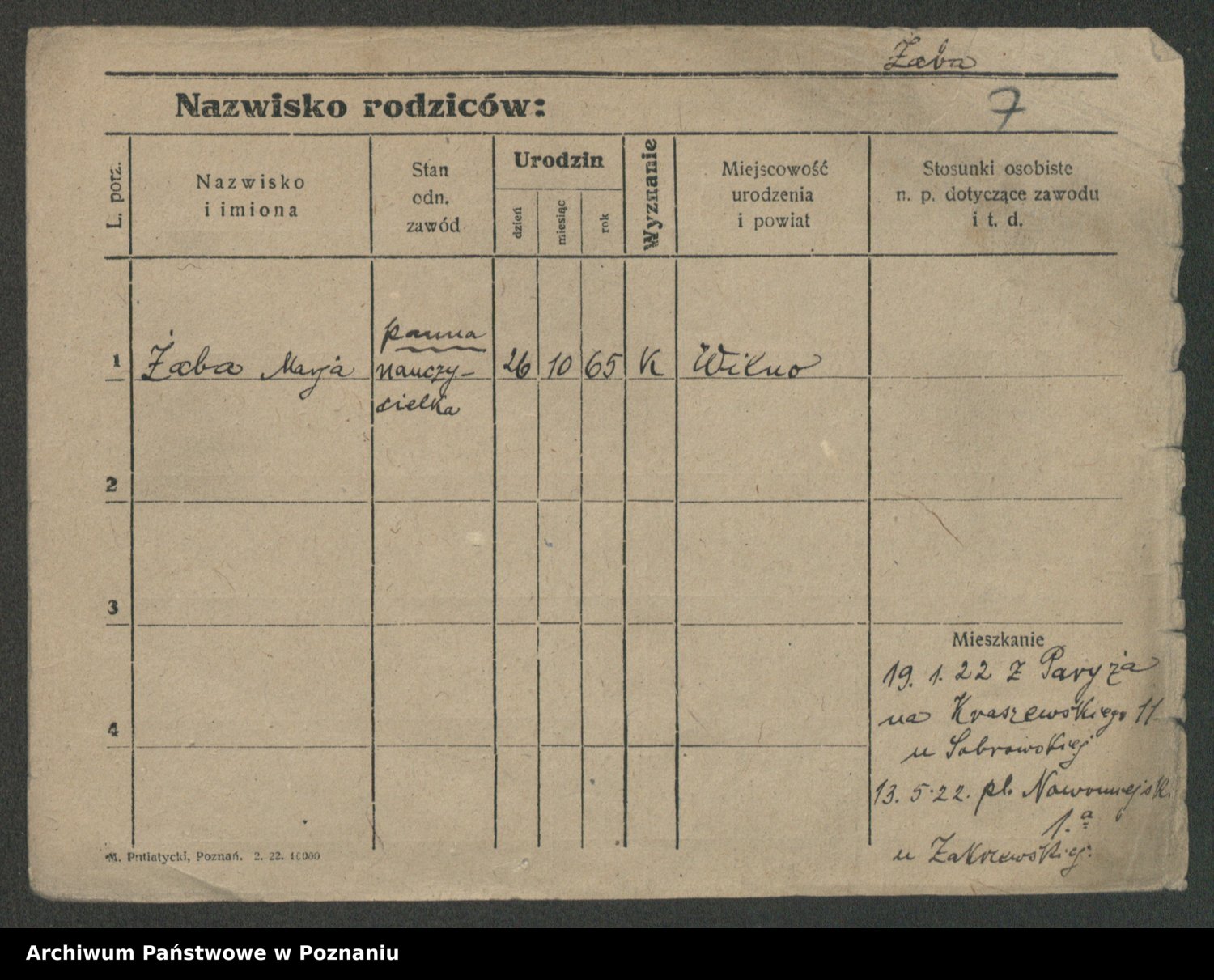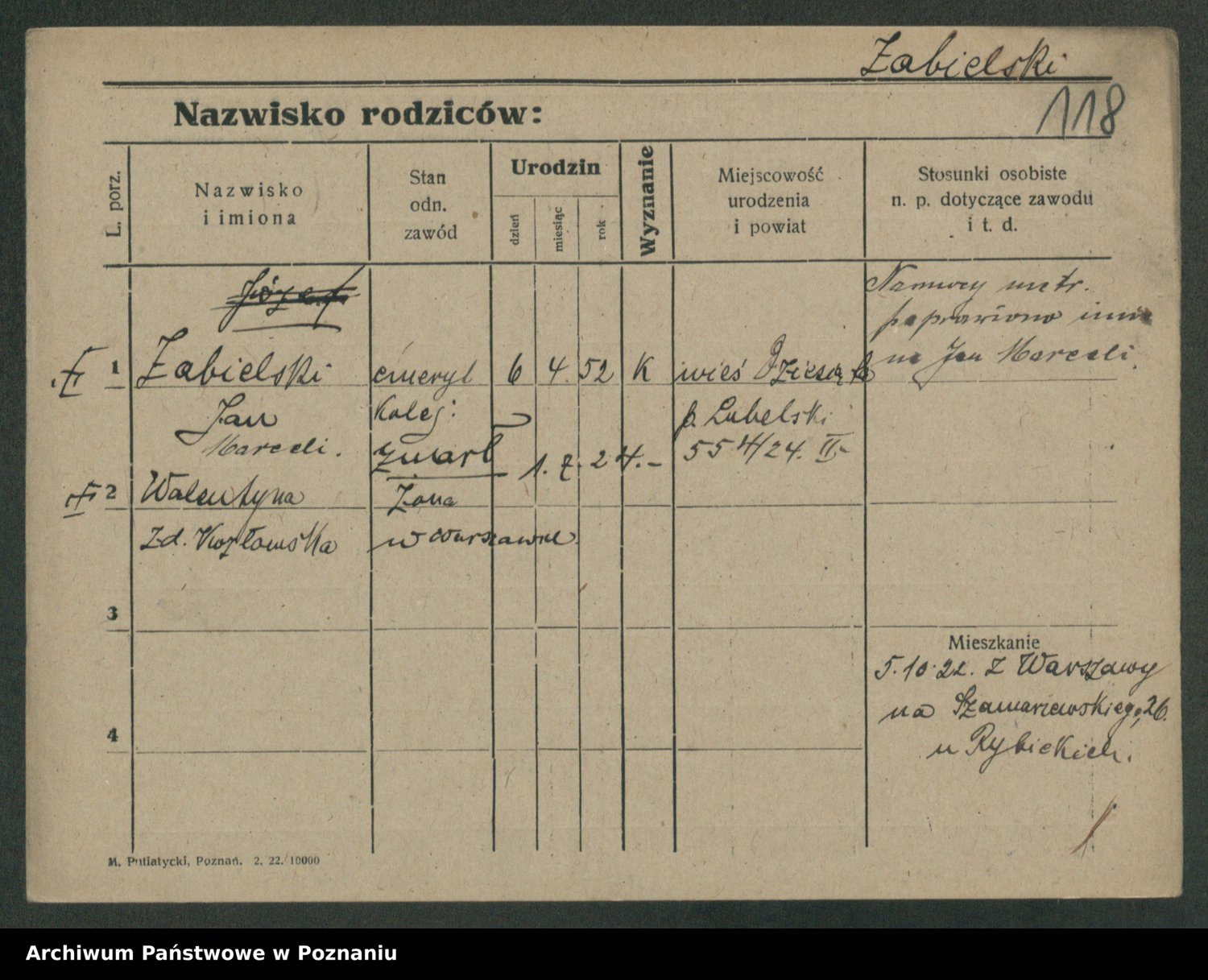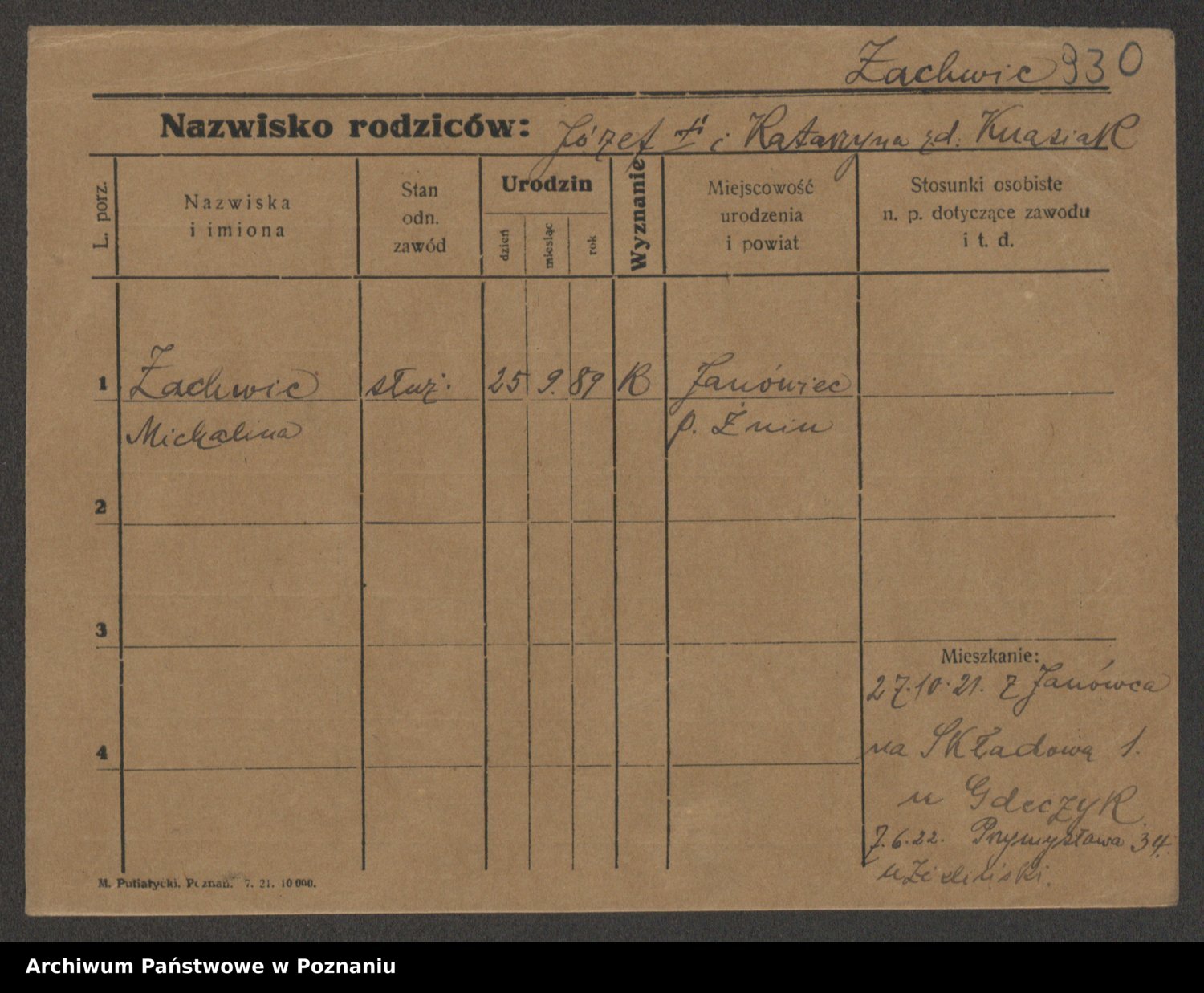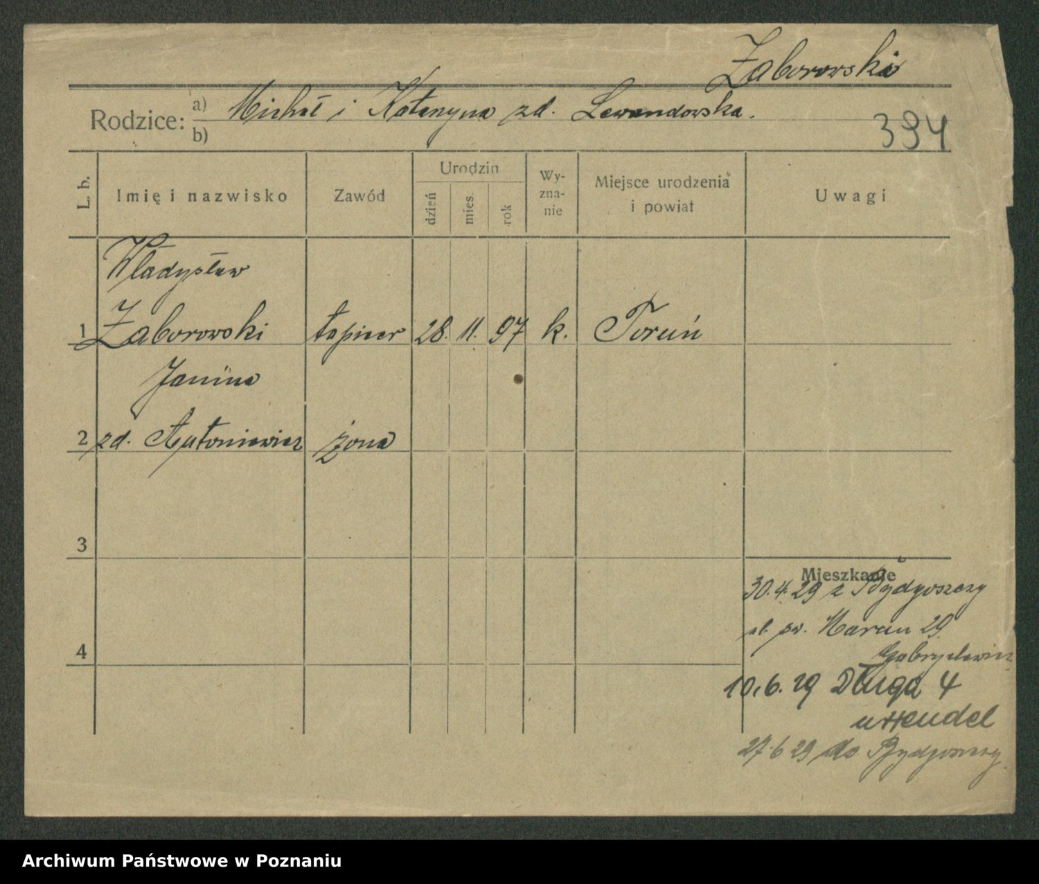 Żabczyński z.d. Zieleńkiewicz, Marja