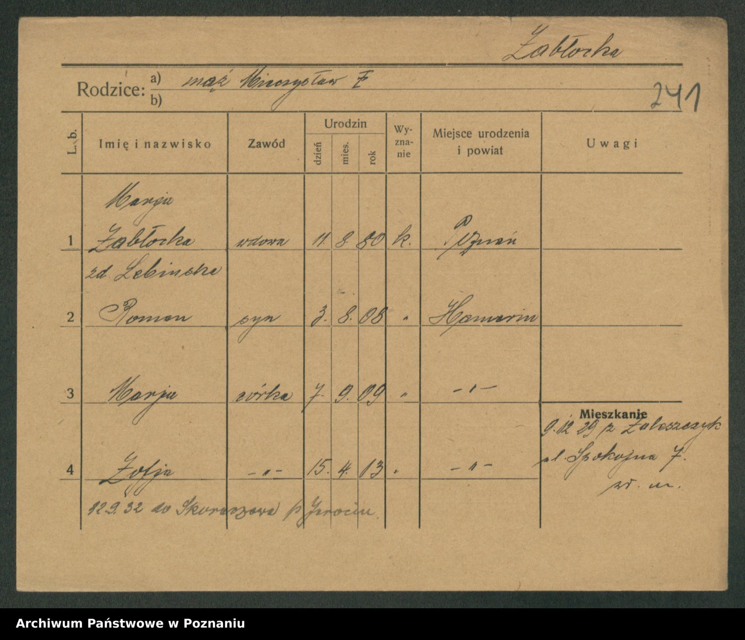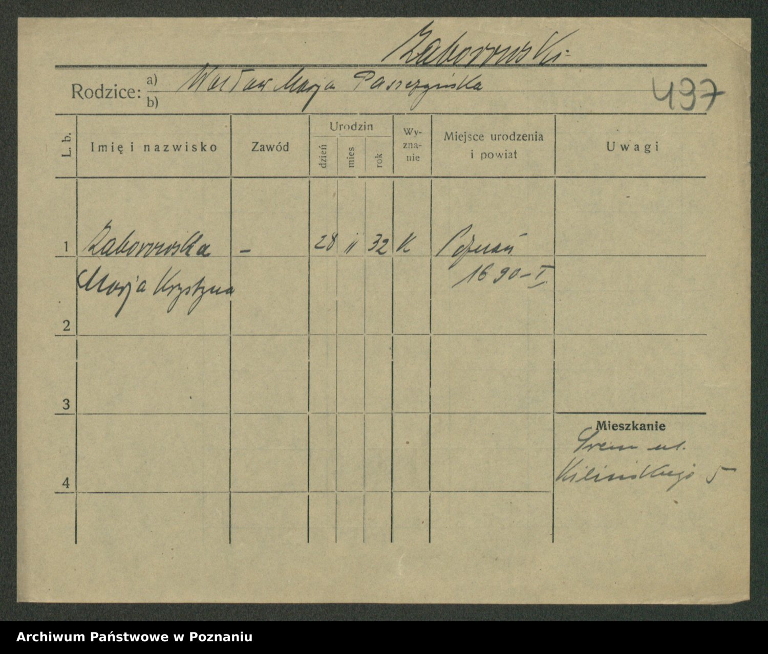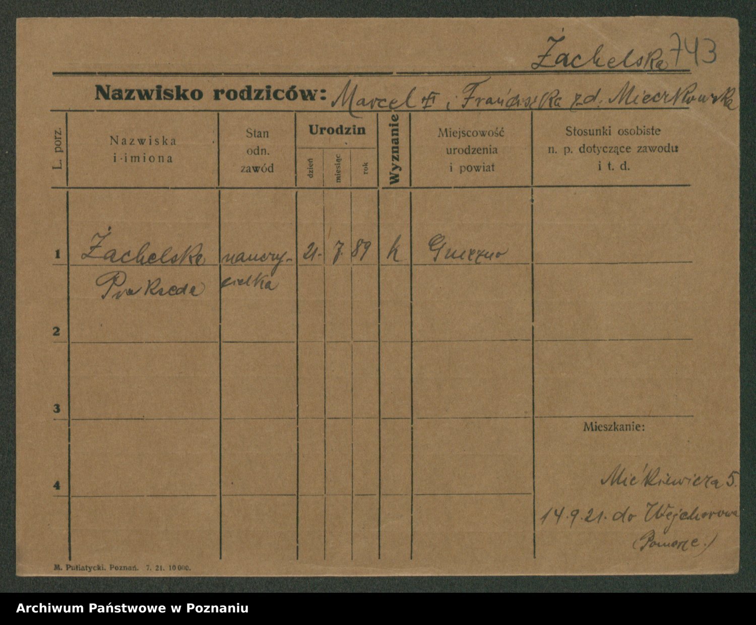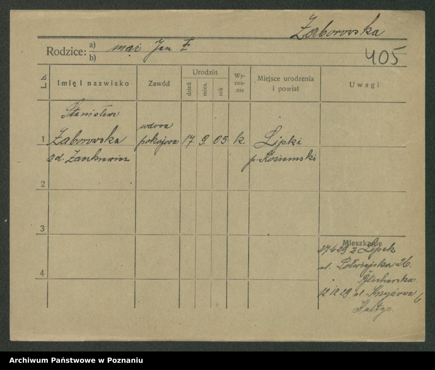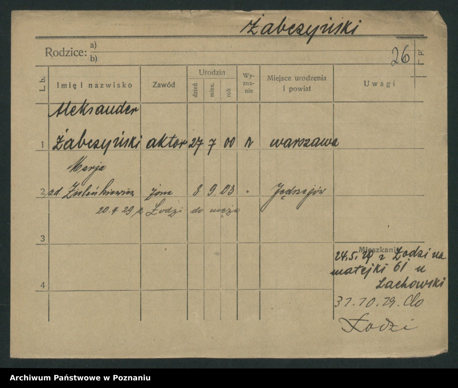 Żabczyński z.d. Zieleńkiewicz, Marja