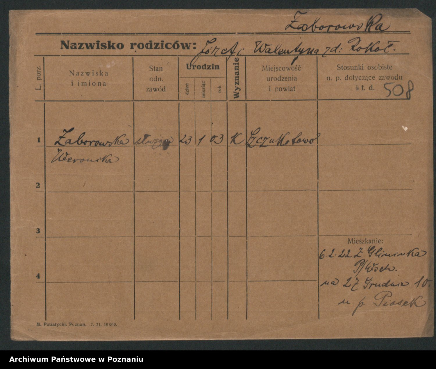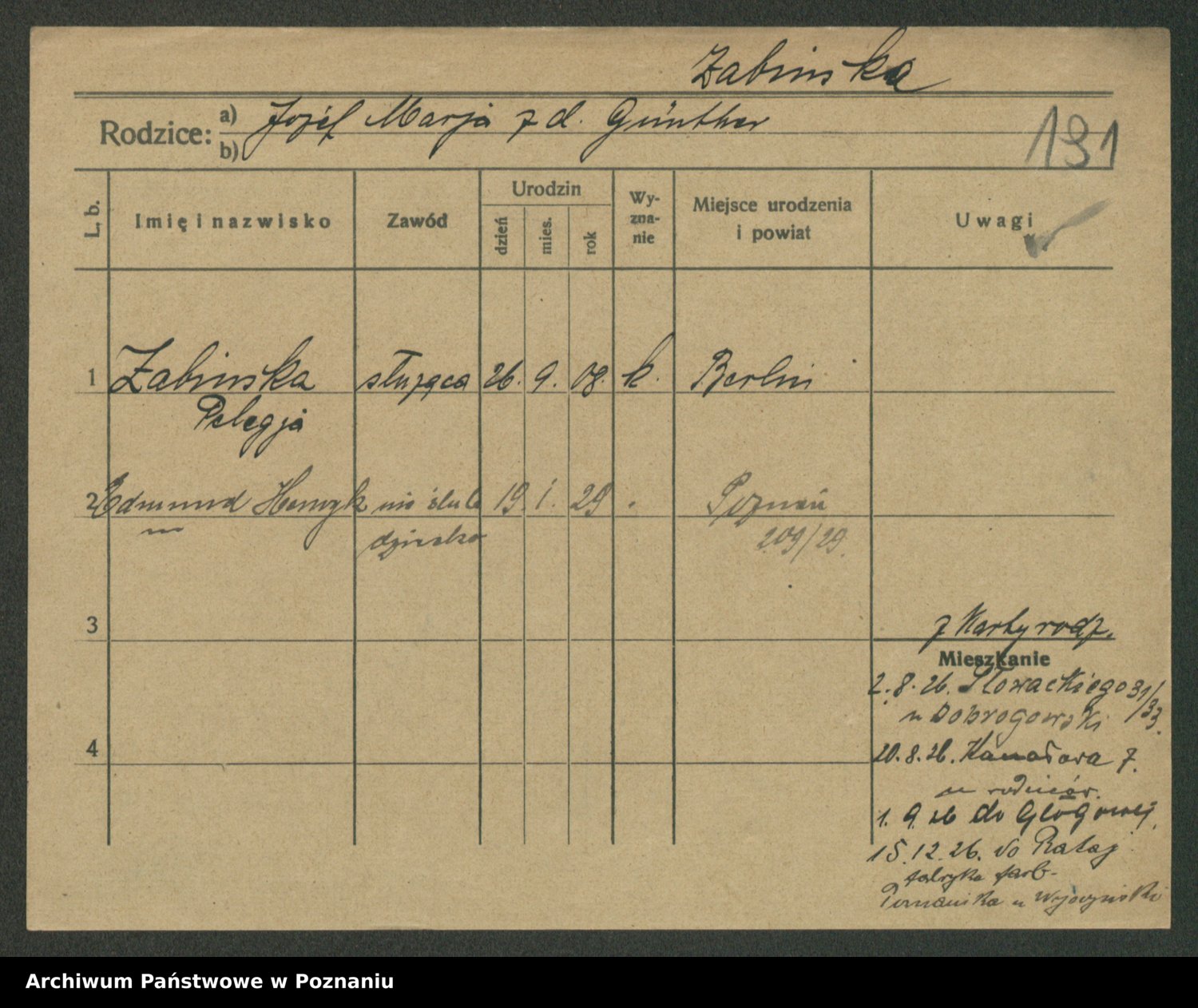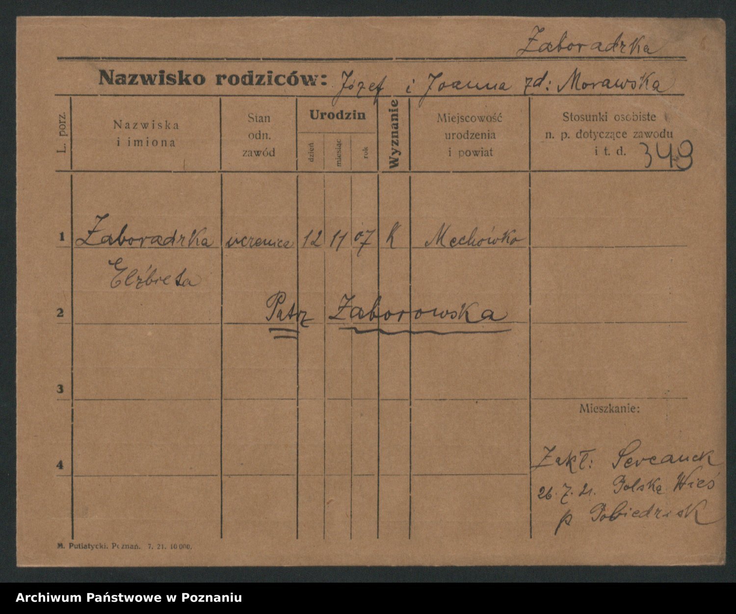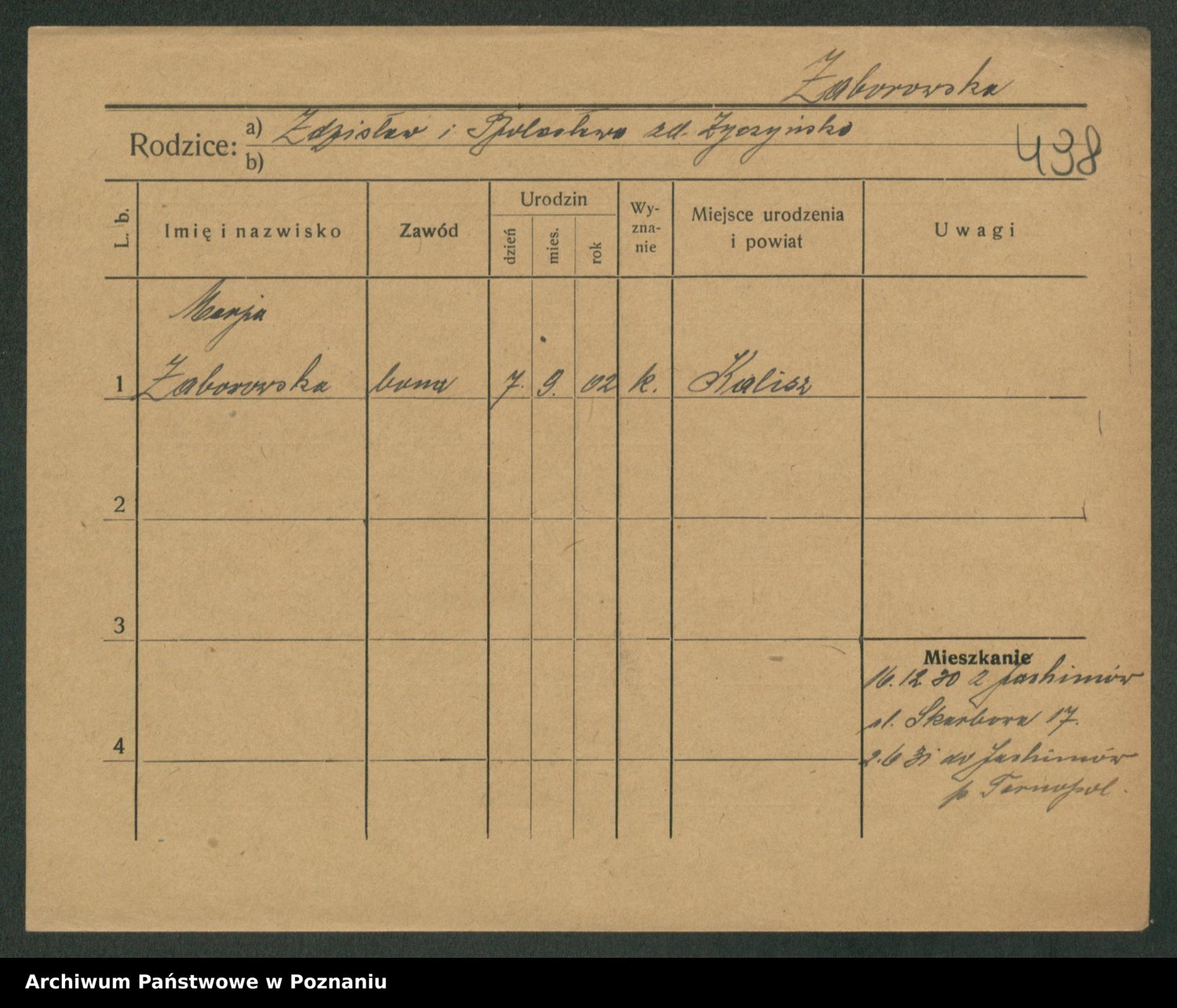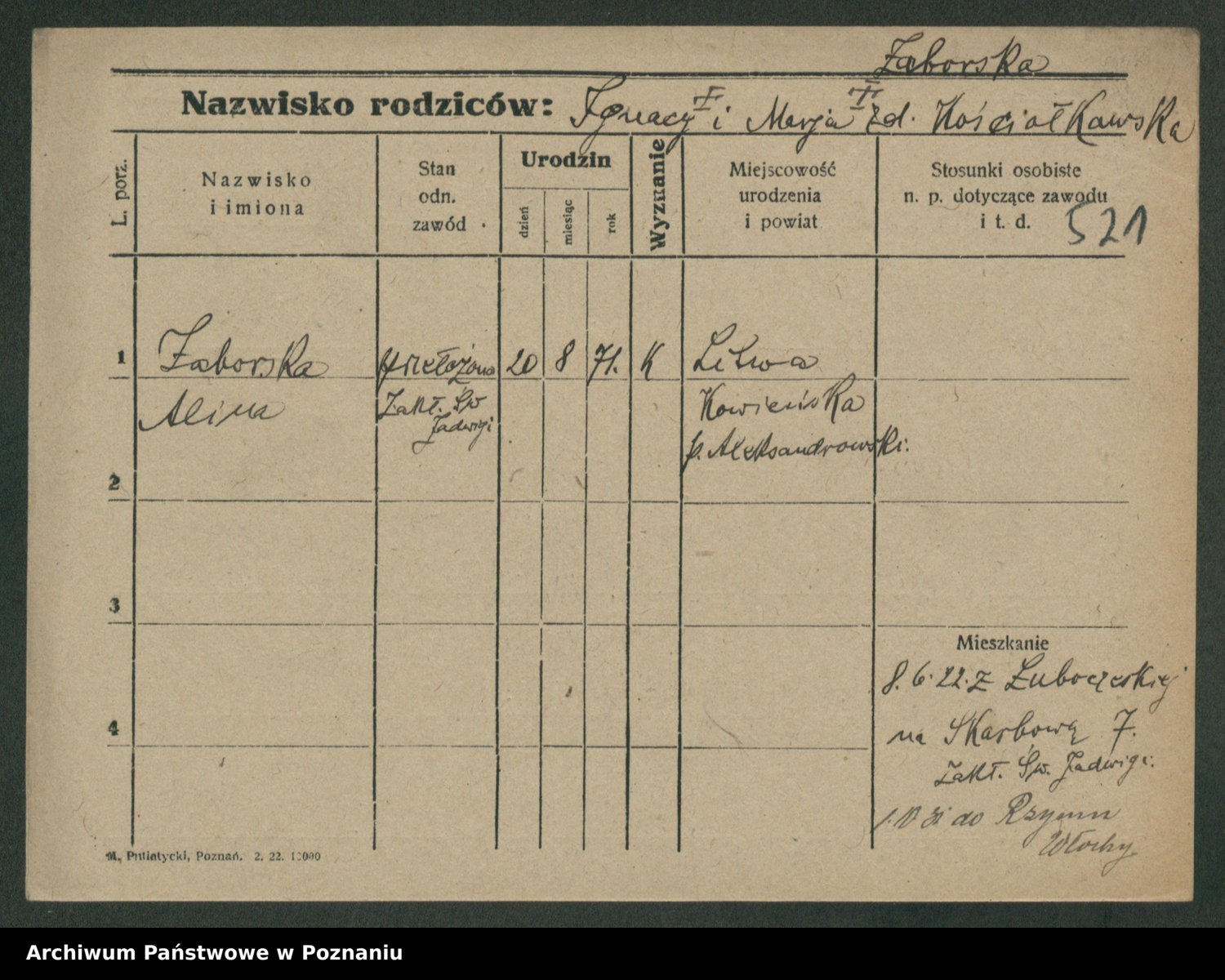 Żabczyński z.d. Zieleńkiewicz, Marja