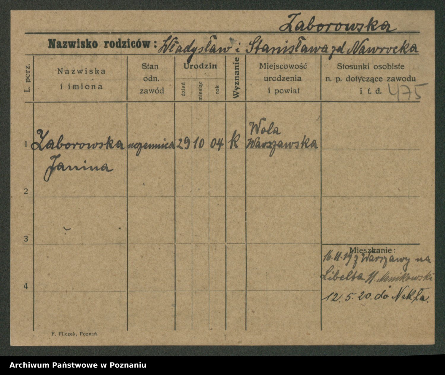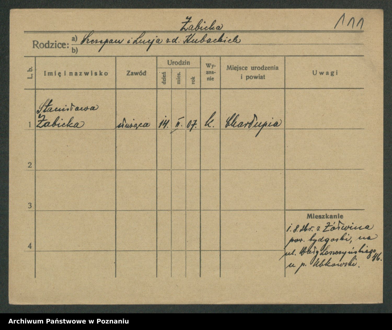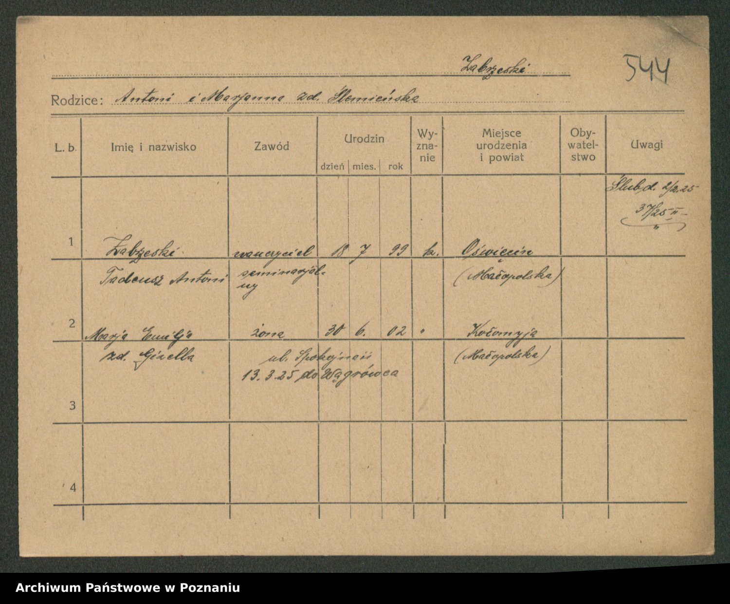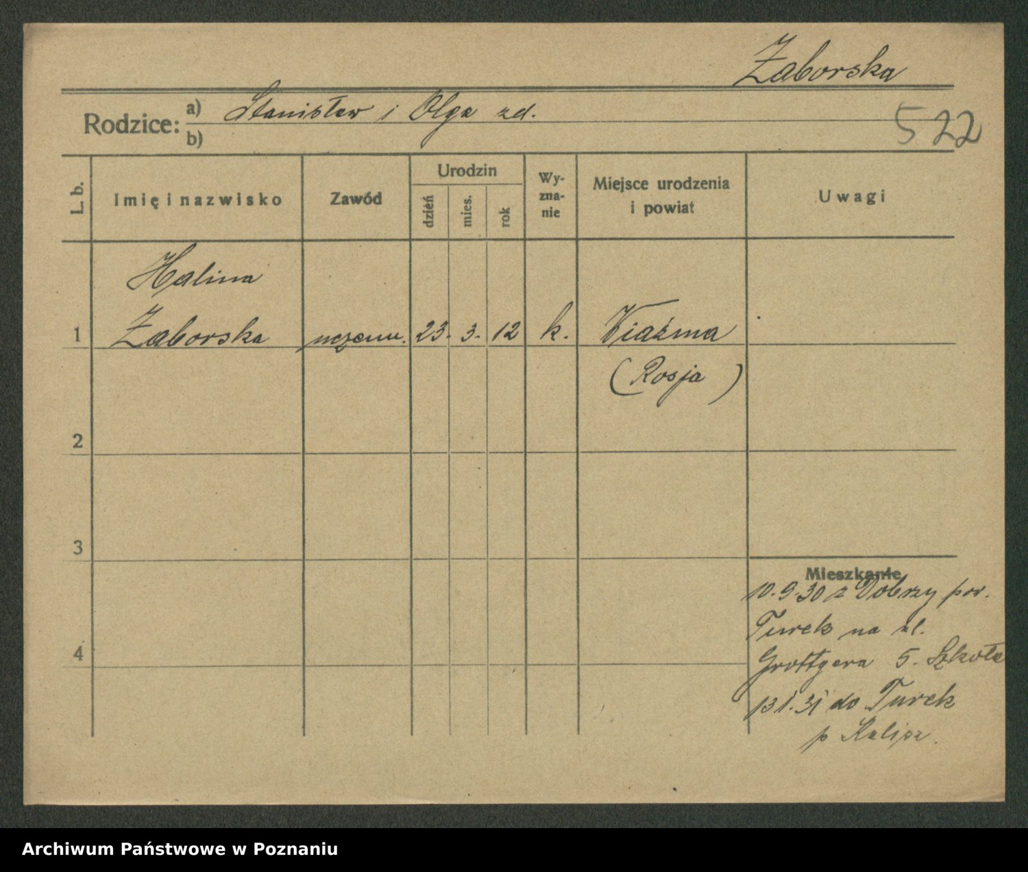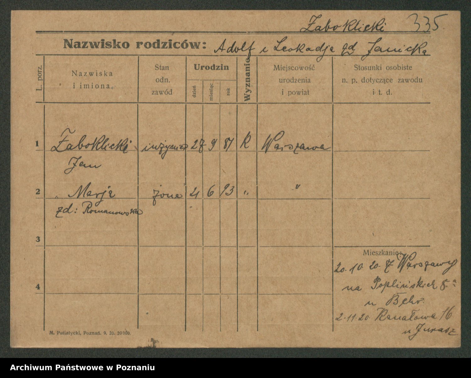 Żabczyński z.d. Zieleńkiewicz, Marja