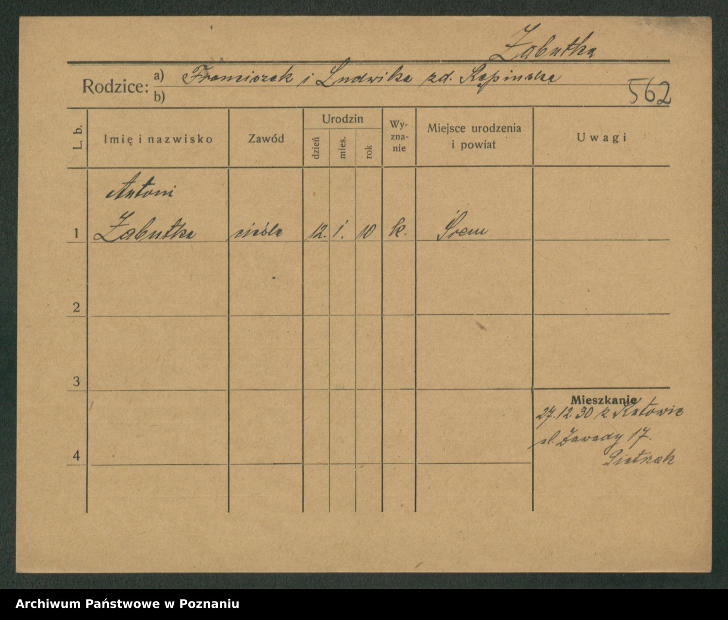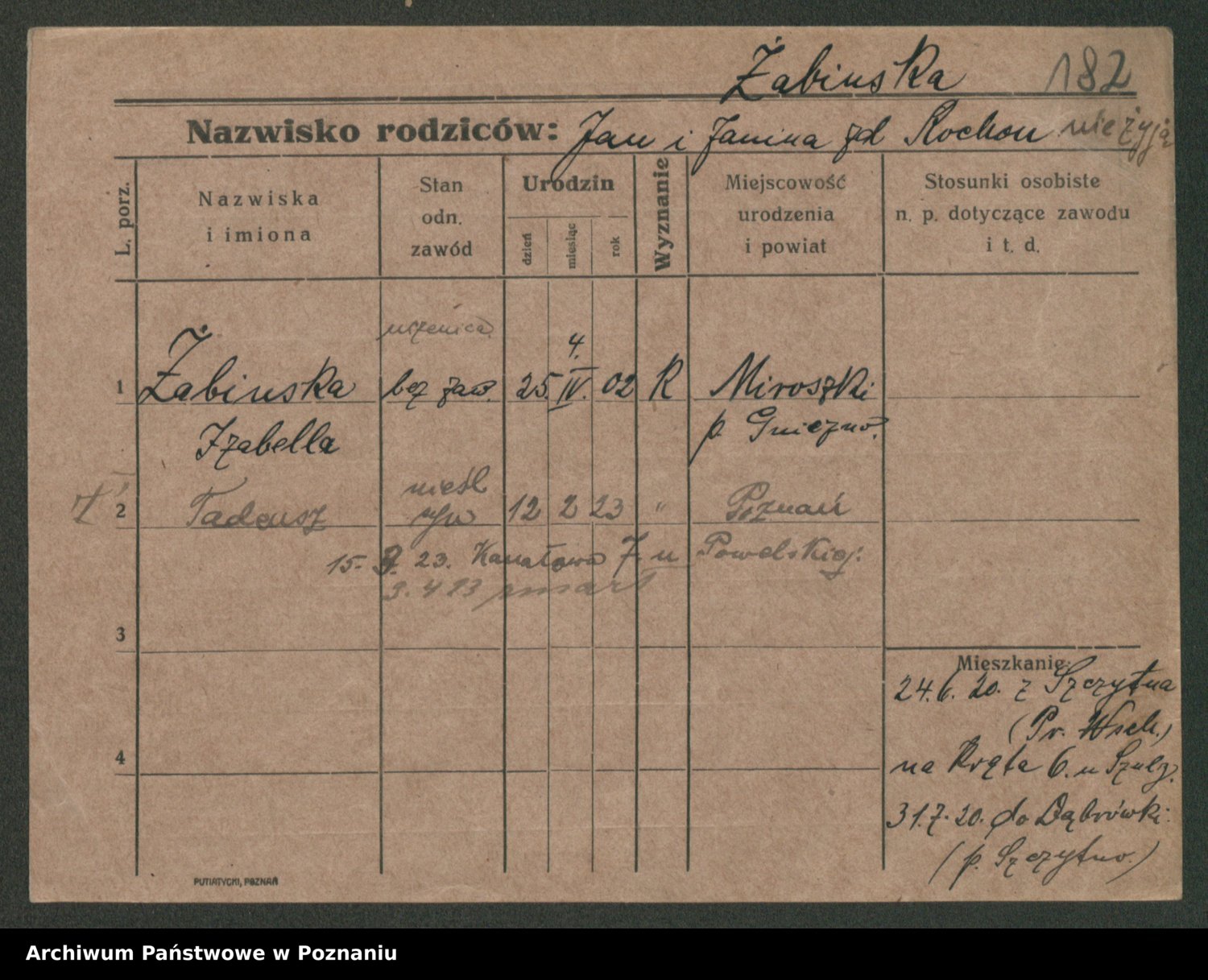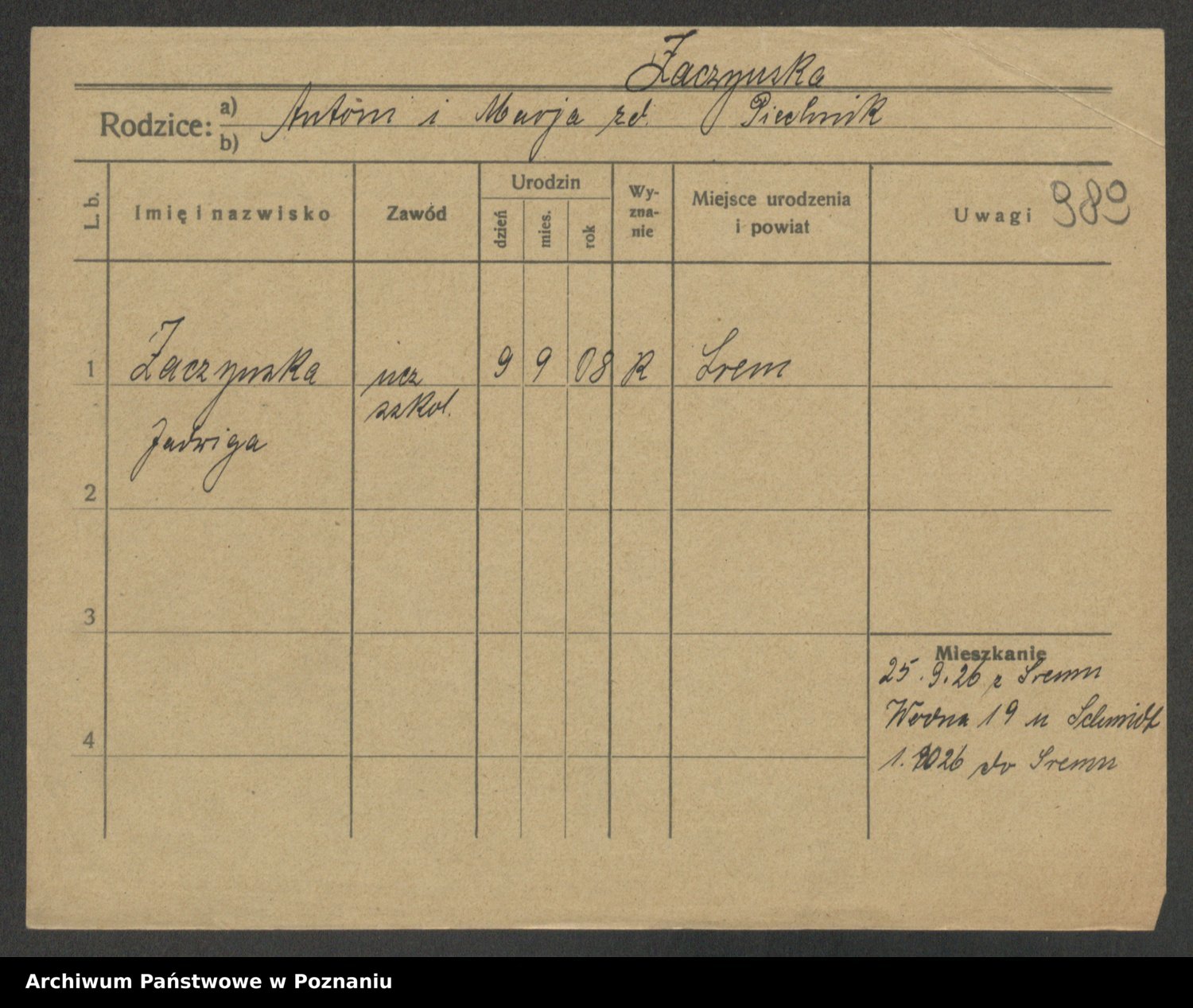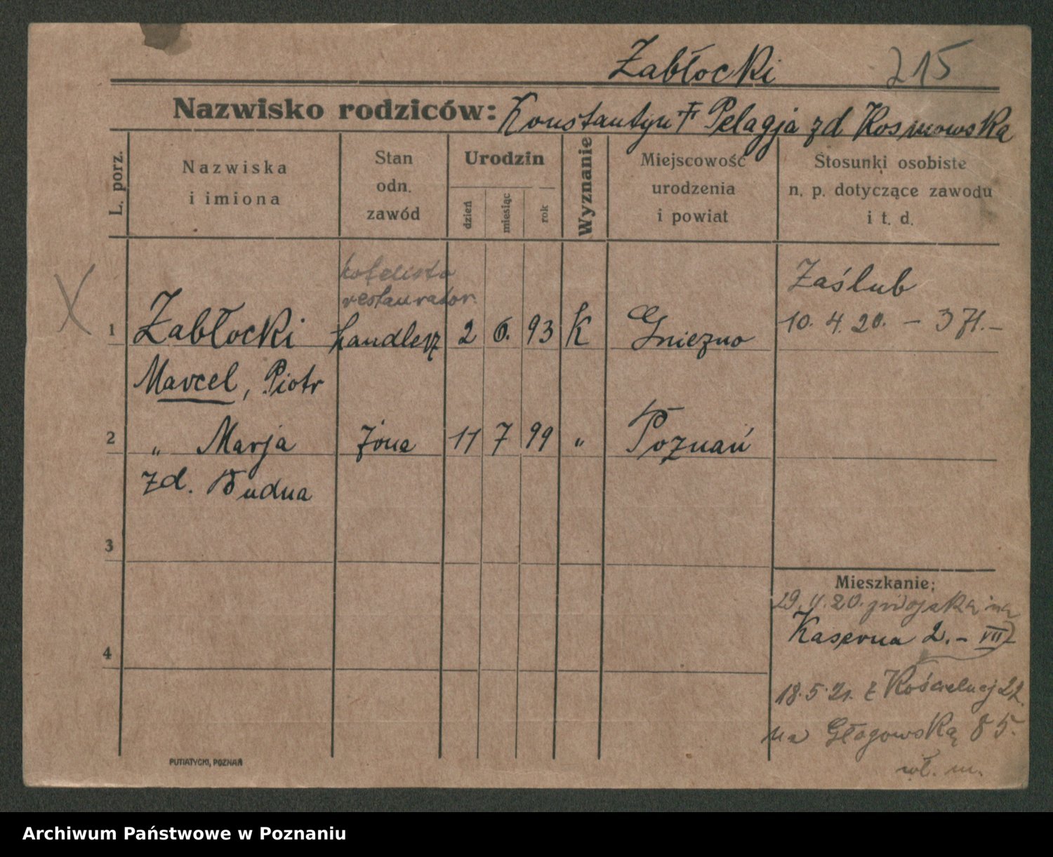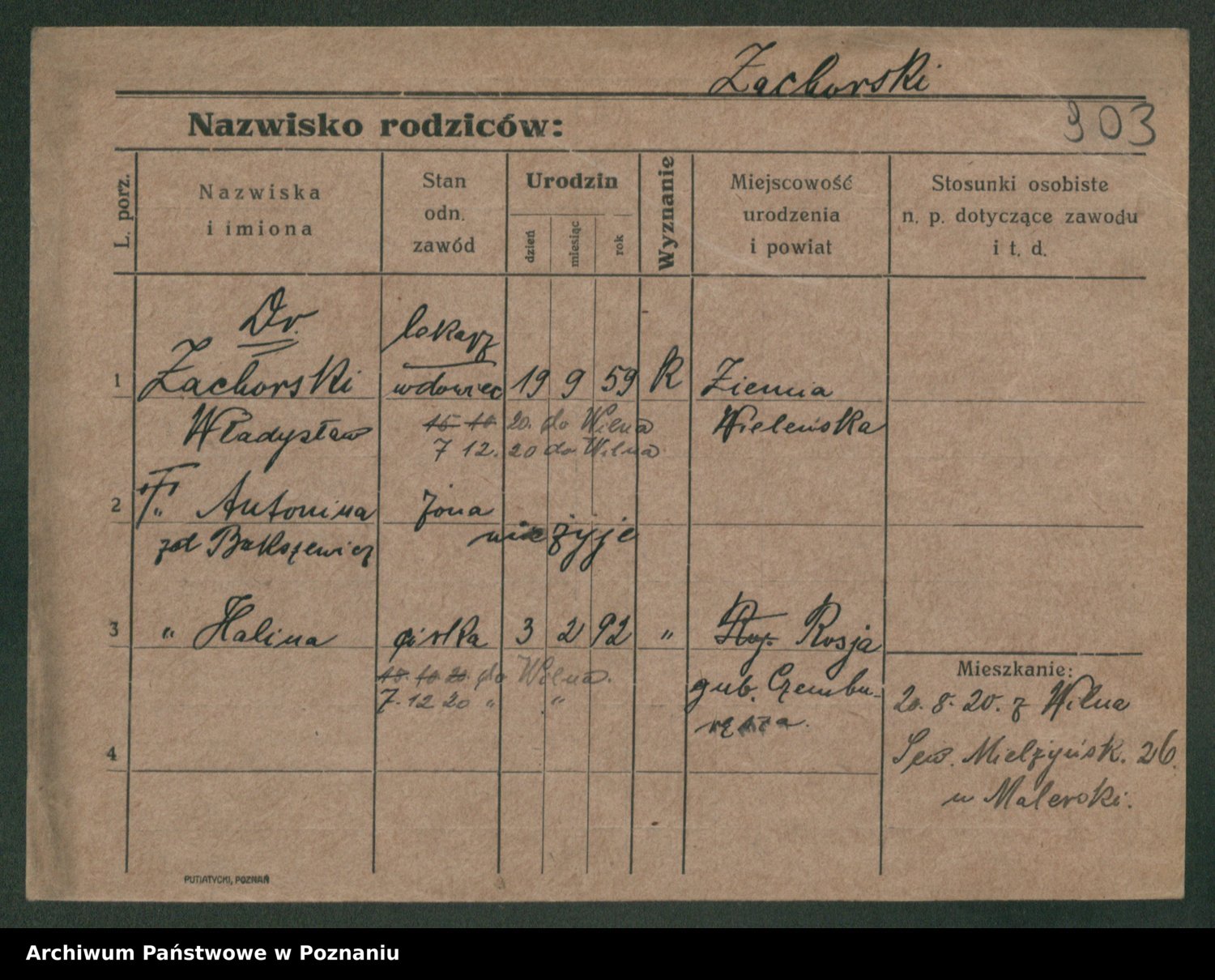 Żabczyński z.d. Zieleńkiewicz, Marja
