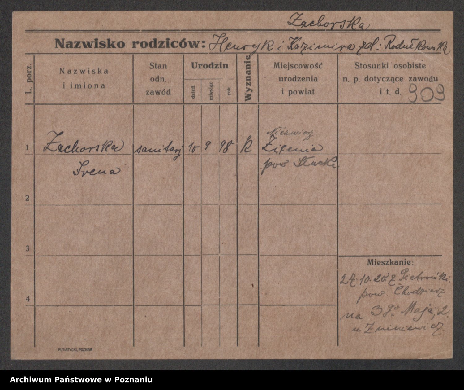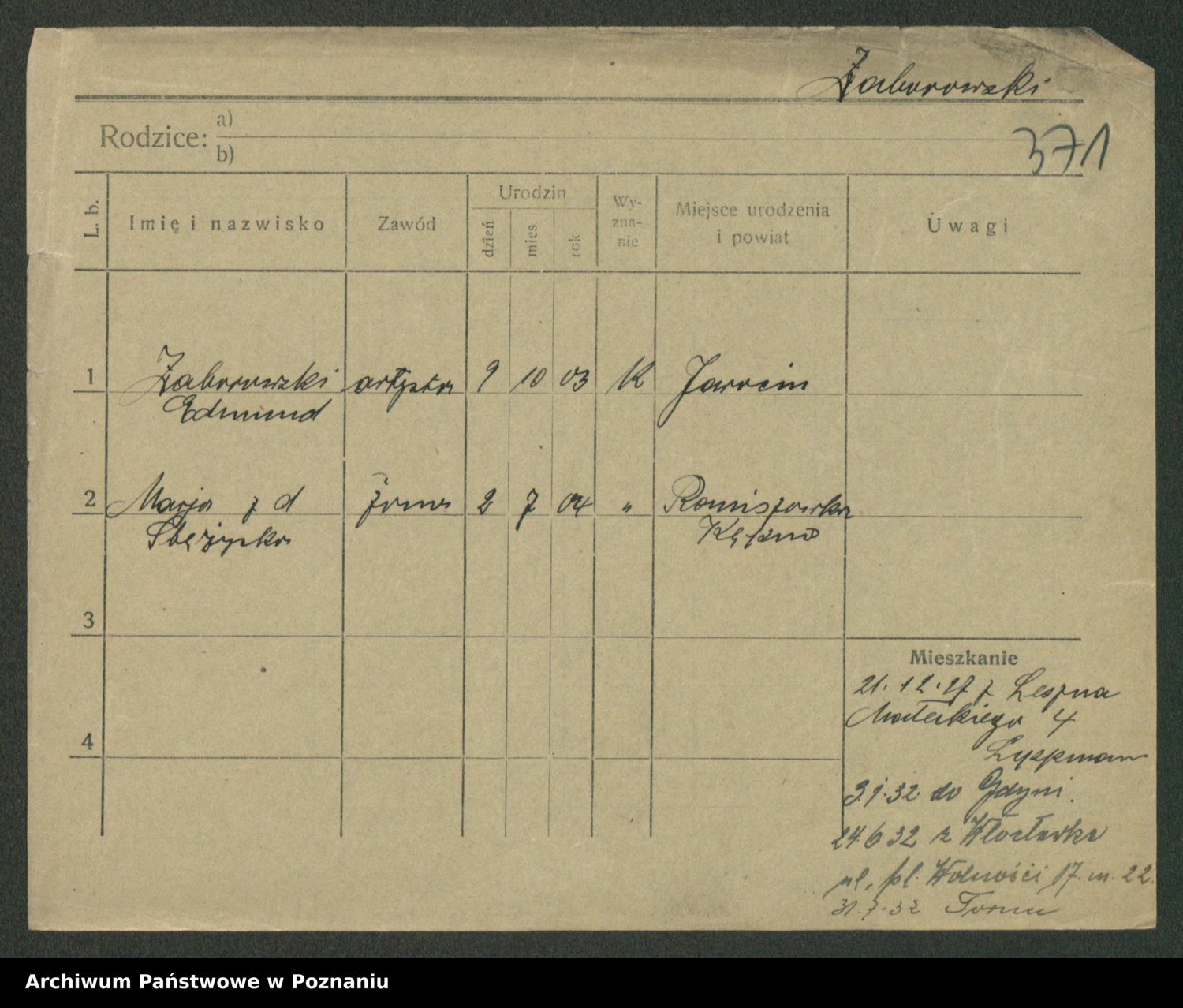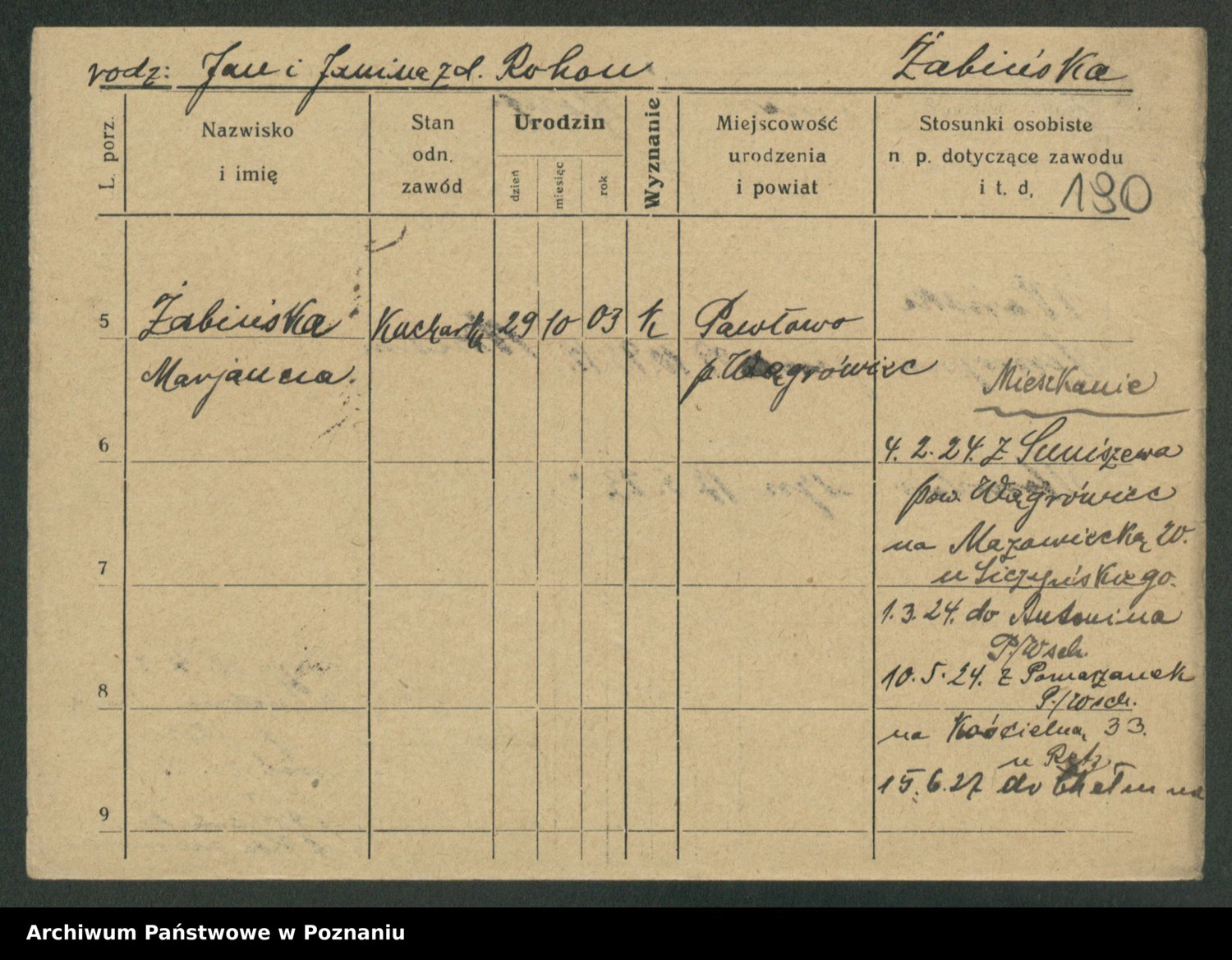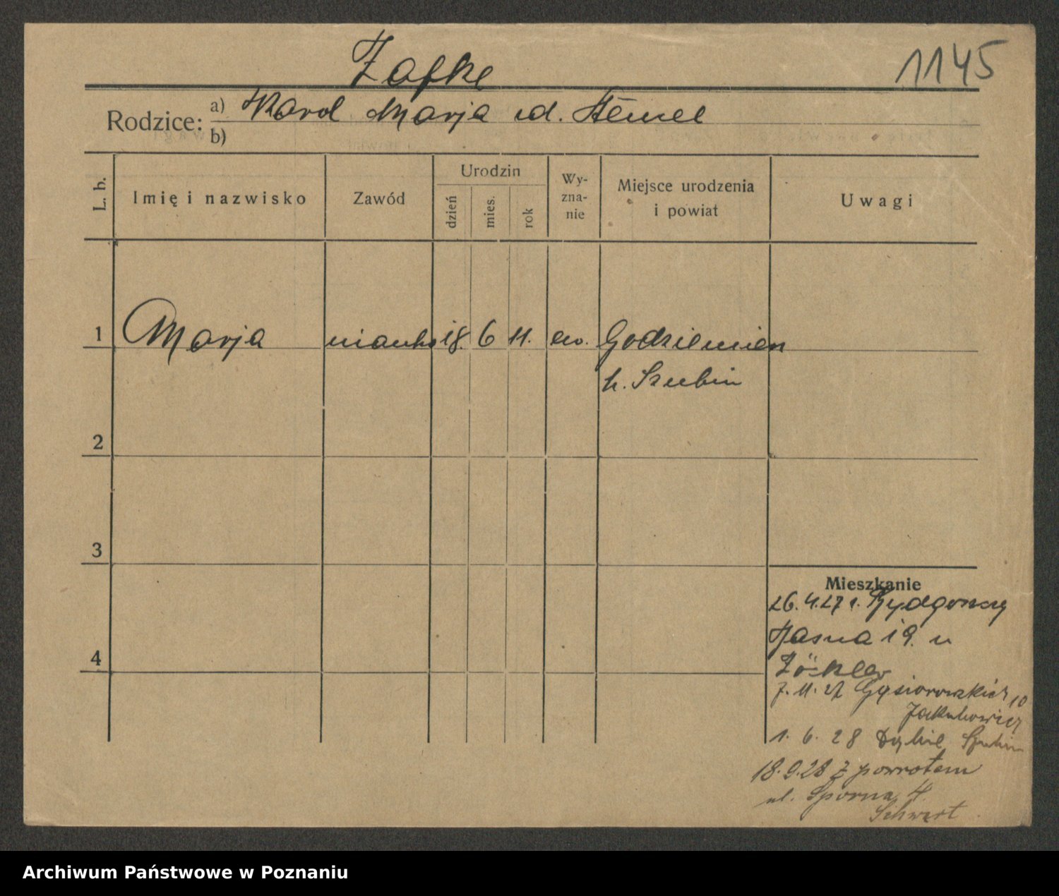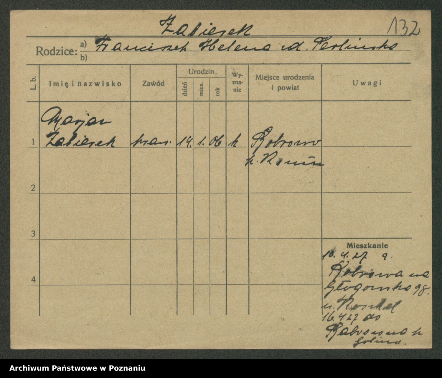 Żabczyński z.d. Zieleńkiewicz, Marja