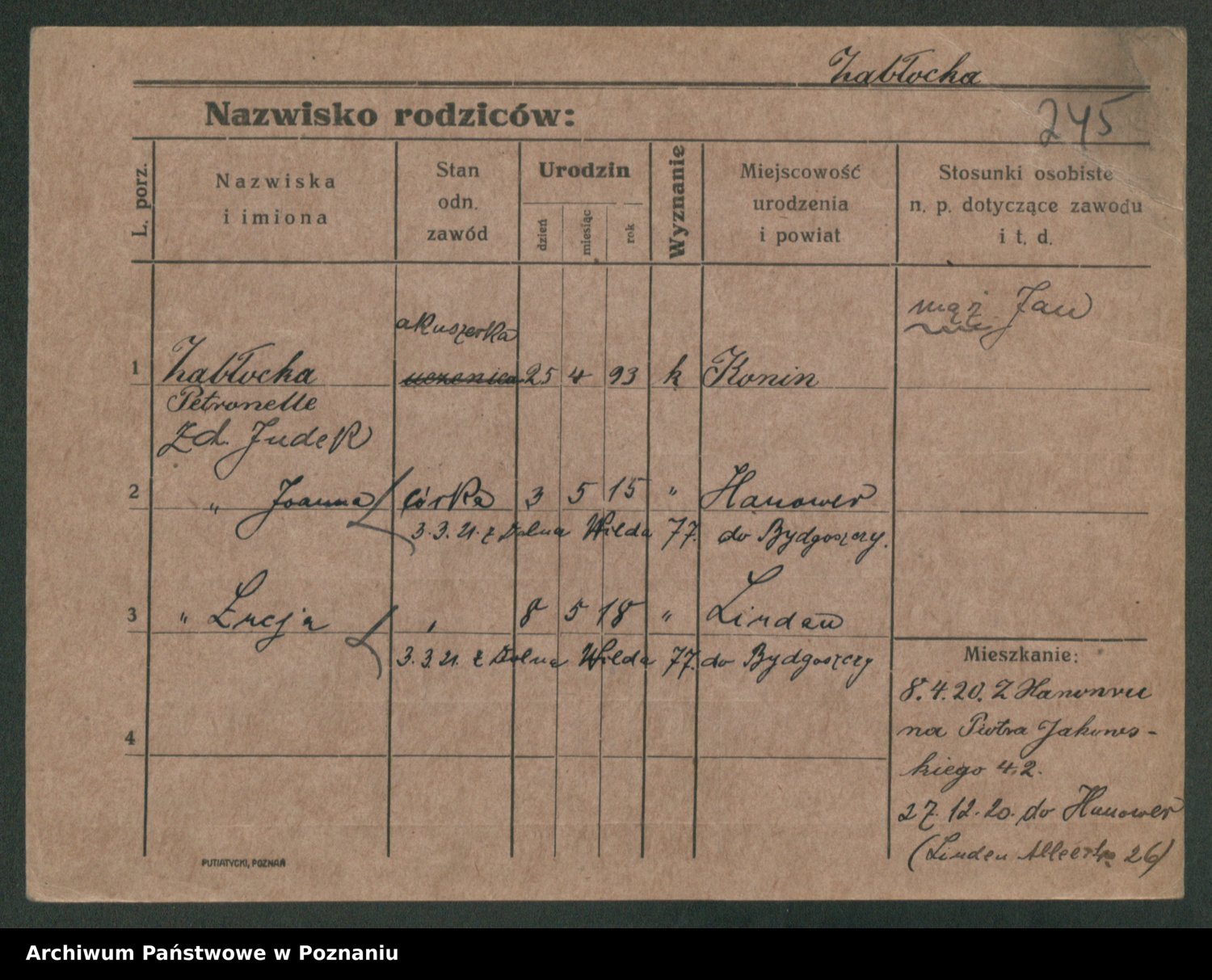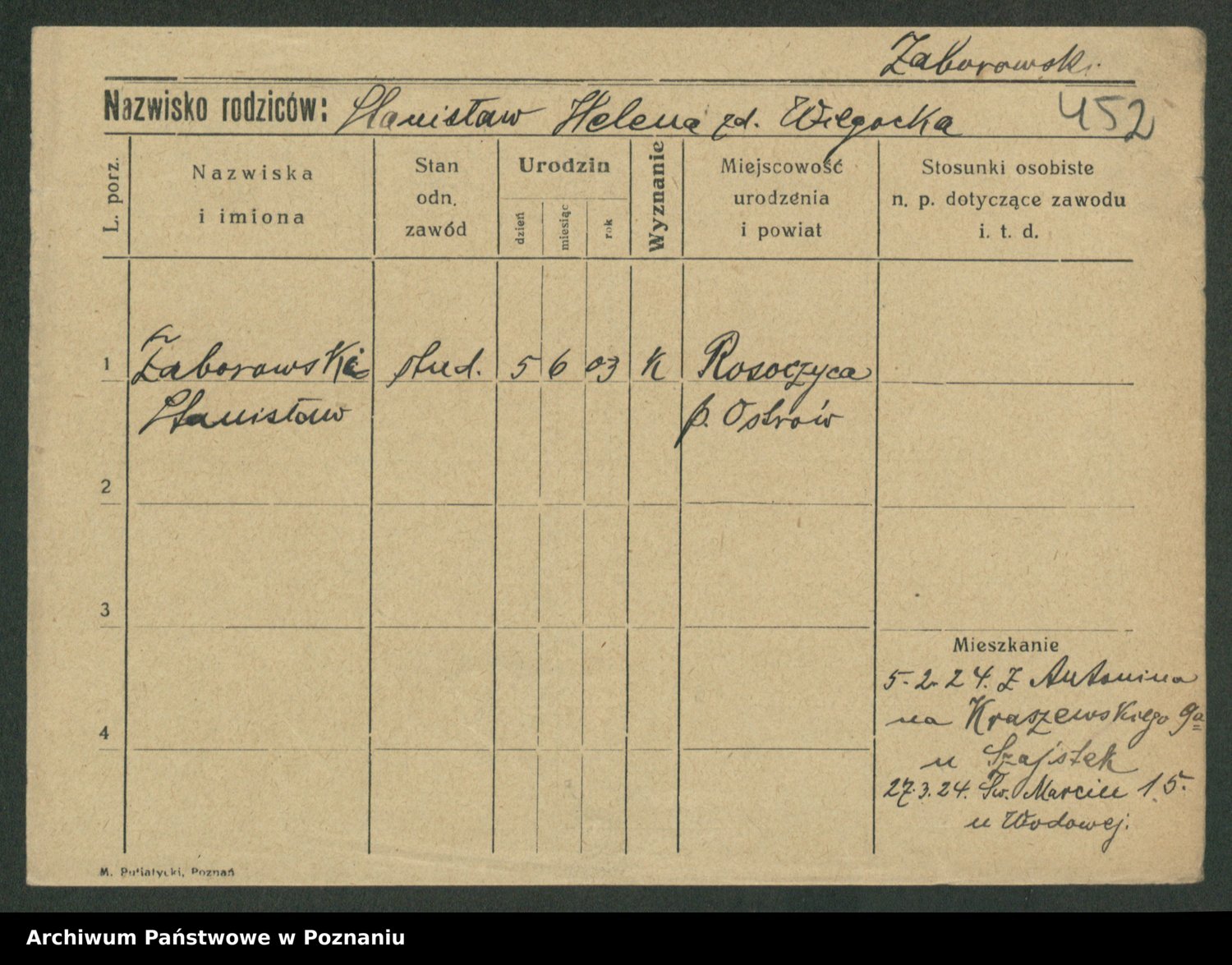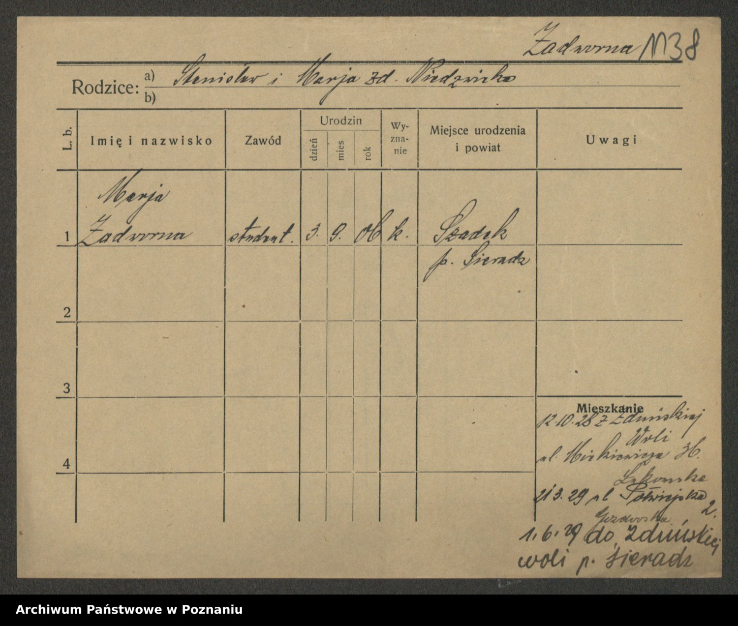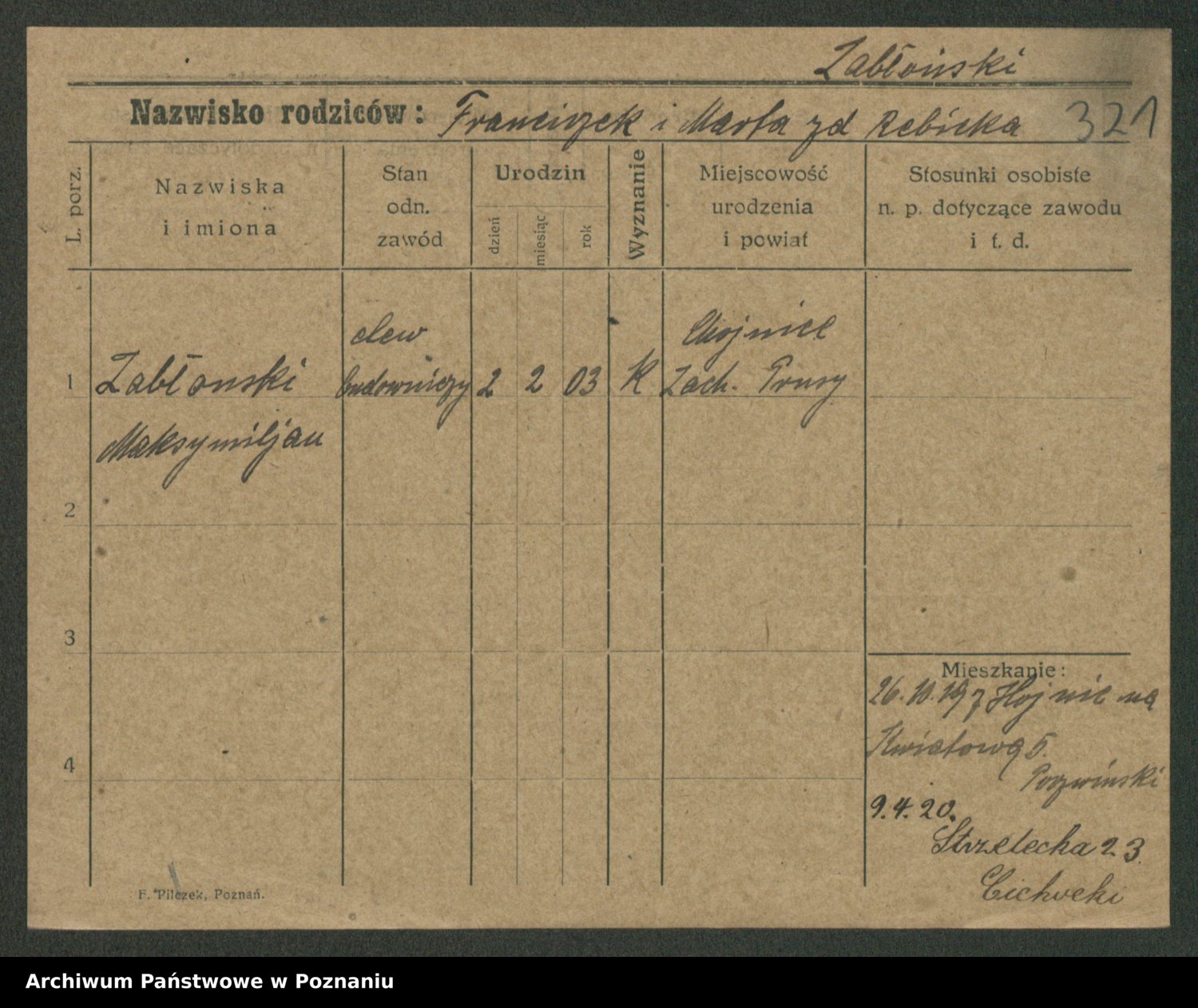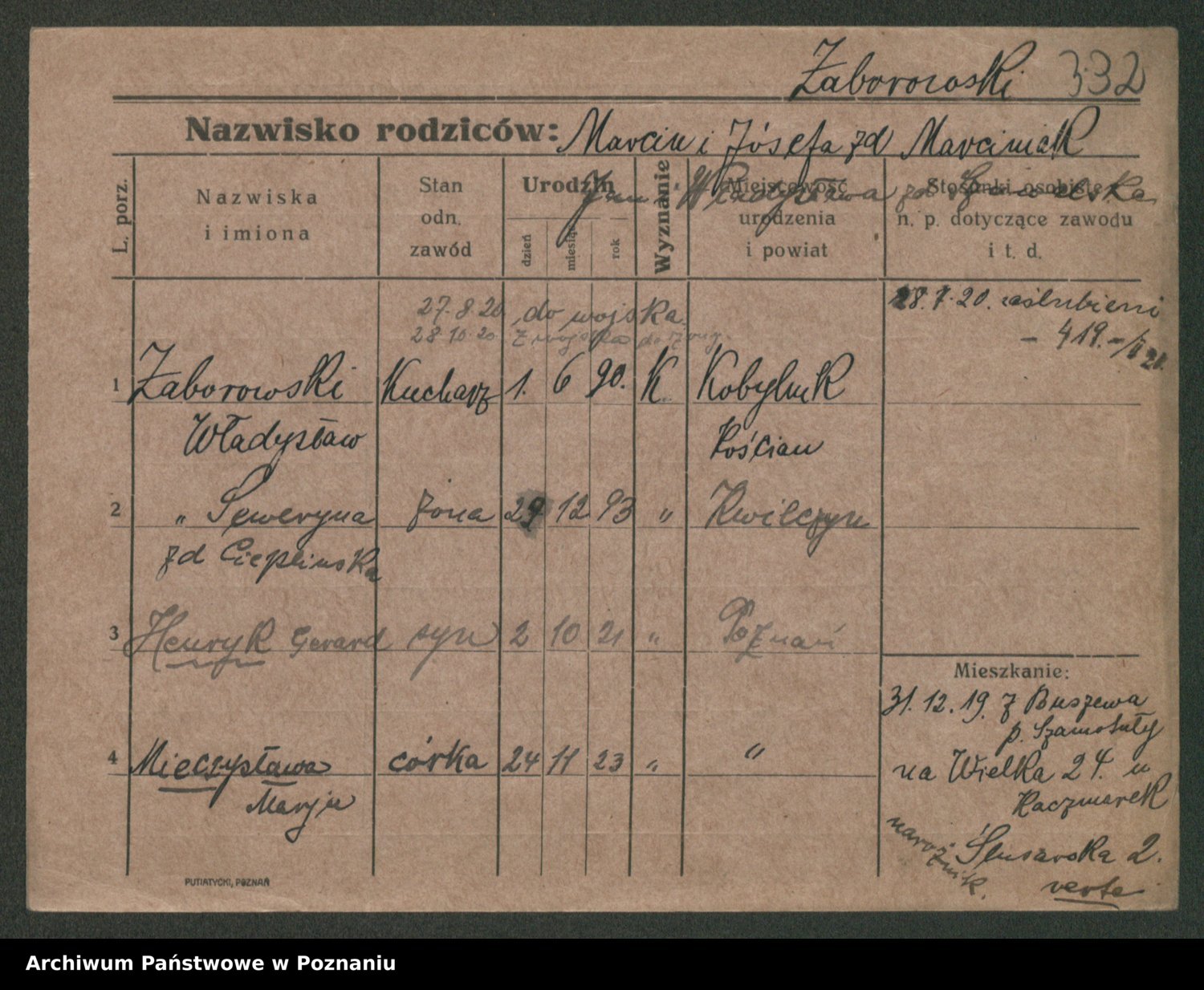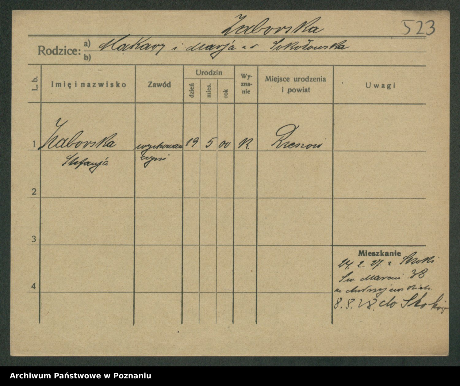 Żabczyński z.d. Zieleńkiewicz, Marja