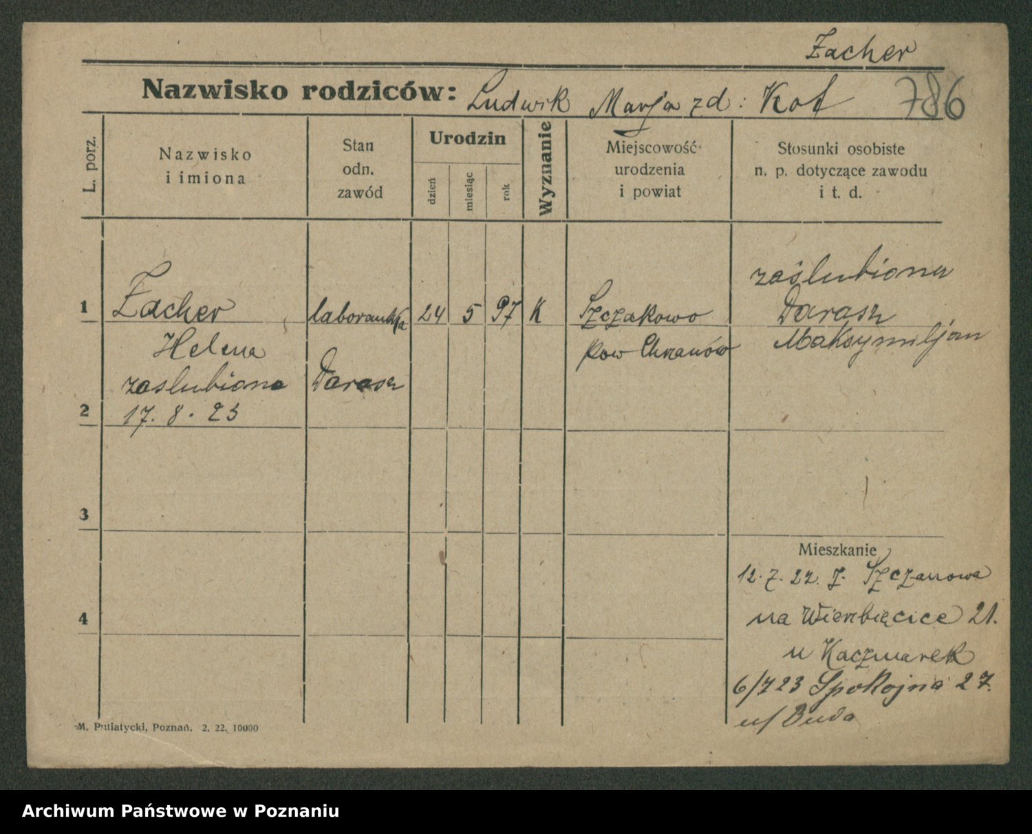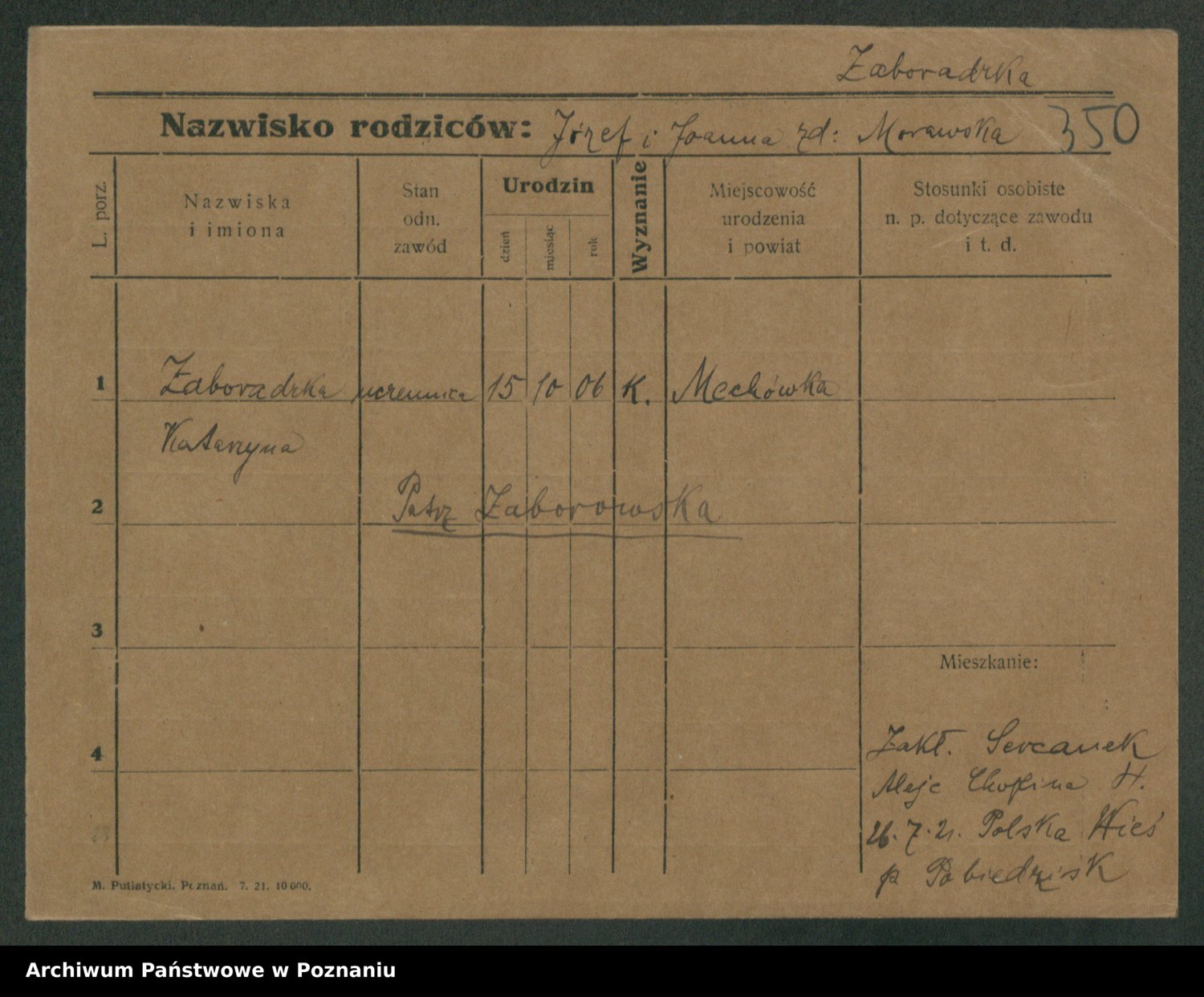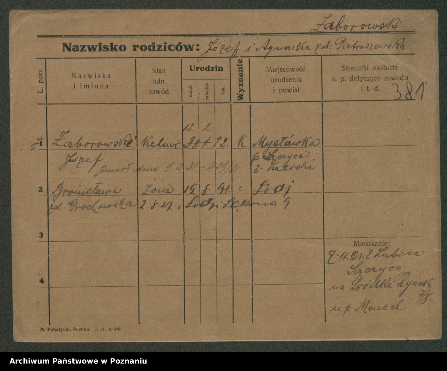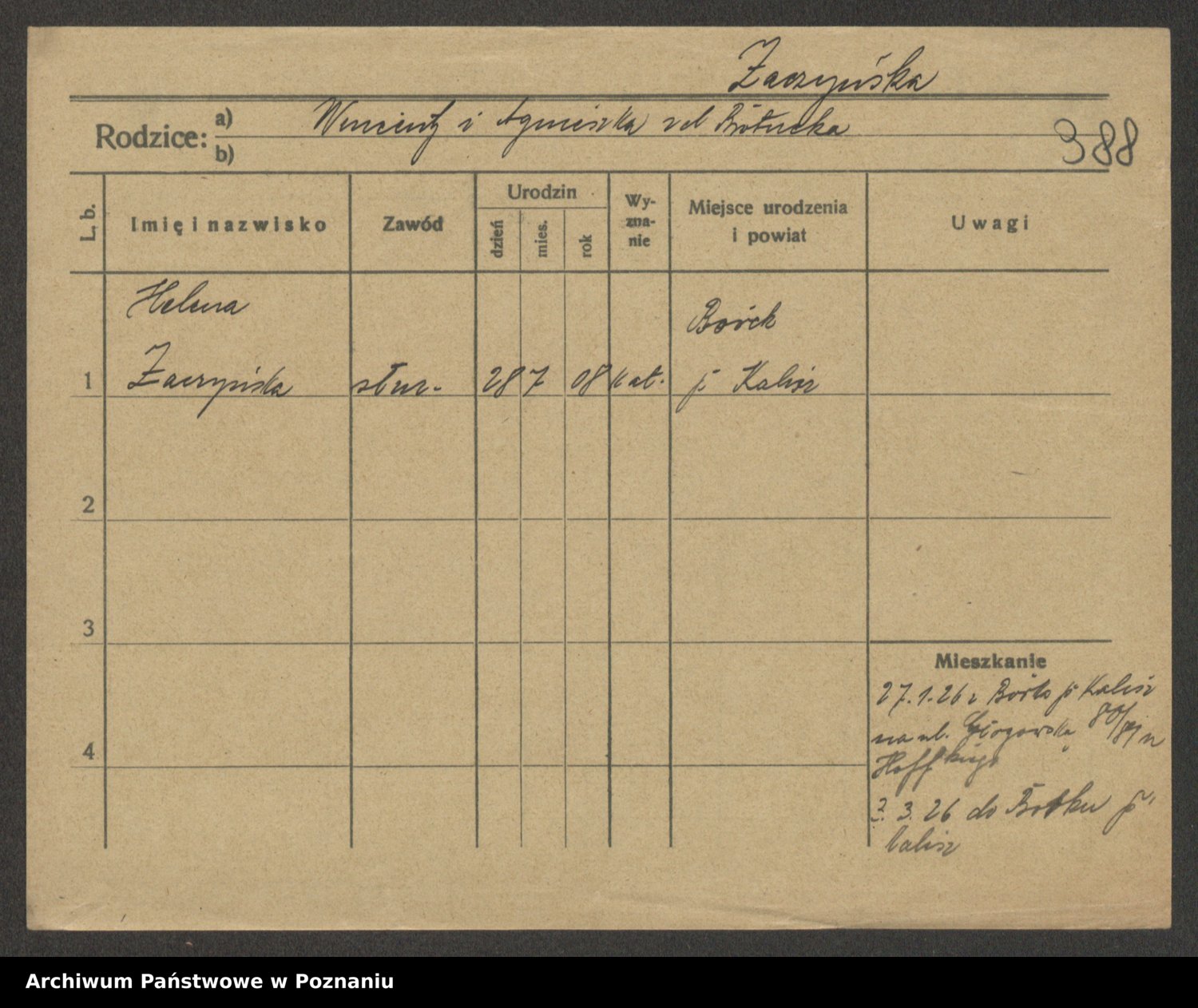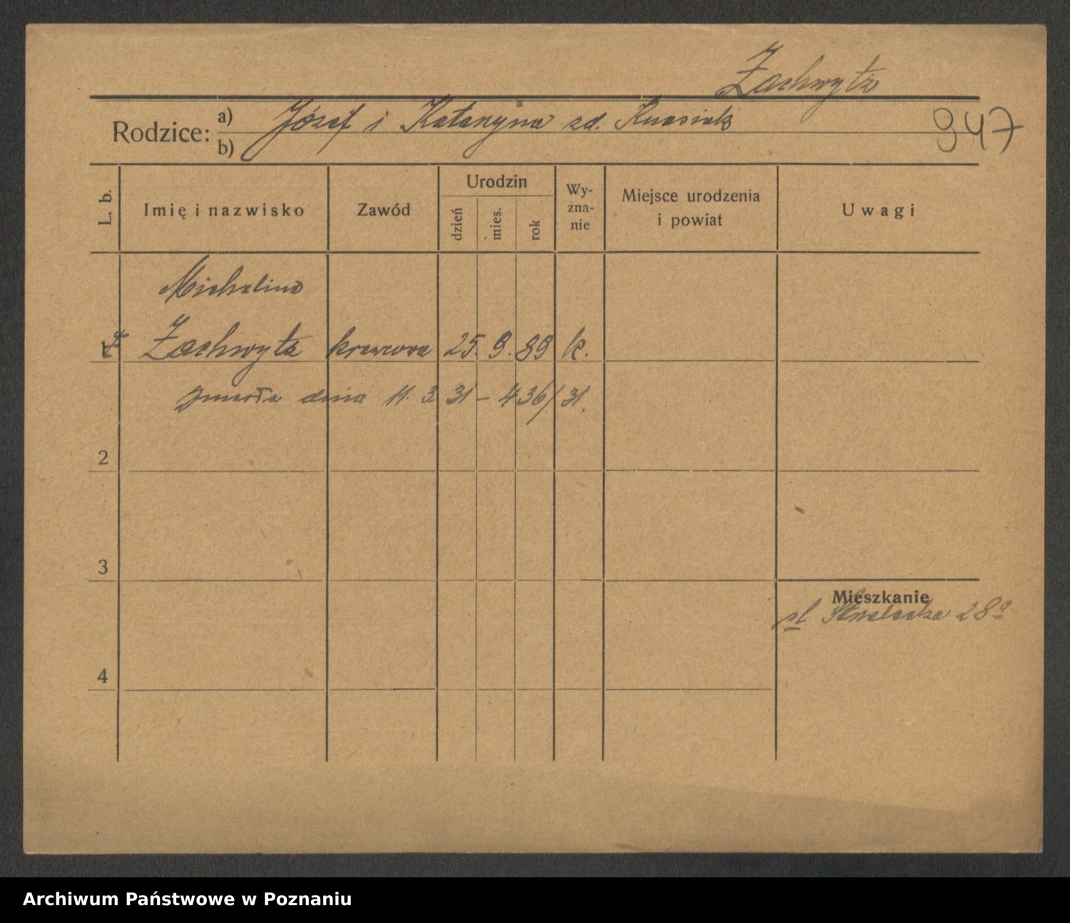 Żabczyński z.d. Zieleńkiewicz, Marja