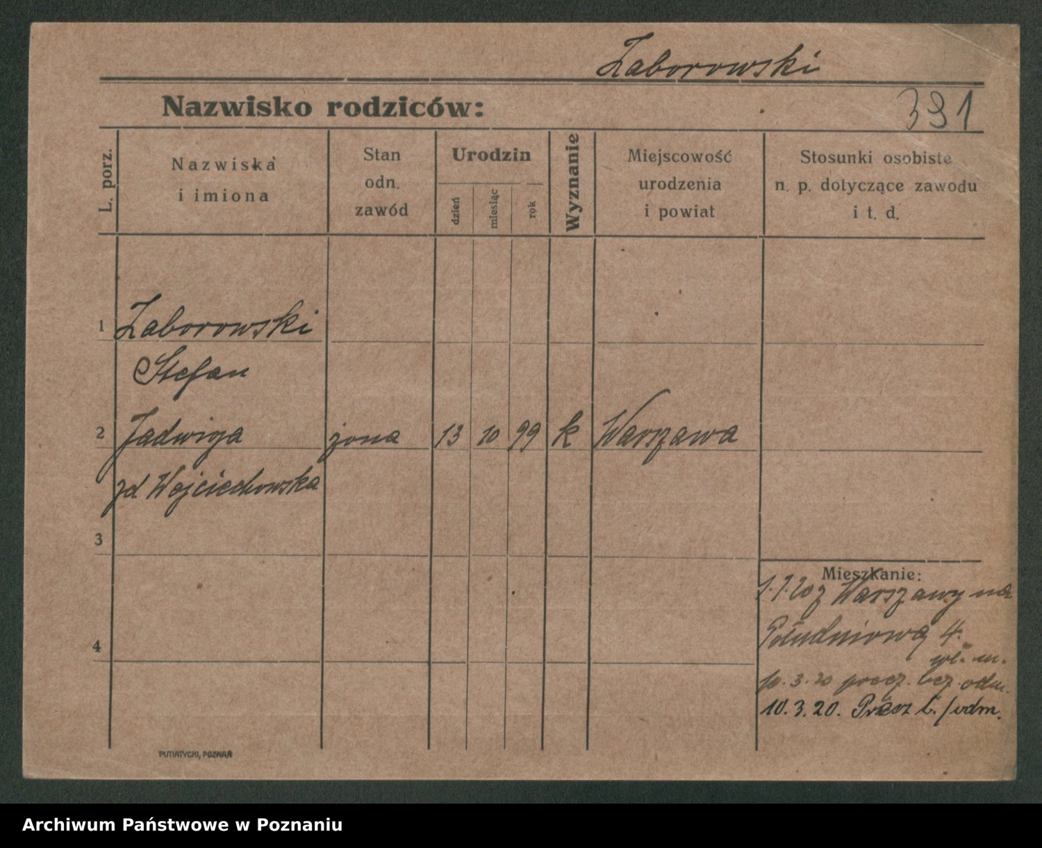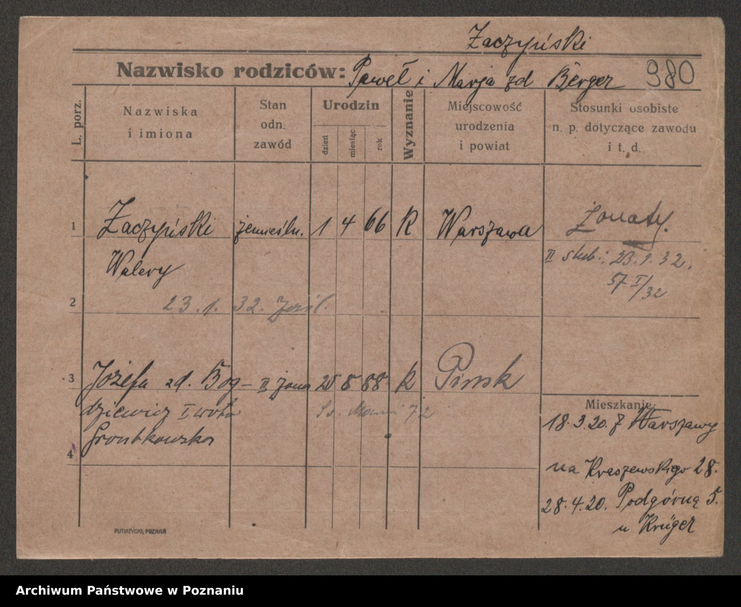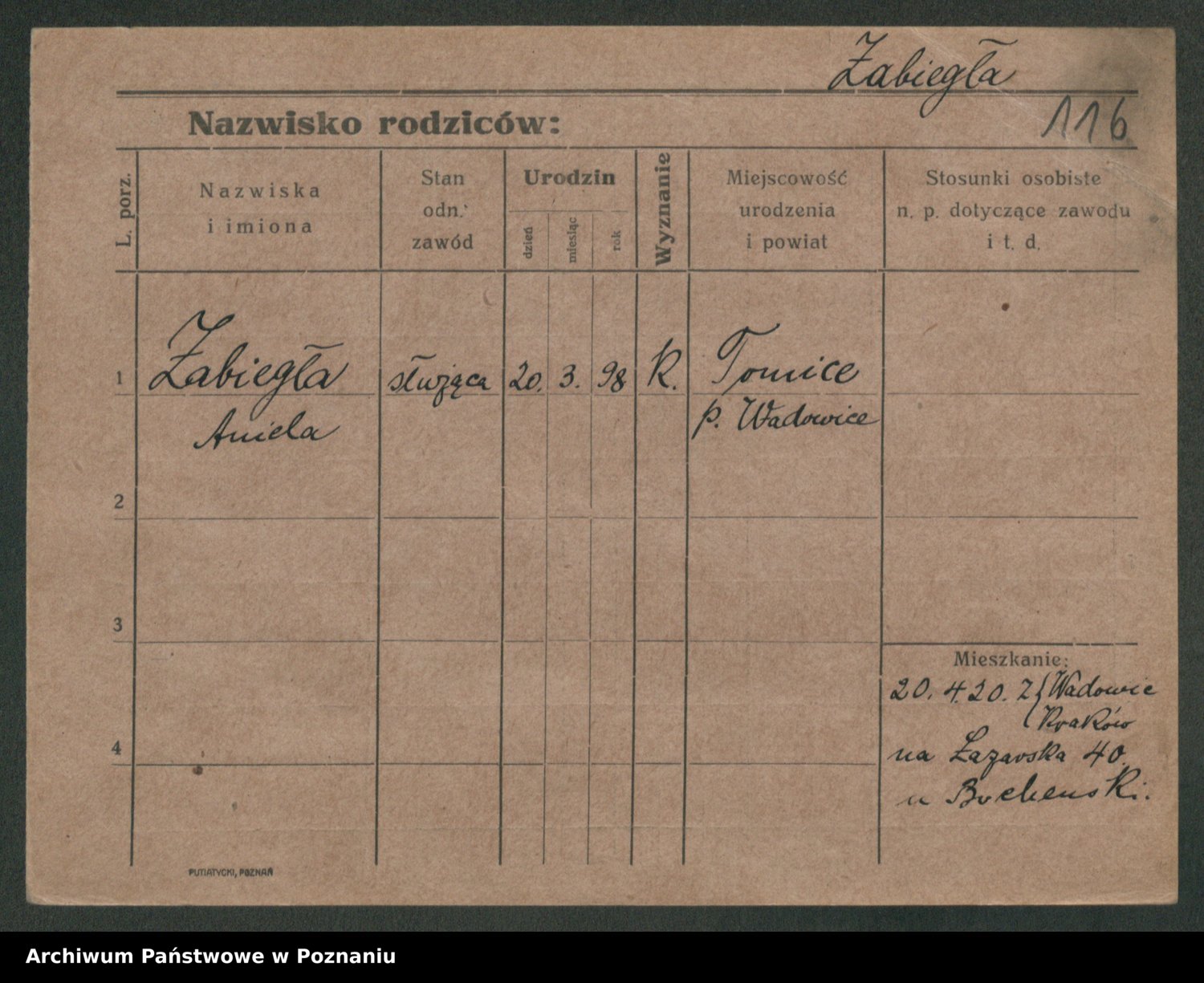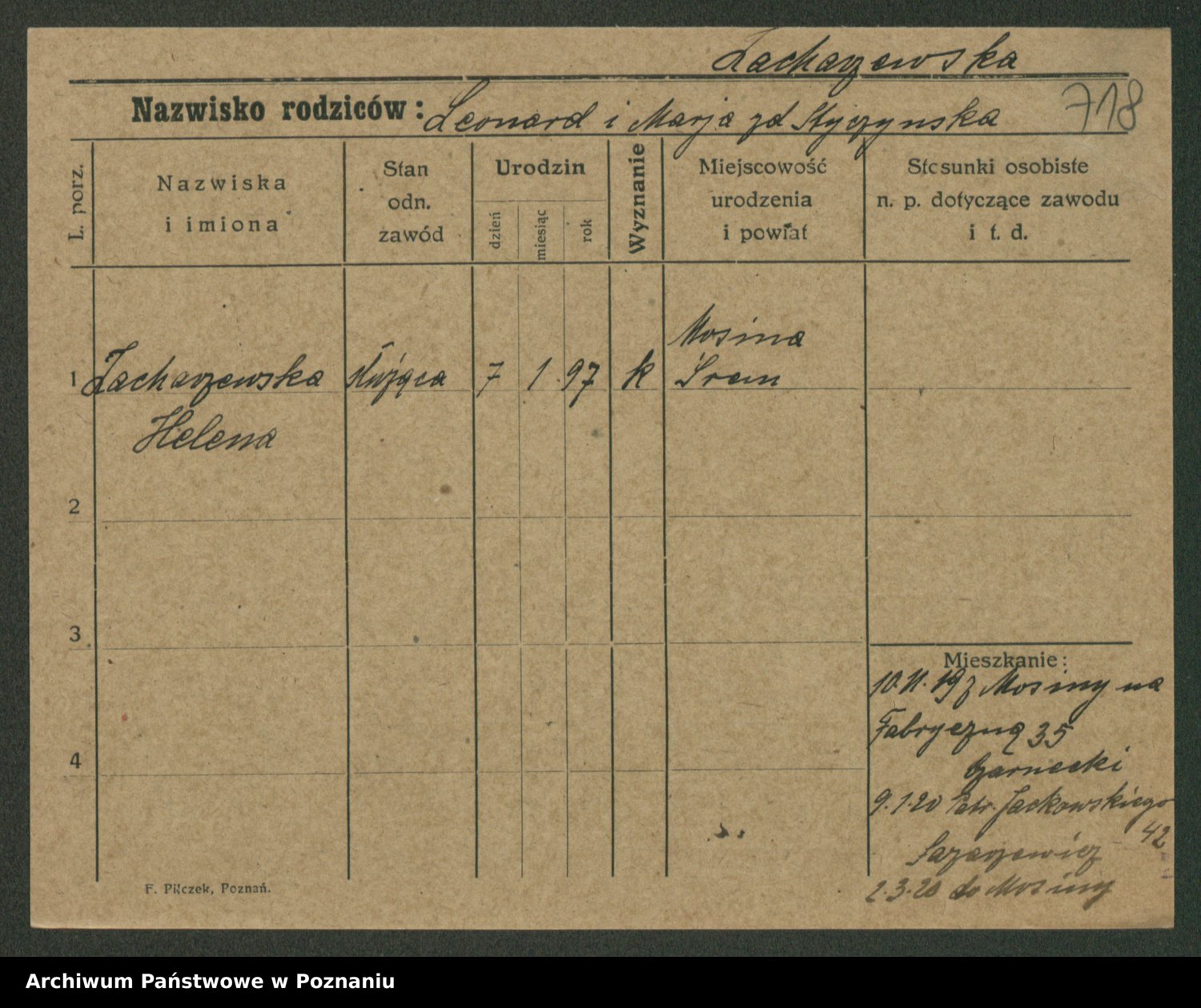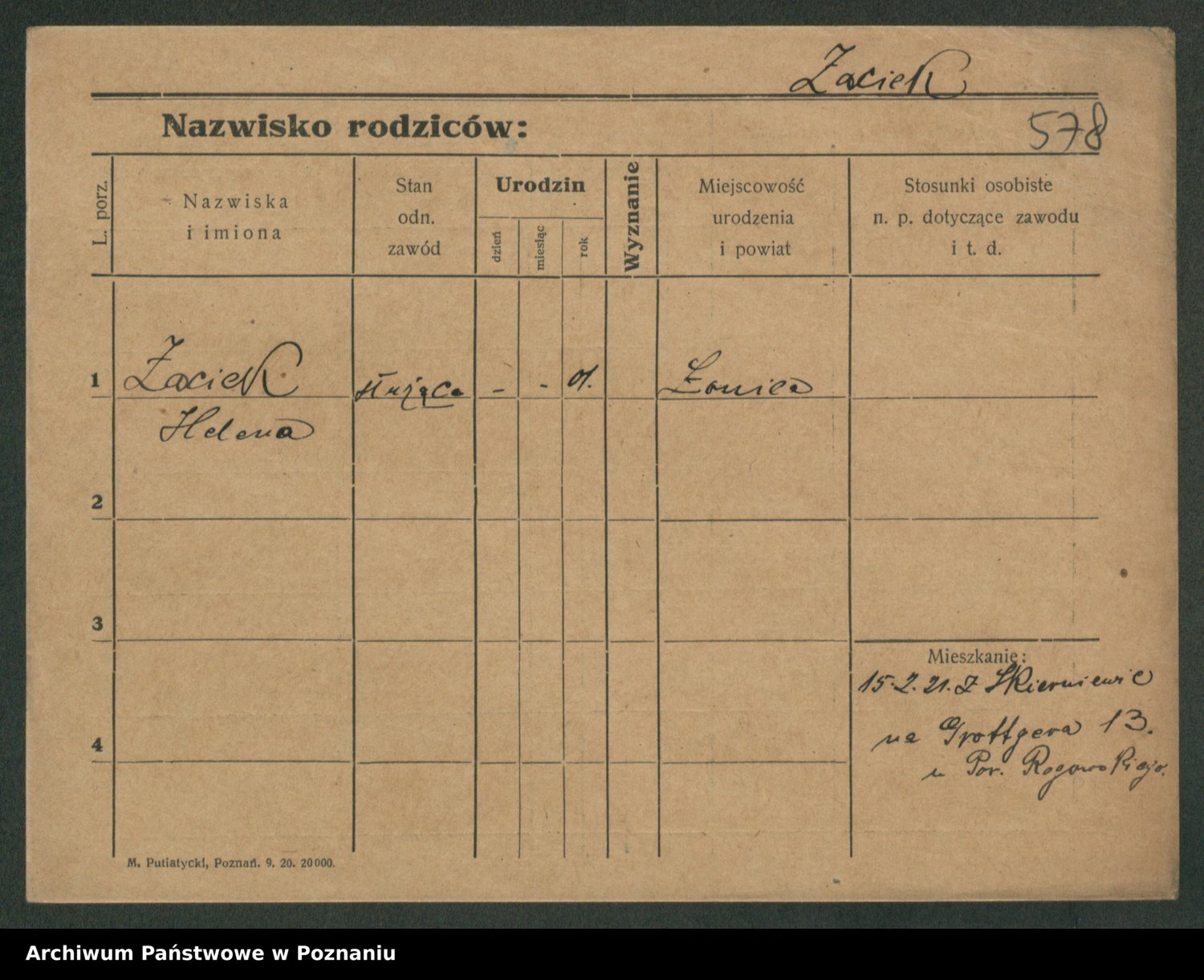 Żabczyński z.d. Zieleńkiewicz, Marja