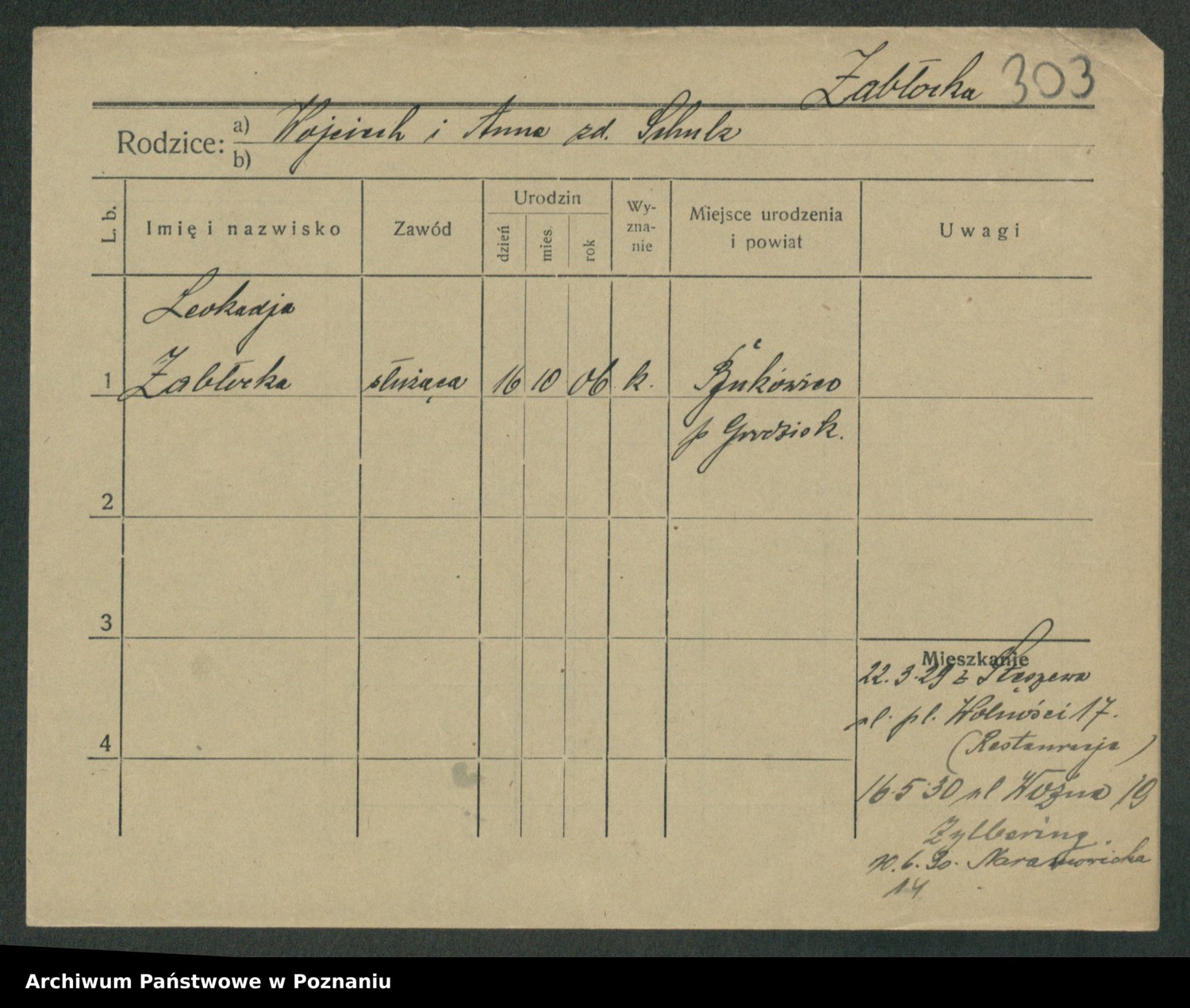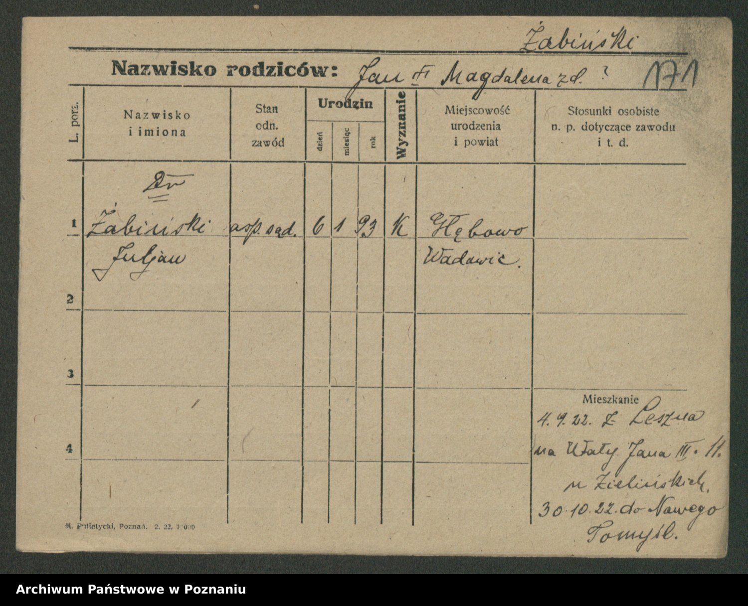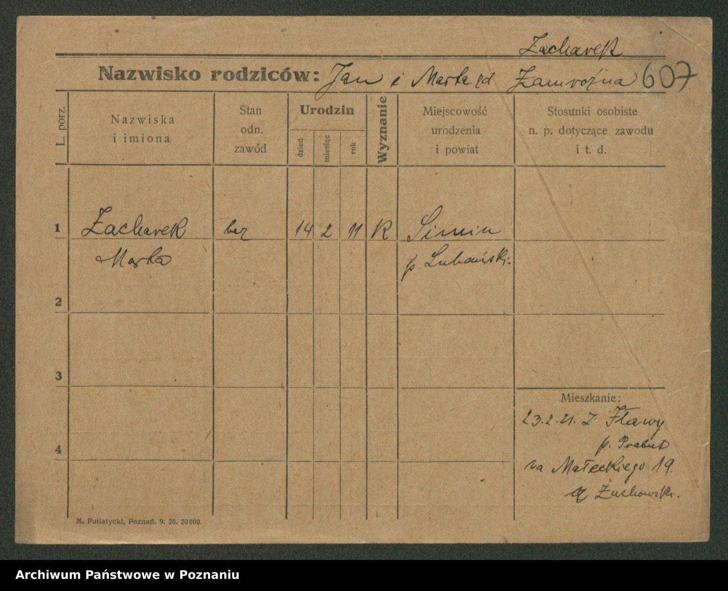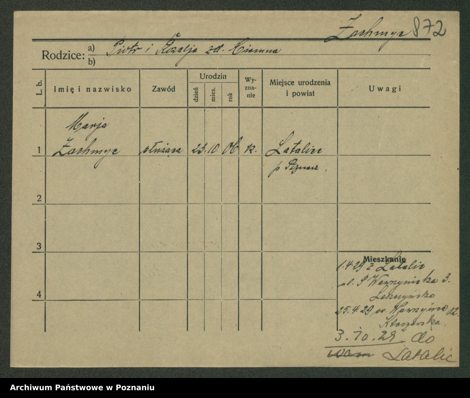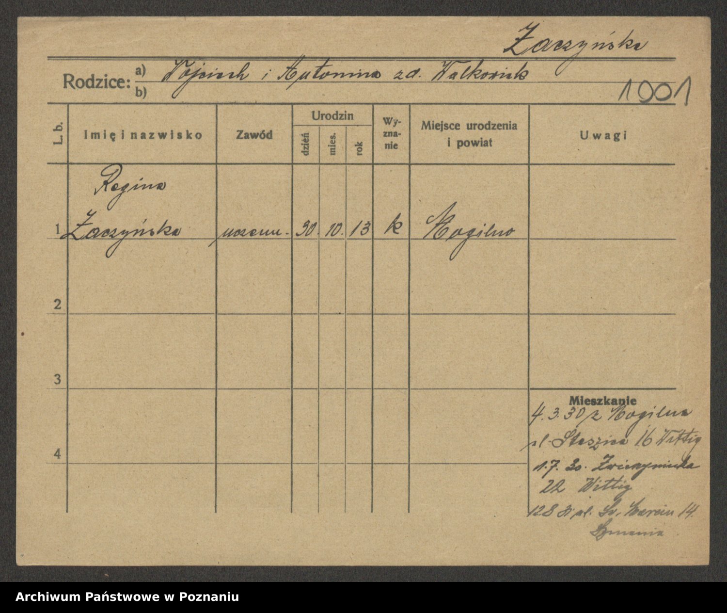 Żabczyński z.d. Zieleńkiewicz, Marja