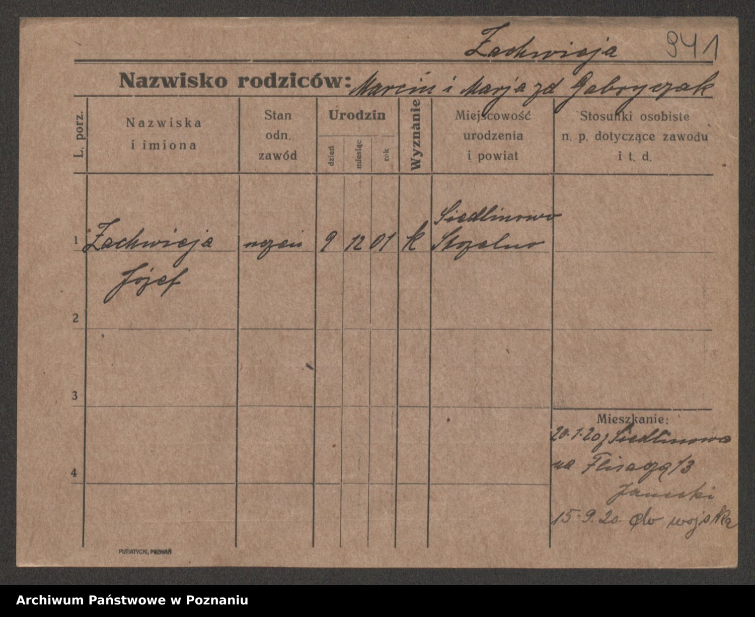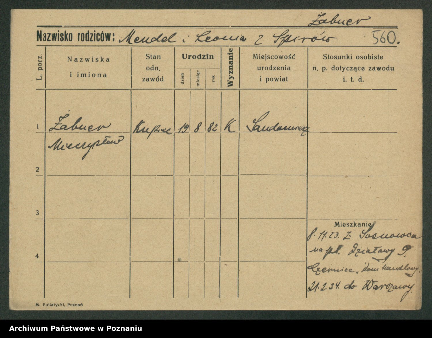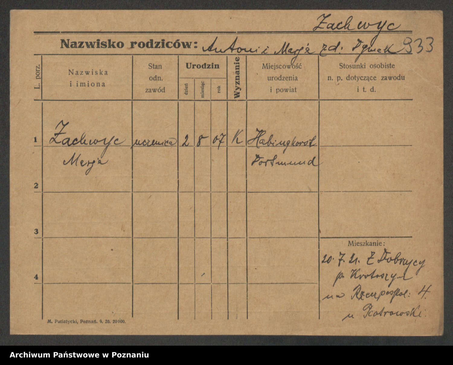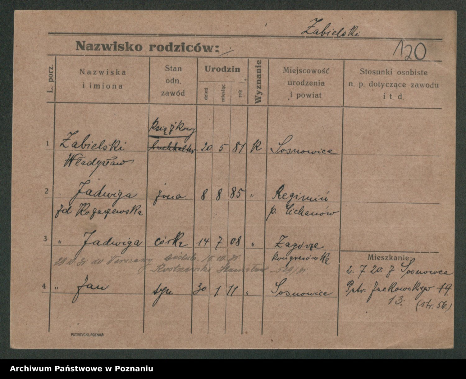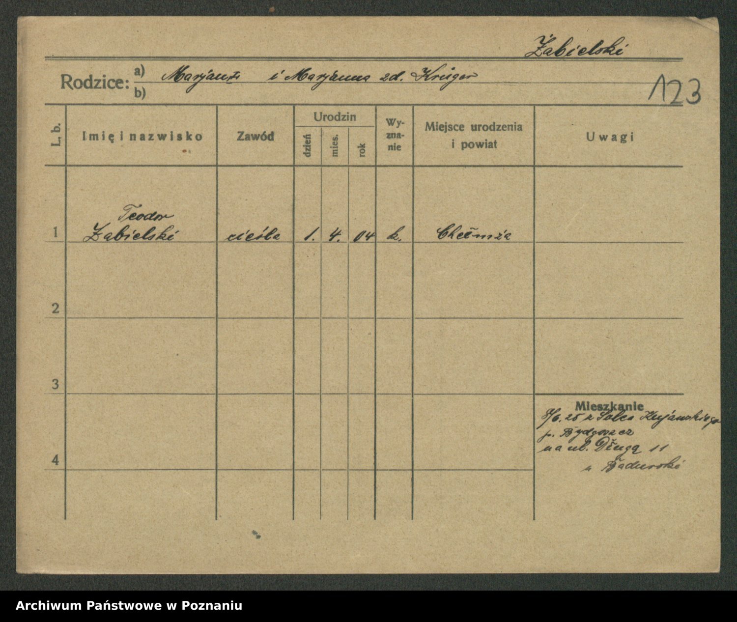 Żabczyński z.d. Zieleńkiewicz, Marja