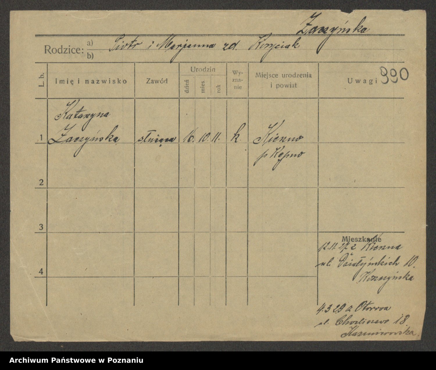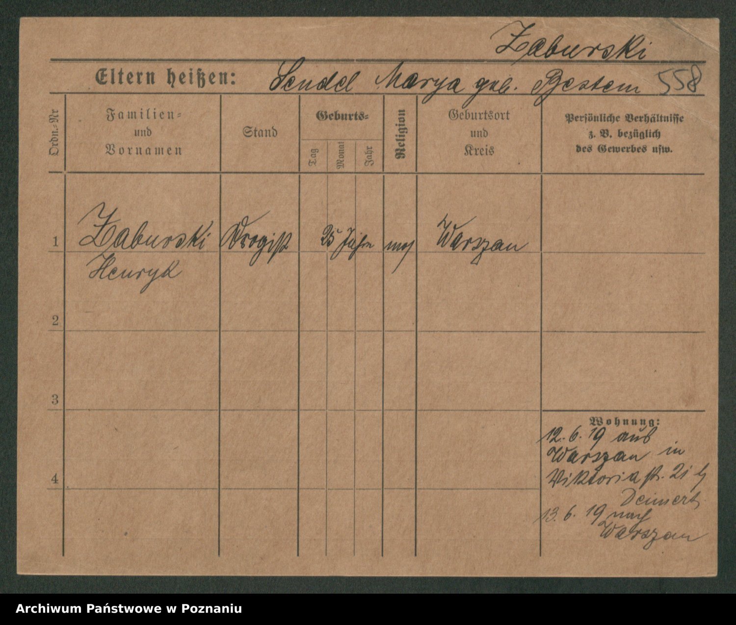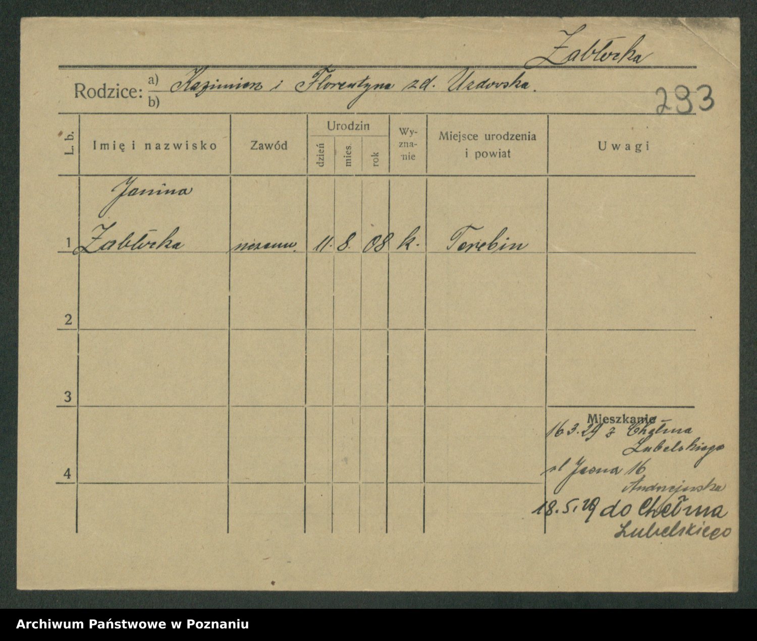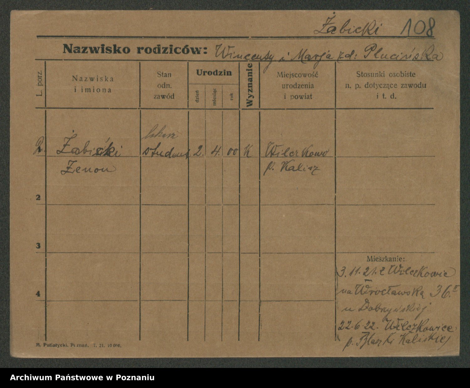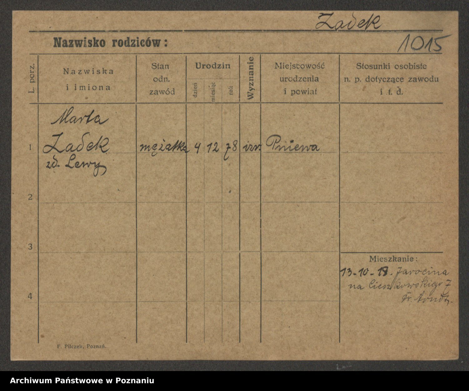 Żabczyński z.d. Zieleńkiewicz, Marja