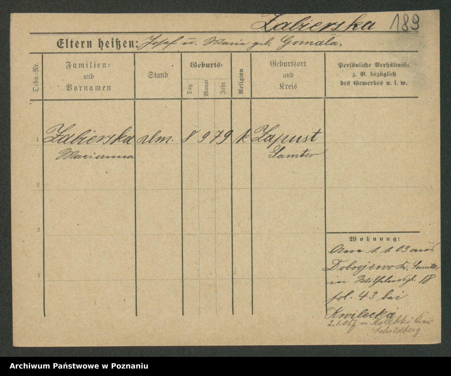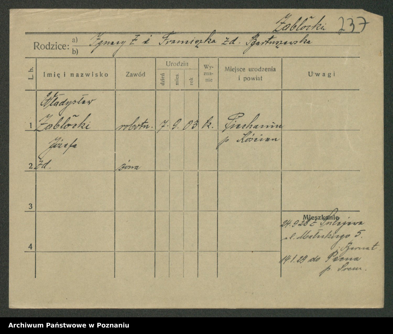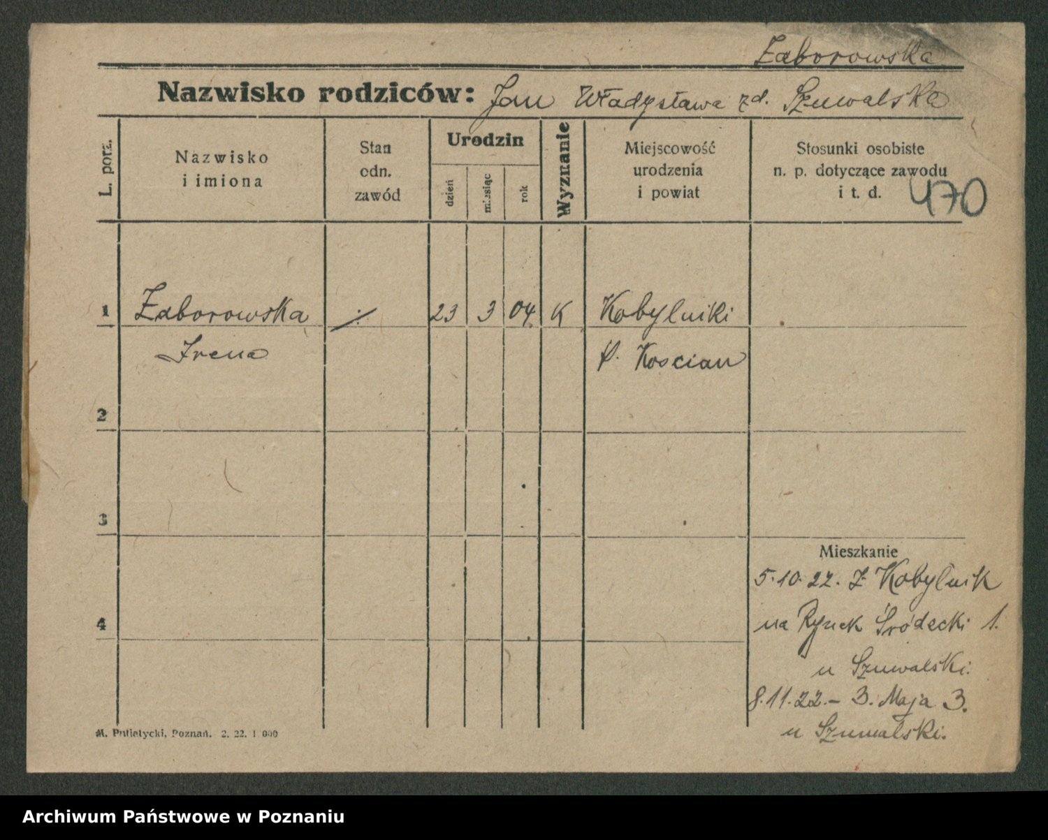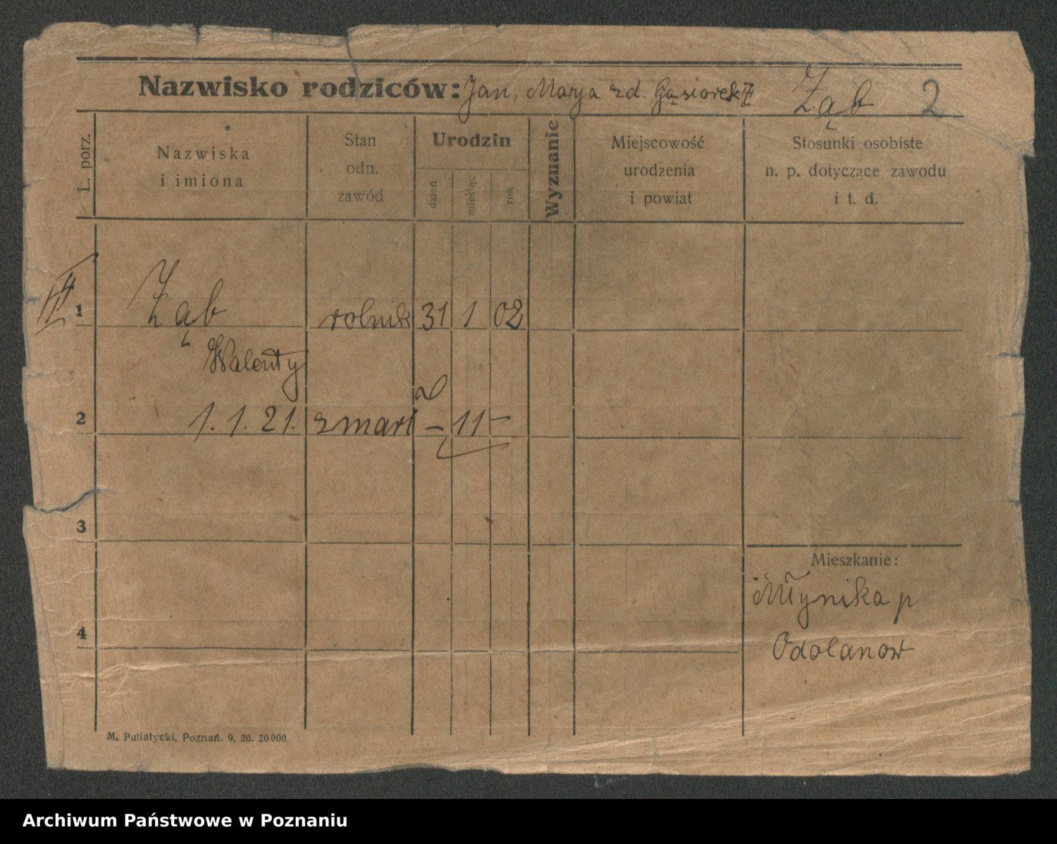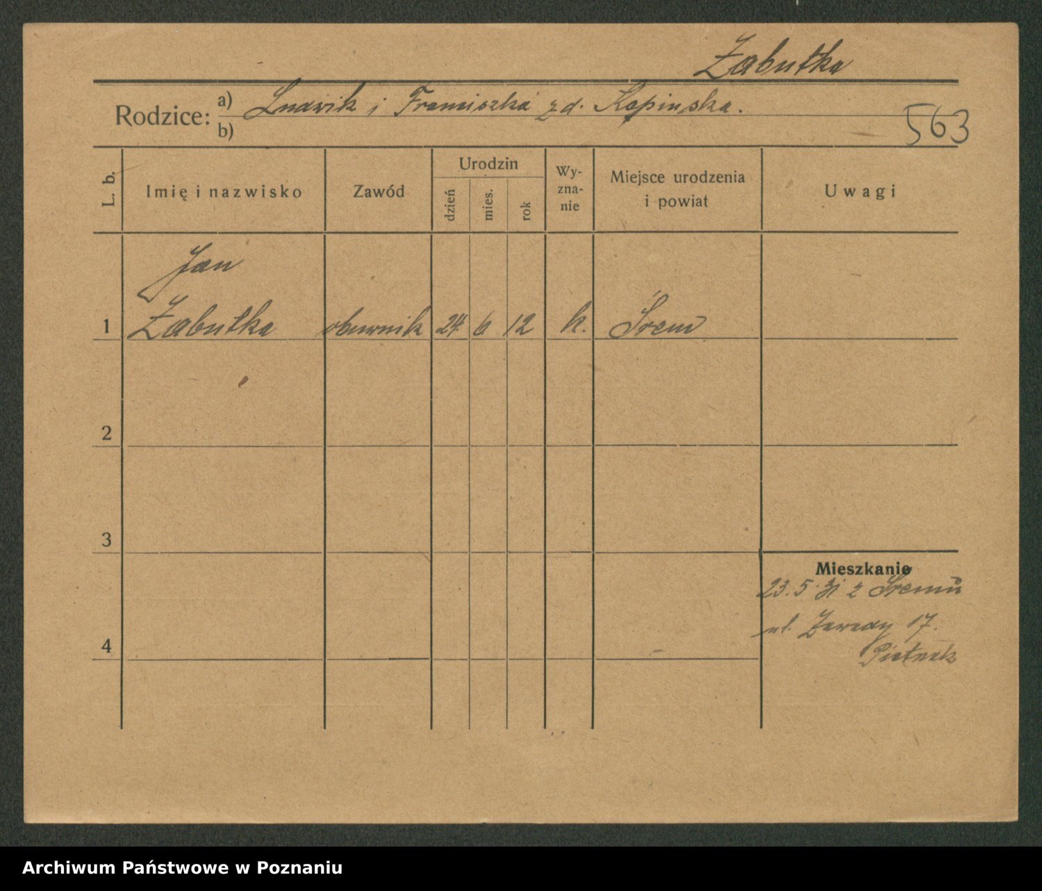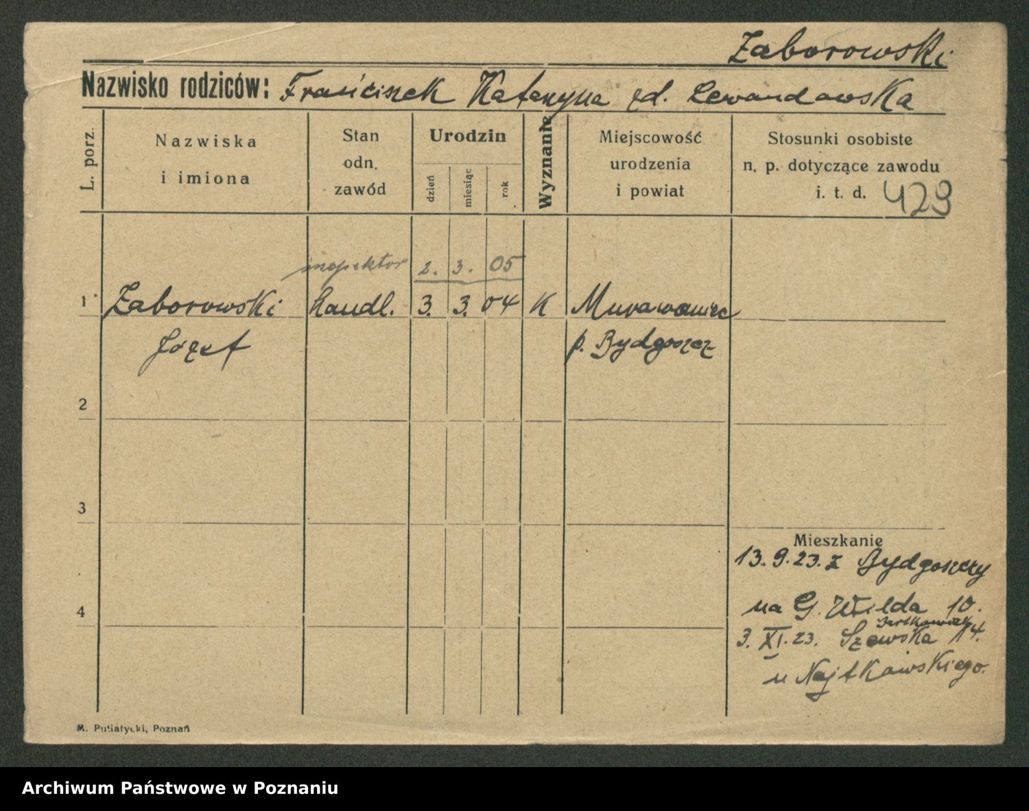 Żabczyński z.d. Zieleńkiewicz, Marja