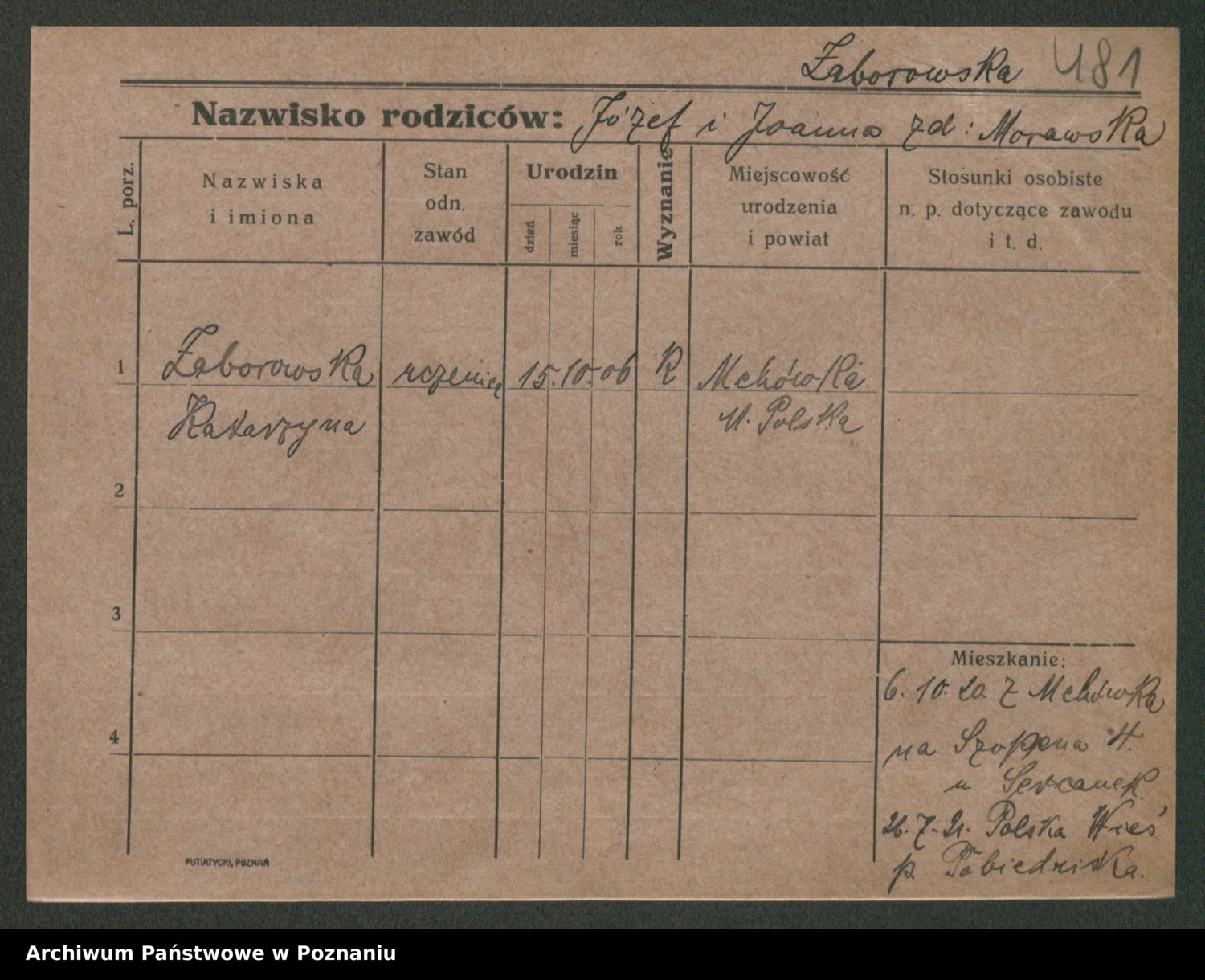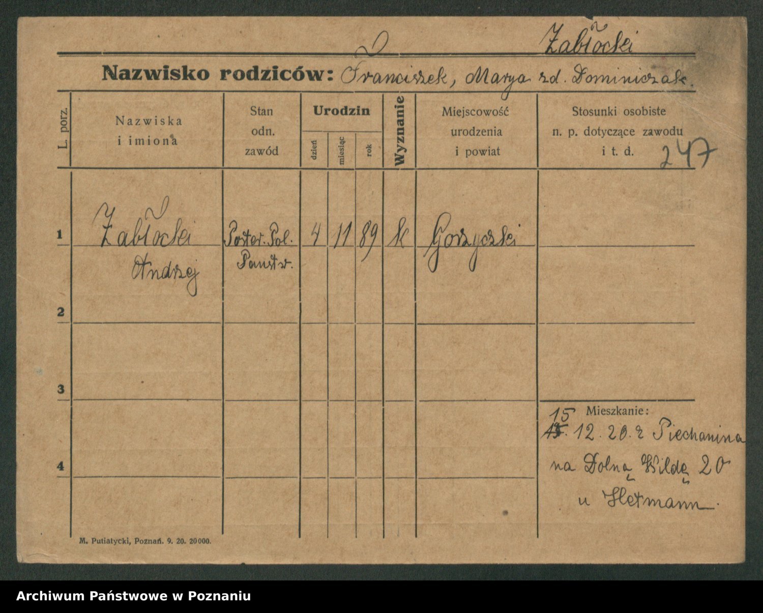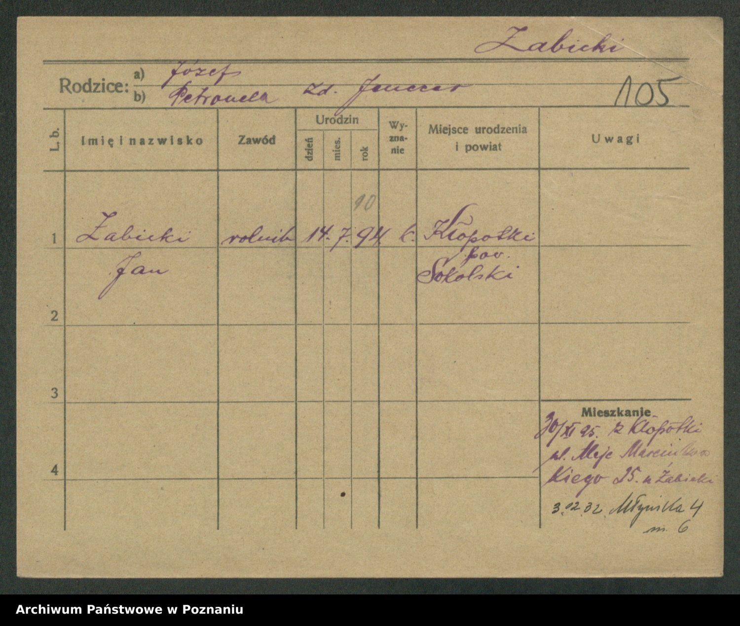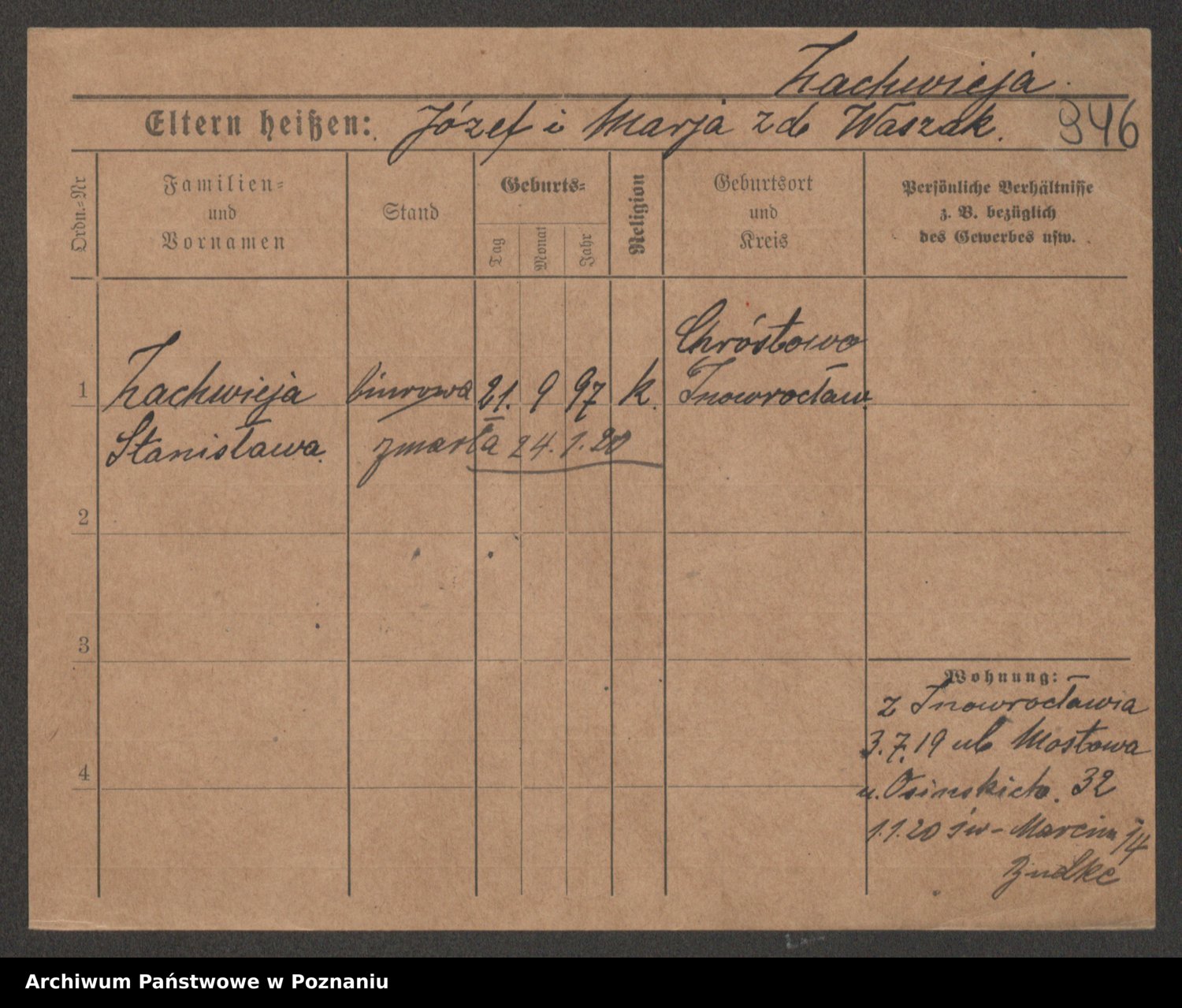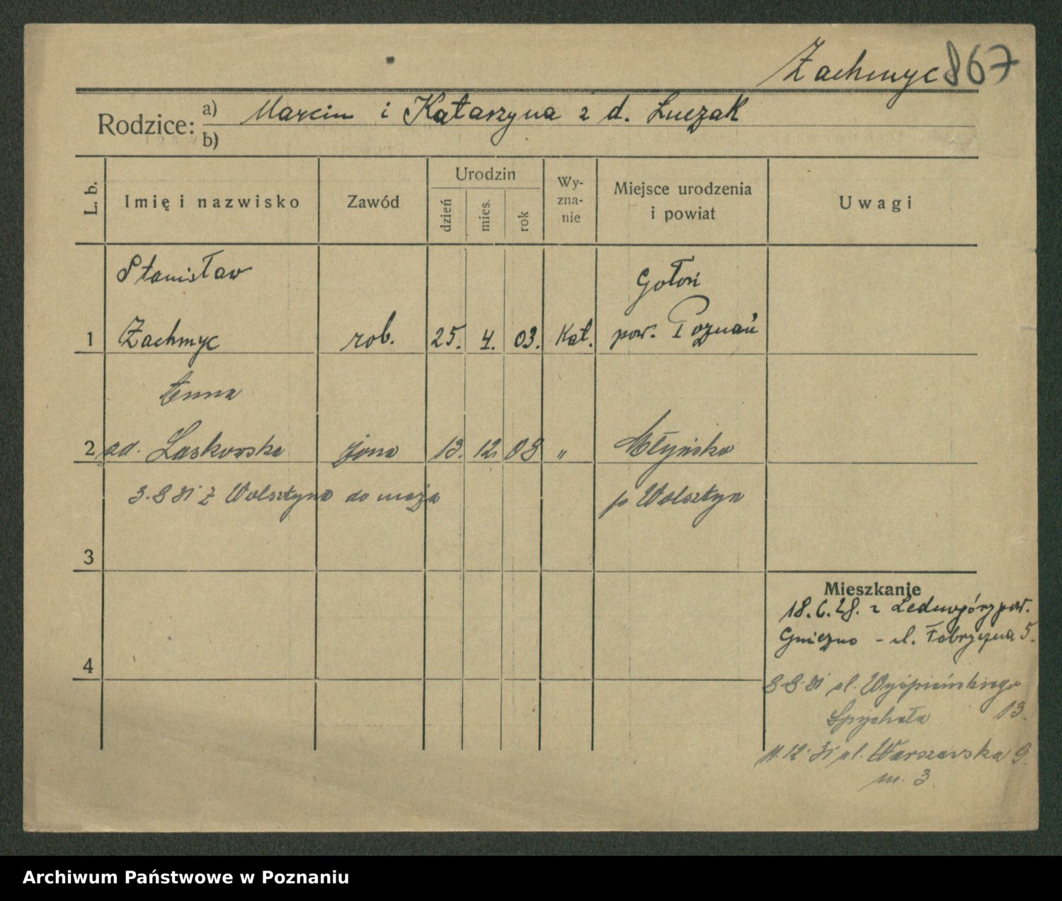 Żabczyński z.d. Zieleńkiewicz, Marja