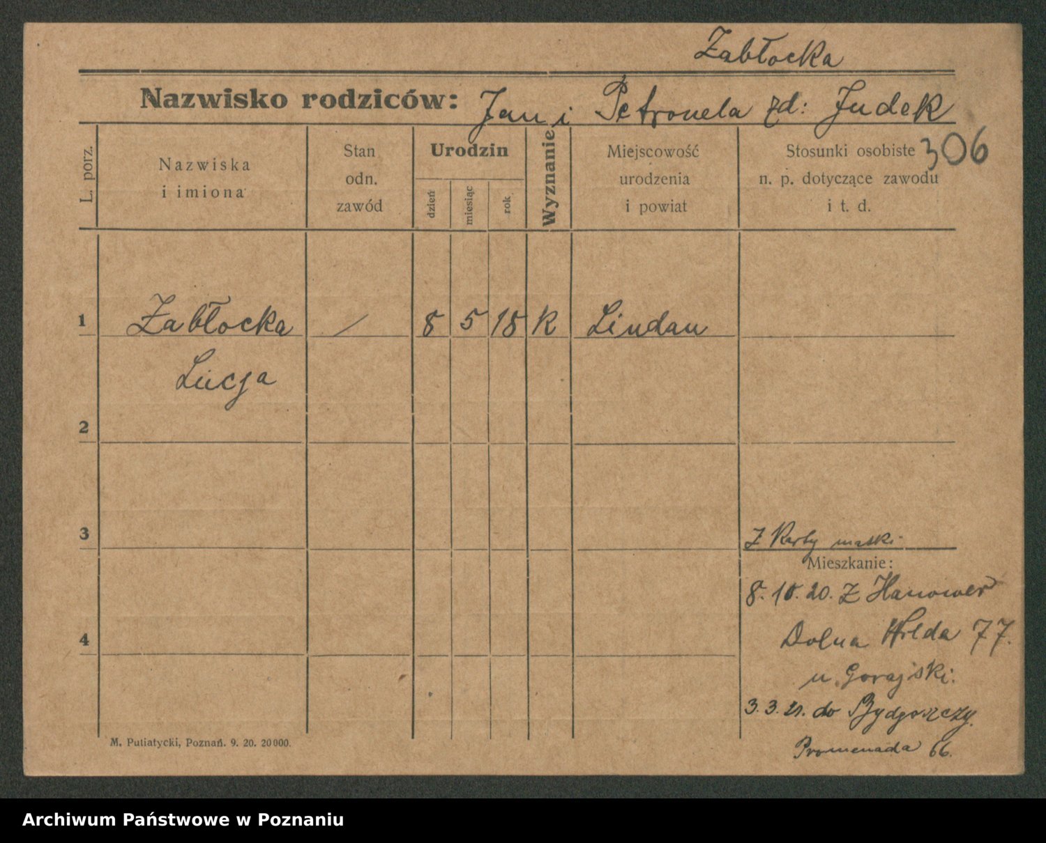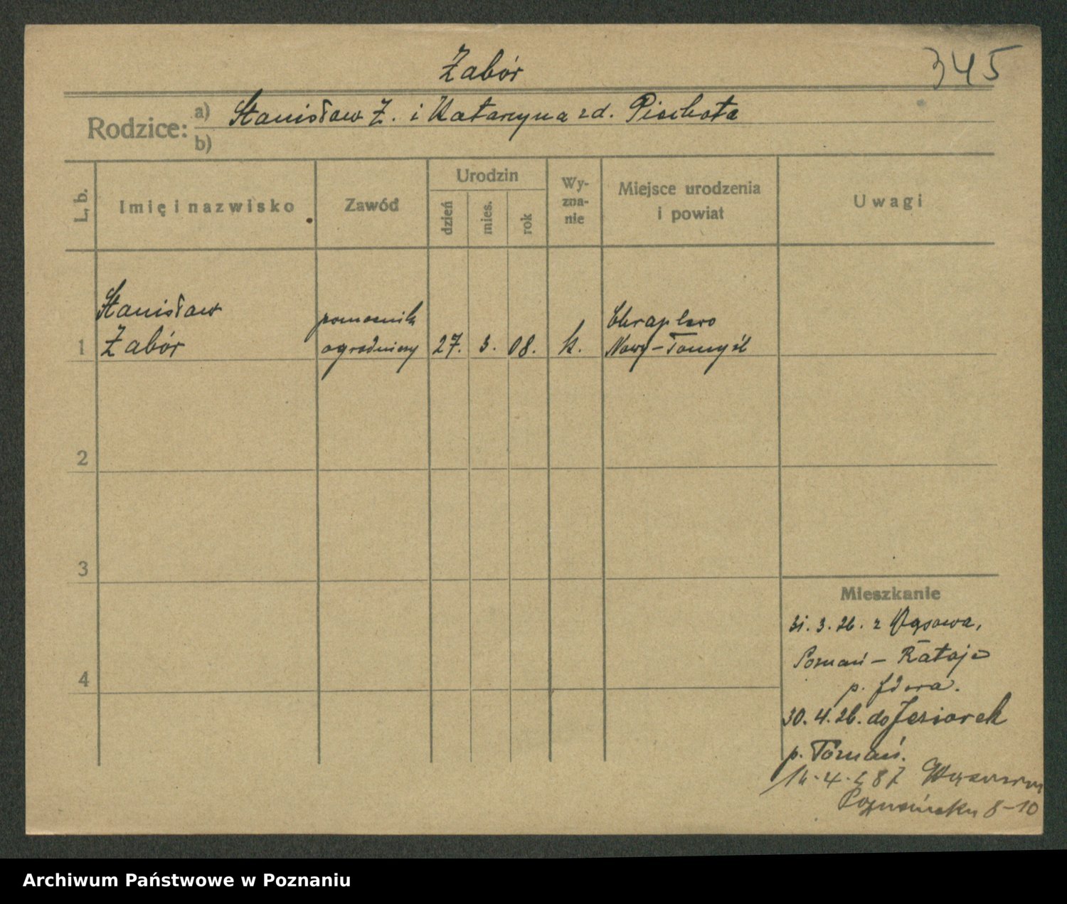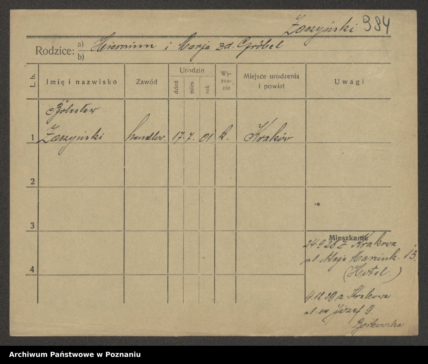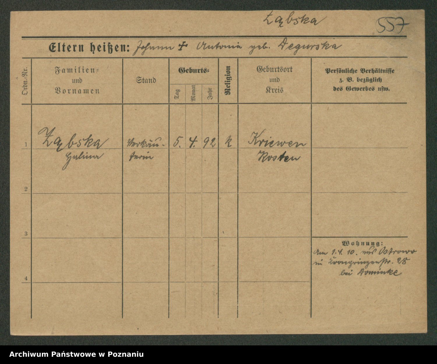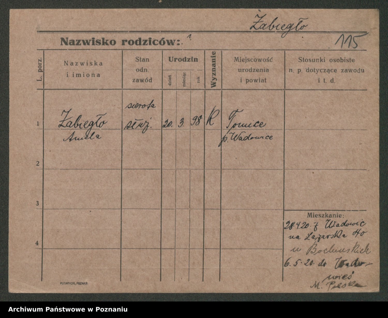 Żabczyński z.d. Zieleńkiewicz, Marja