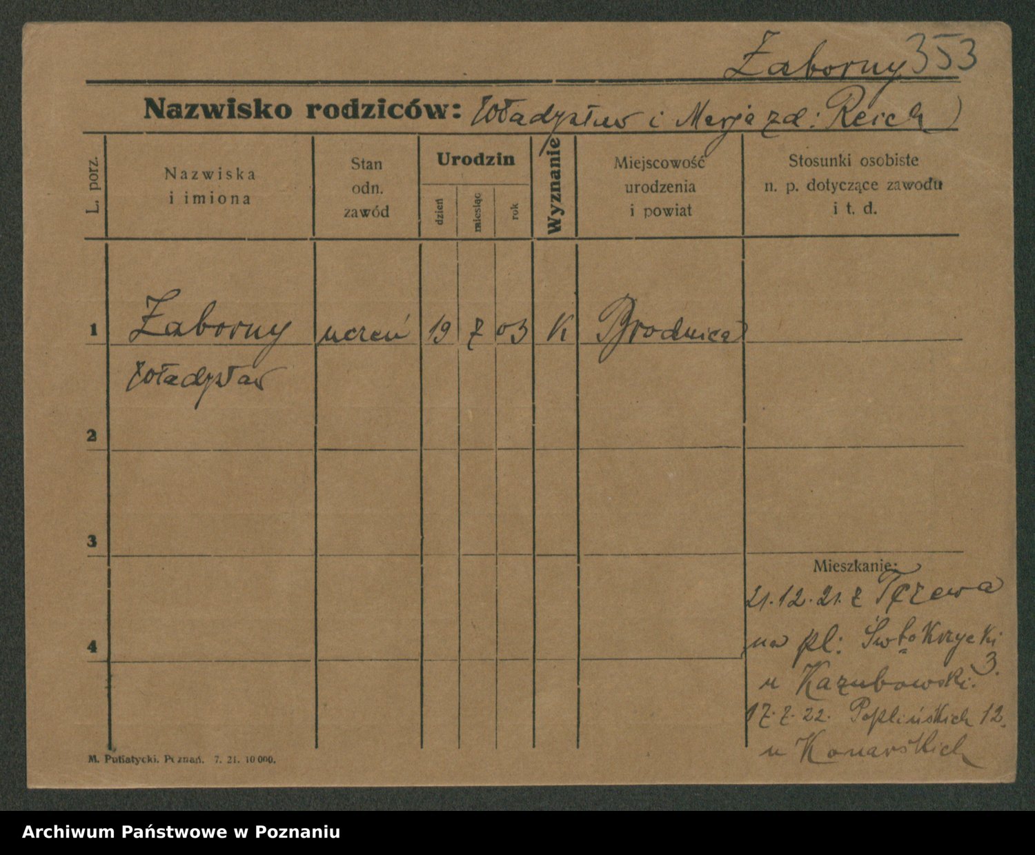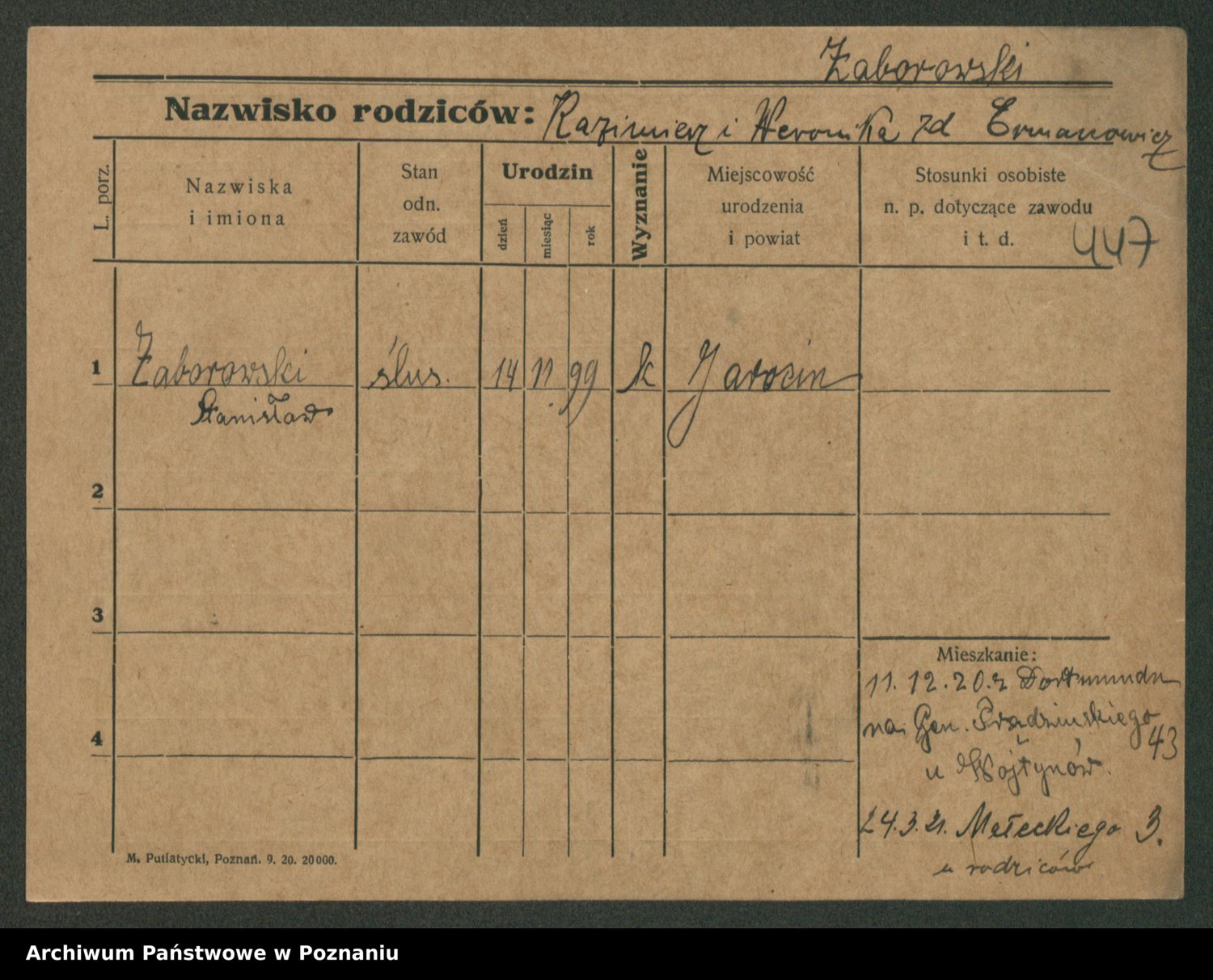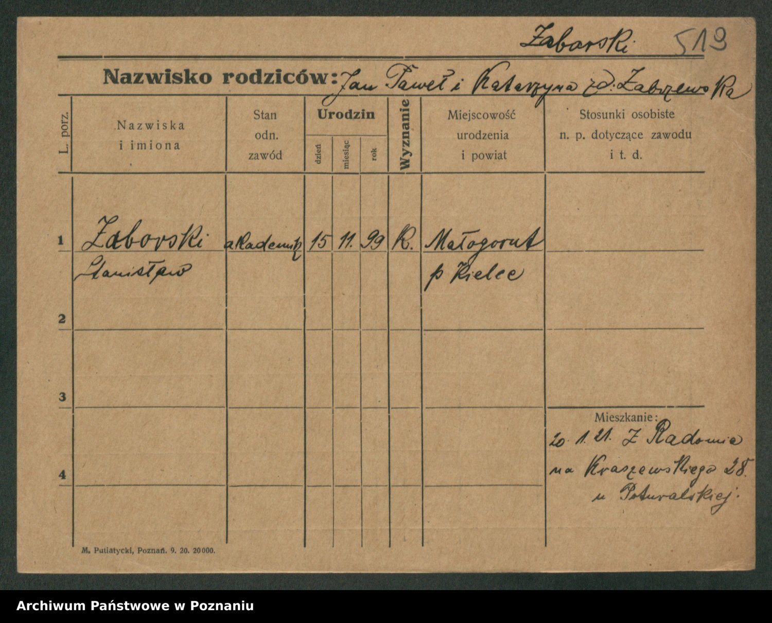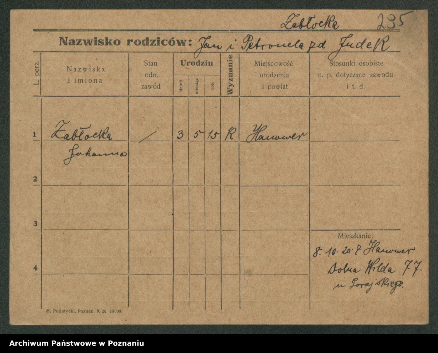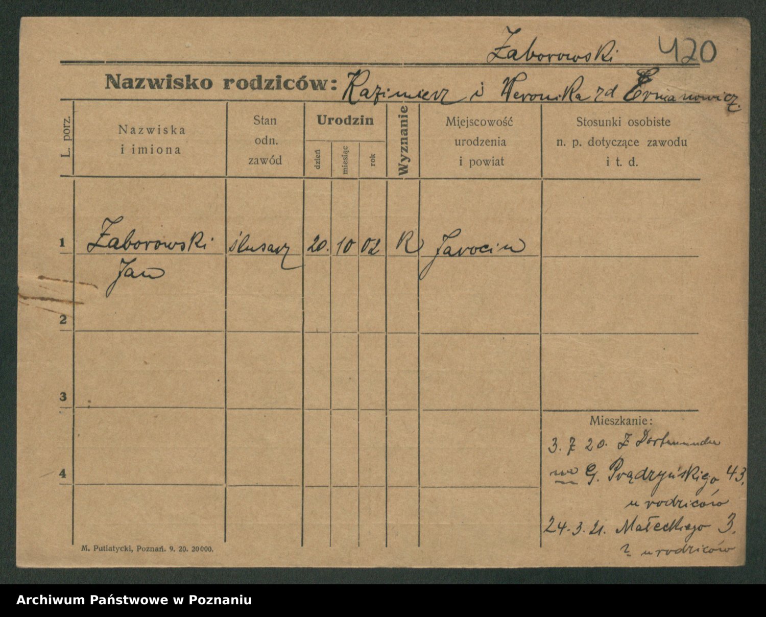 Żabczyński z.d. Zieleńkiewicz, Marja