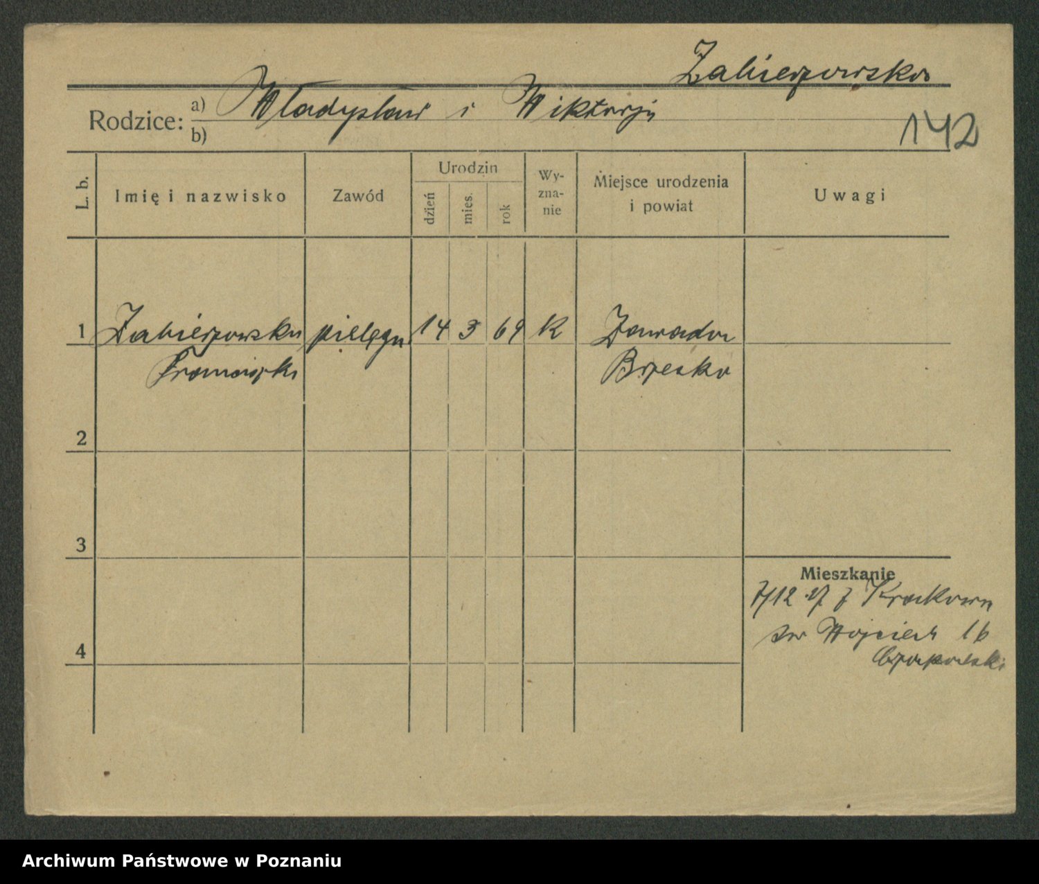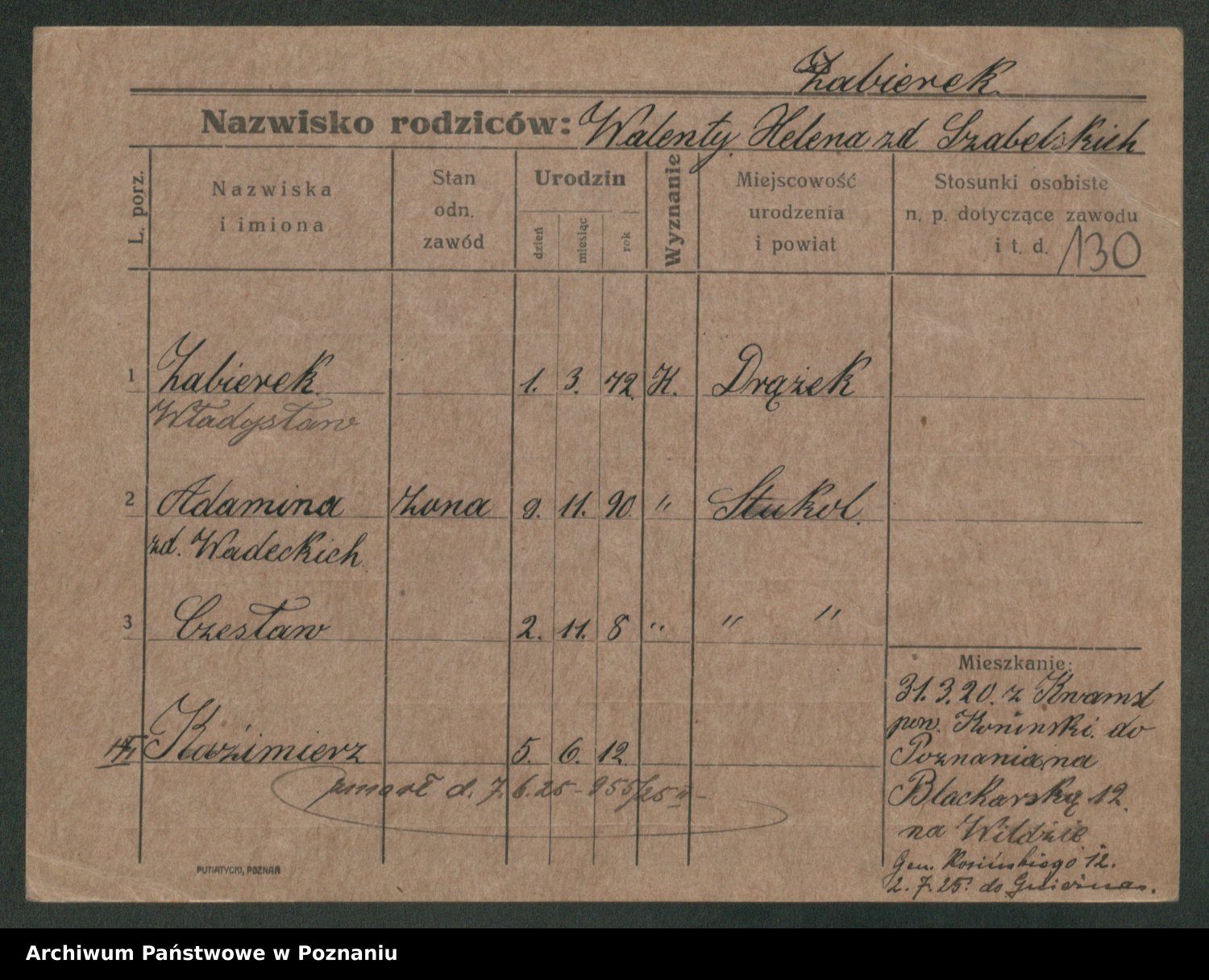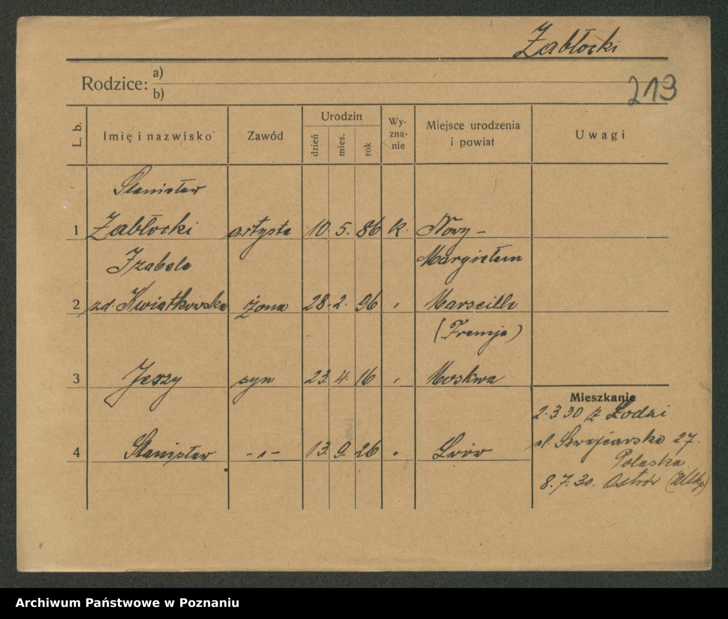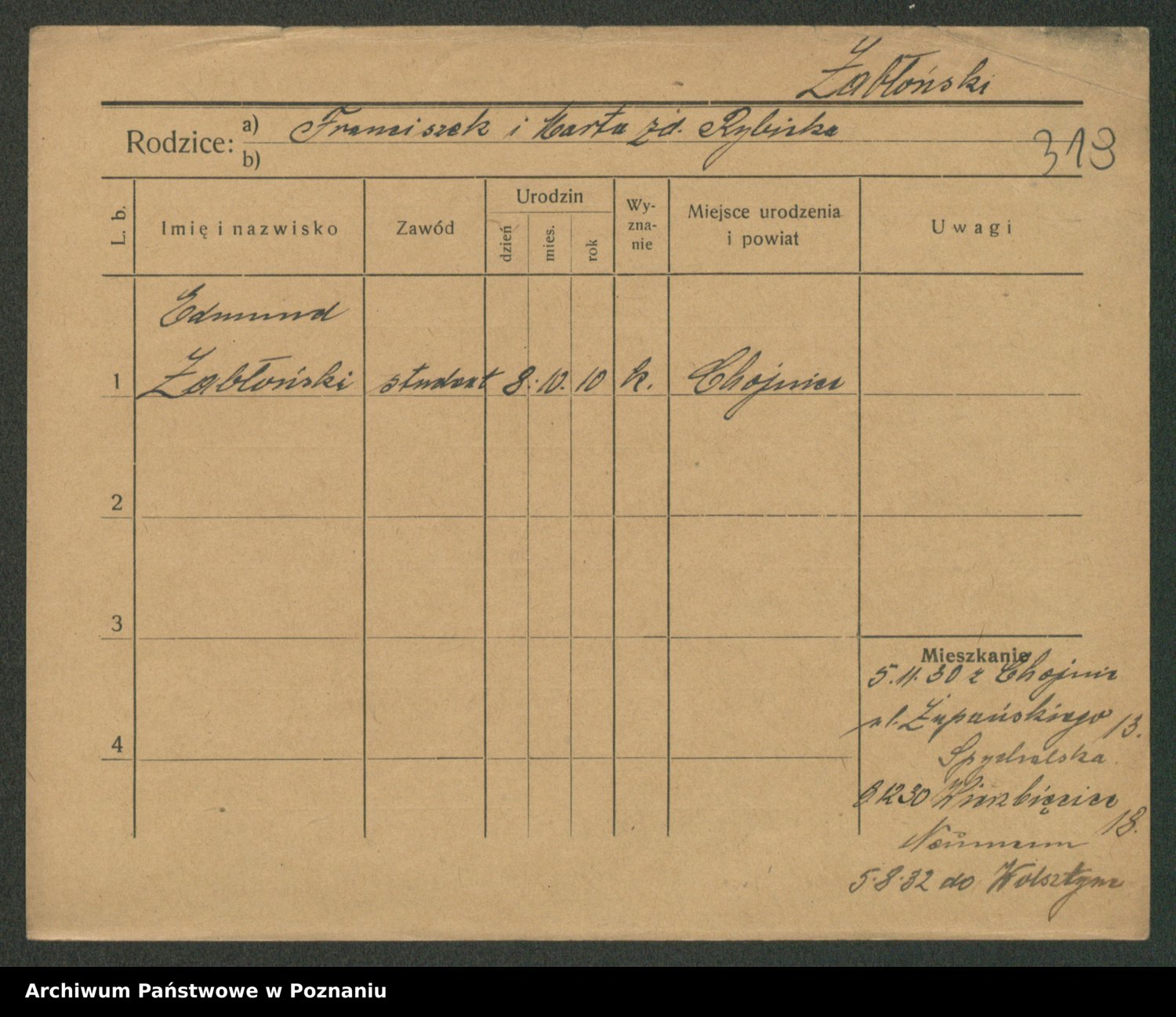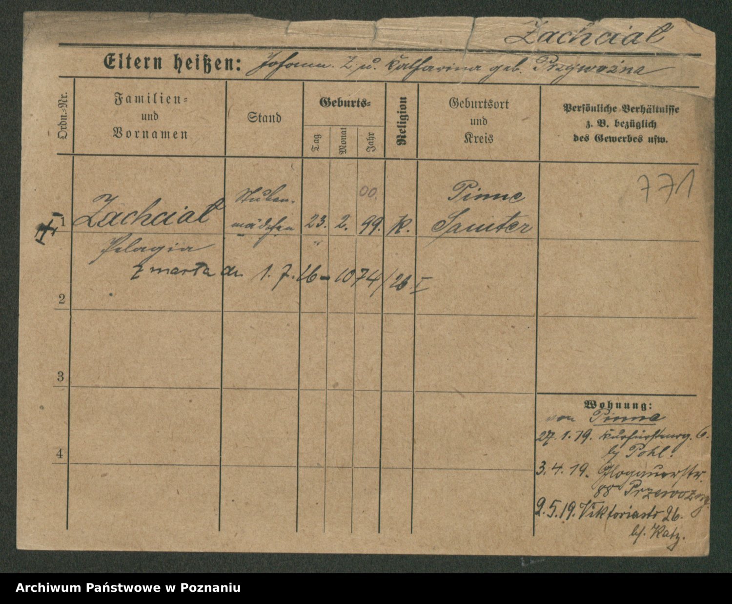 Podgląd karty osobowej dostępny jest po kliknięciu na nazwisko lub ikonkę karty. Można dokonywać powiększenia (ikony na górze) lub przechodzić między kolejnymi skanami (strzałki po bokach).