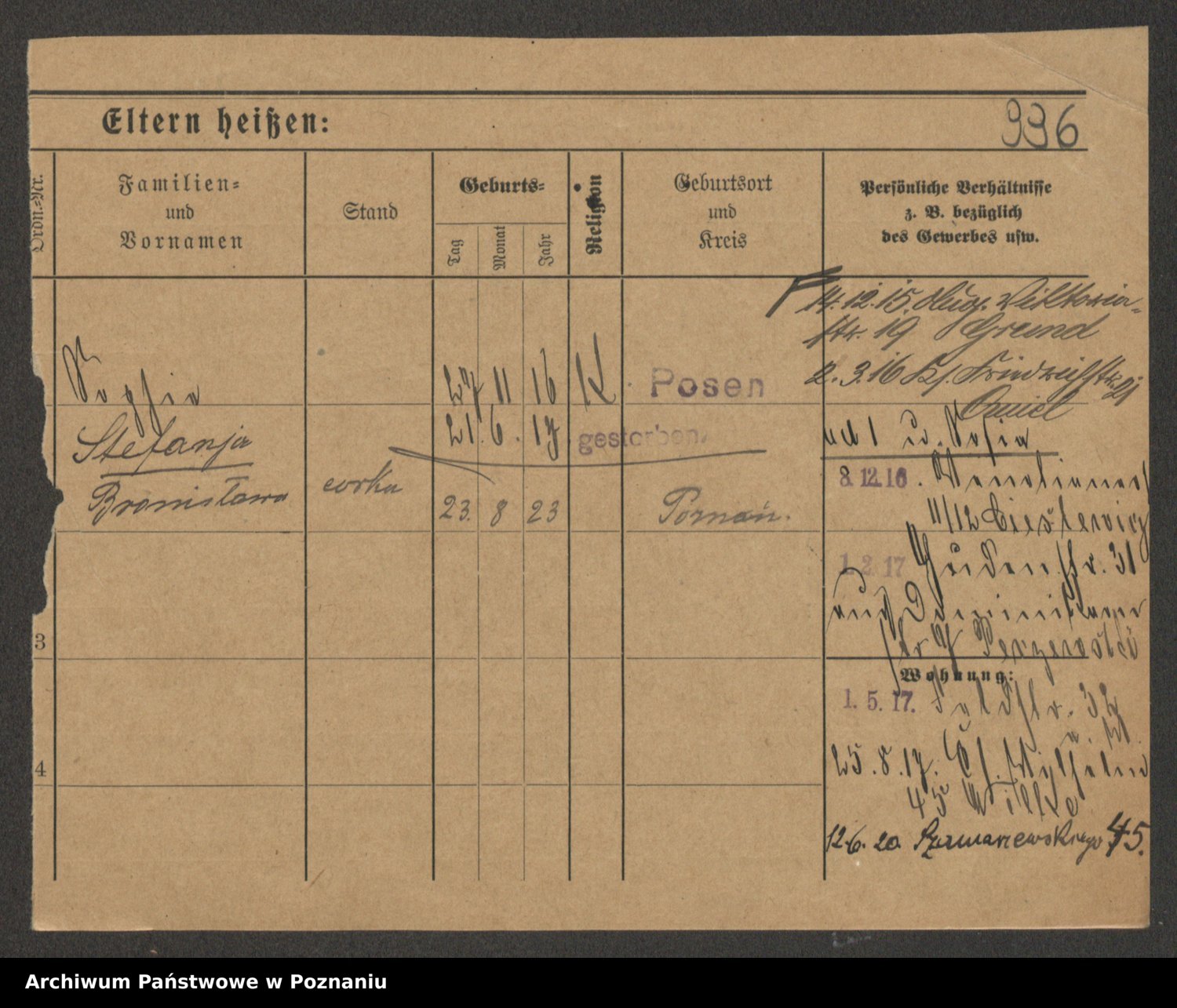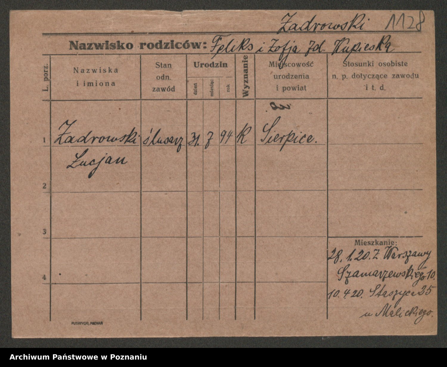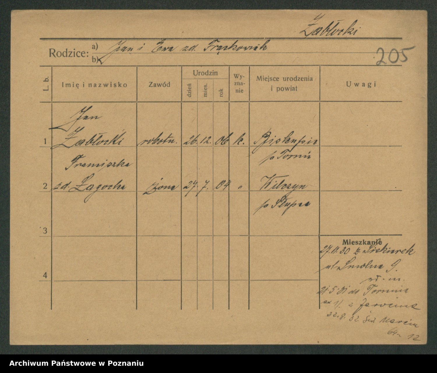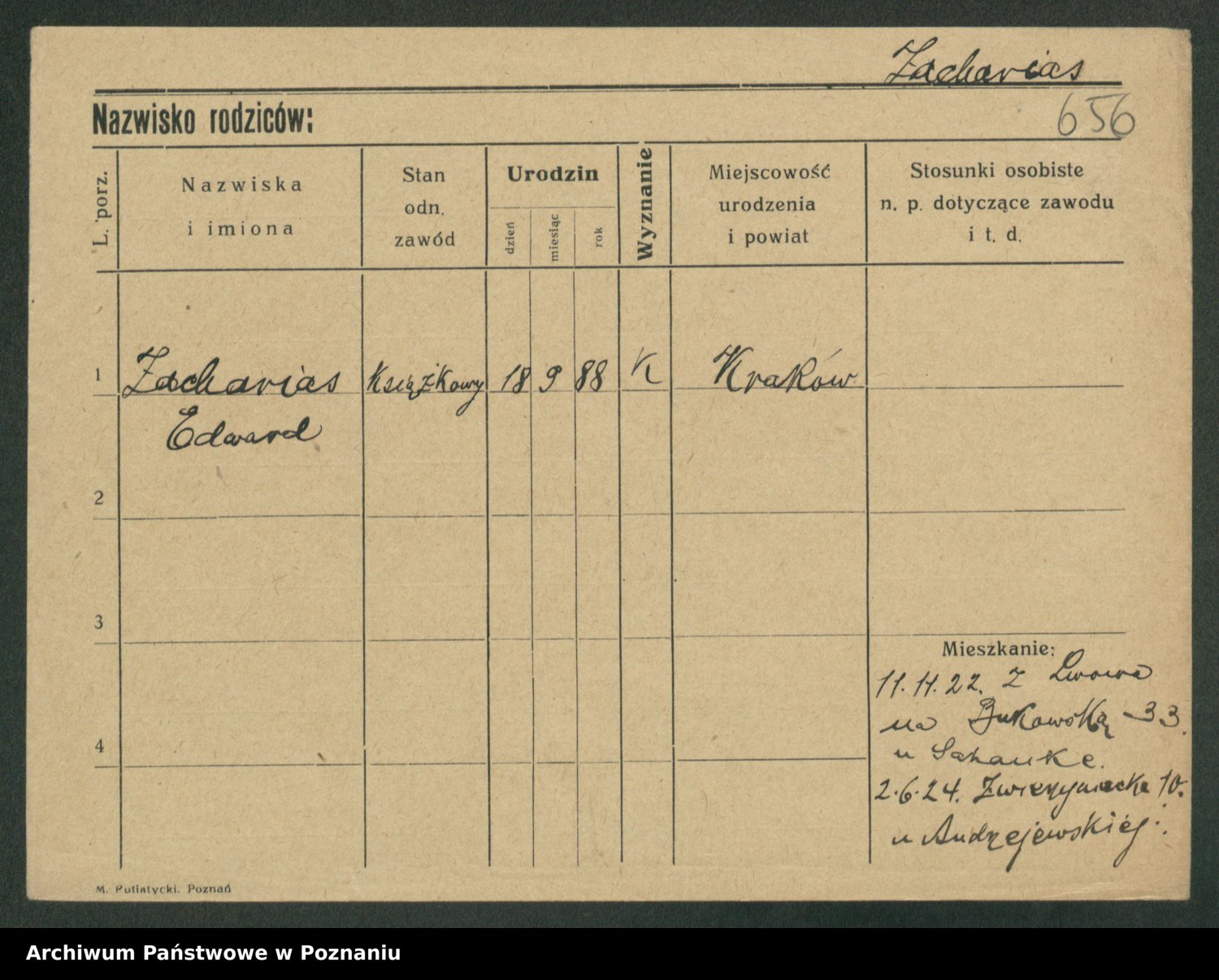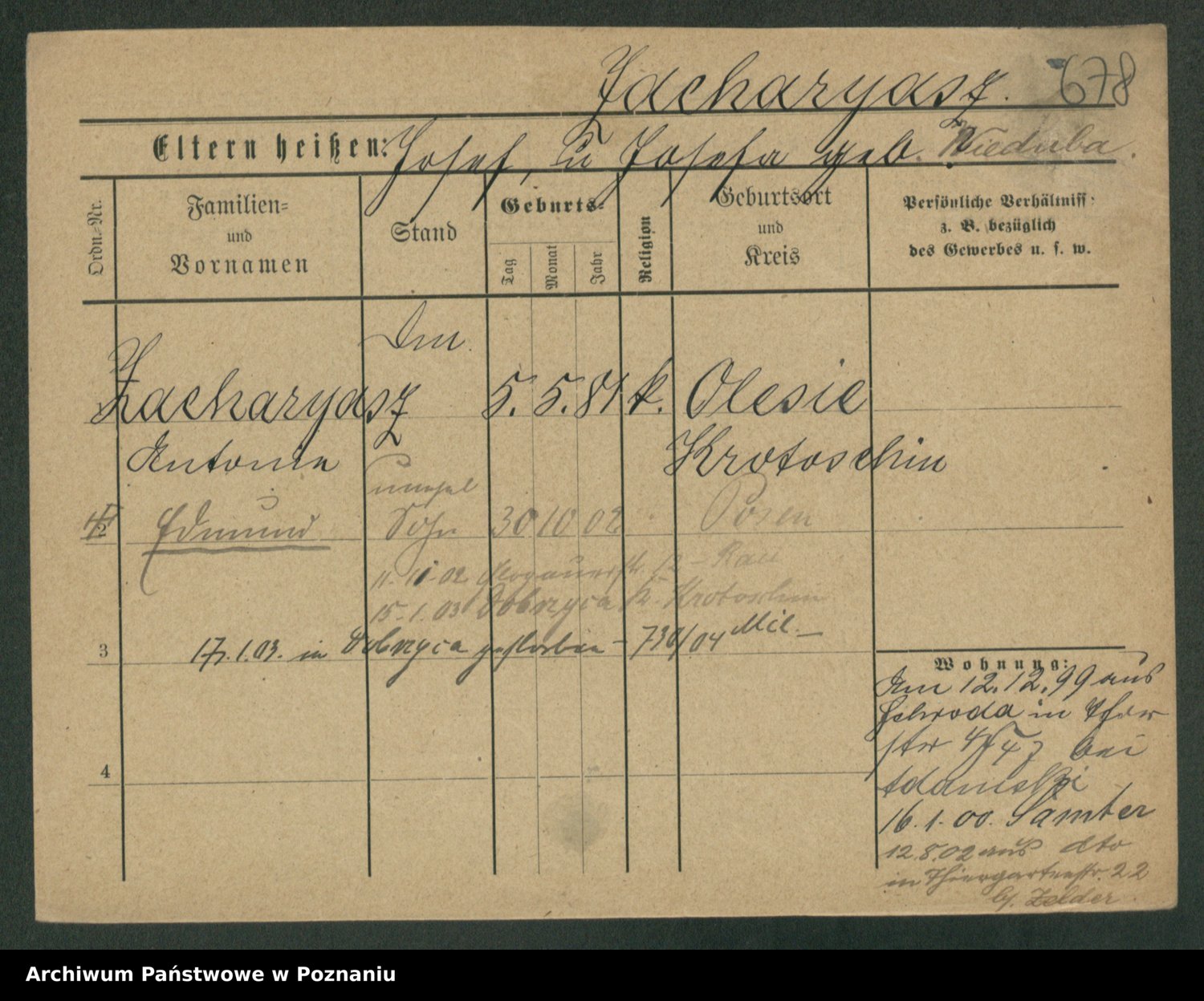 Podgląd karty osobowej dostępny jest po kliknięciu na nazwisko lub ikonkę karty. Można dokonywać powiększenia (ikony na górze) lub przechodzić między kolejnymi skanami (strzałki po bokach).