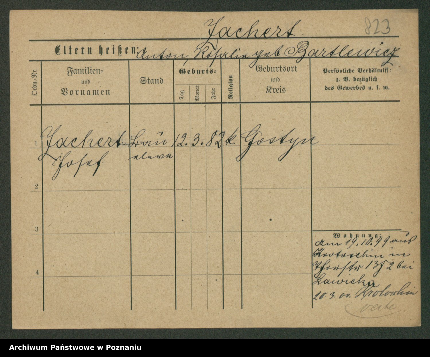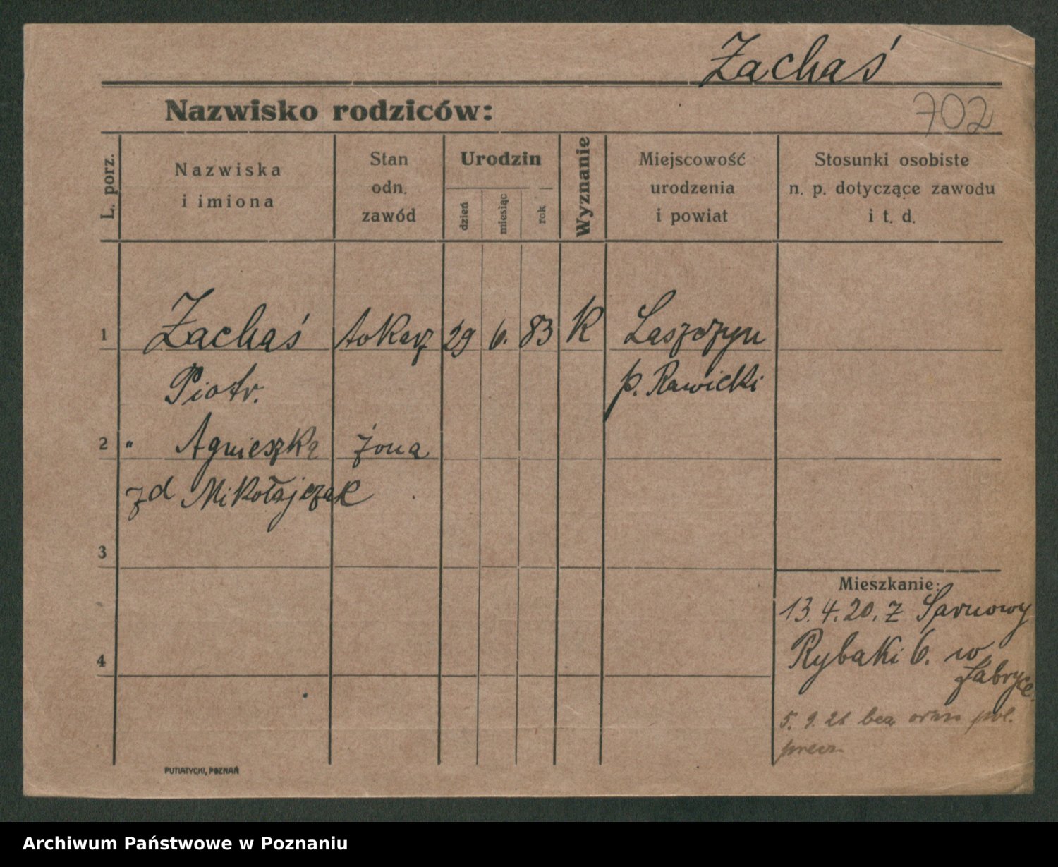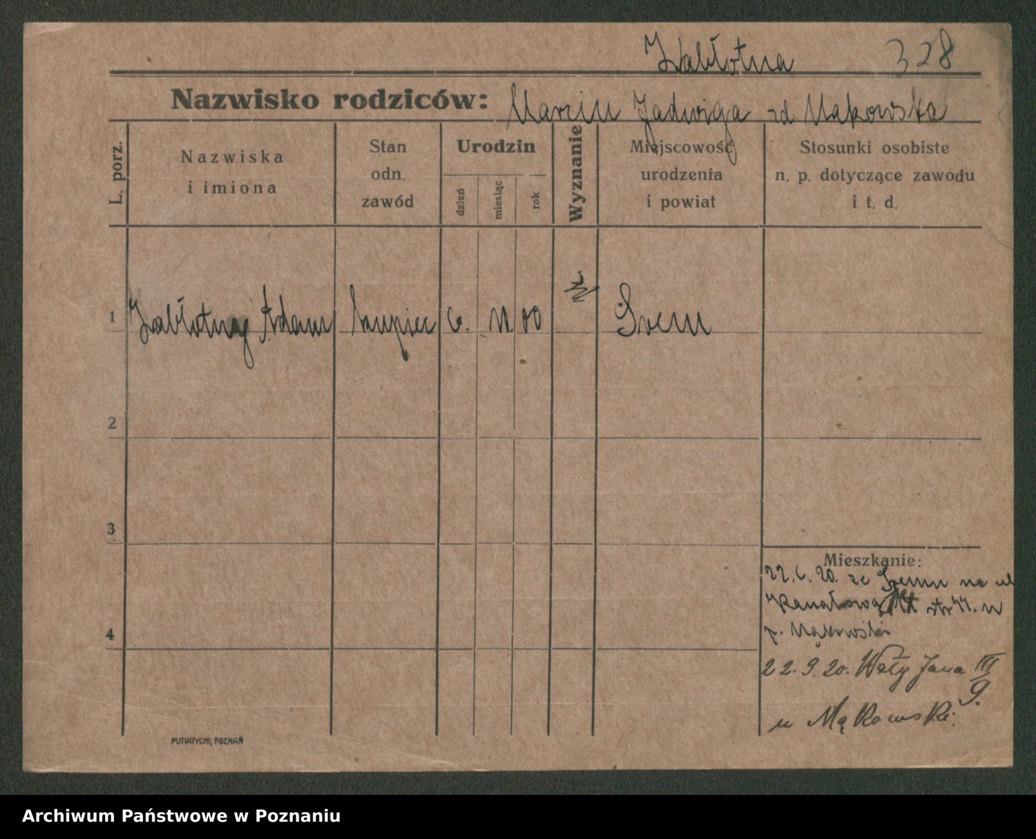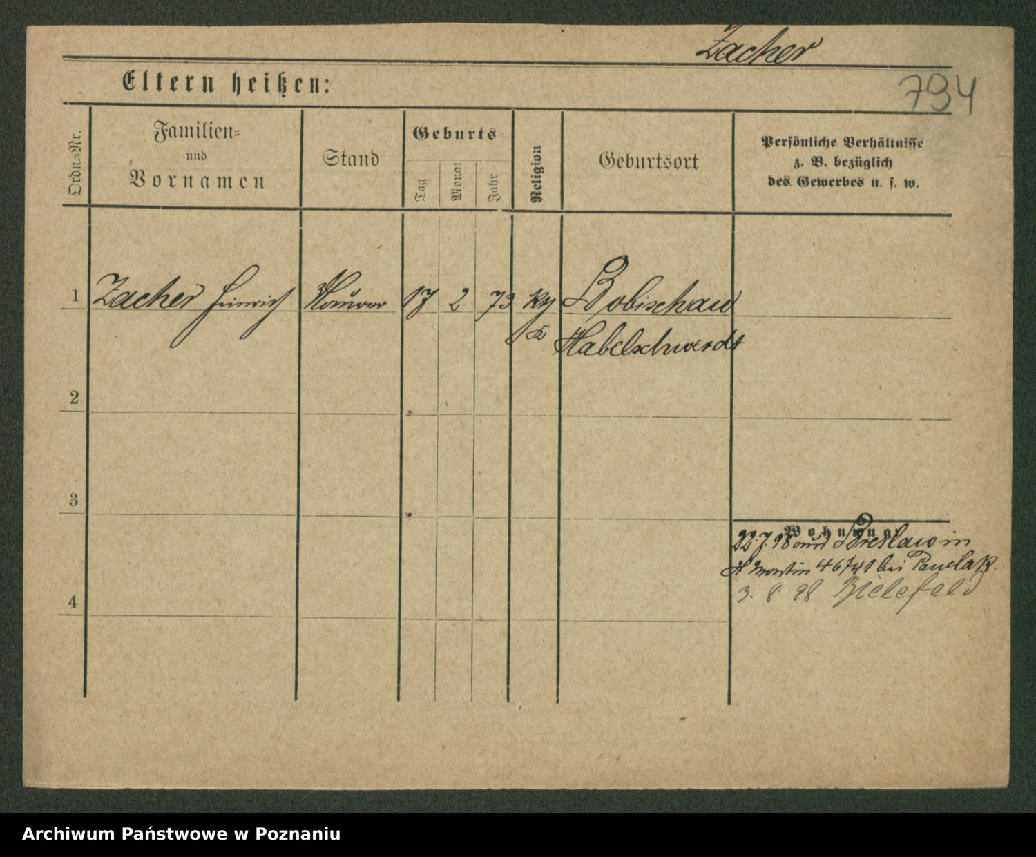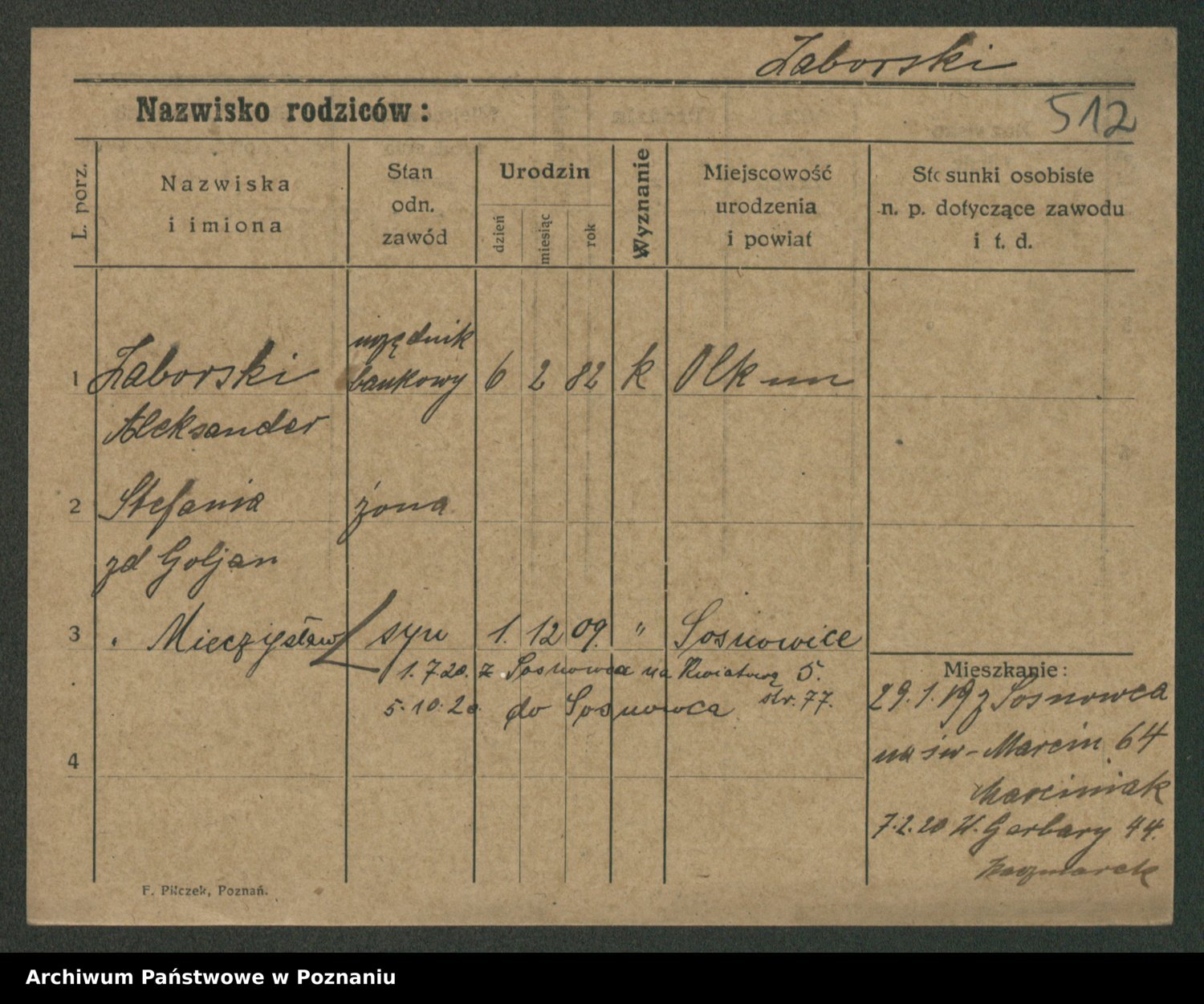 Podgląd karty osobowej dostępny jest po kliknięciu na nazwisko lub ikonkę karty. Można dokonywać powiększenia (ikony na górze) lub przechodzić między kolejnymi skanami (strzałki po bokach).
