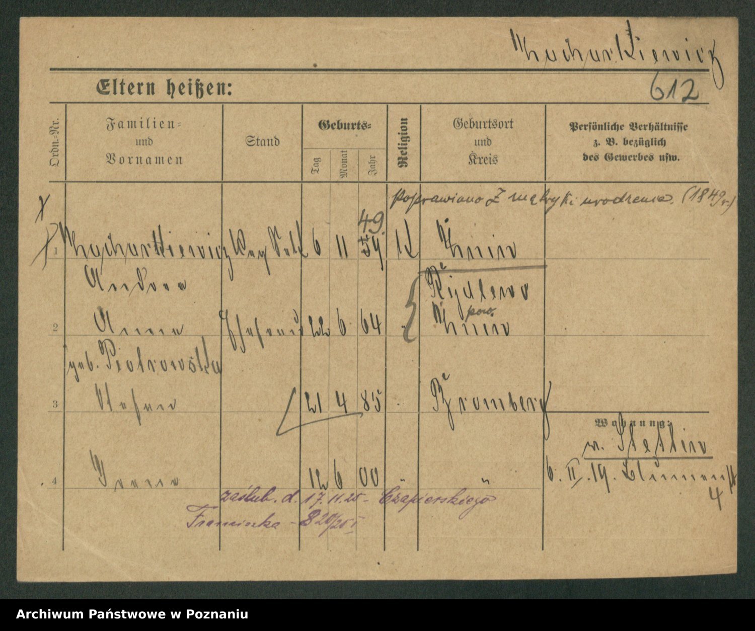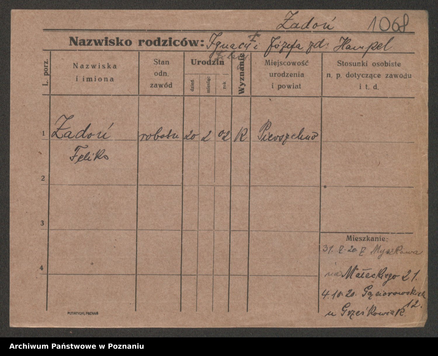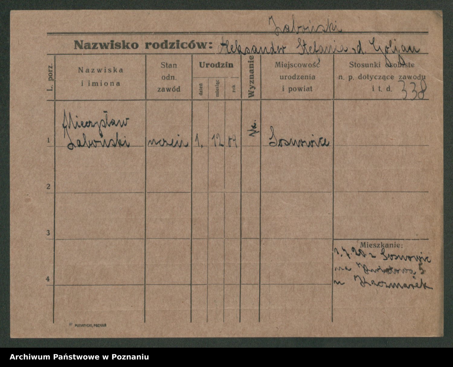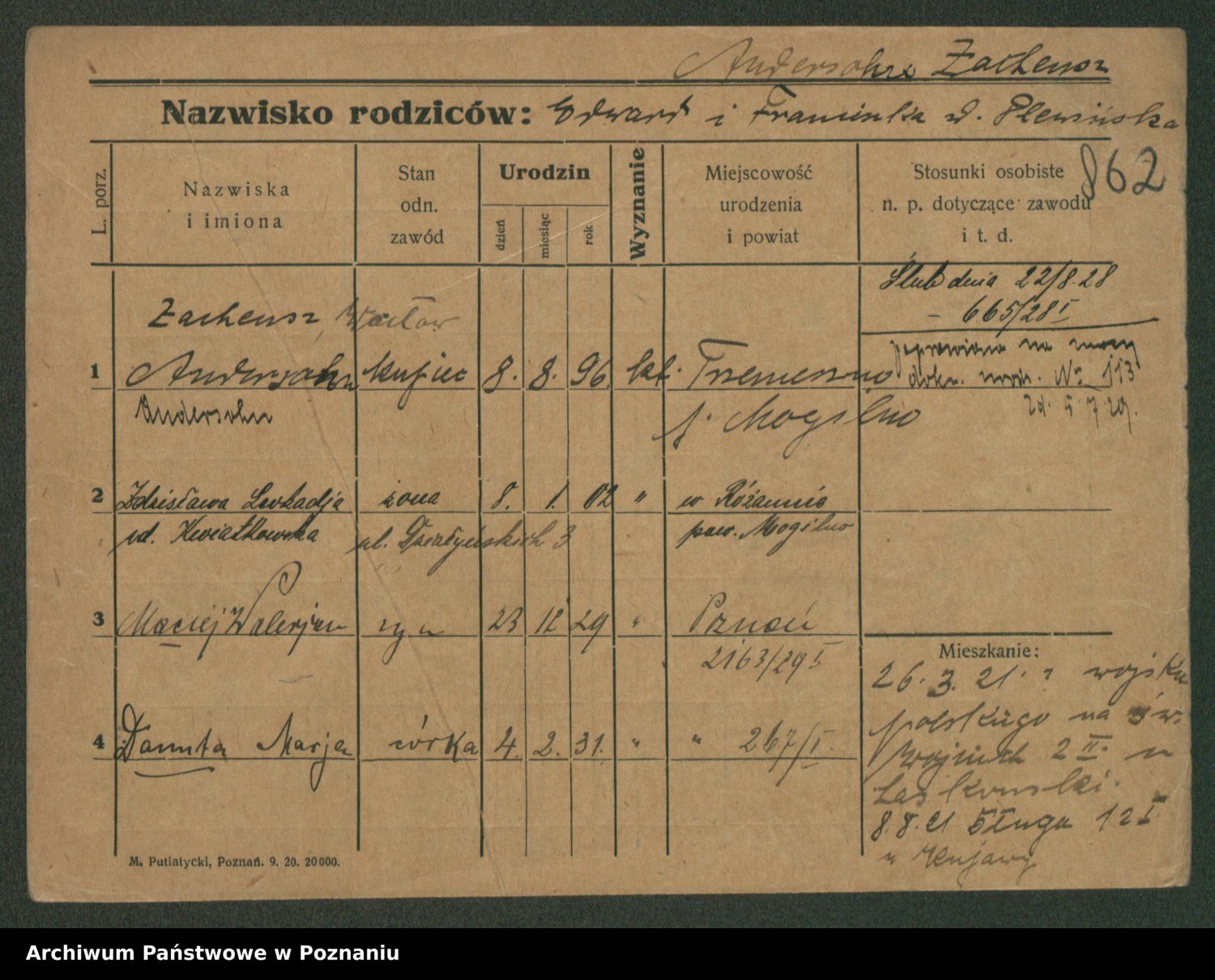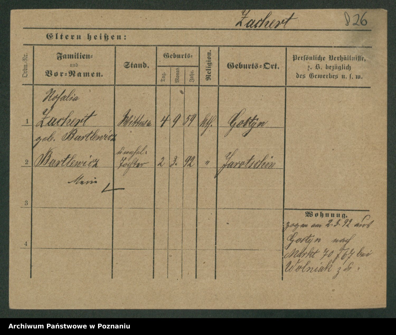 Podgląd karty osobowej dostępny jest po kliknięciu na nazwisko lub ikonkę karty. Można dokonywać powiększenia (ikony na górze) lub przechodzić między kolejnymi skanami (strzałki po bokach).