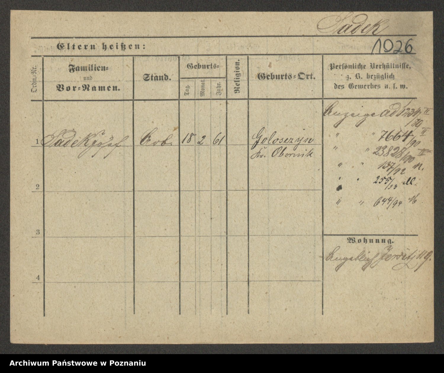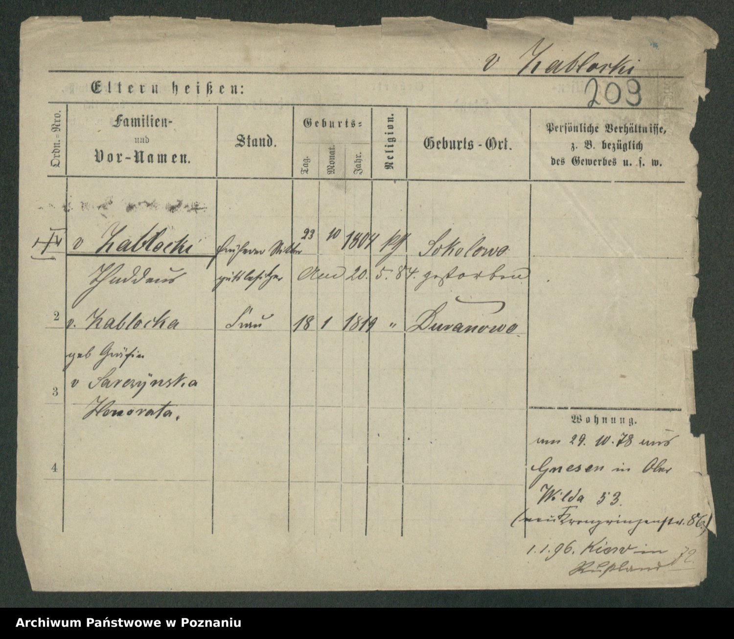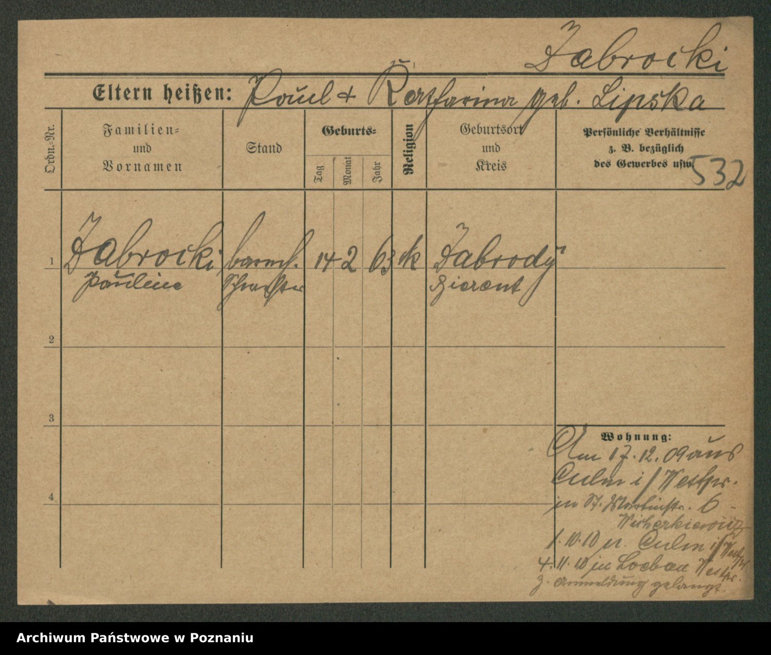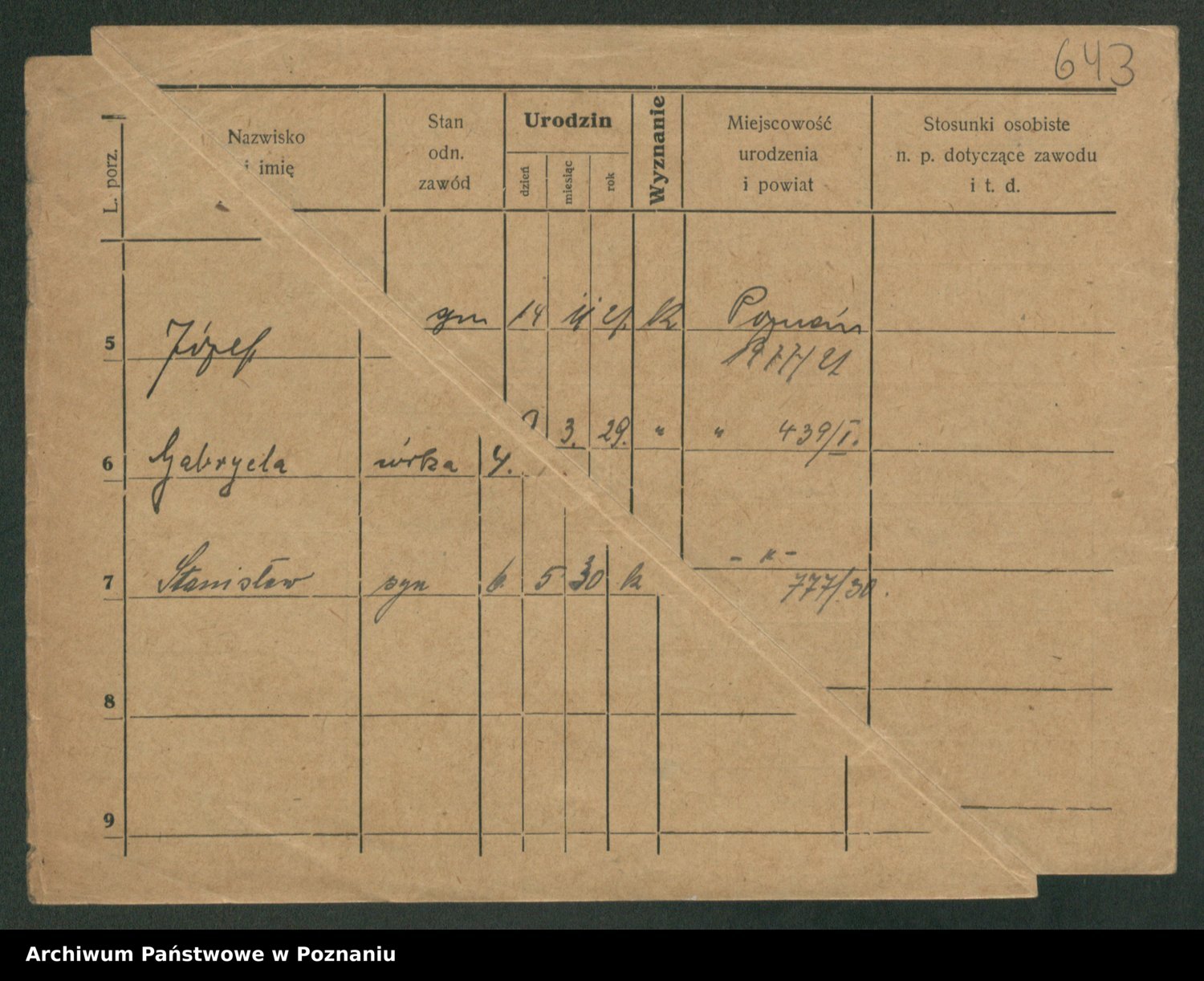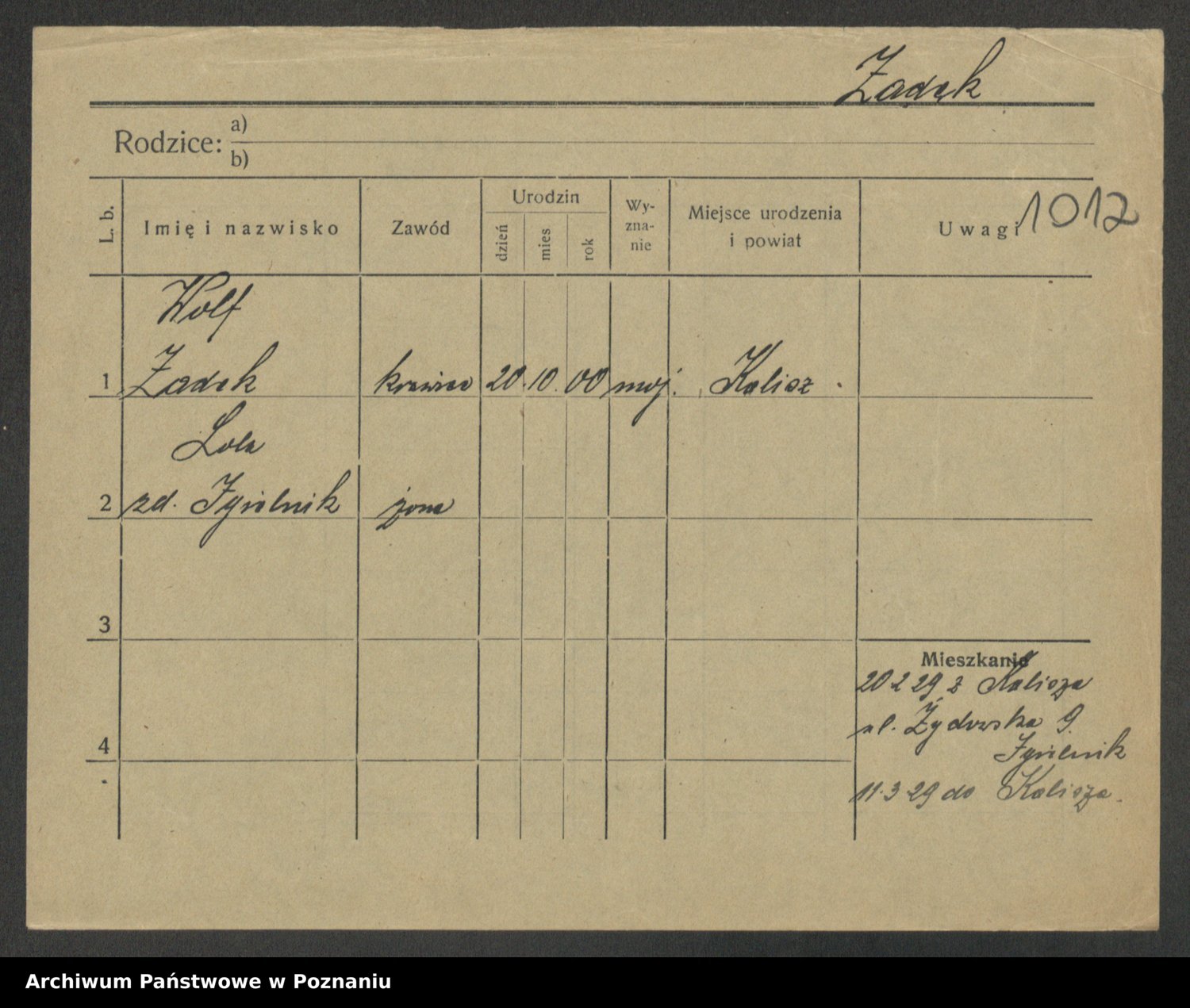 Podgląd karty osobowej dostępny jest po kliknięciu na nazwisko lub ikonkę karty. Można dokonywać powiększenia (ikony na górze) lub przechodzić między kolejnymi skanami (strzałki po bokach).