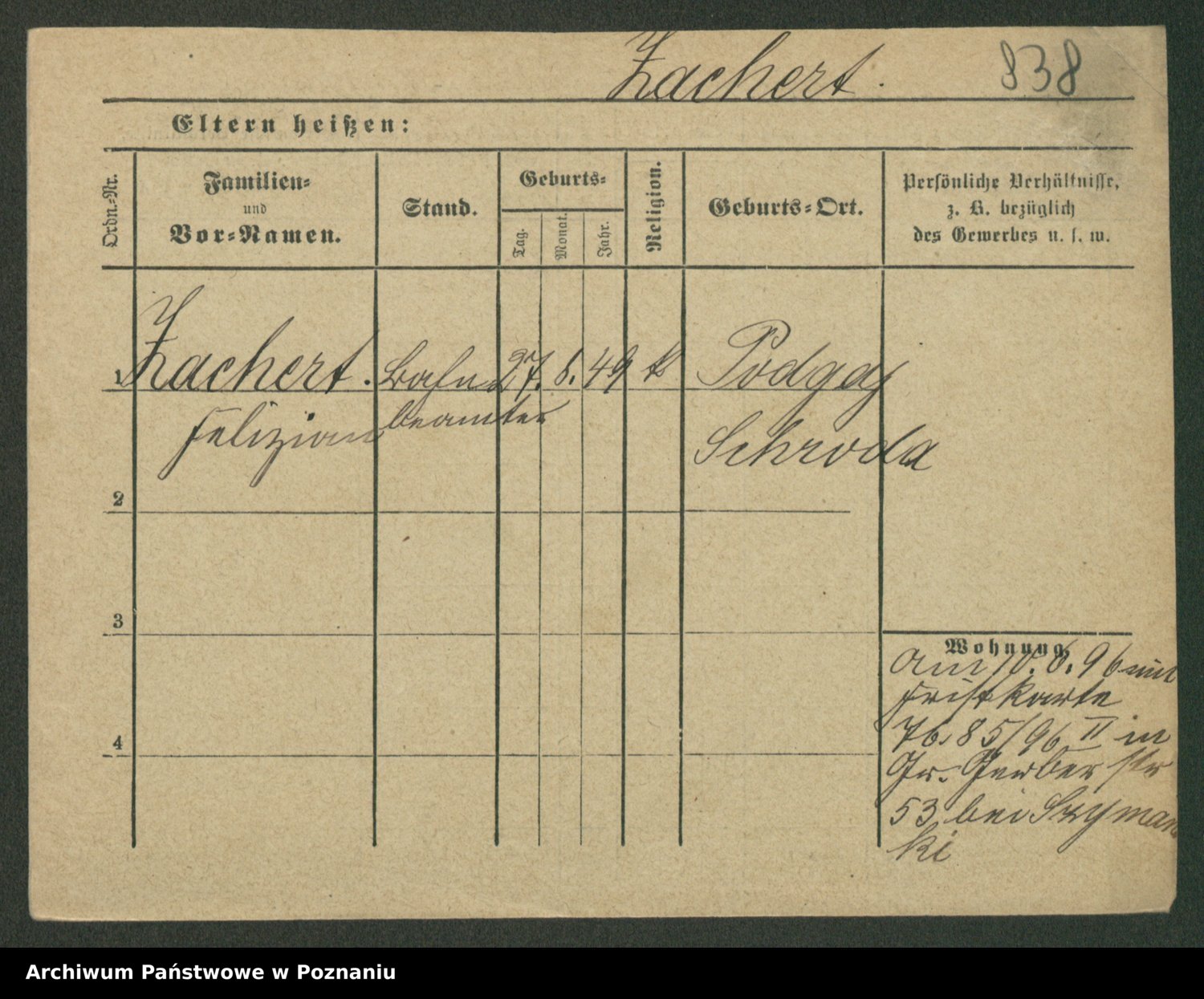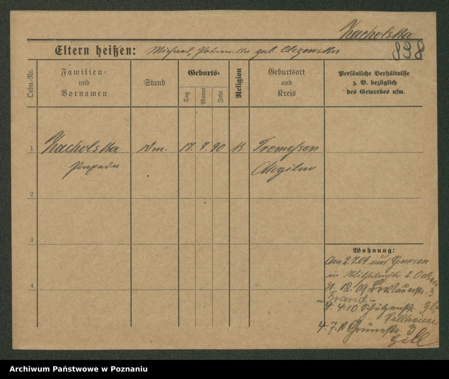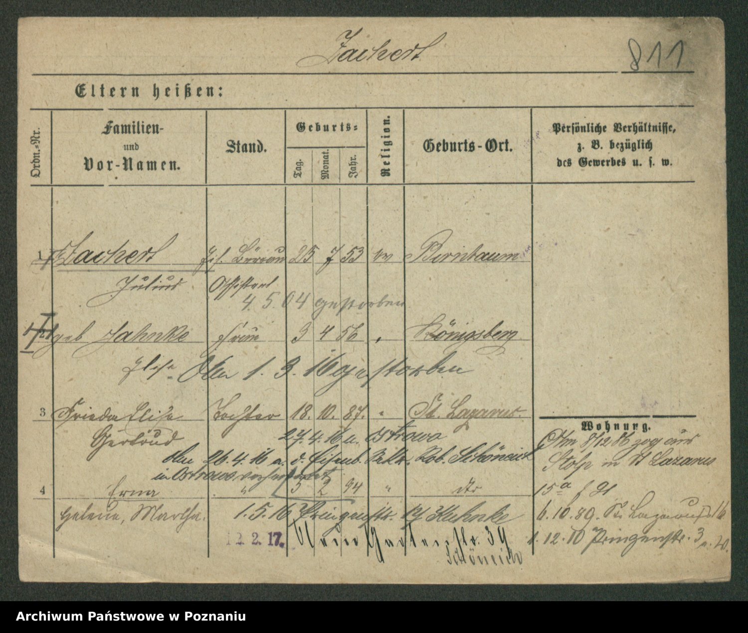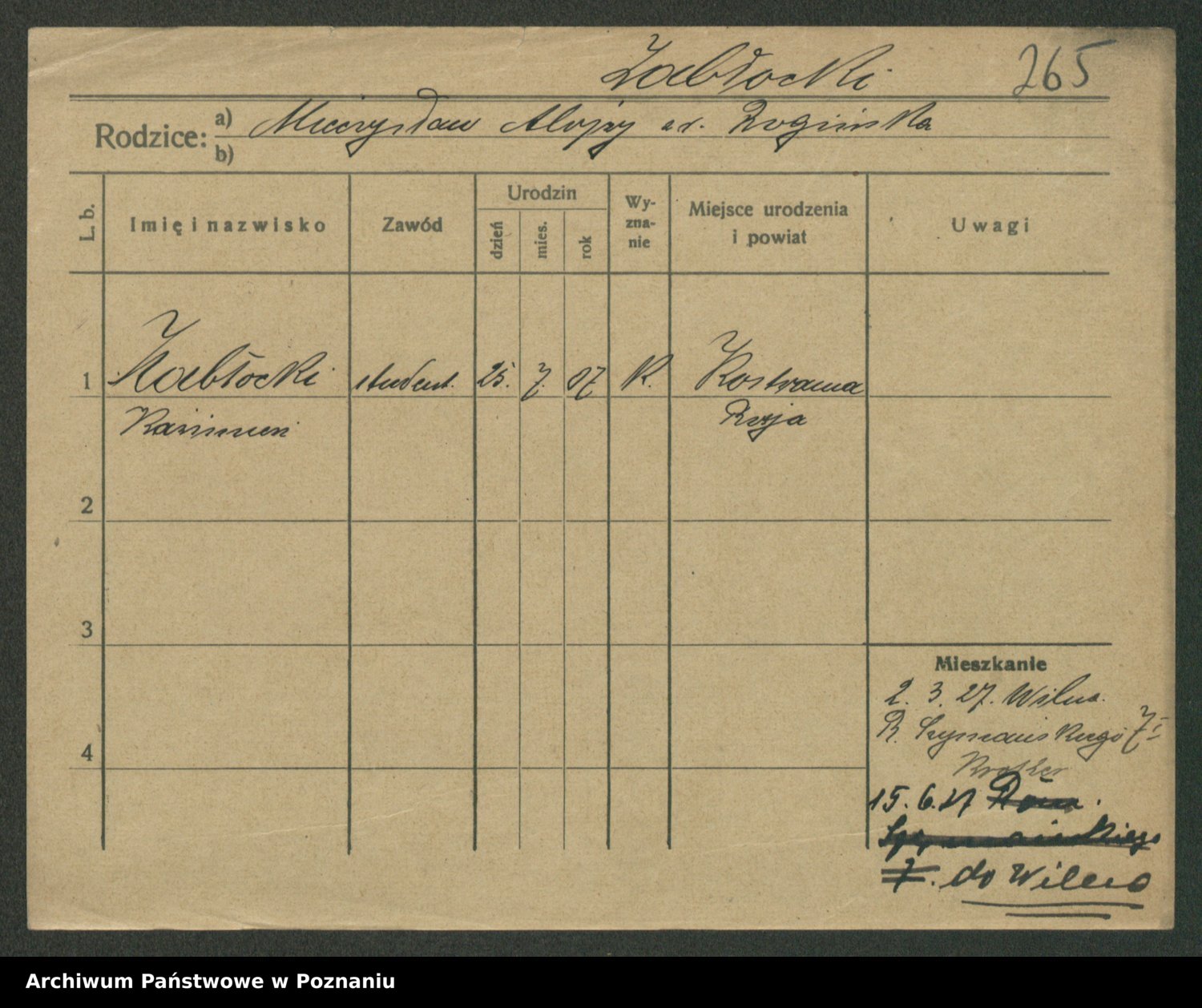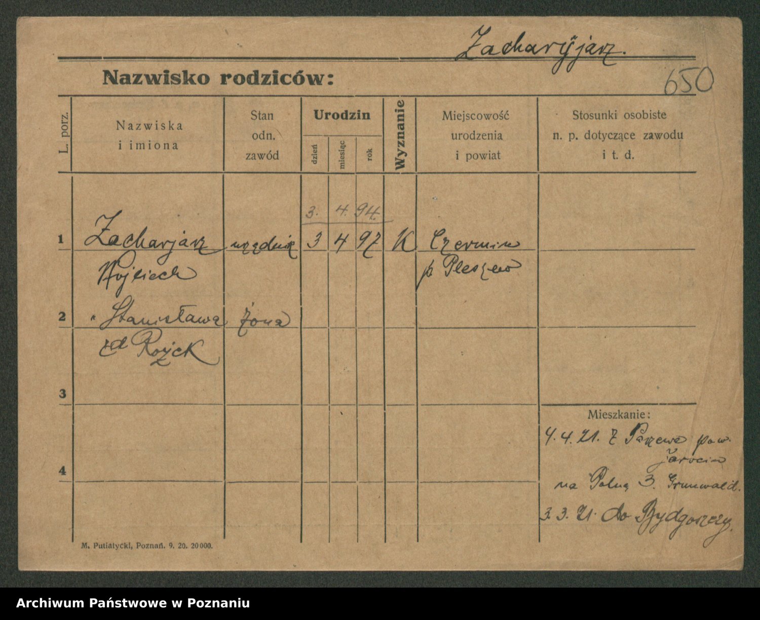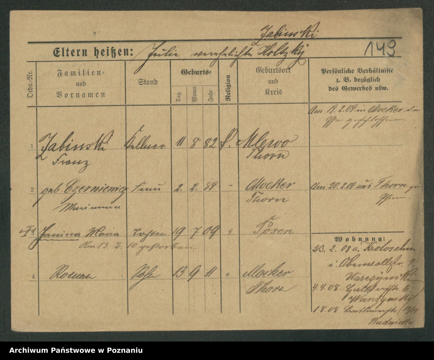 Podgląd karty osobowej dostępny jest po kliknięciu na nazwisko lub ikonkę karty. Można dokonywać powiększenia (ikony na górze) lub przechodzić między kolejnymi skanami (strzałki po bokach).