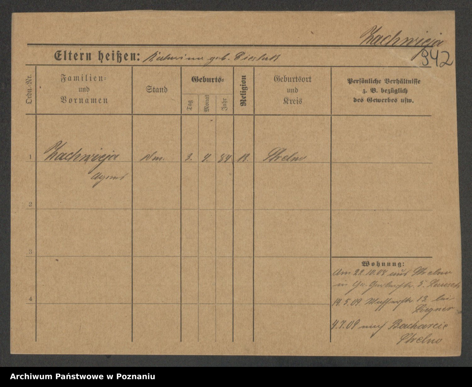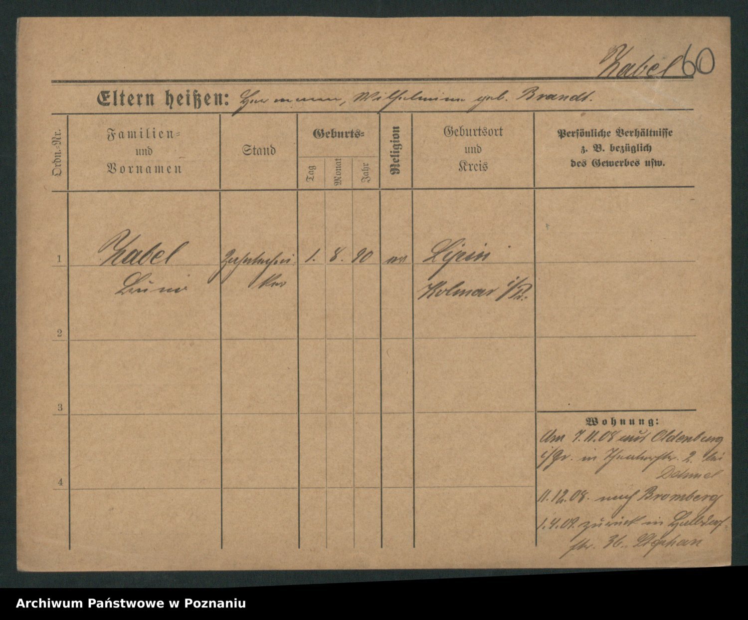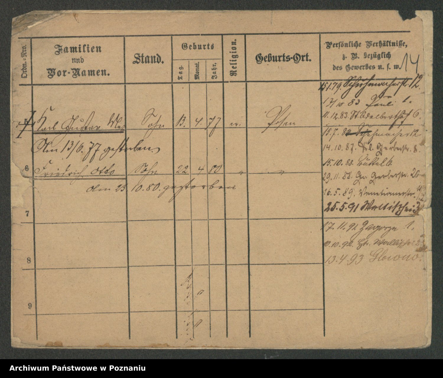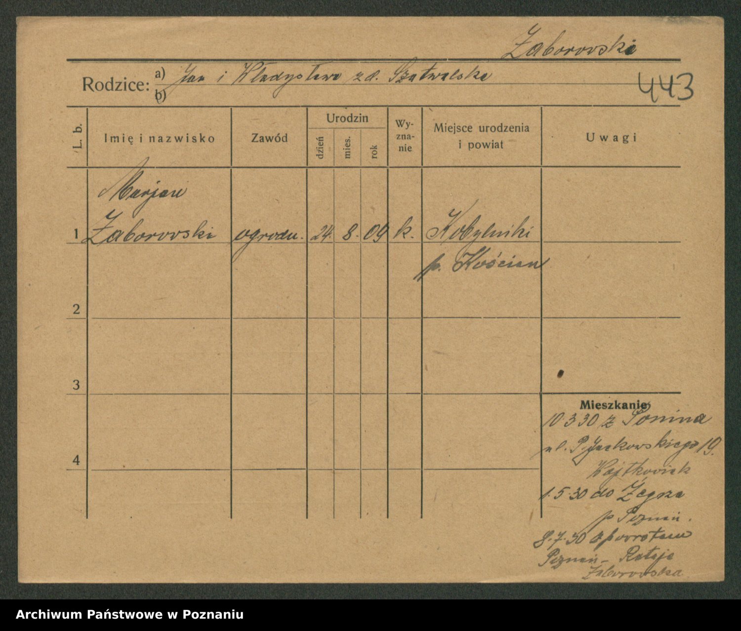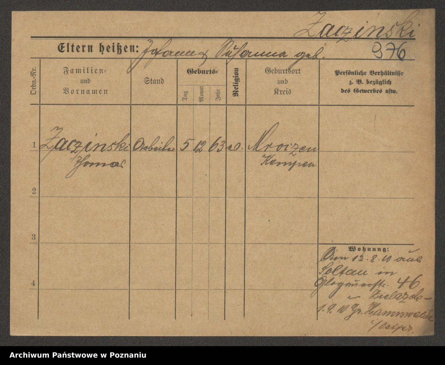 Podgląd karty osobowej dostępny jest po kliknięciu na nazwisko lub ikonkę karty. Można dokonywać powiększenia (ikony na górze) lub przechodzić między kolejnymi skanami (strzałki po bokach).