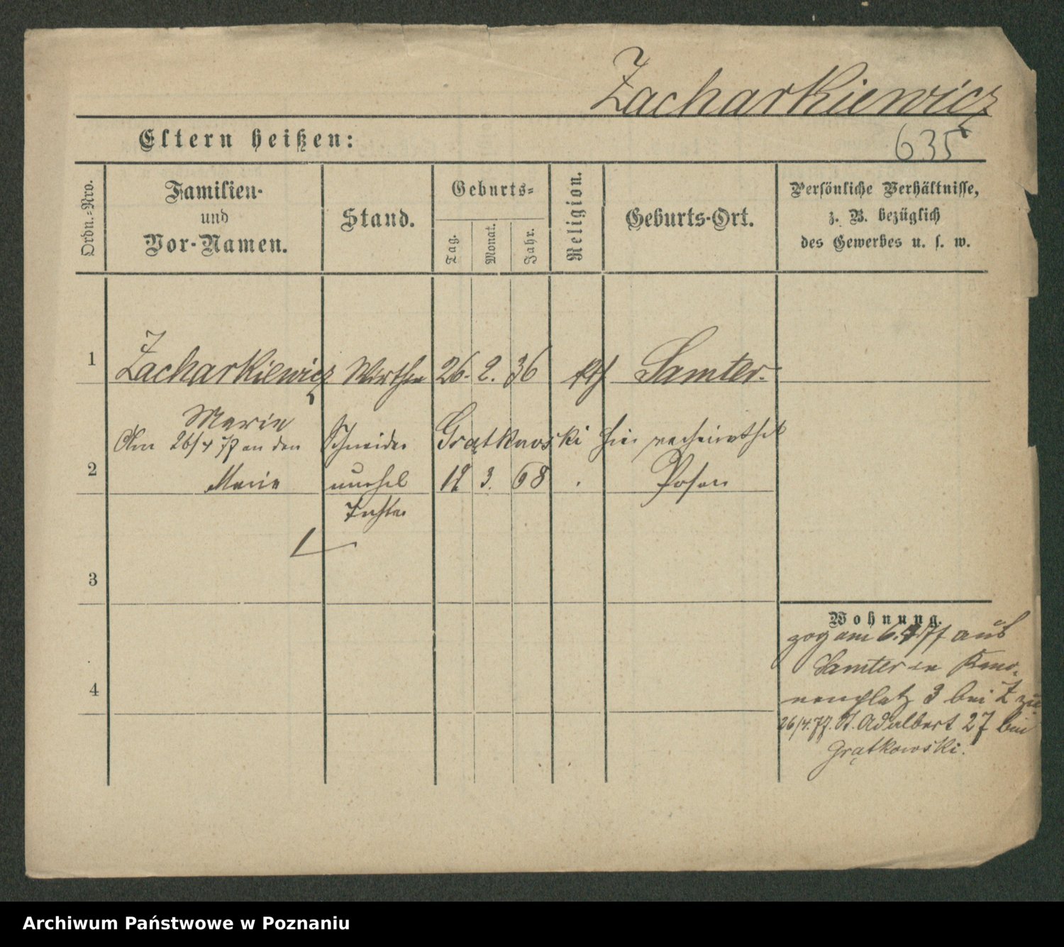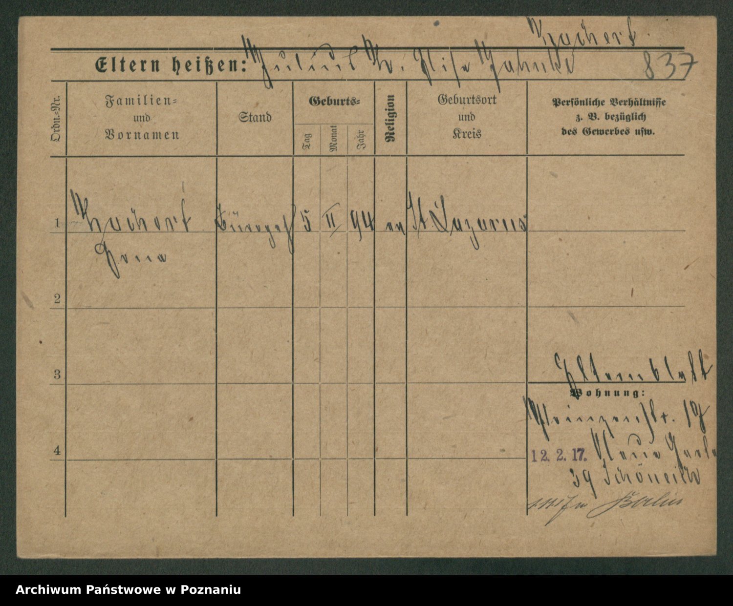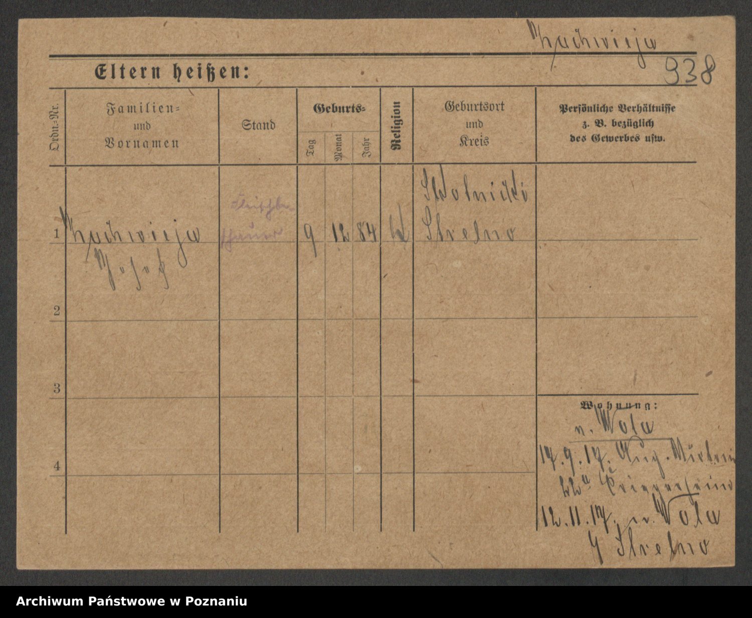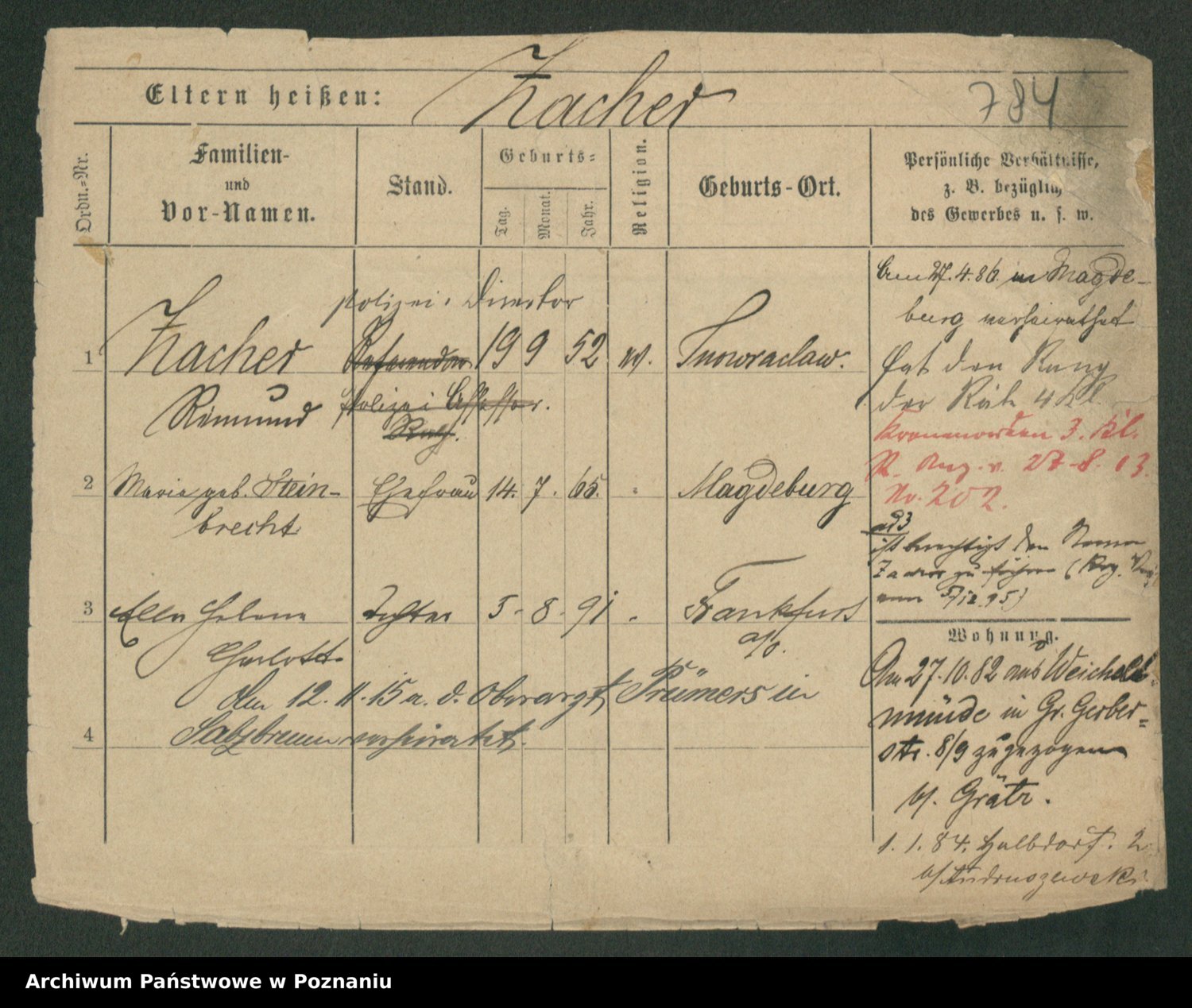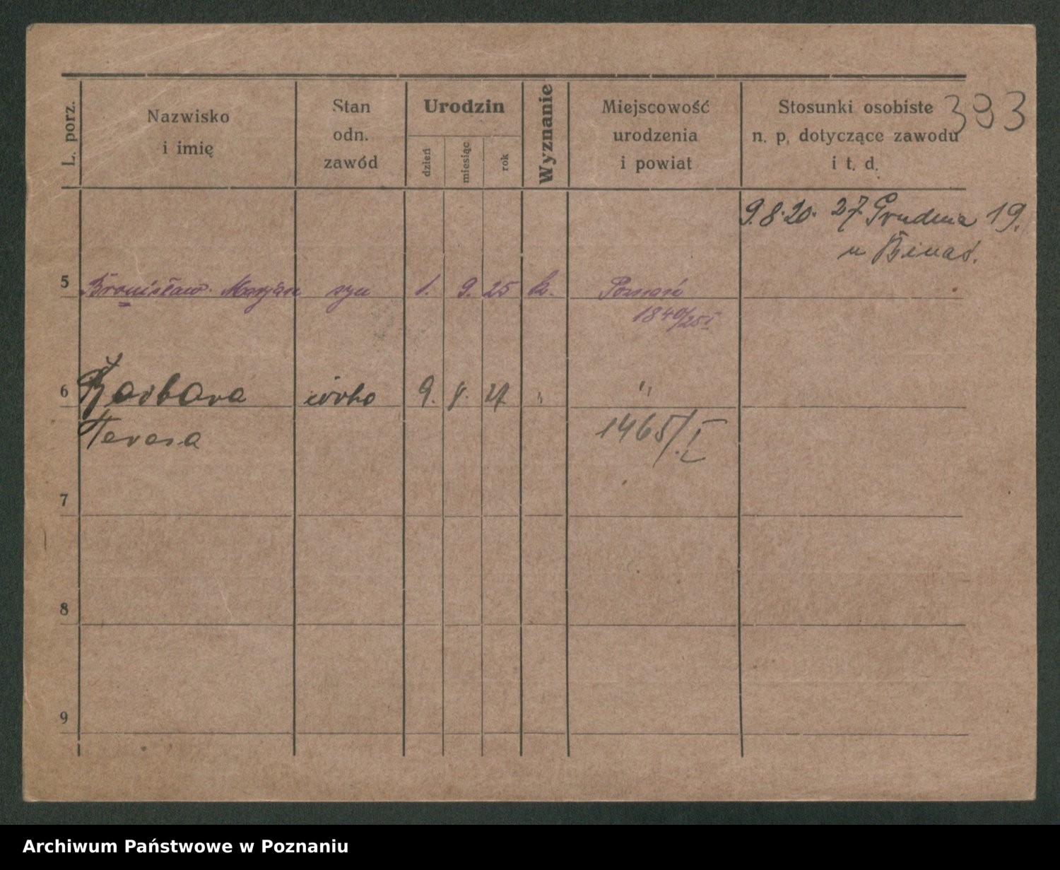 Podgląd karty osobowej dostępny jest po kliknięciu na nazwisko lub ikonkę karty. Można dokonywać powiększenia (ikony na górze) lub przechodzić między kolejnymi skanami (strzałki po bokach).