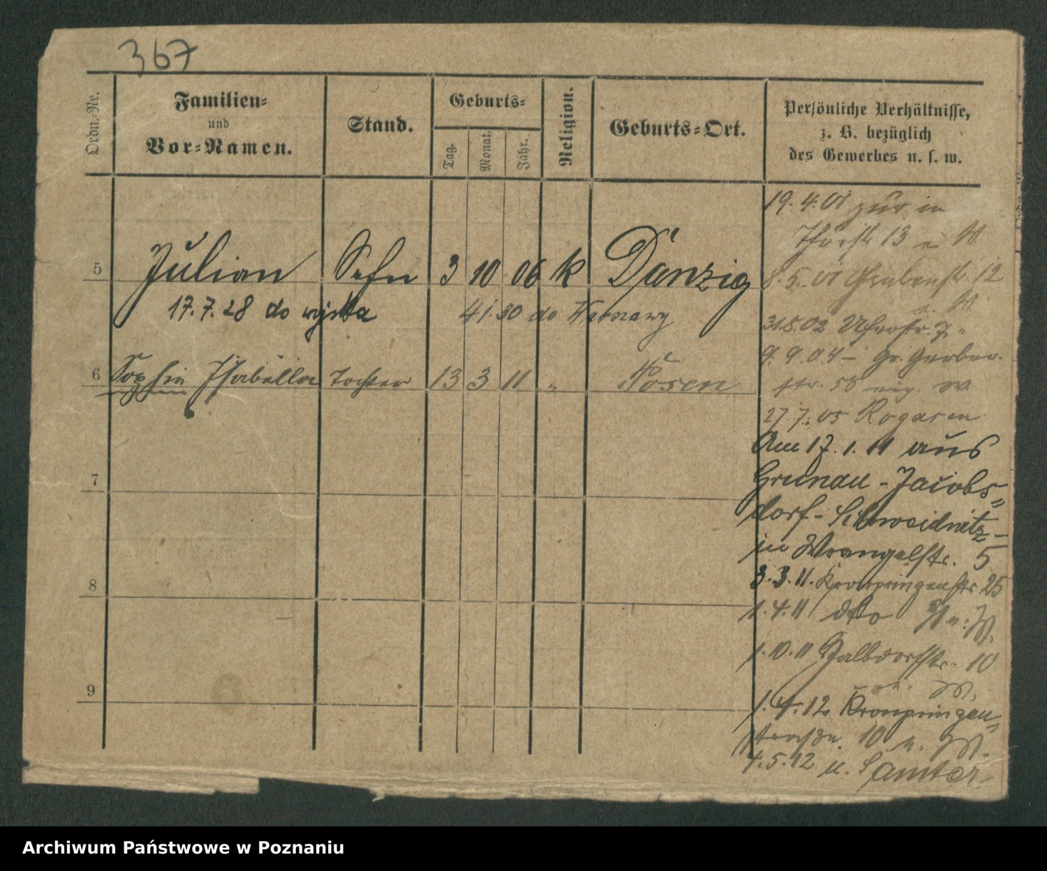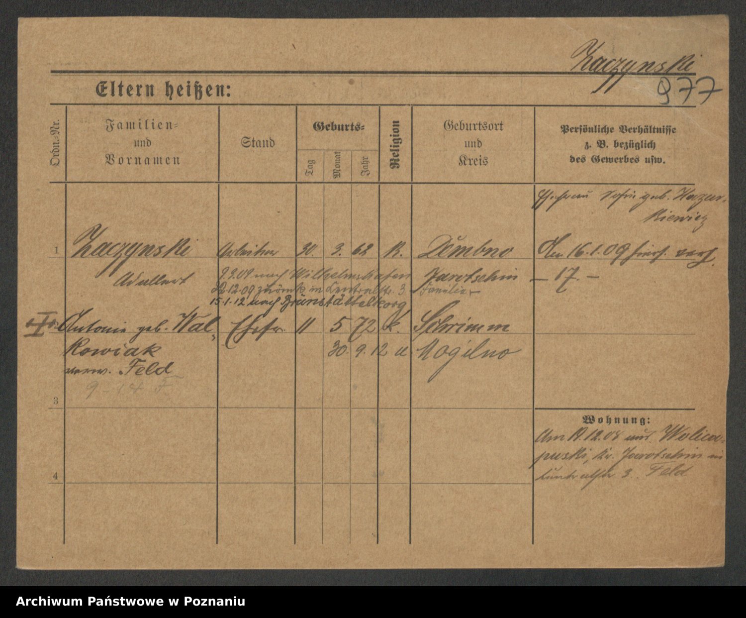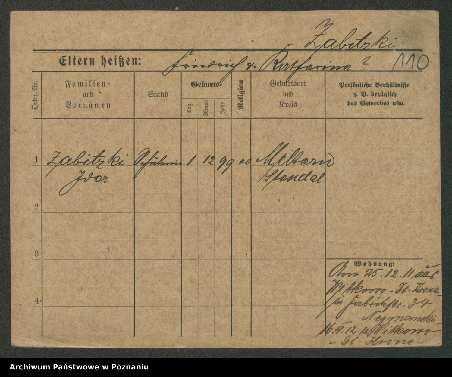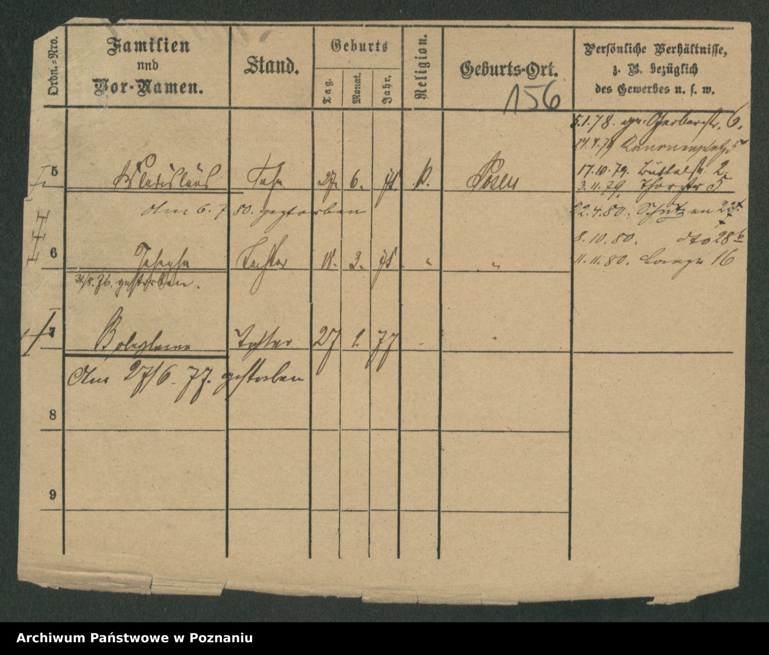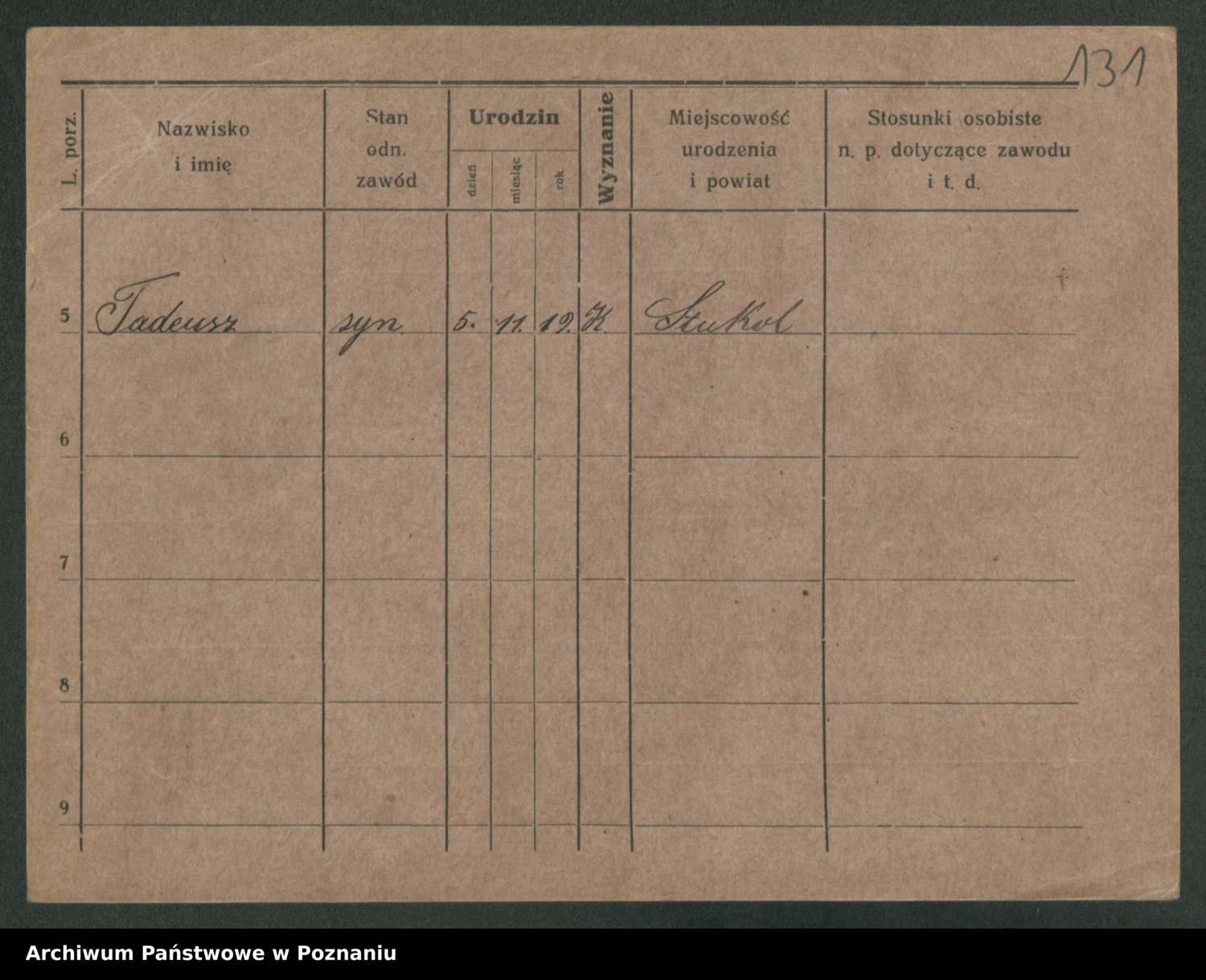 Podgląd karty osobowej dostępny jest po kliknięciu na nazwisko lub ikonkę karty. Można dokonywać powiększenia (ikony na górze) lub przechodzić między kolejnymi skanami (strzałki po bokach).