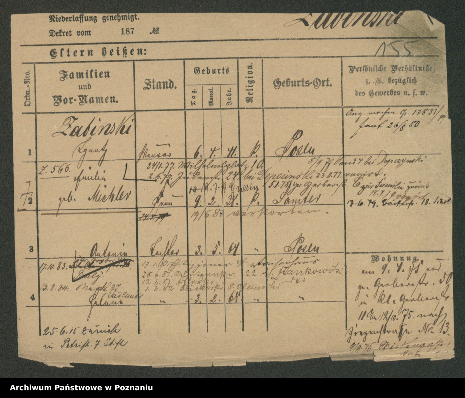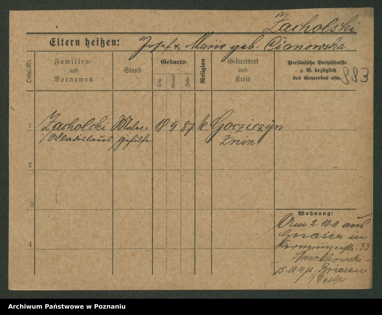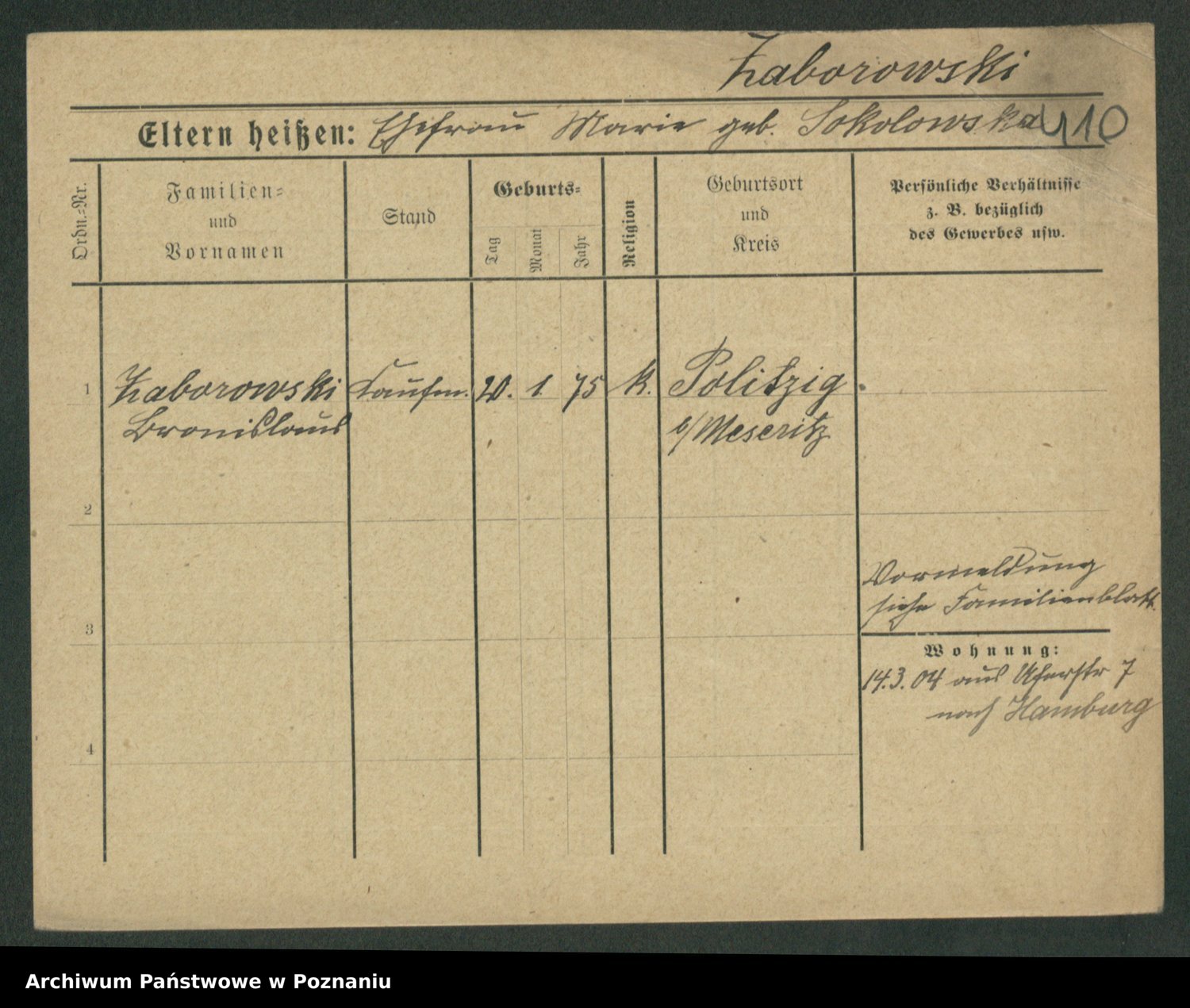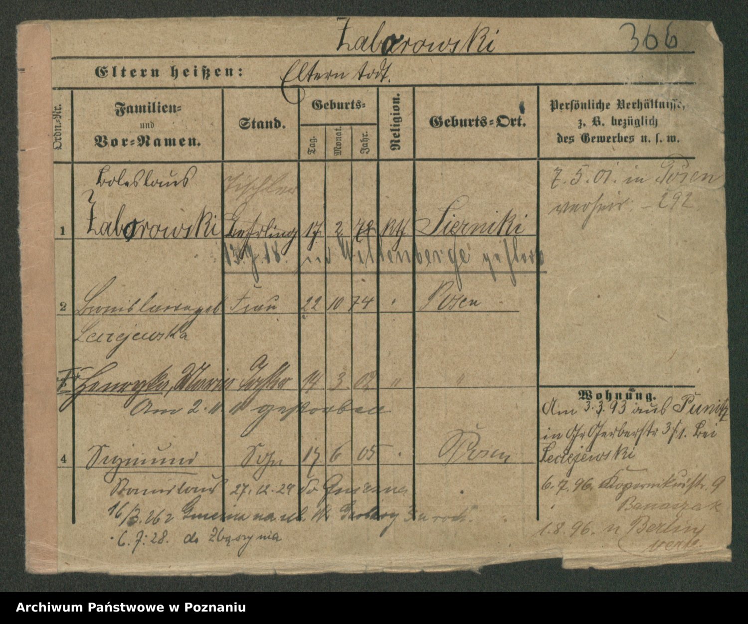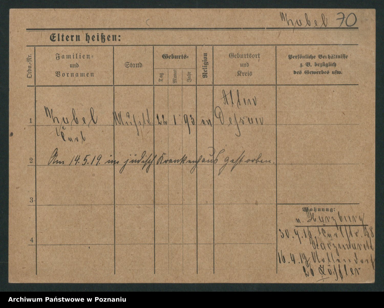 Podgląd karty osobowej dostępny jest po kliknięciu na nazwisko lub ikonkę karty. Można dokonywać powiększenia (ikony na górze) lub przechodzić między kolejnymi skanami (strzałki po bokach).