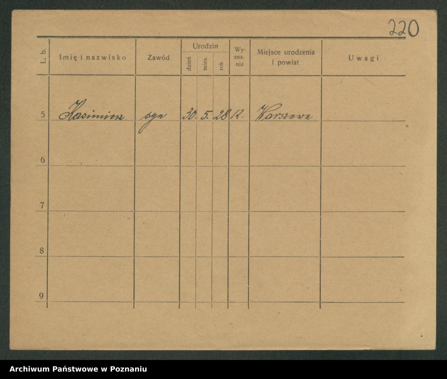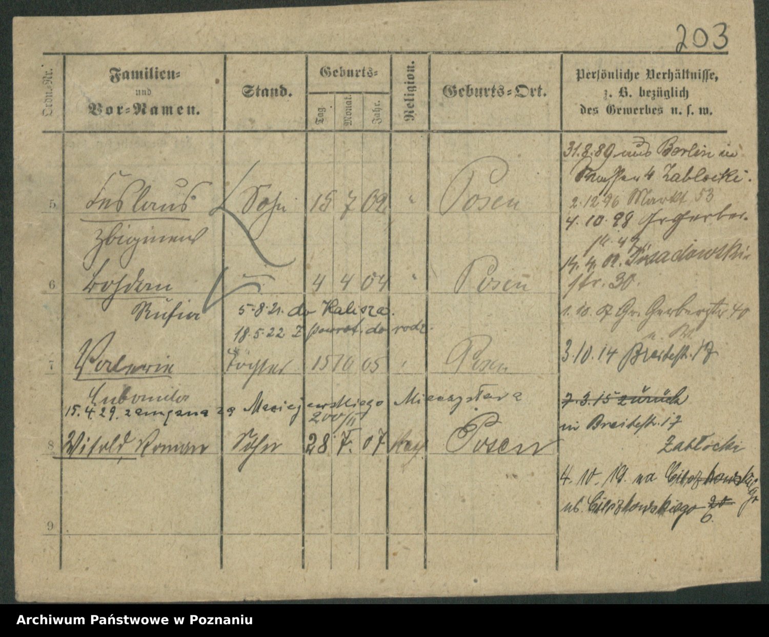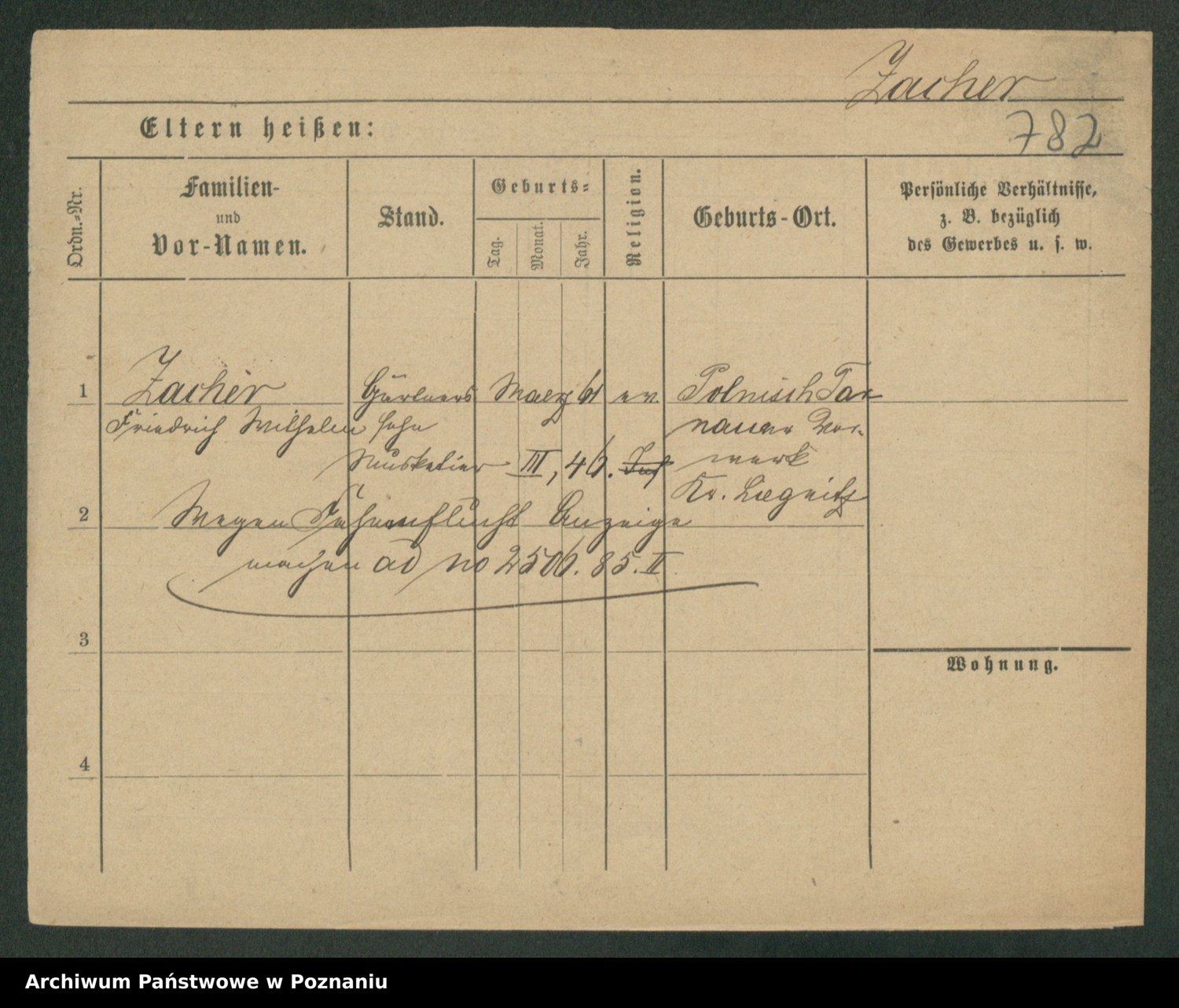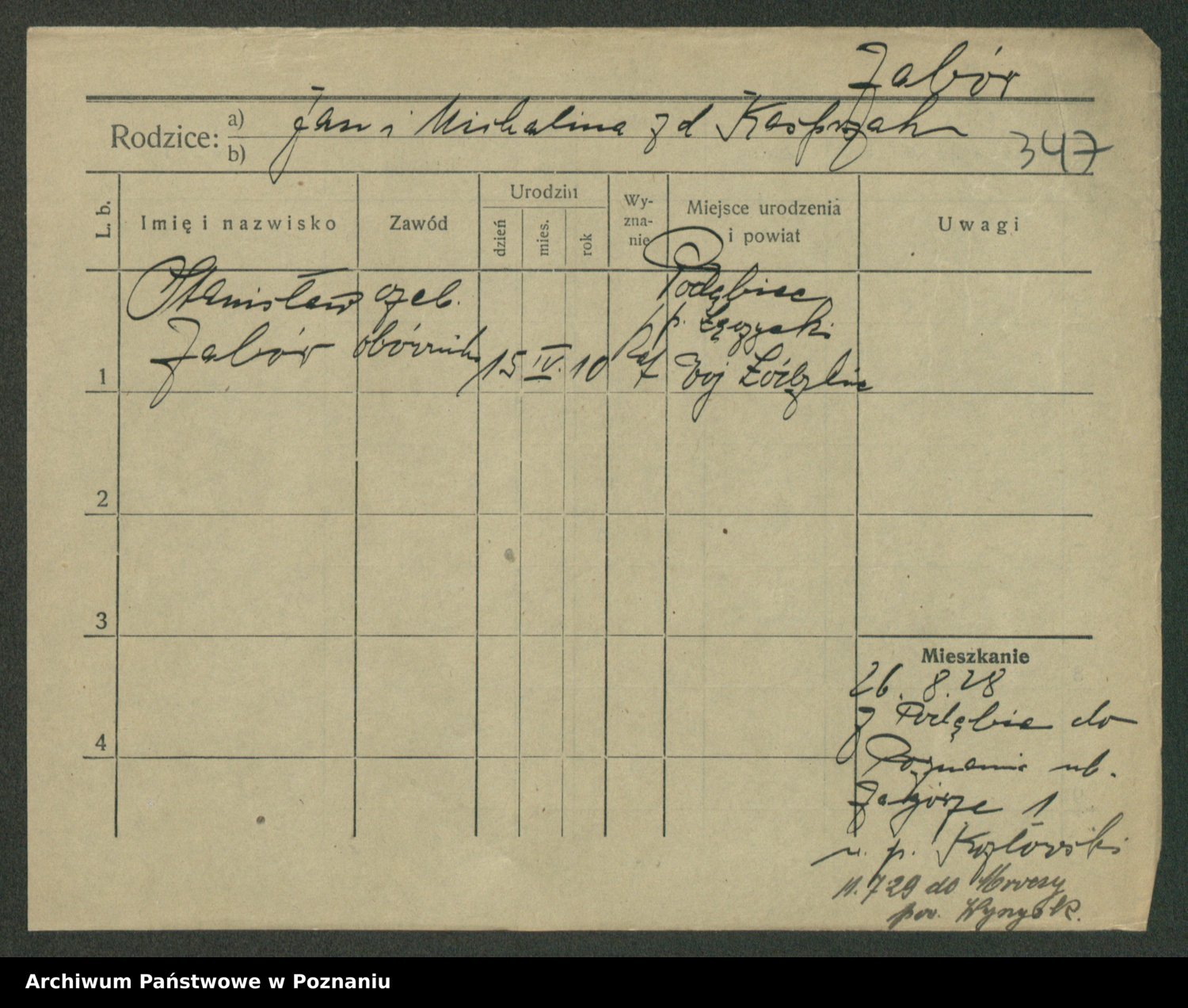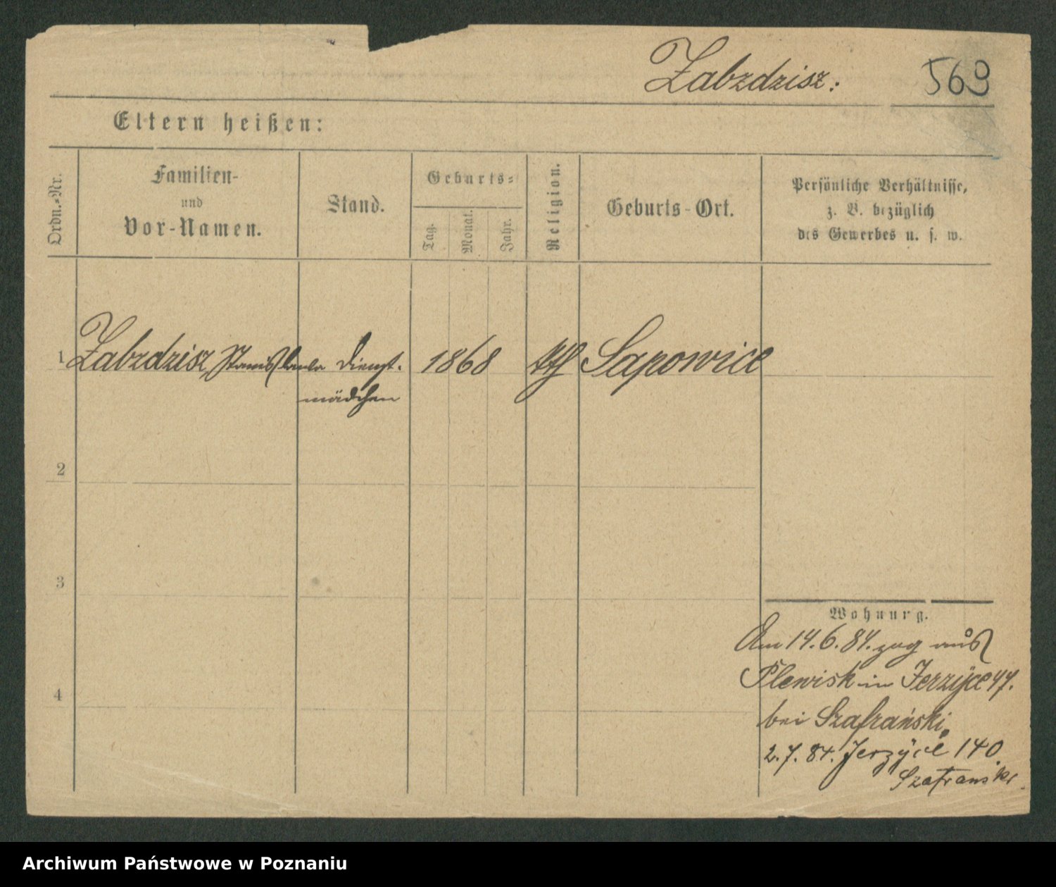 Podgląd karty osobowej dostępny jest po kliknięciu na nazwisko lub ikonkę karty. Można dokonywać powiększenia (ikony na górze) lub przechodzić między kolejnymi skanami (strzałki po bokach).