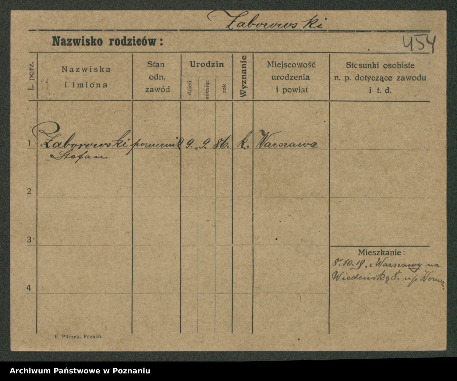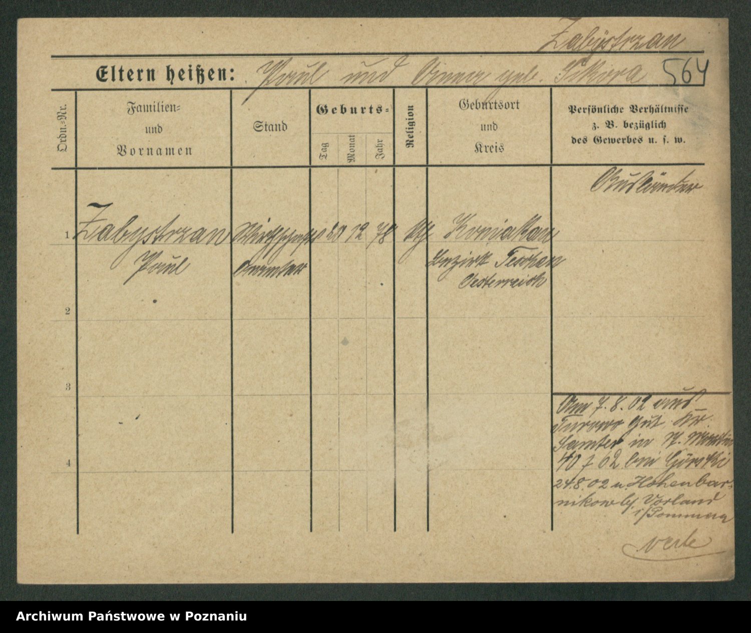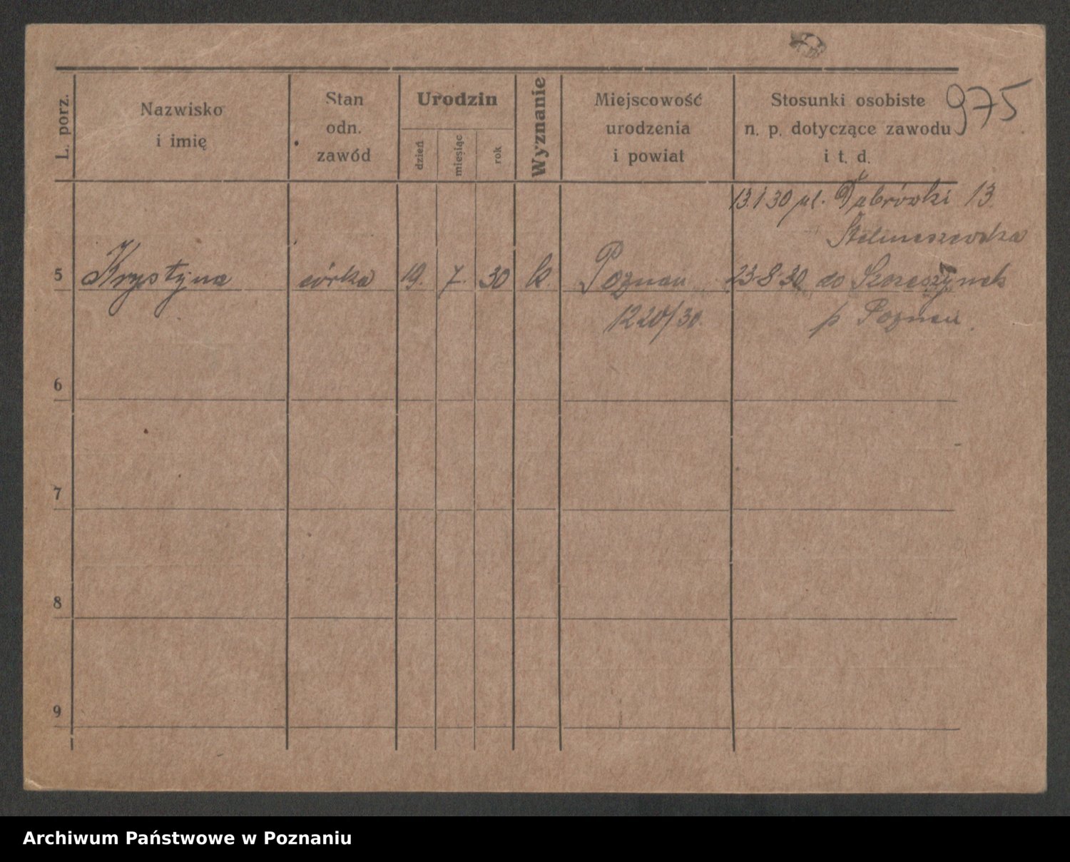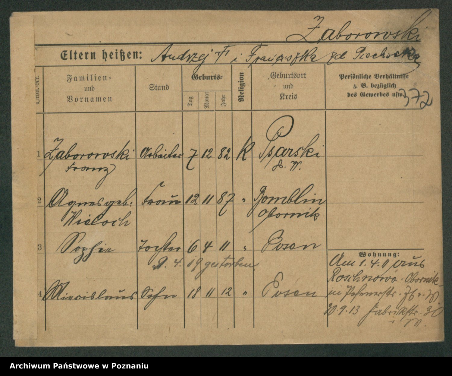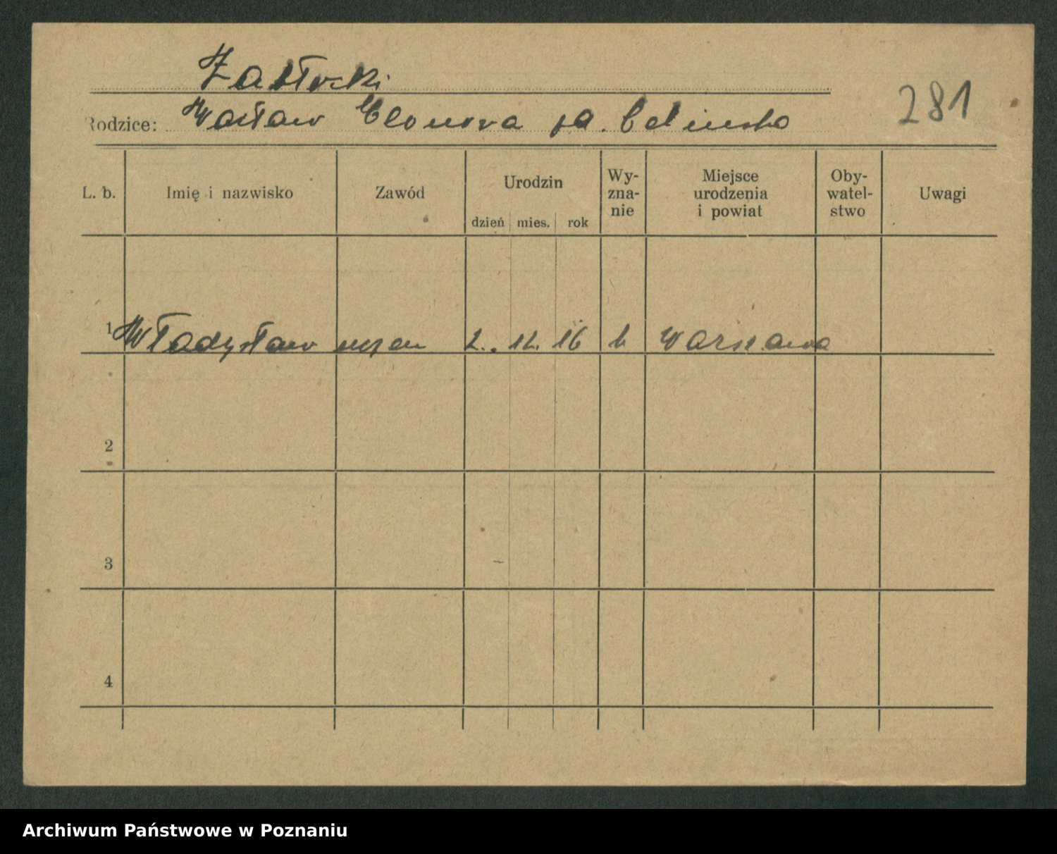 Podgląd karty osobowej dostępny jest po kliknięciu na nazwisko lub ikonkę karty. Można dokonywać powiększenia (ikony na górze) lub przechodzić między kolejnymi skanami (strzałki po bokach).