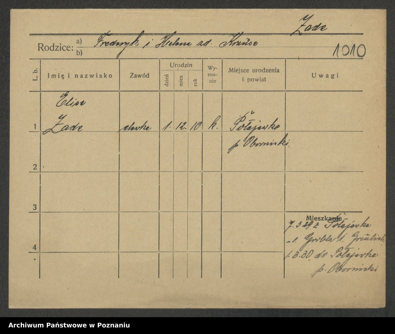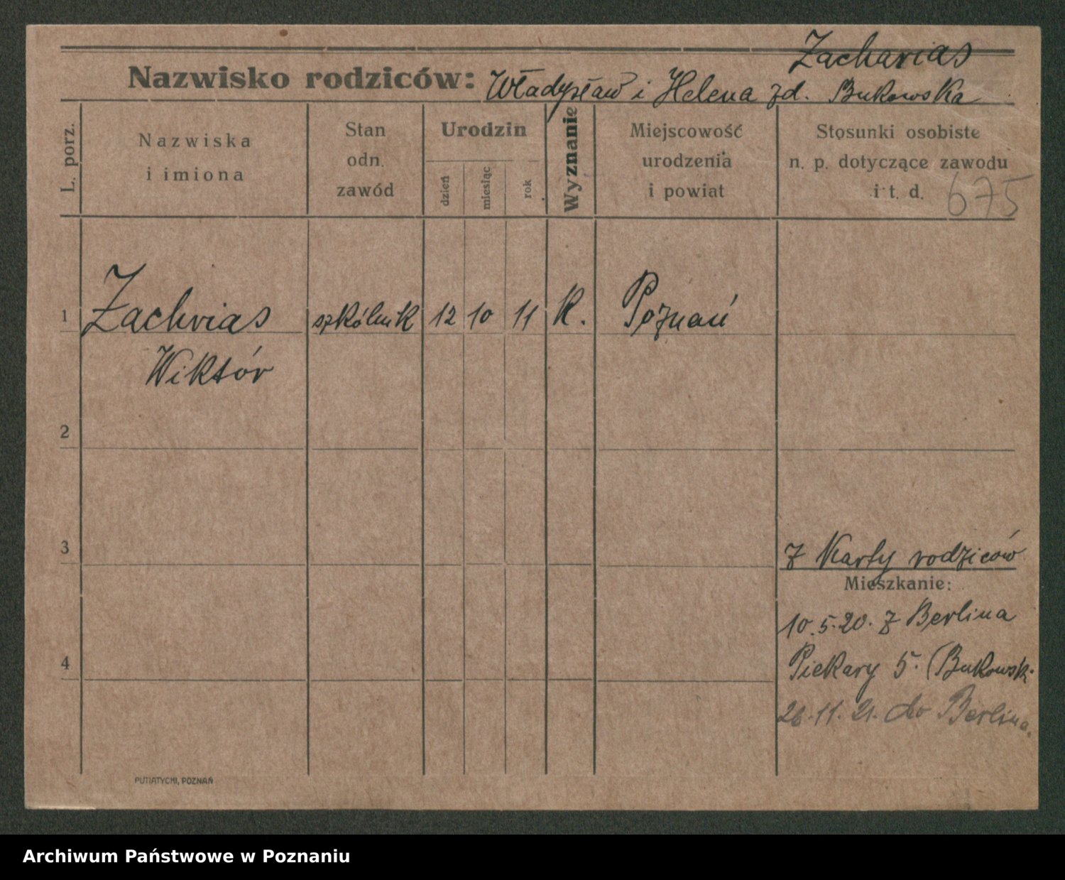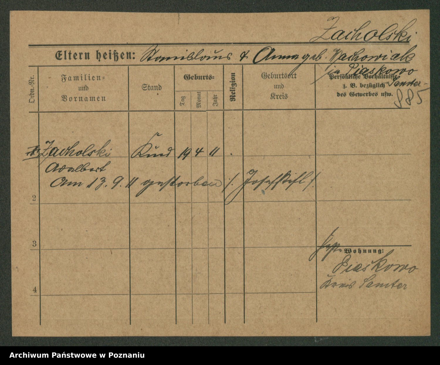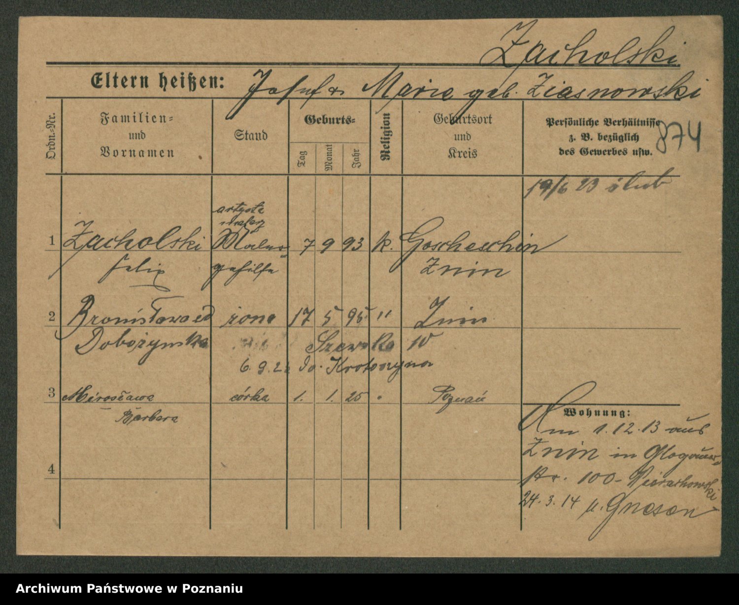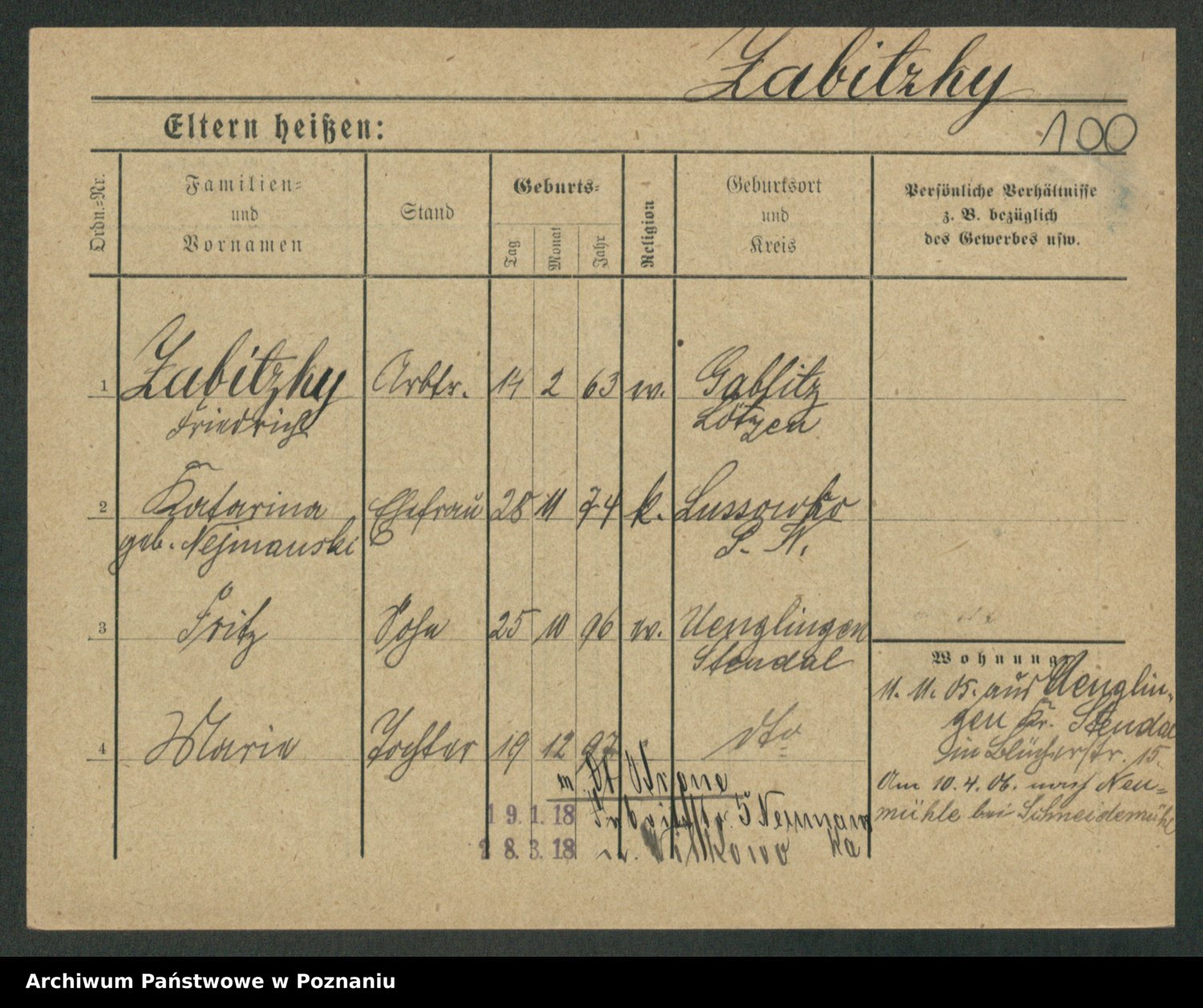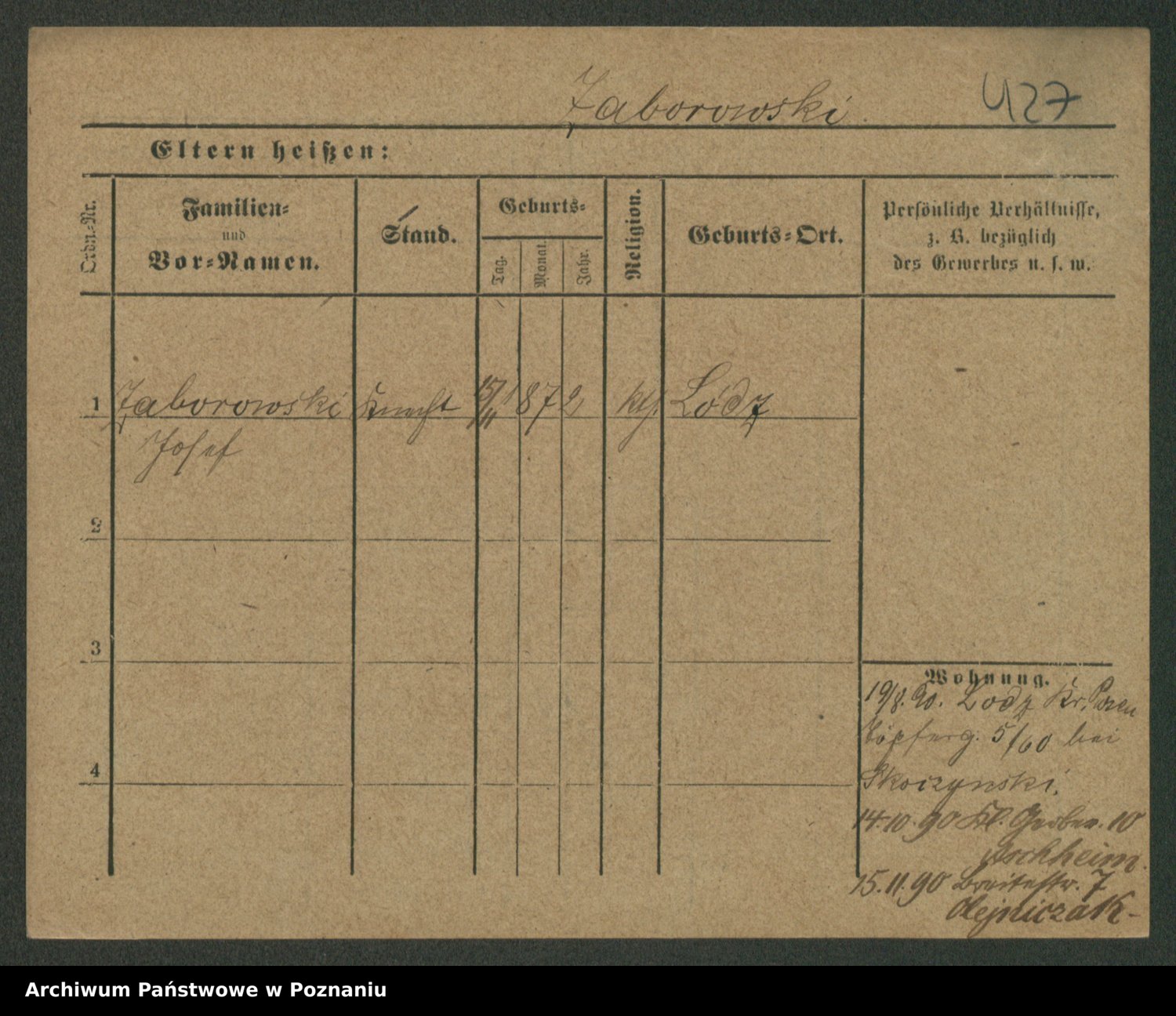 Podgląd karty osobowej dostępny jest po kliknięciu na nazwisko lub ikonkę karty. Można dokonywać powiększenia (ikony na górze) lub przechodzić między kolejnymi skanami (strzałki po bokach).