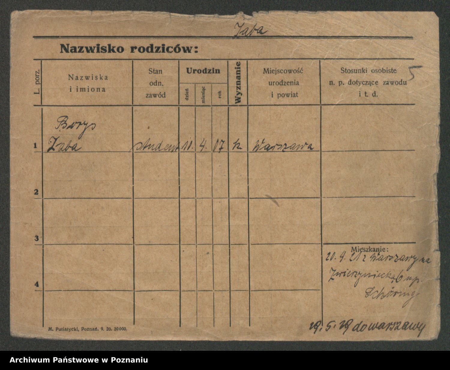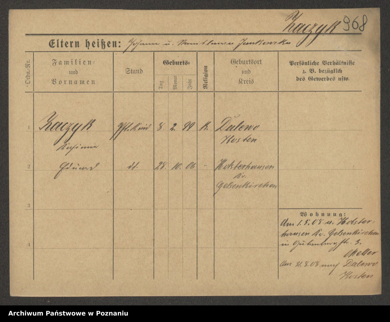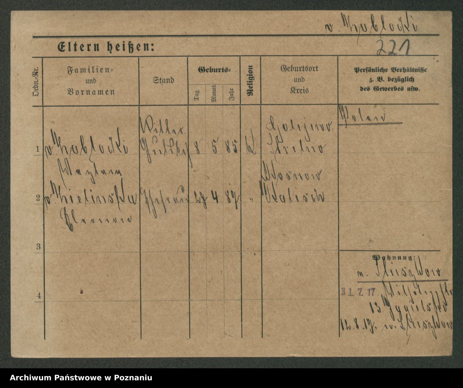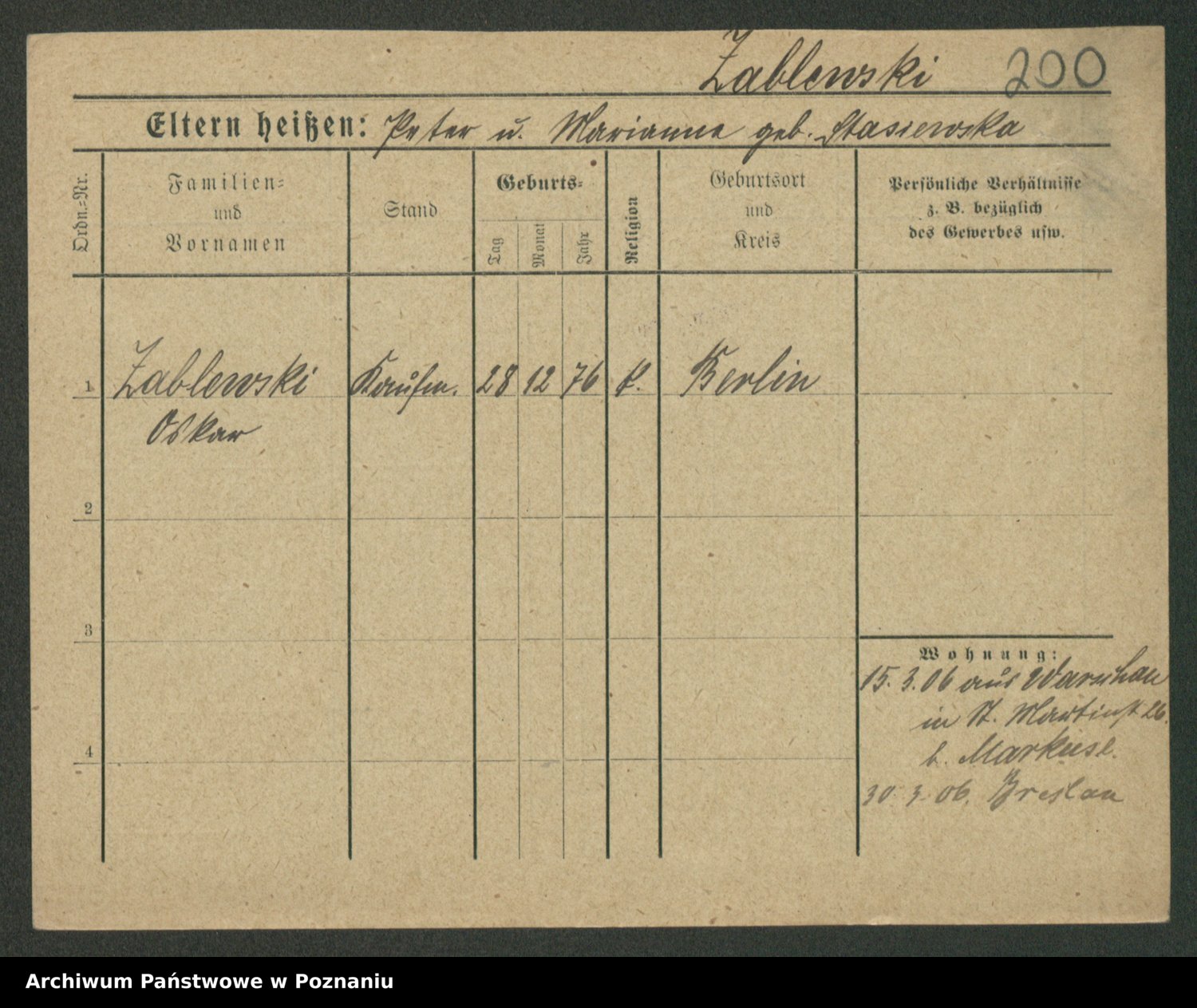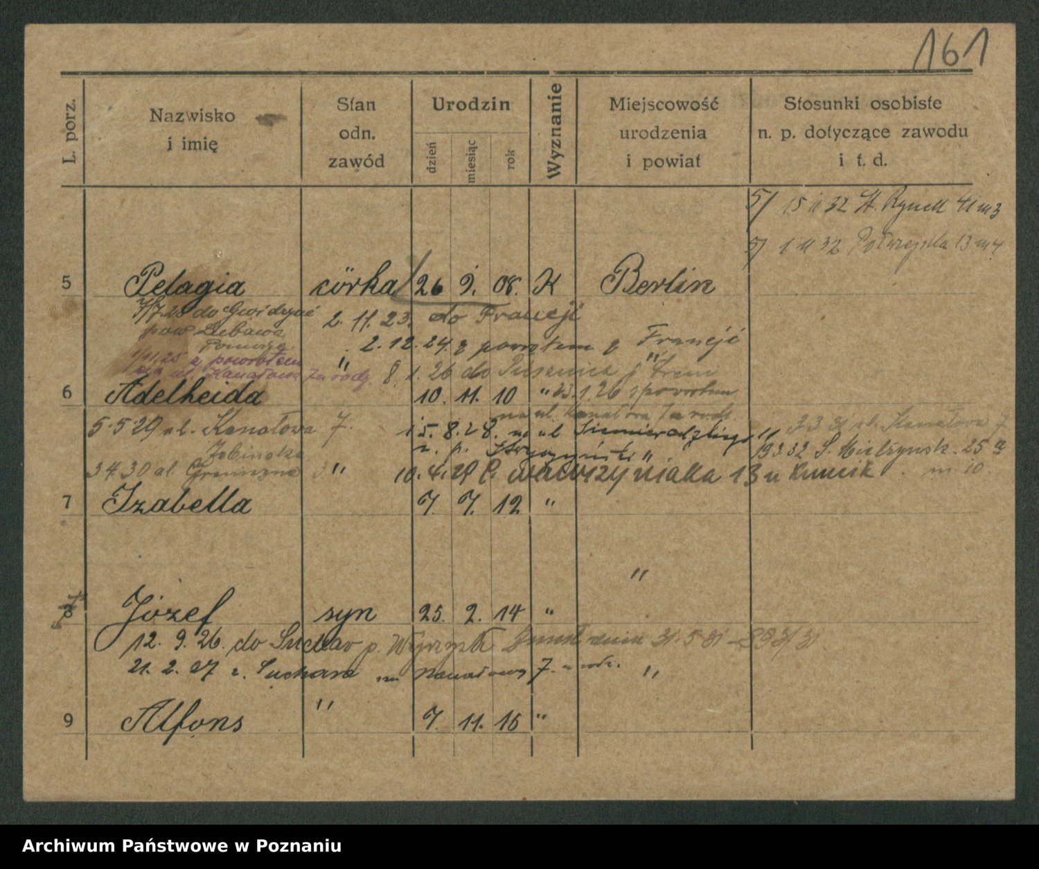 Podgląd karty osobowej dostępny jest po kliknięciu na nazwisko lub ikonkę karty. Można dokonywać powiększenia (ikony na górze) lub przechodzić między kolejnymi skanami (strzałki po bokach).