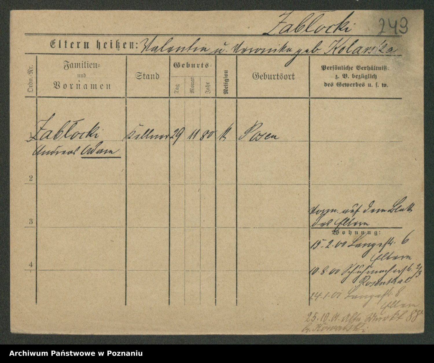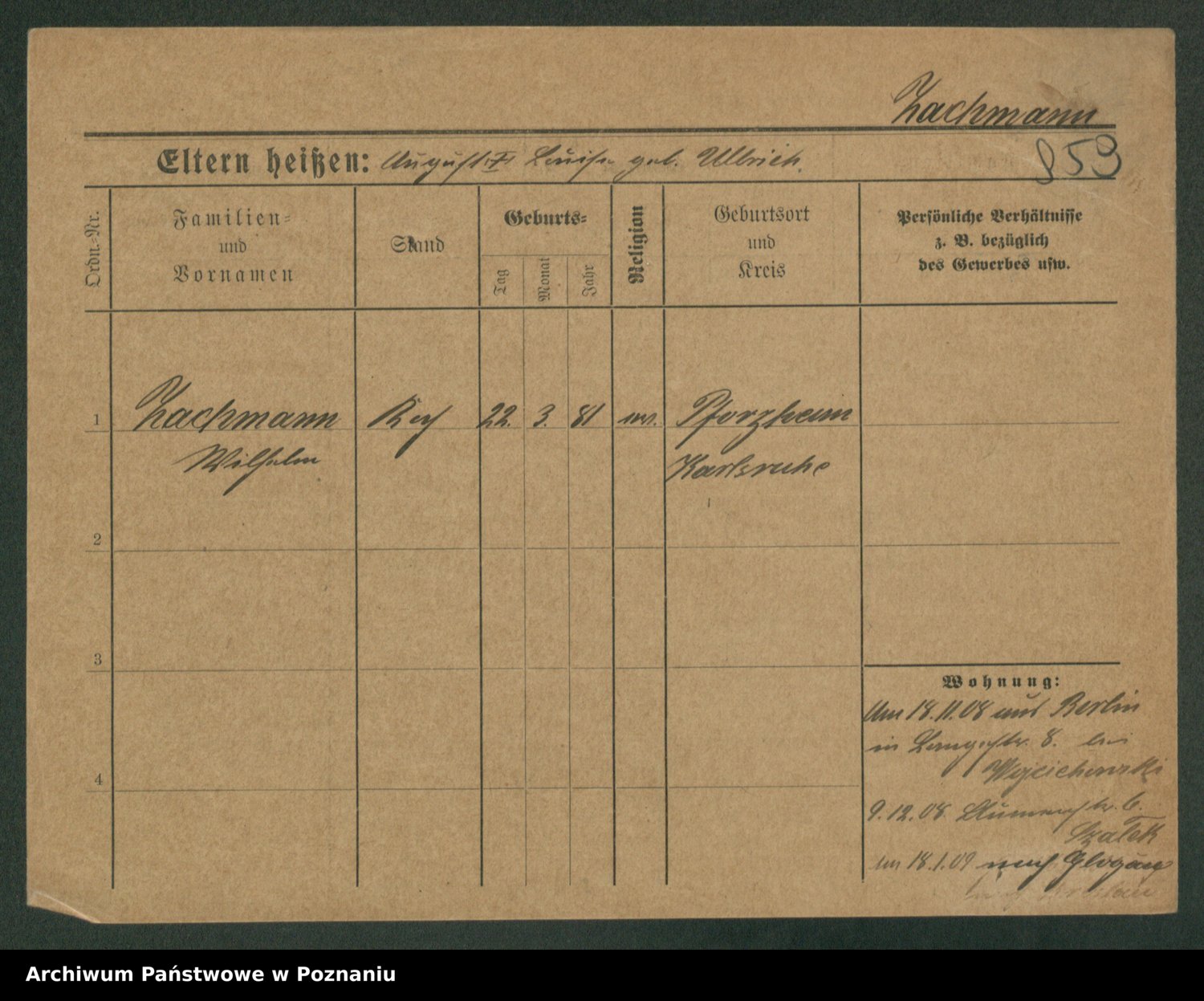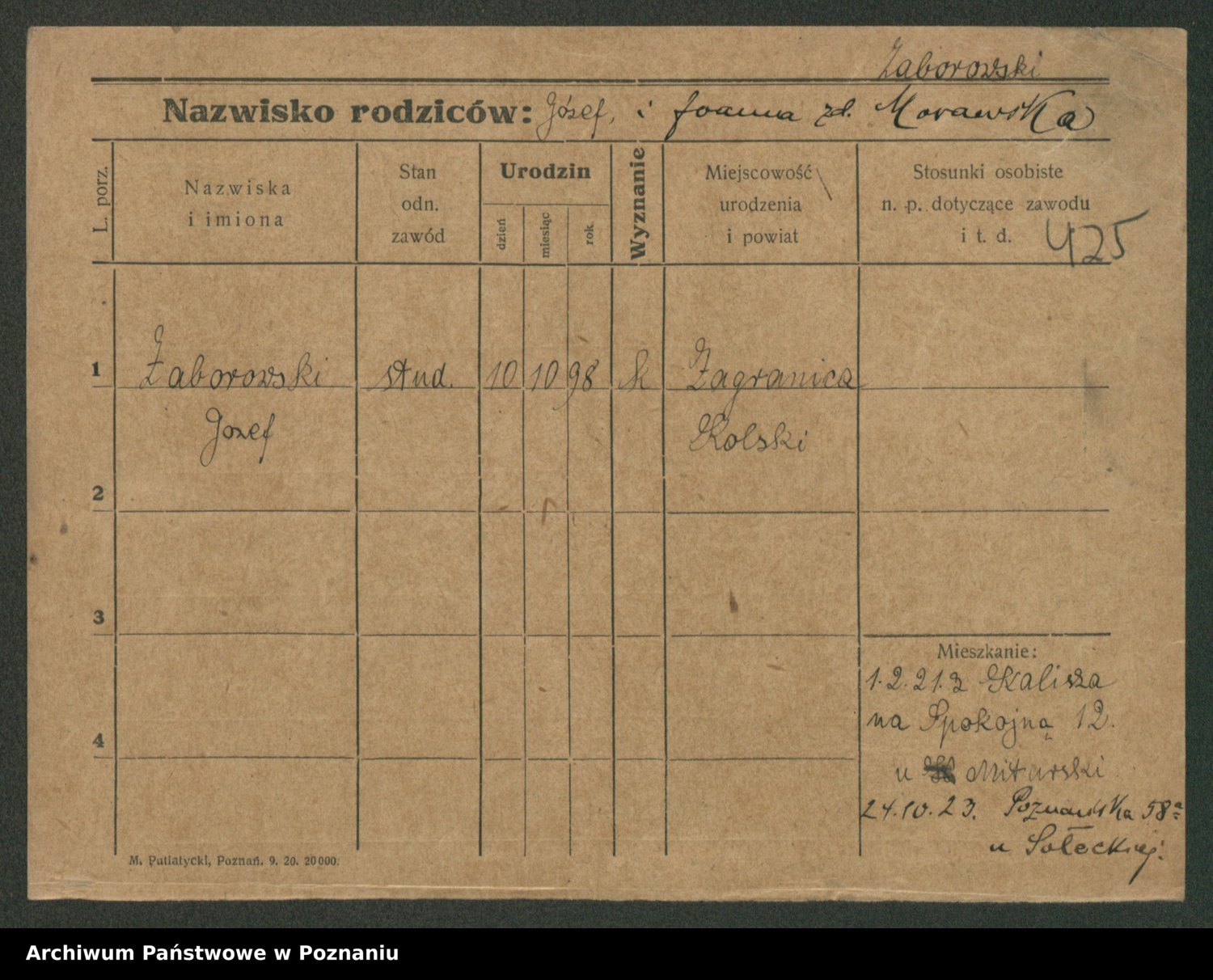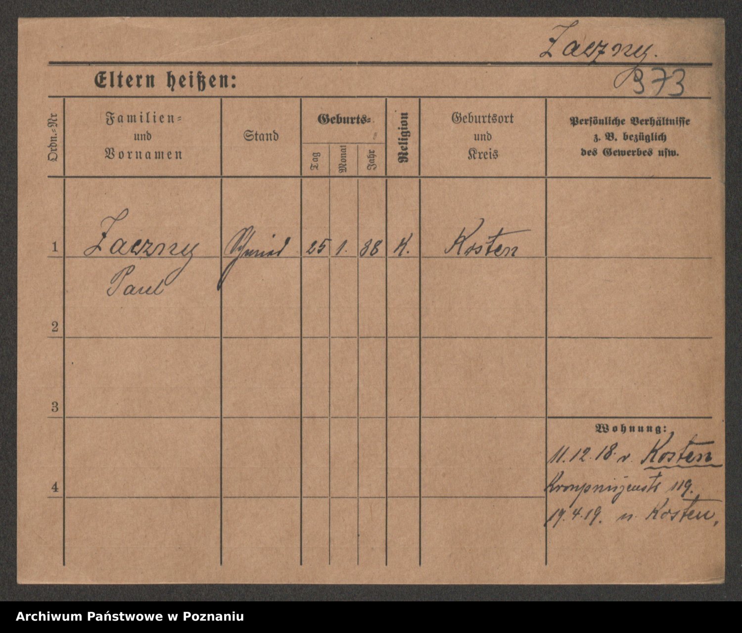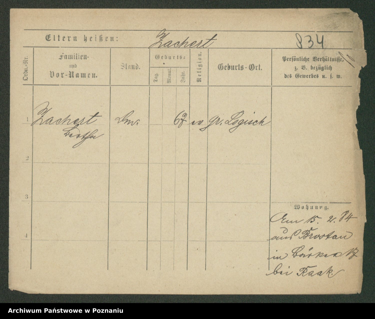 Podgląd karty osobowej dostępny jest po kliknięciu na nazwisko lub ikonkę karty. Można dokonywać powiększenia (ikony na górze) lub przechodzić między kolejnymi skanami (strzałki po bokach).