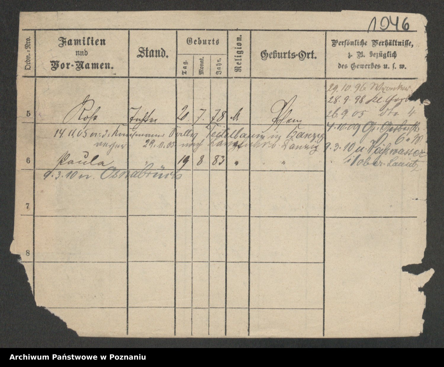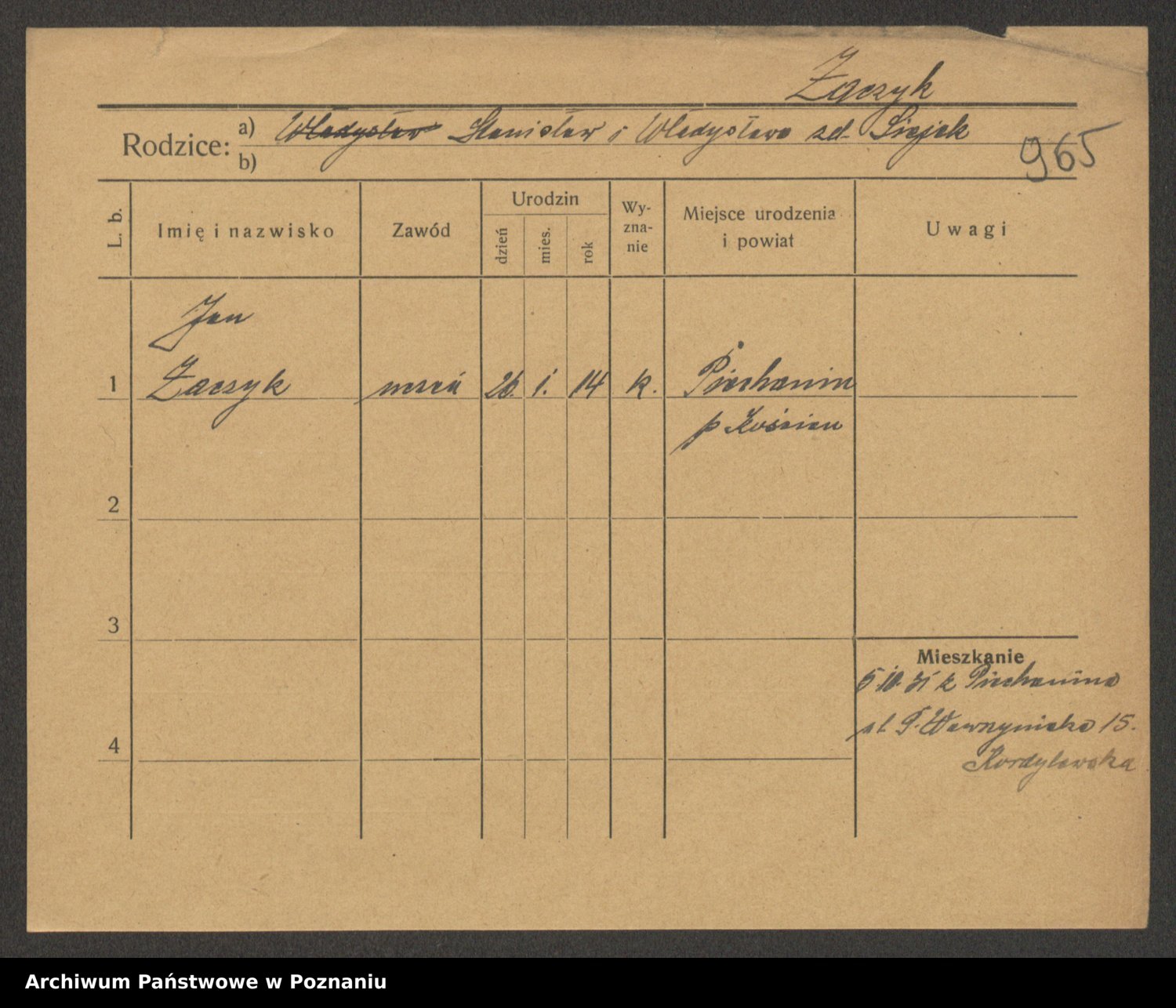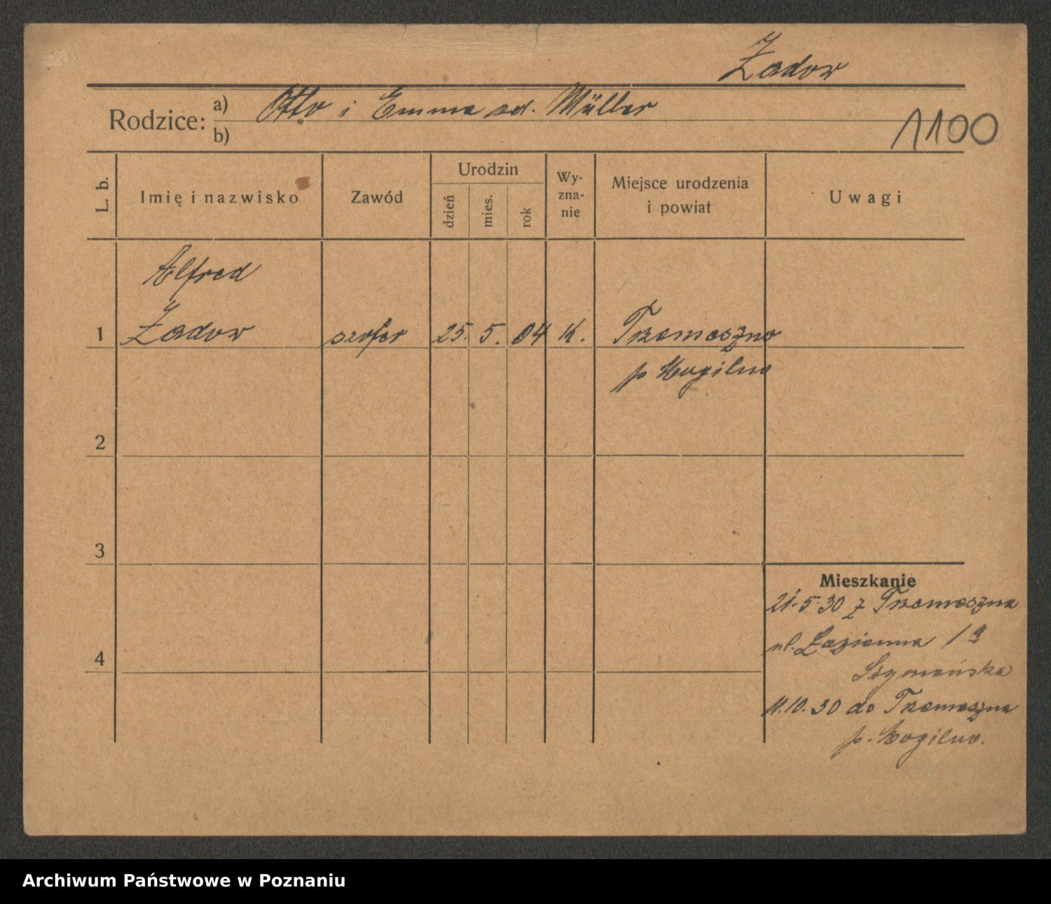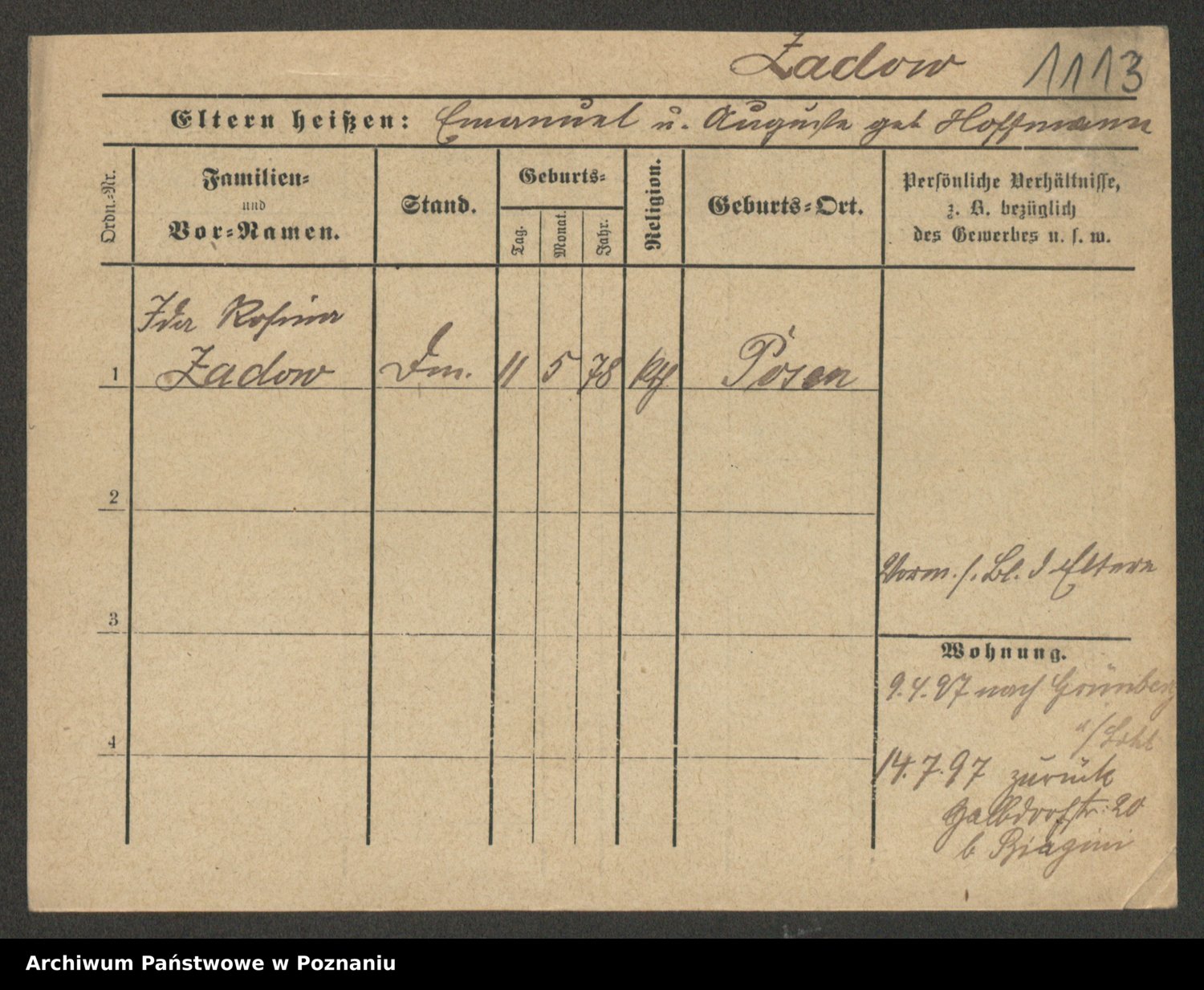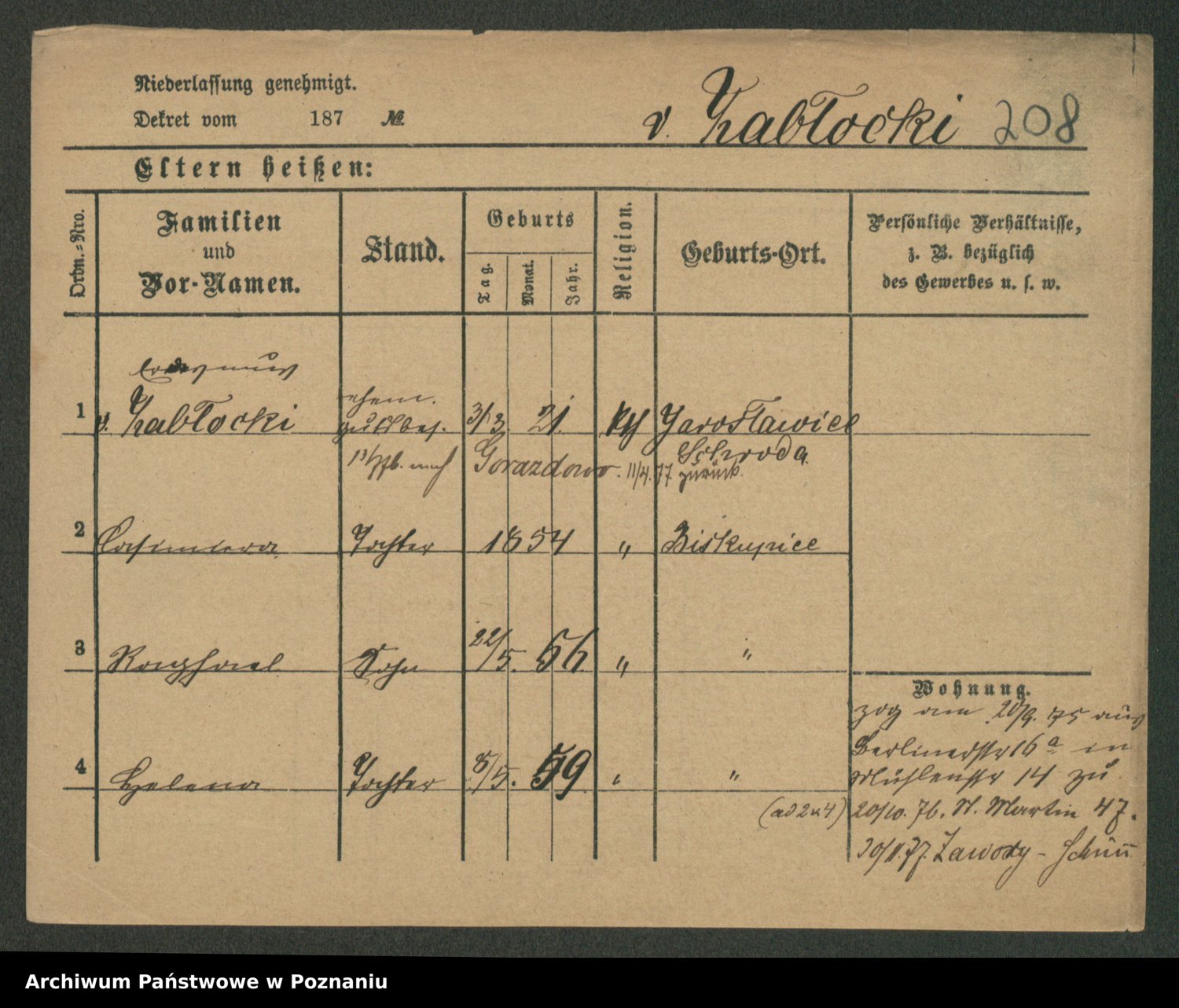 Podgląd karty osobowej dostępny jest po kliknięciu na nazwisko lub ikonkę karty. Można dokonywać powiększenia (ikony na górze) lub przechodzić między kolejnymi skanami (strzałki po bokach).