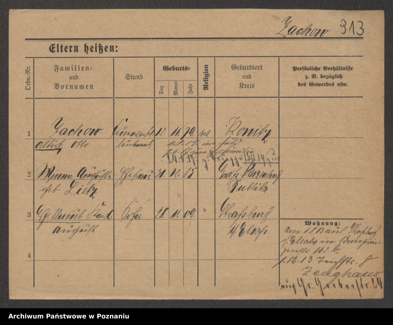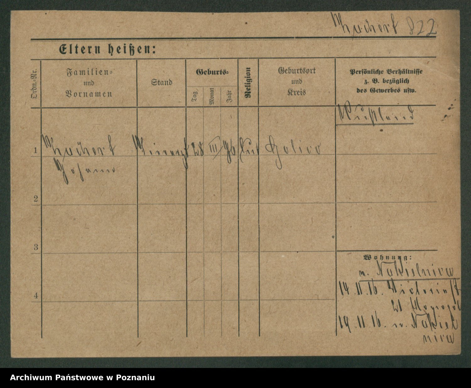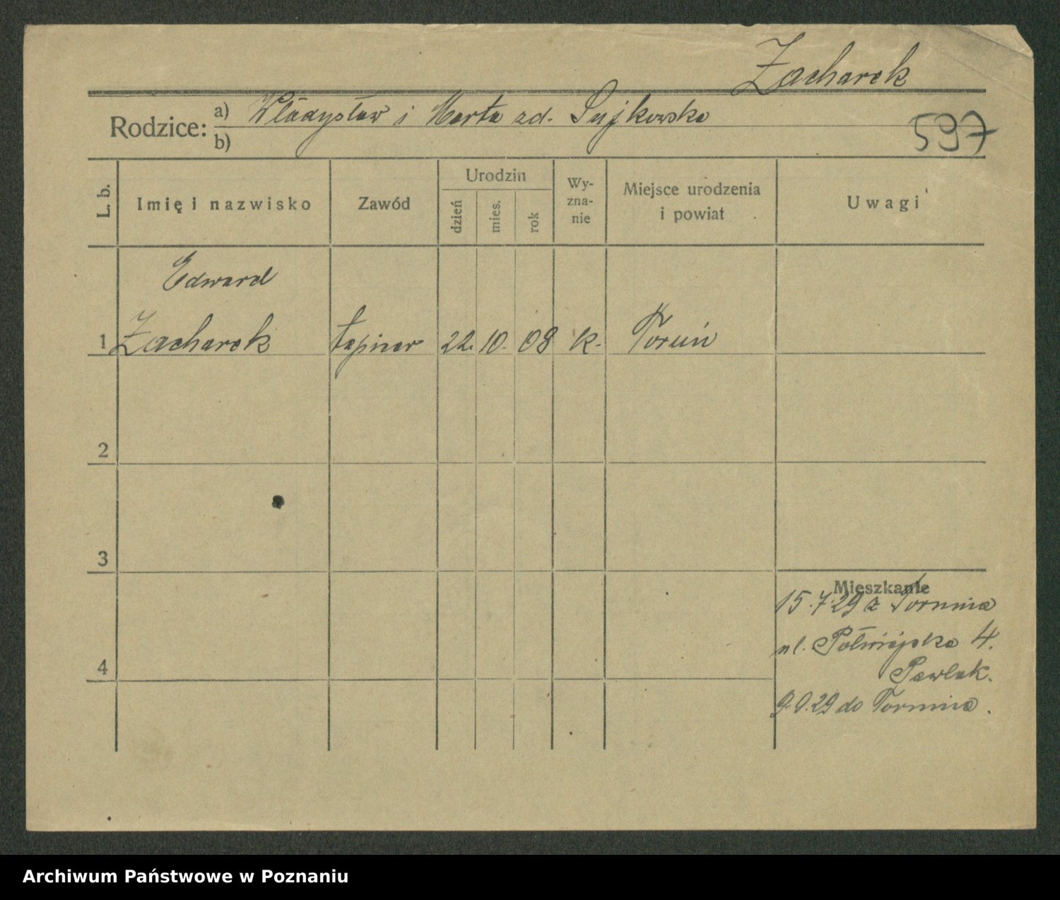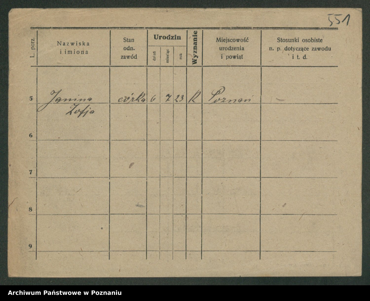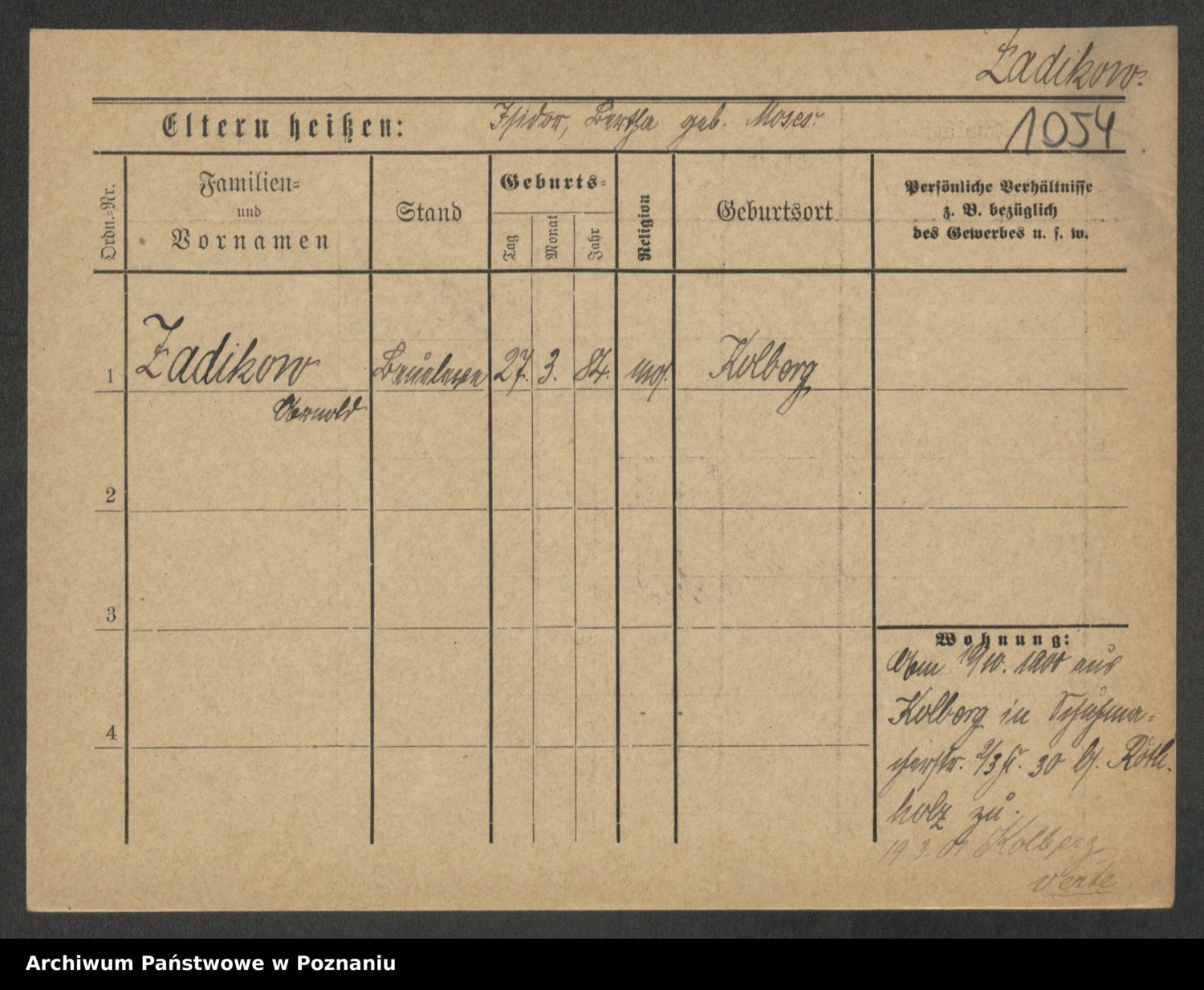 Podgląd karty osobowej dostępny jest po kliknięciu na nazwisko lub ikonkę karty. Można dokonywać powiększenia (ikony na górze) lub przechodzić między kolejnymi skanami (strzałki po bokach).