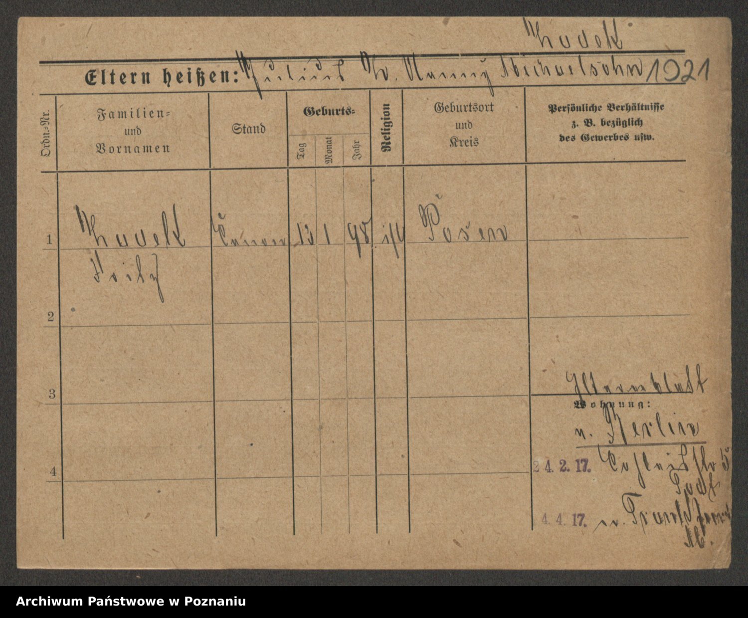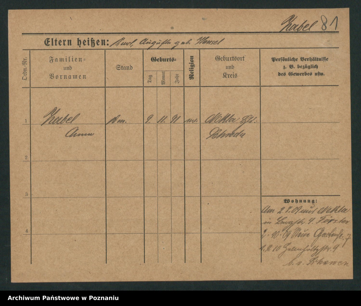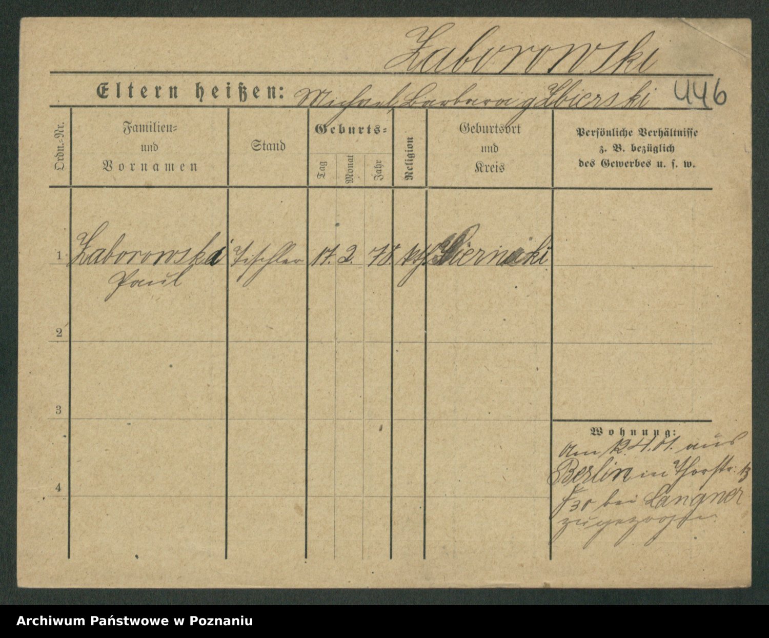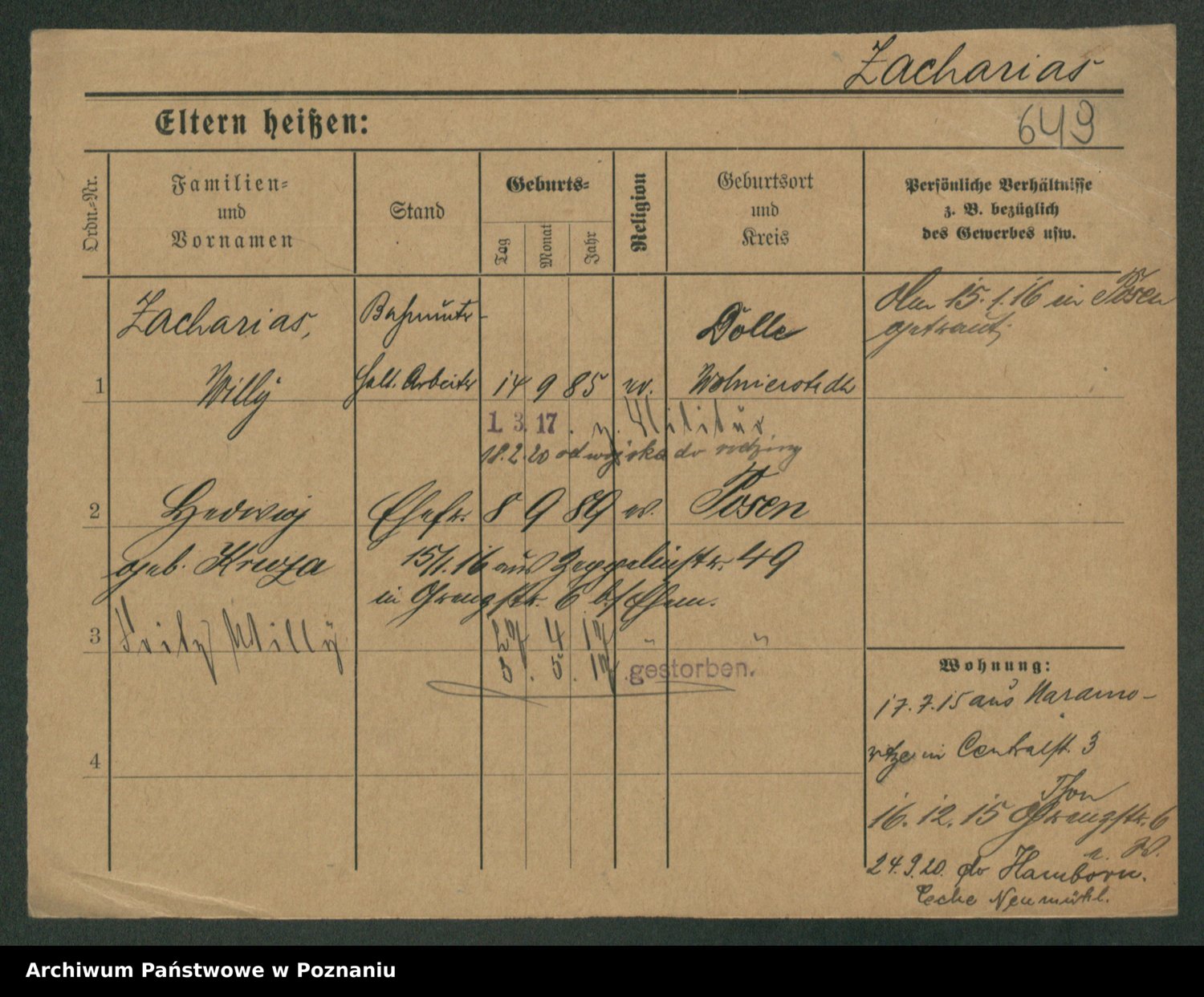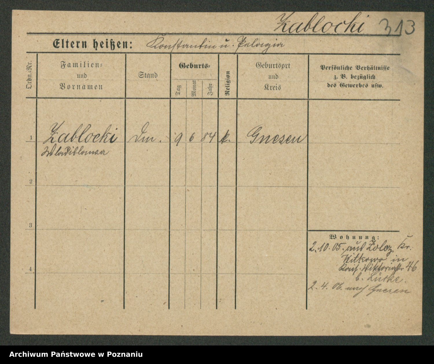 Podgląd karty osobowej dostępny jest po kliknięciu na nazwisko lub ikonkę karty. Można dokonywać powiększenia (ikony na górze) lub przechodzić między kolejnymi skanami (strzałki po bokach).